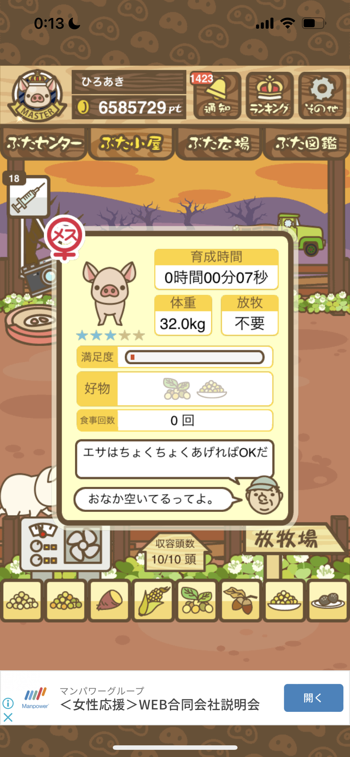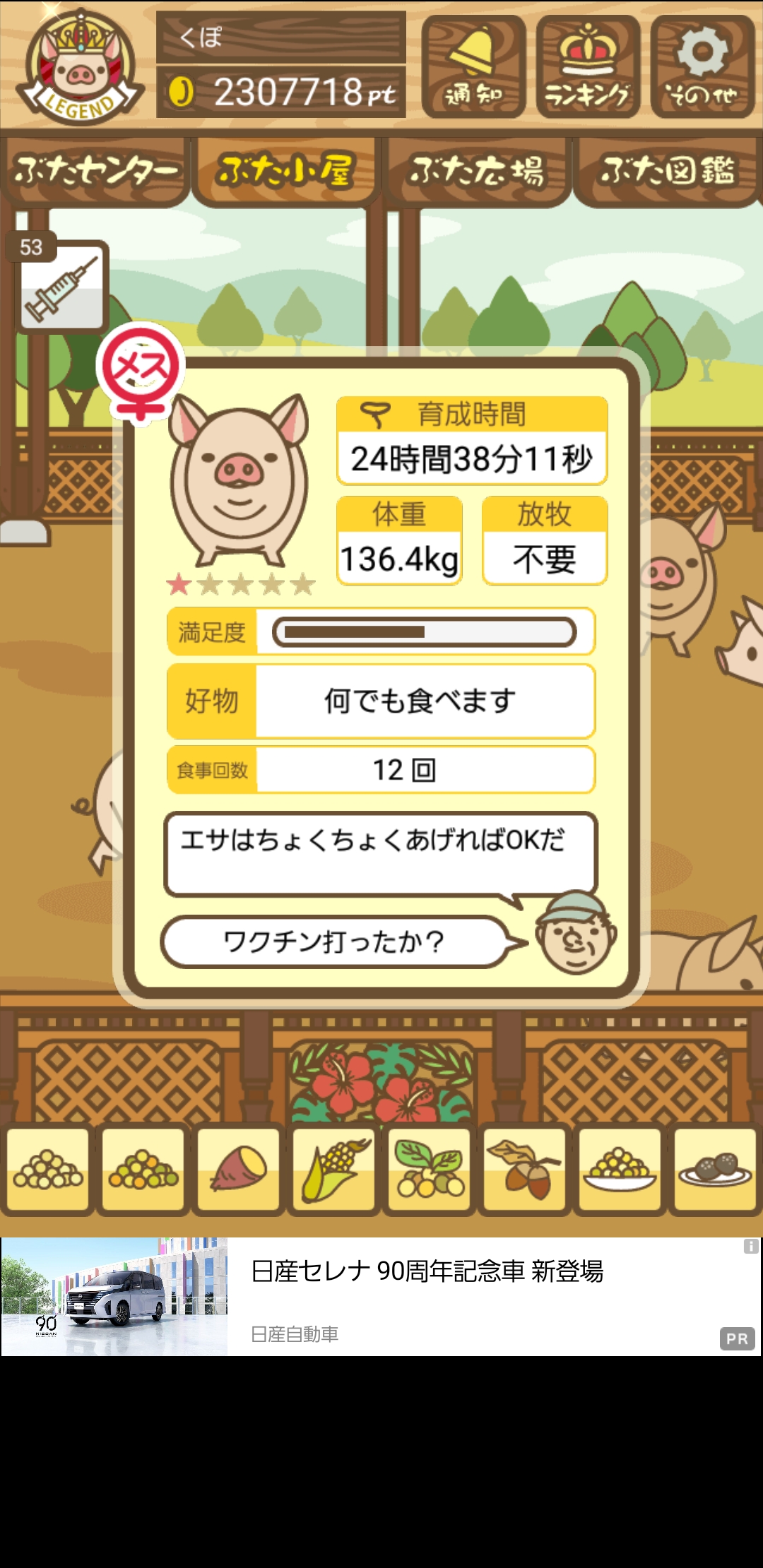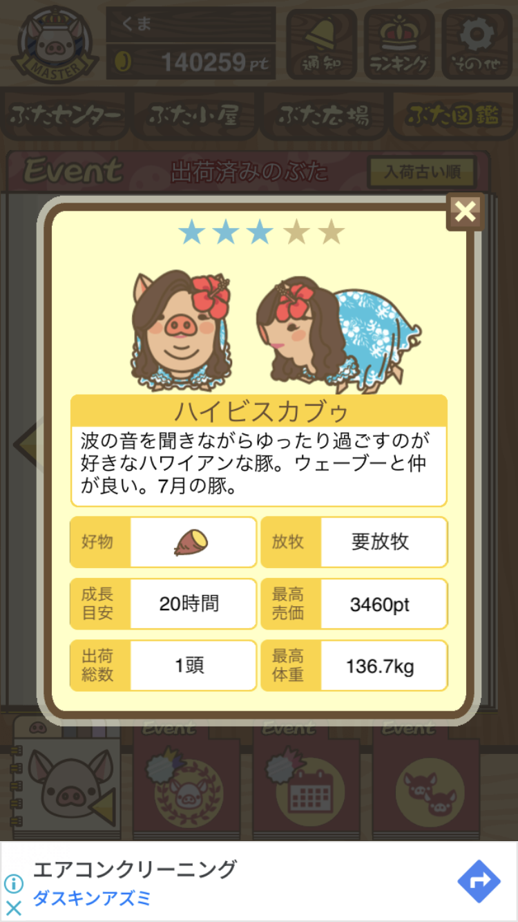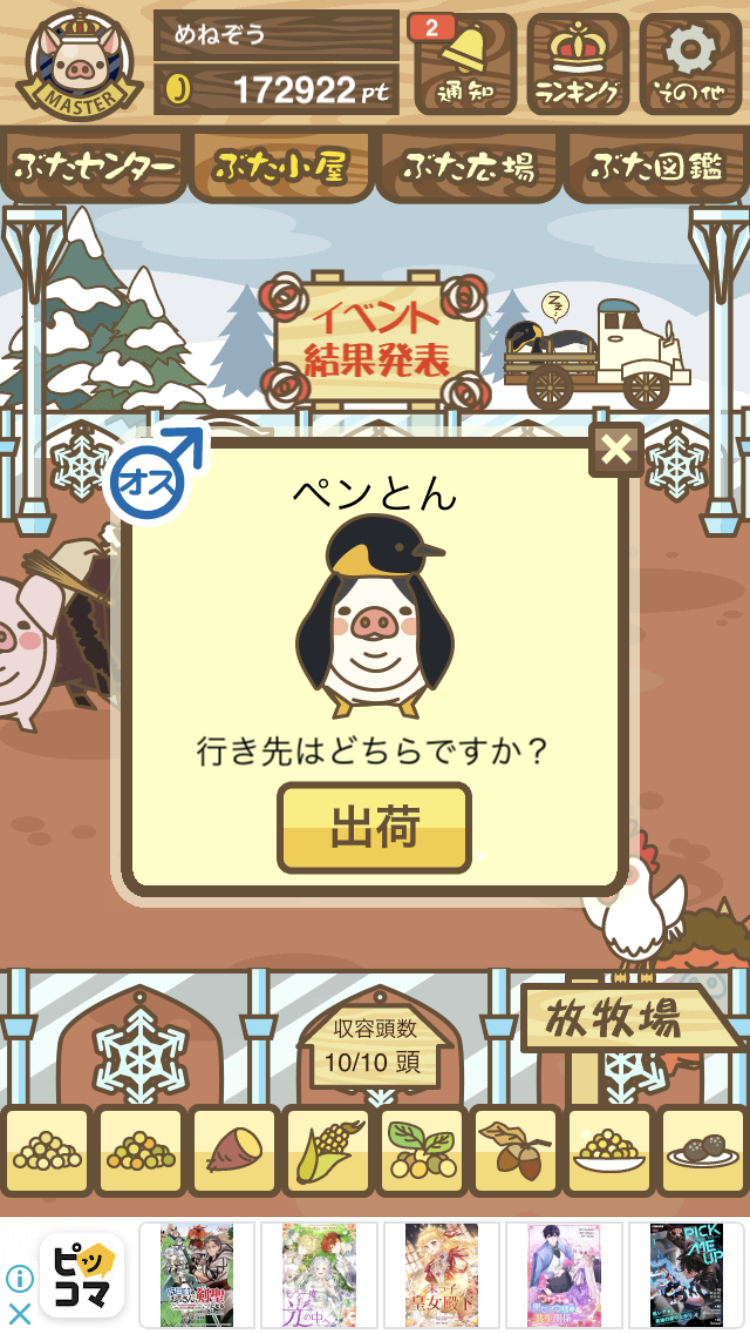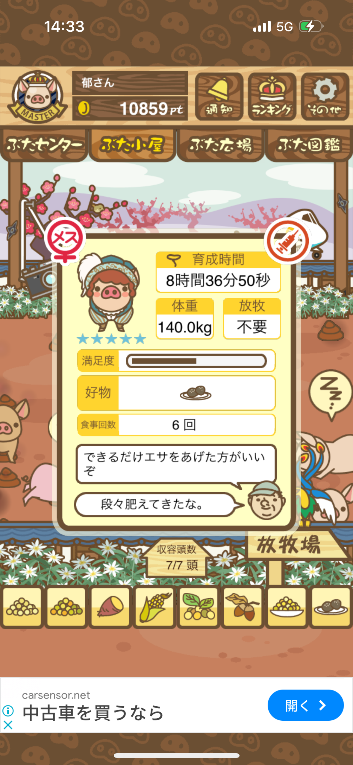 - また、エイブゥ....エサ雑穀16回、エサやりの度に放牧場行き来、16回エサやり後他の豚を放牧場へ....下の成功例の通り育成したつもりですが、何がダメだったんでしょう?掃除豚も排除しないといけないのでしょうか?