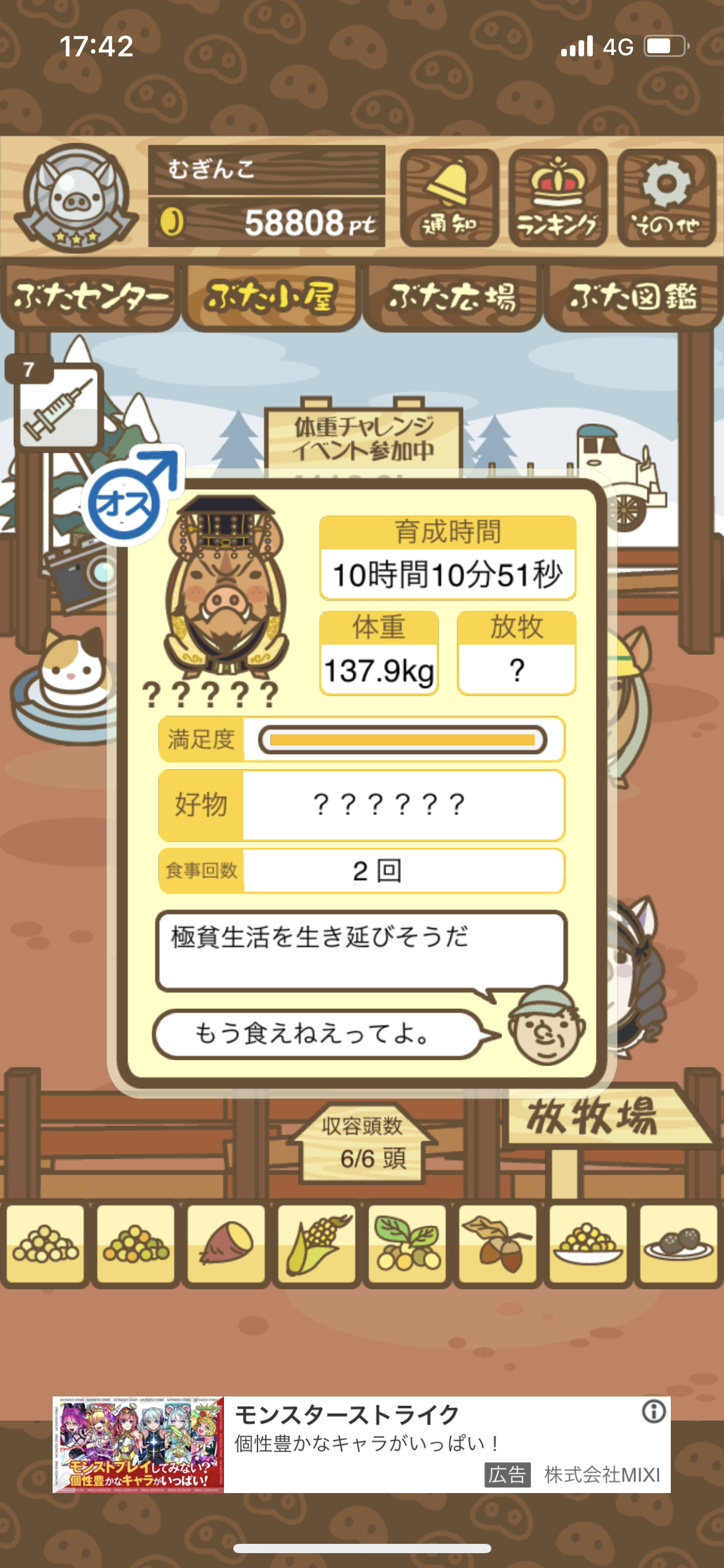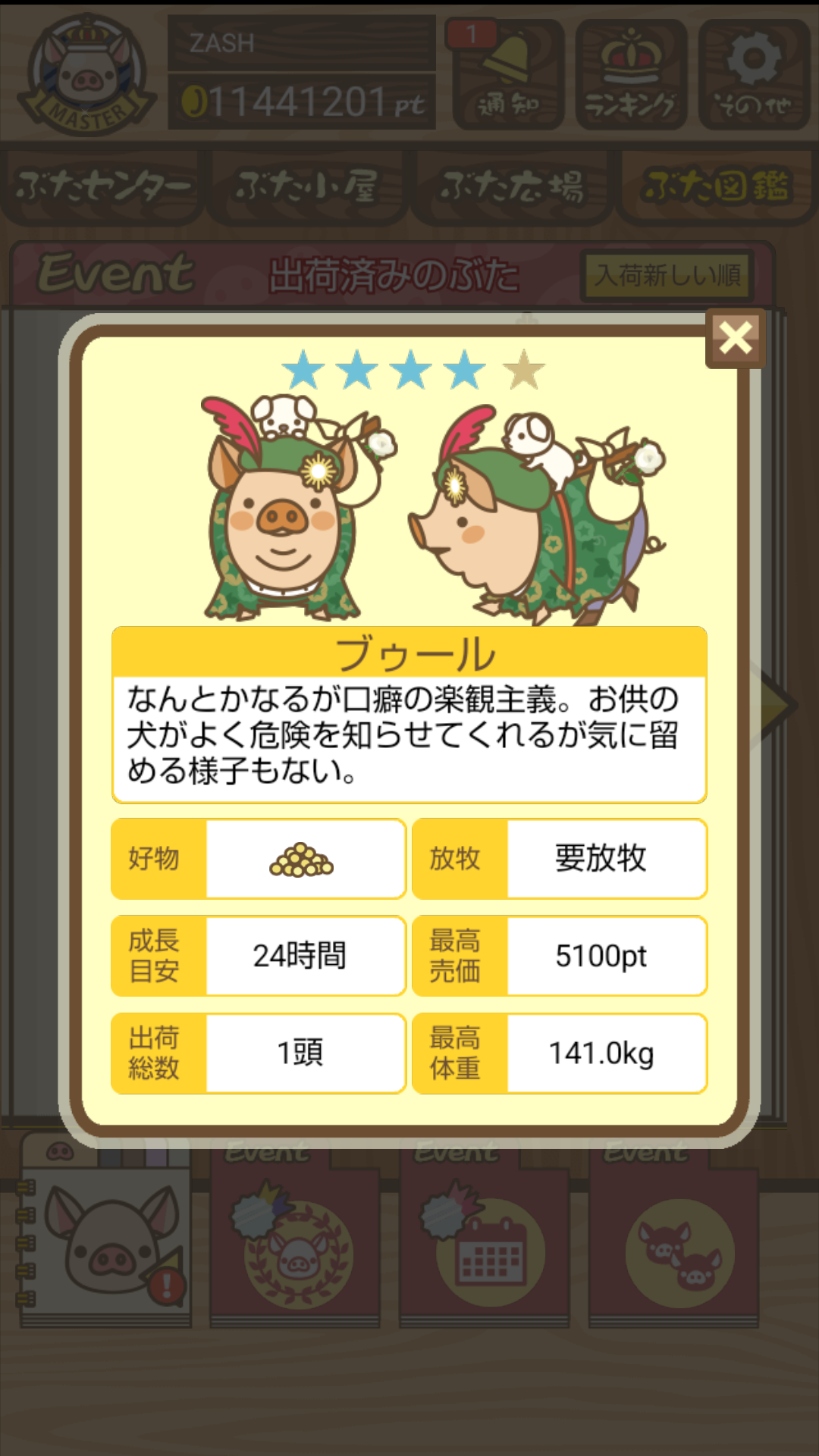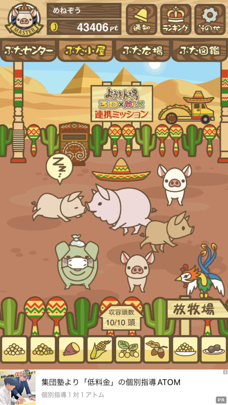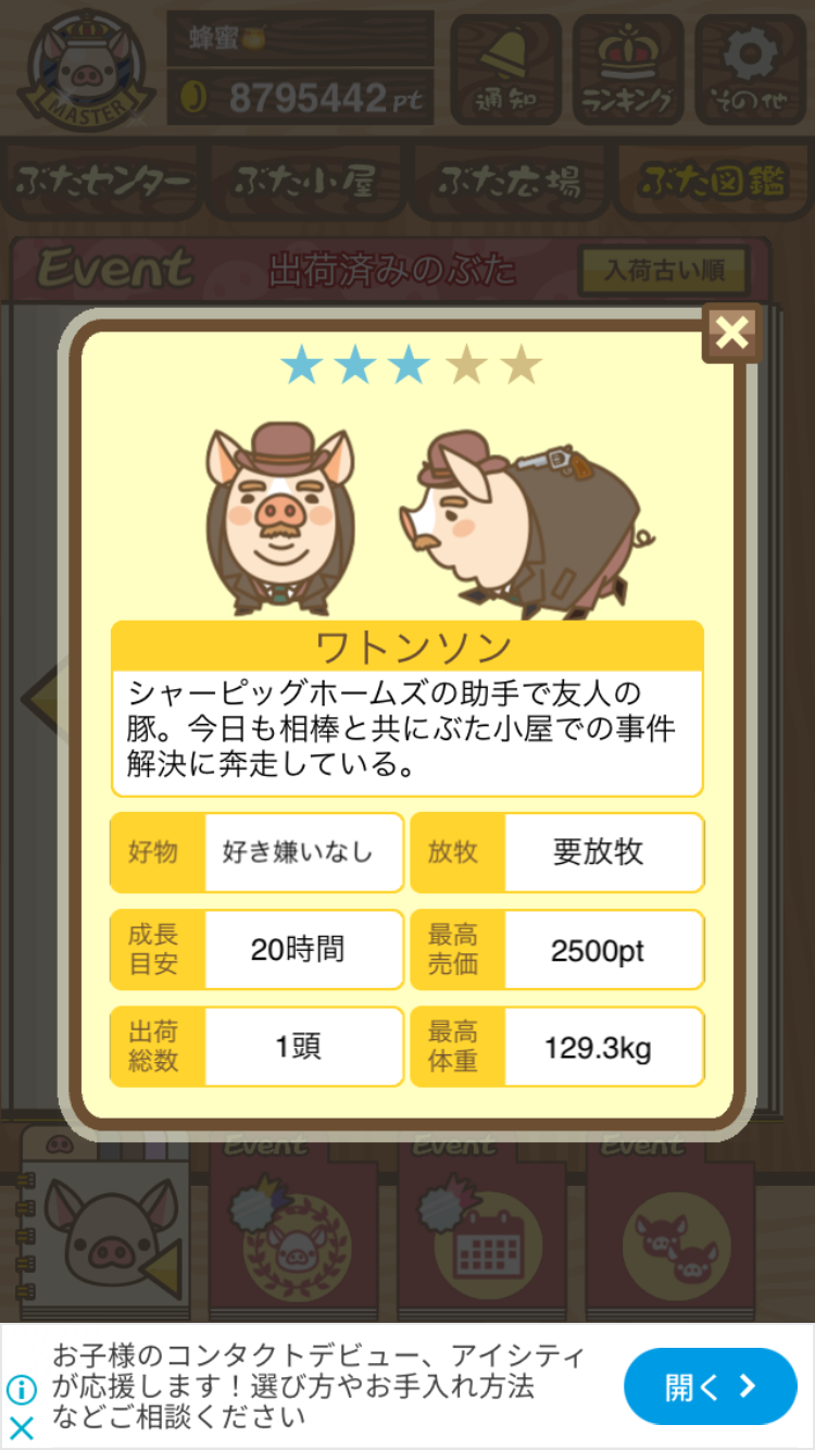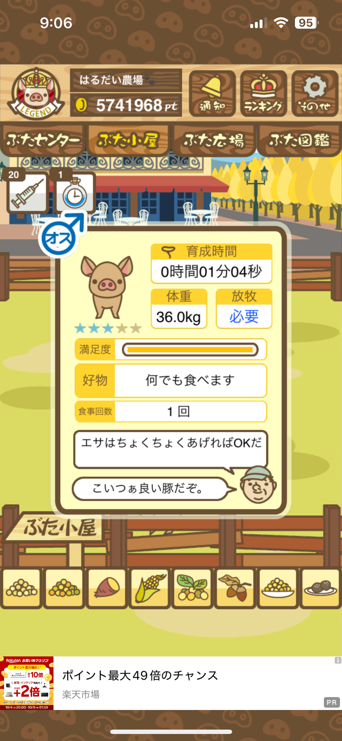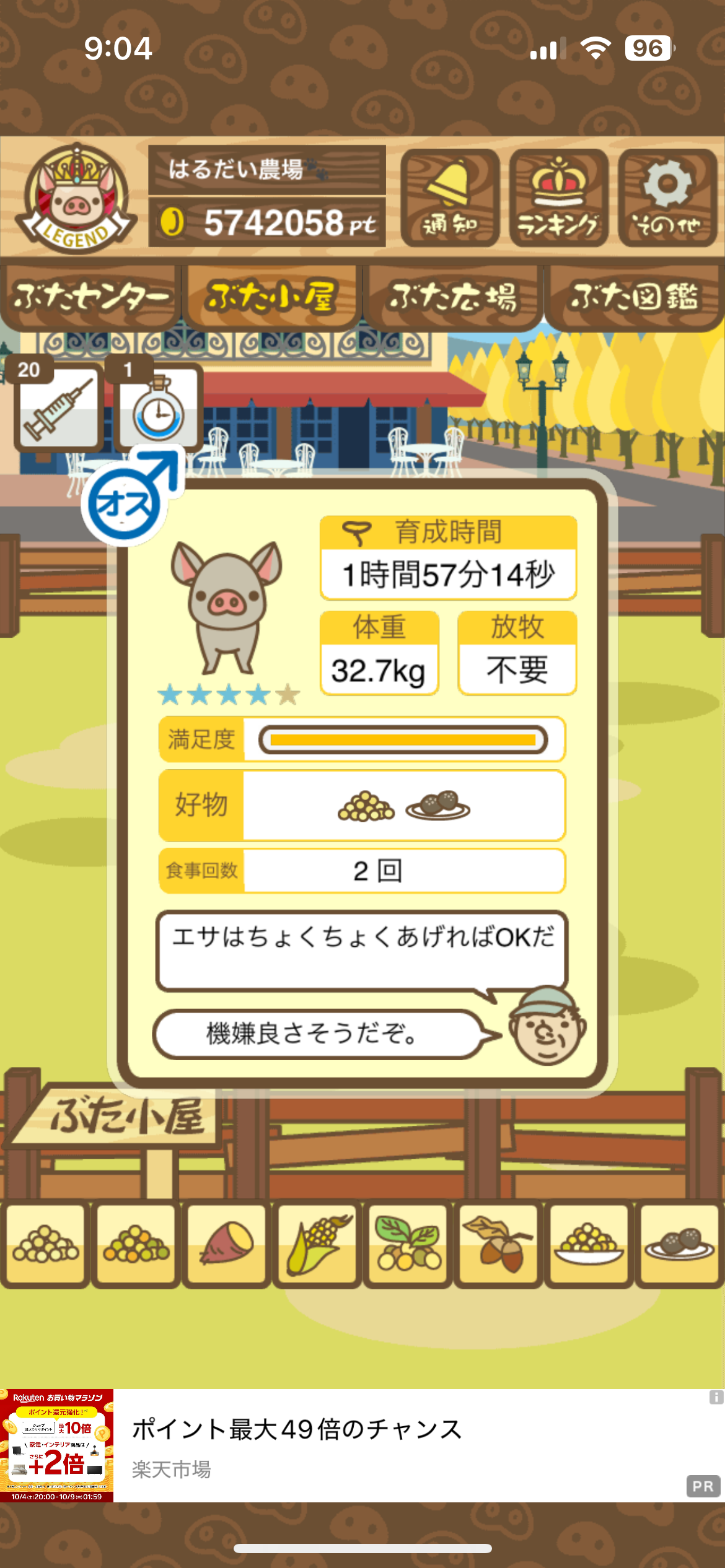 - また、エイブゥ....エサ雑穀16回、エサやりの度に放牧場行き来、16回エサやり後他の豚を放牧場へ....下の成功例の通り育成したつもりですが、何がダメだったんでしょう?掃除豚も排除しないといけないのでしょうか?