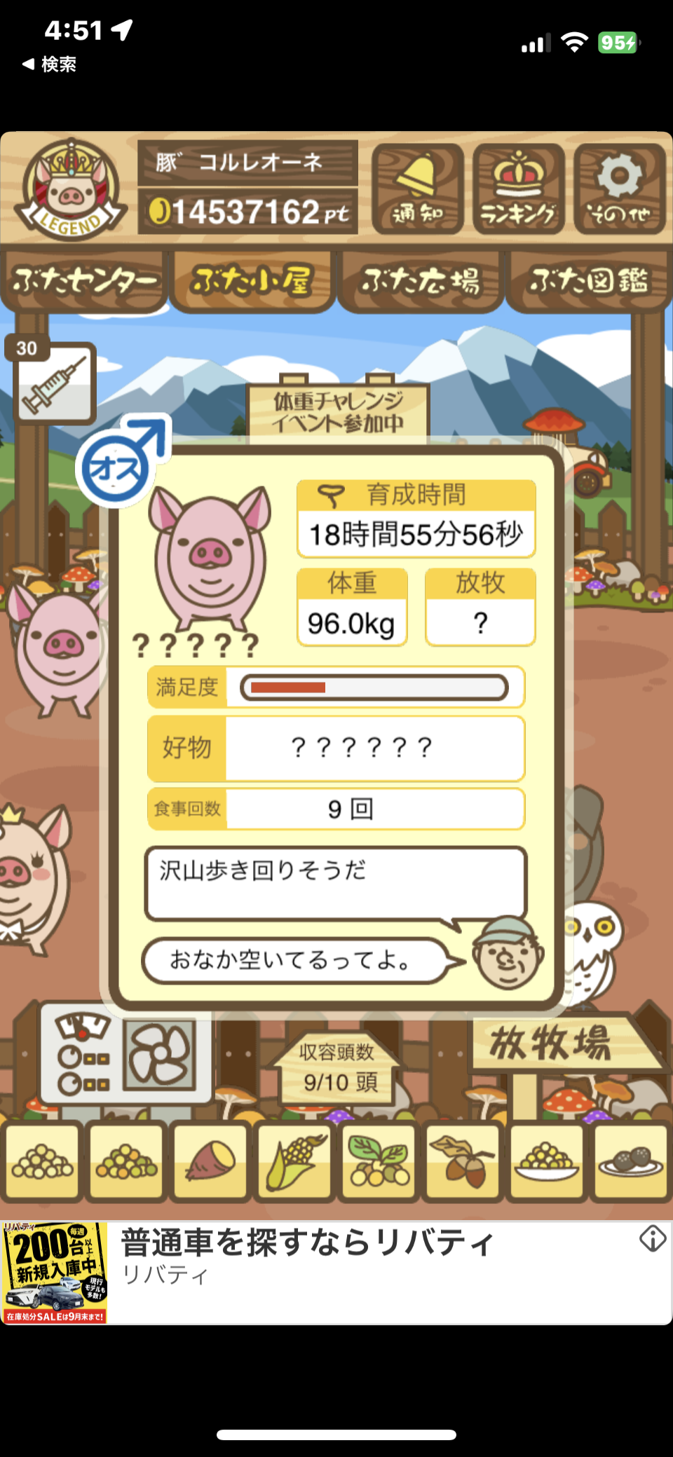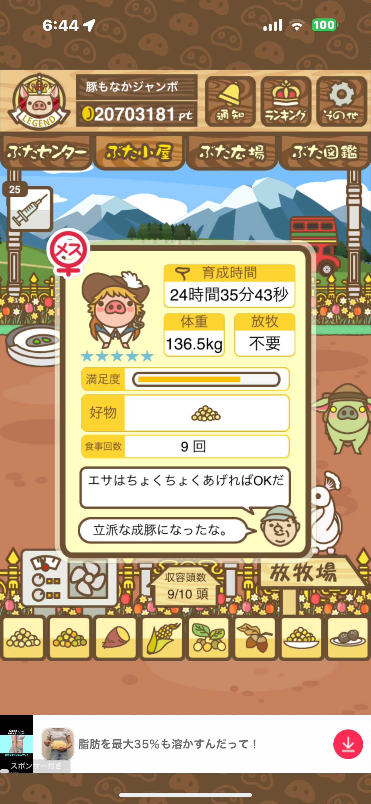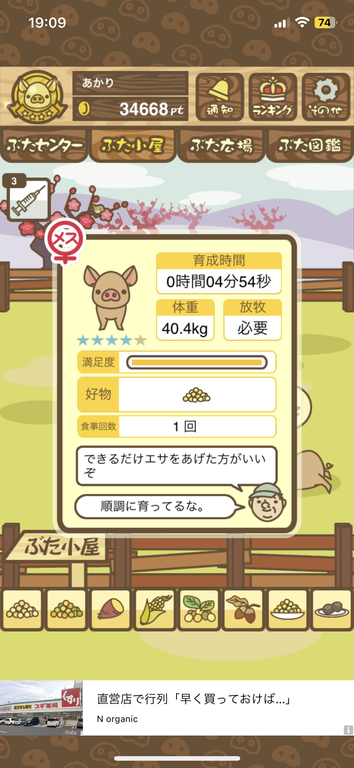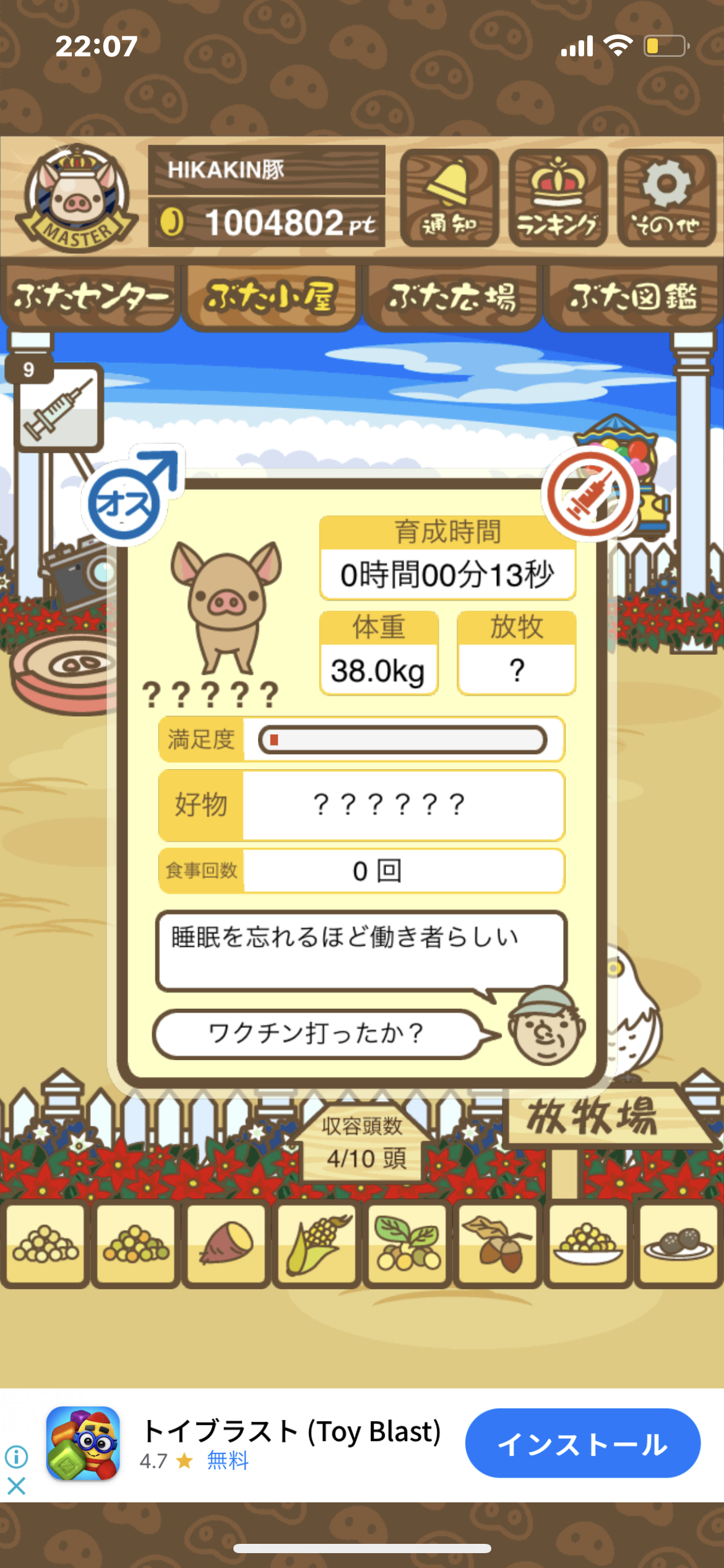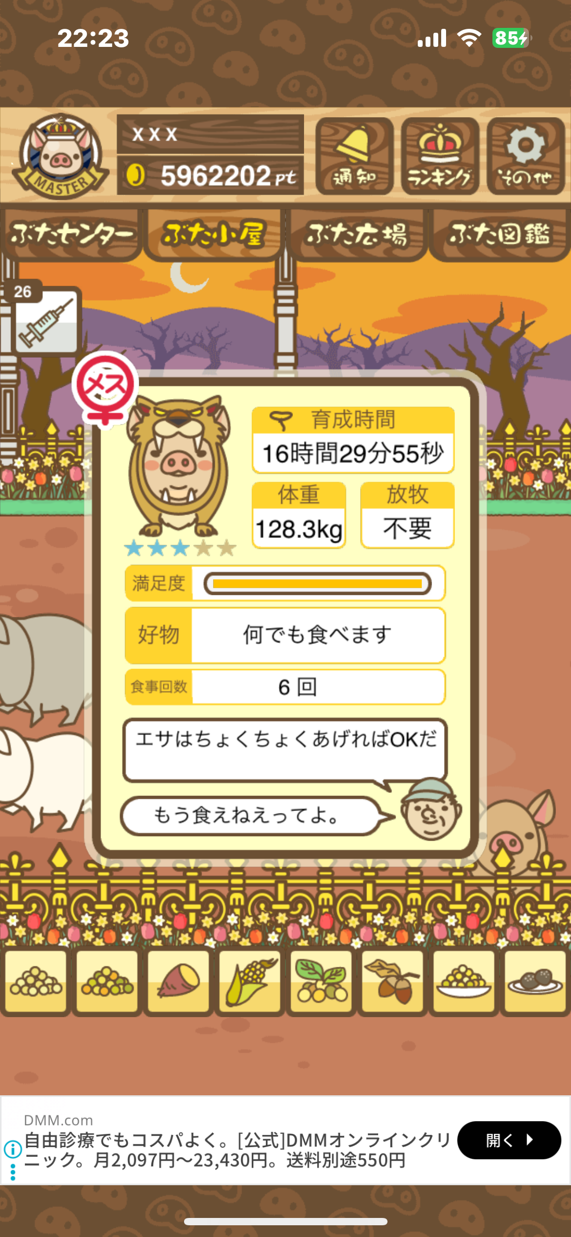 - また、エイブゥ....エサ雑穀16回、エサやりの度に放牧場行き来、16回エサやり後他の豚を放牧場へ....下の成功例の通り育成したつもりですが、何がダメだったんでしょう?掃除豚も排除しないといけないのでしょうか?