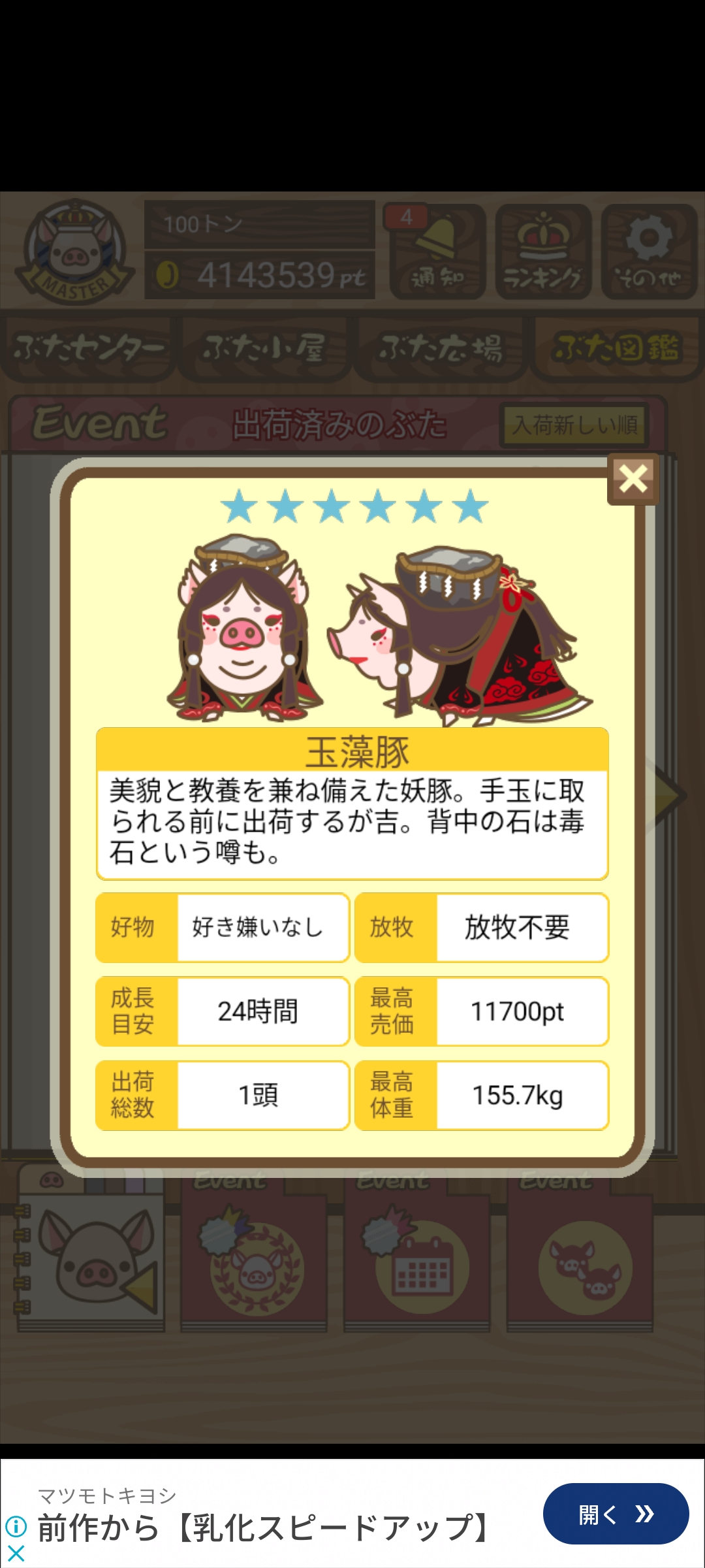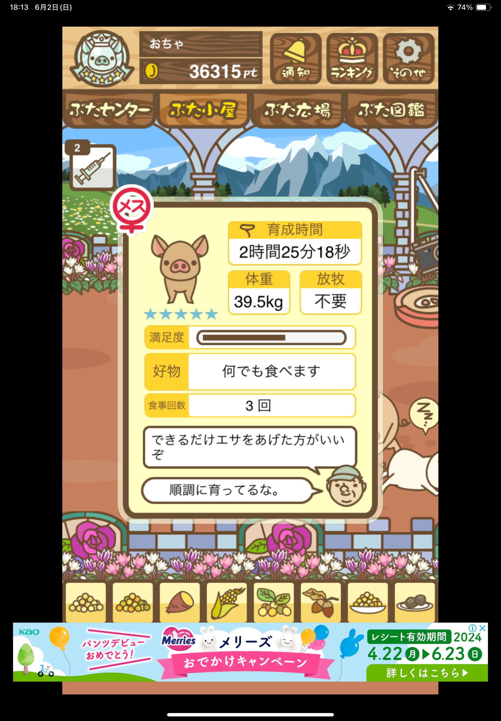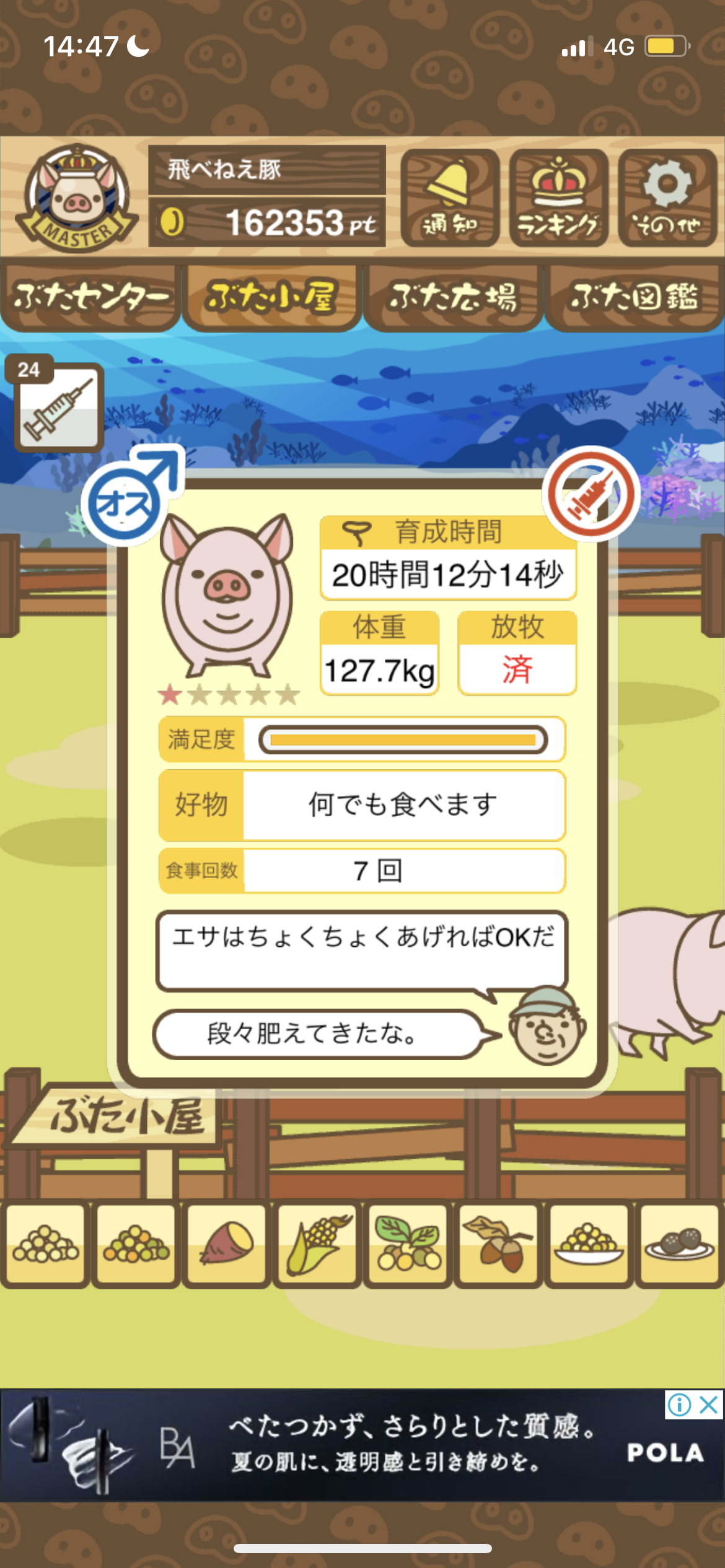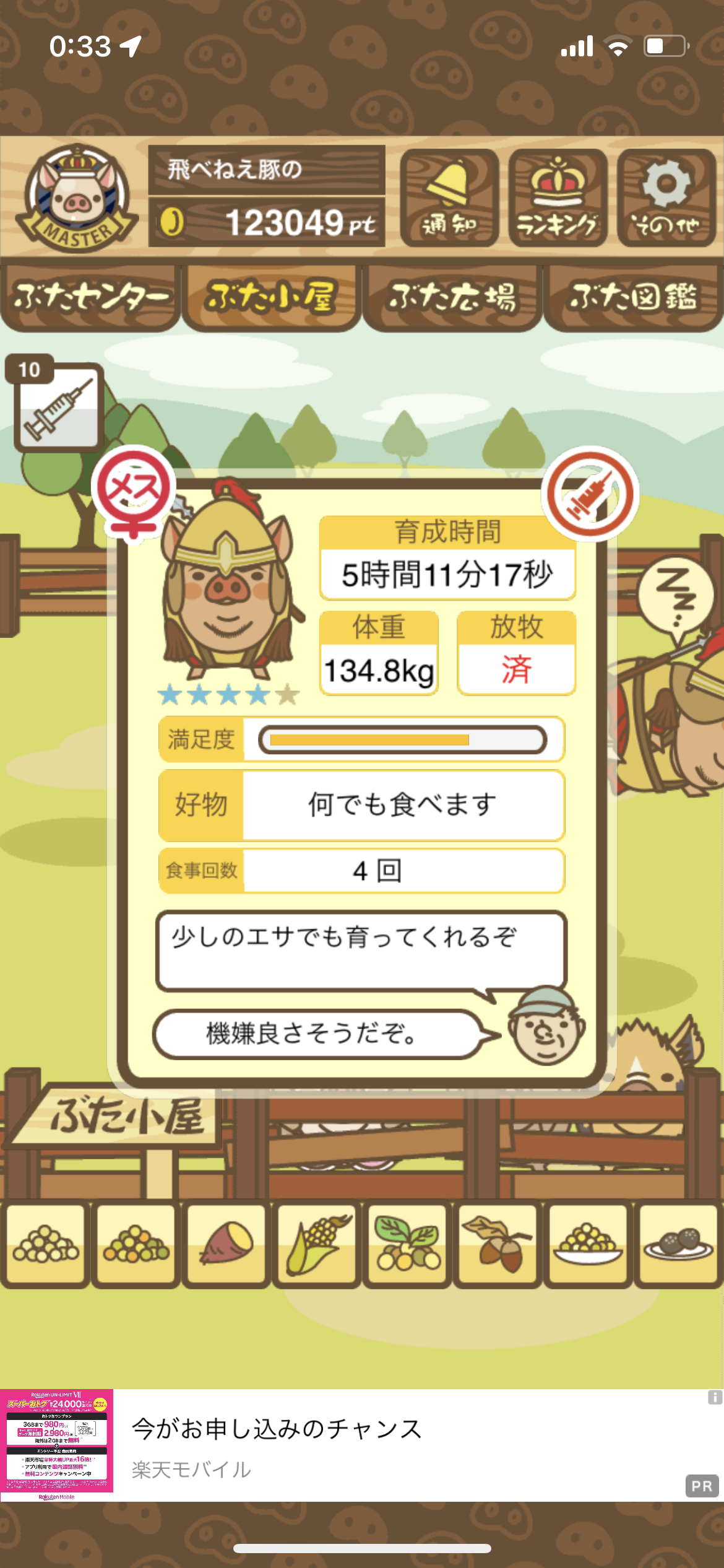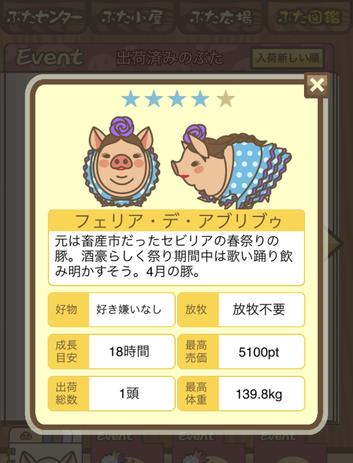- また、エイブゥ....エサ雑穀16回、エサやりの度に放牧場行き来、16回エサやり後他の豚を放牧場へ....下の成功例の通り育成したつもりですが、何がダメだったんでしょう?掃除豚も排除しないといけないのでしょうか?
