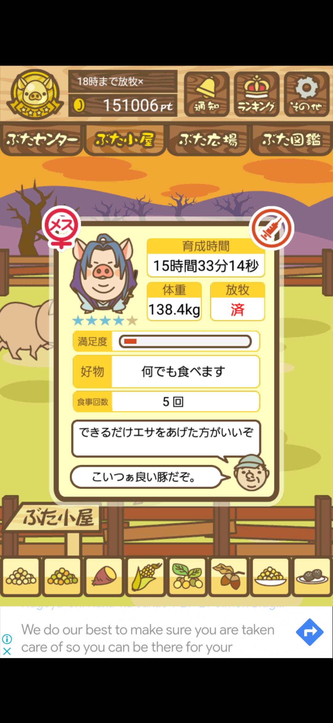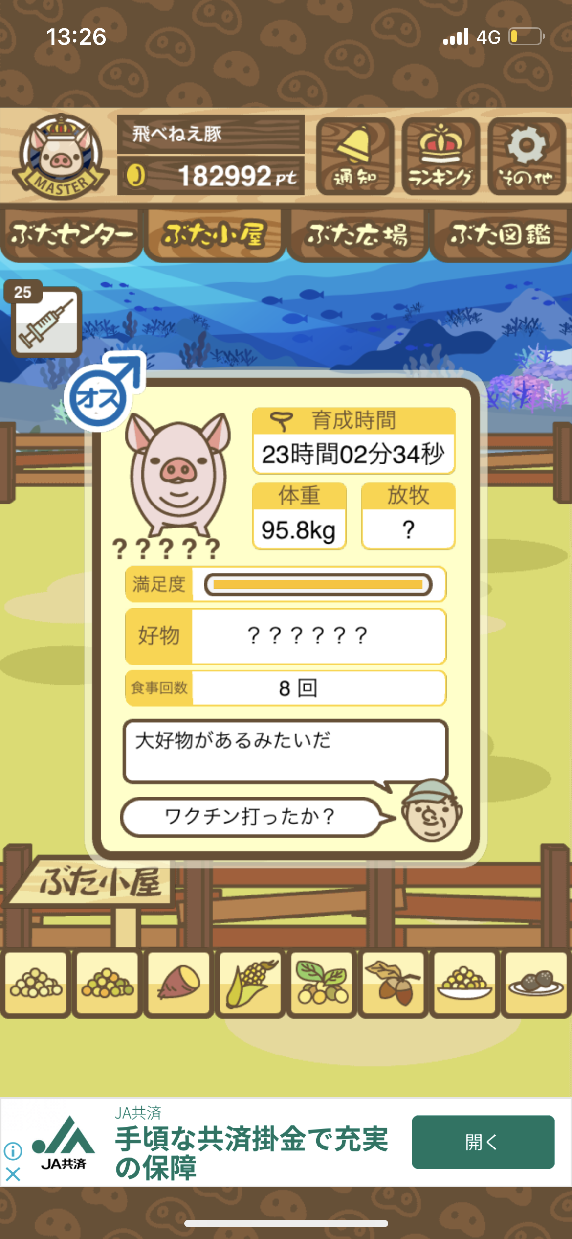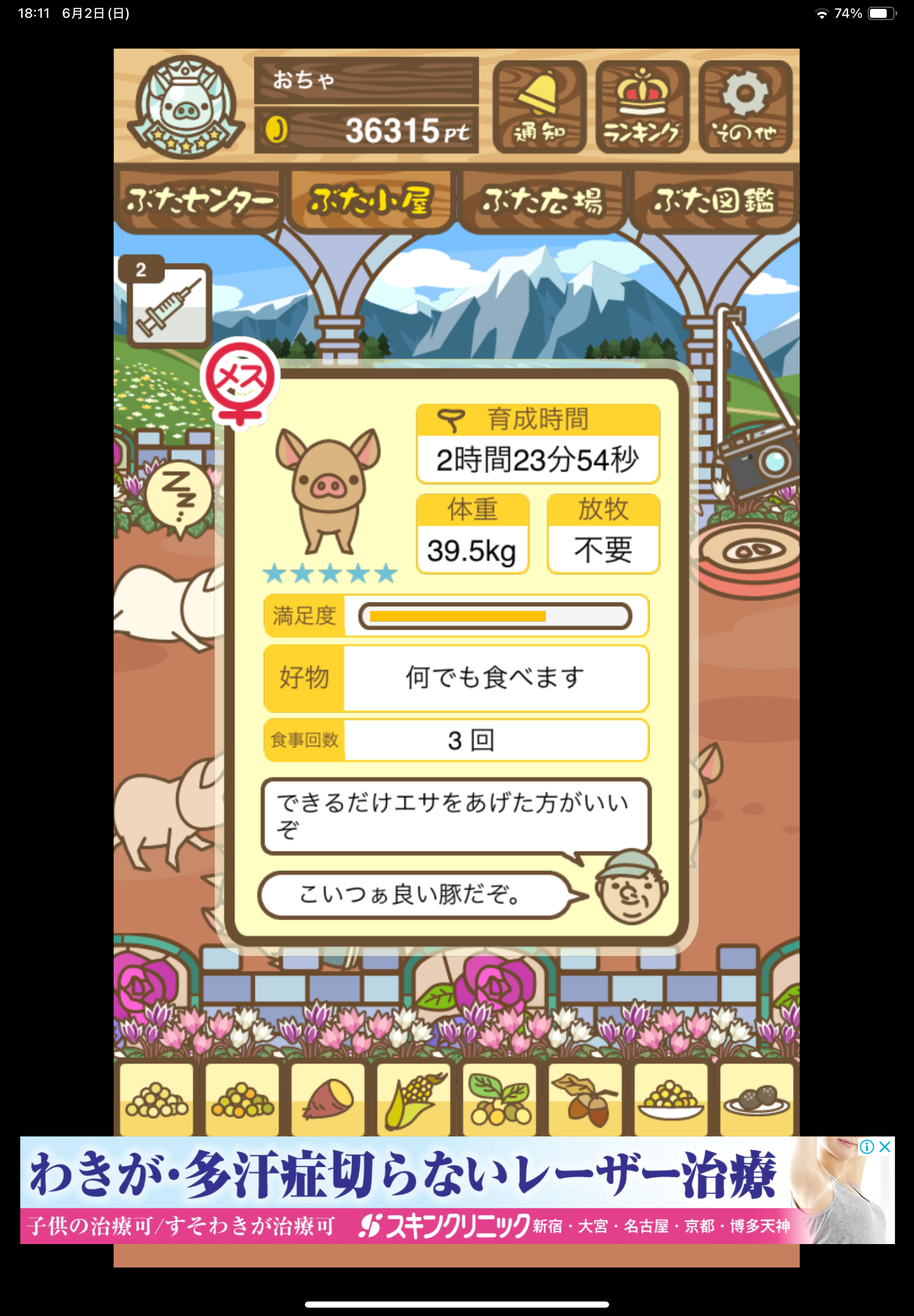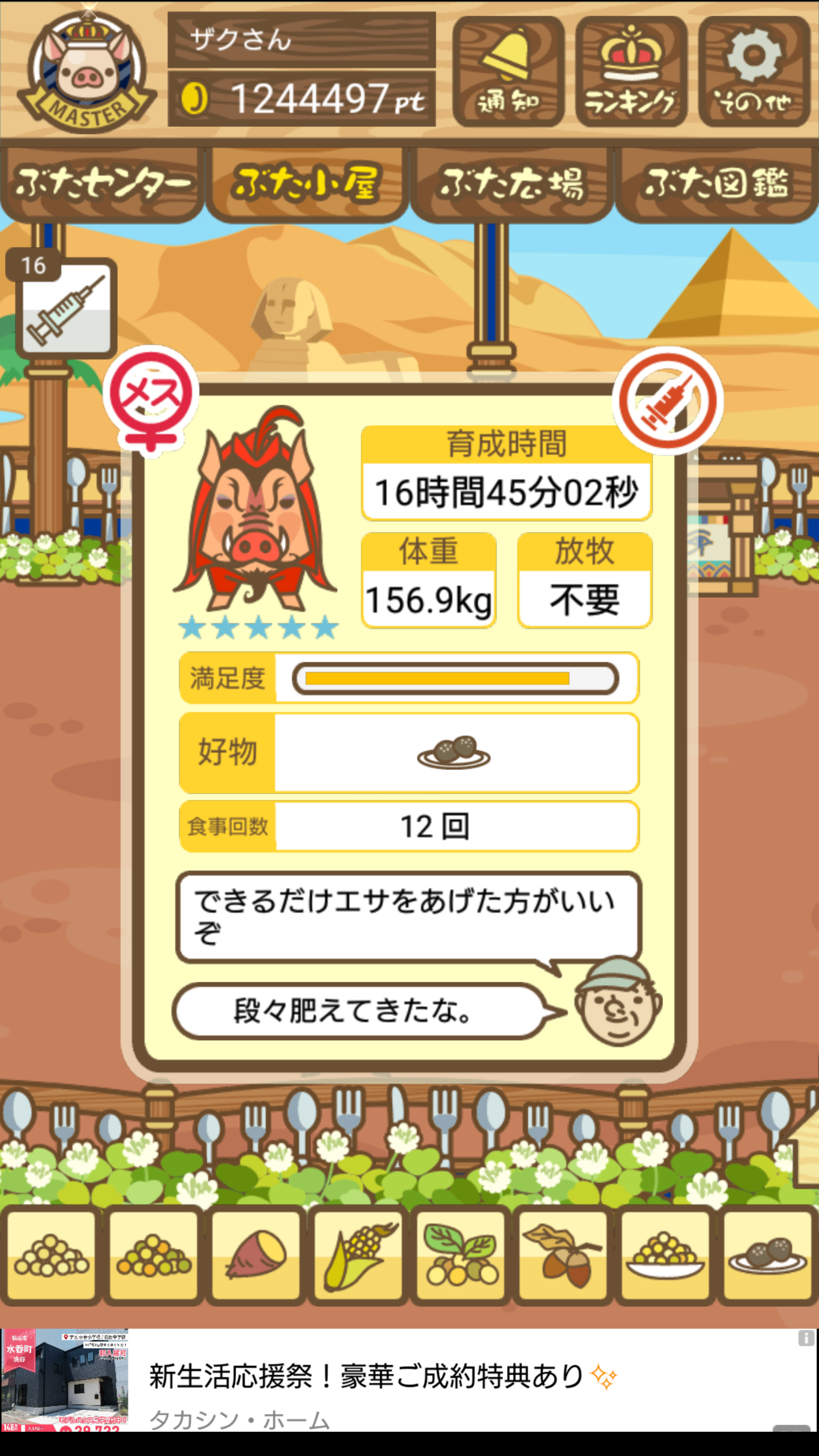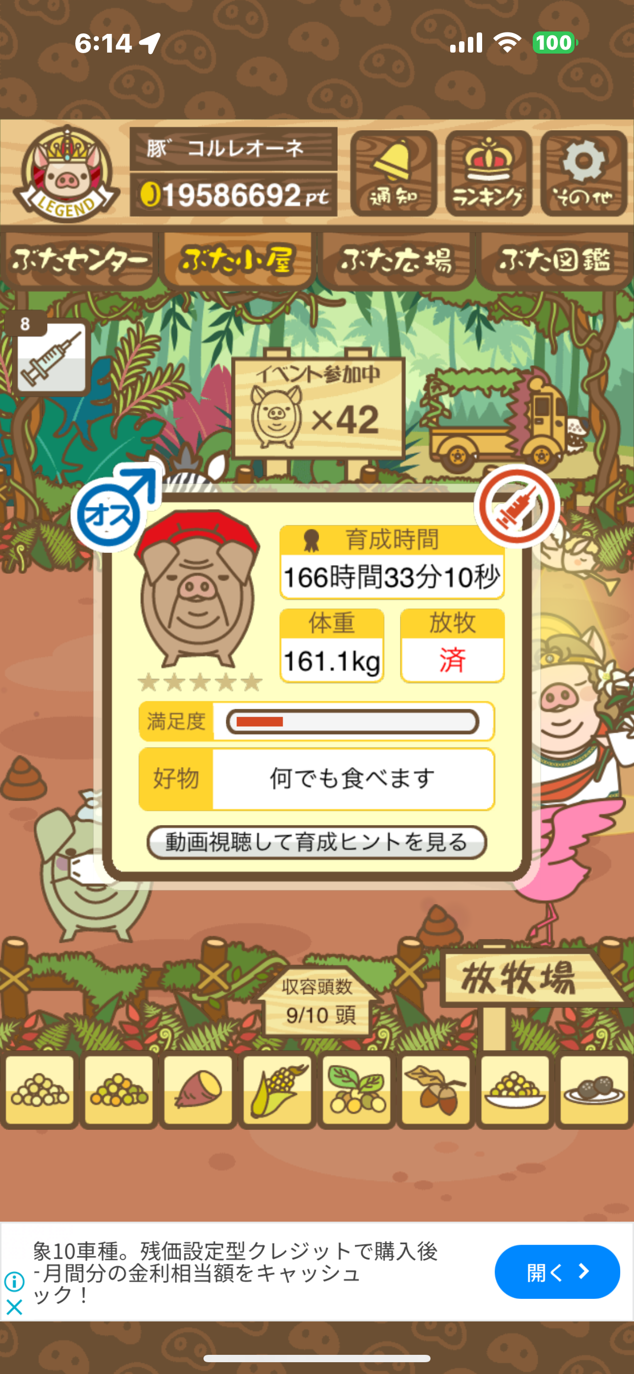 - また、エイブゥ....エサ雑穀16回、エサやりの度に放牧場行き来、16回エサやり後他の豚を放牧場へ....下の成功例の通り育成したつもりですが、何がダメだったんでしょう?掃除豚も排除しないといけないのでしょうか?