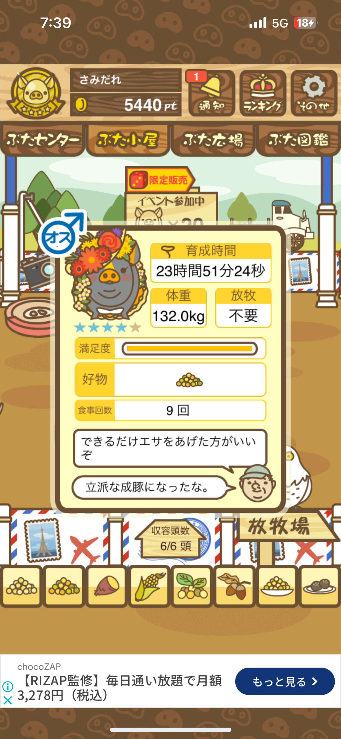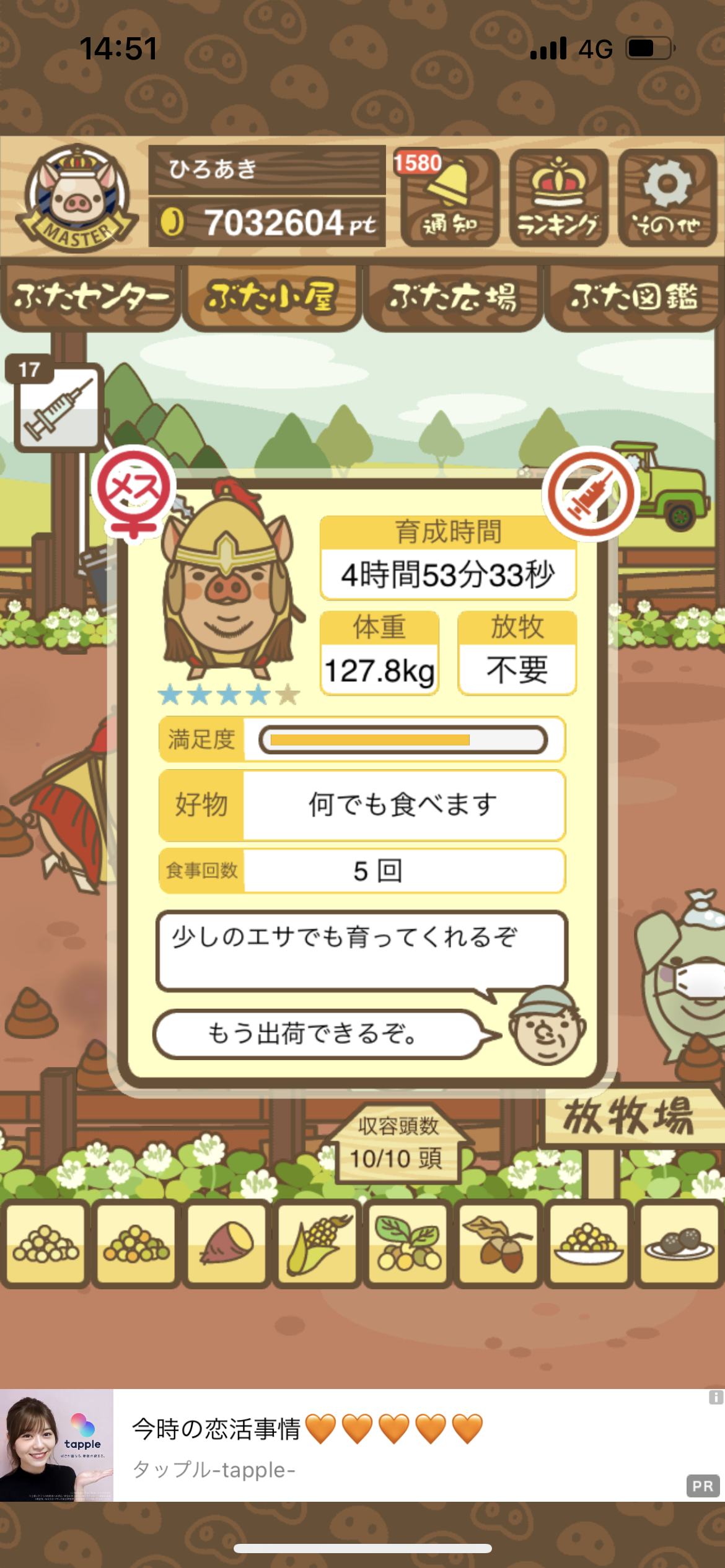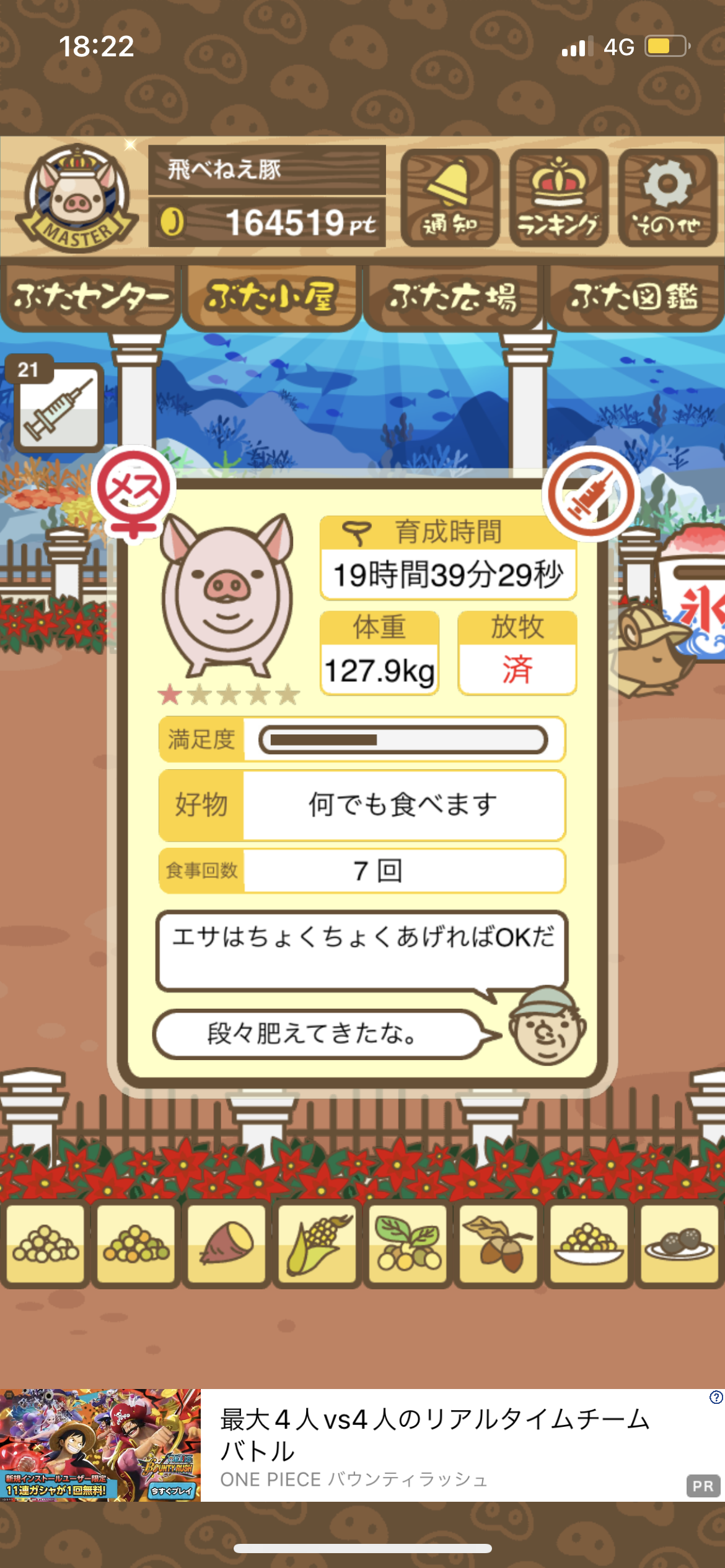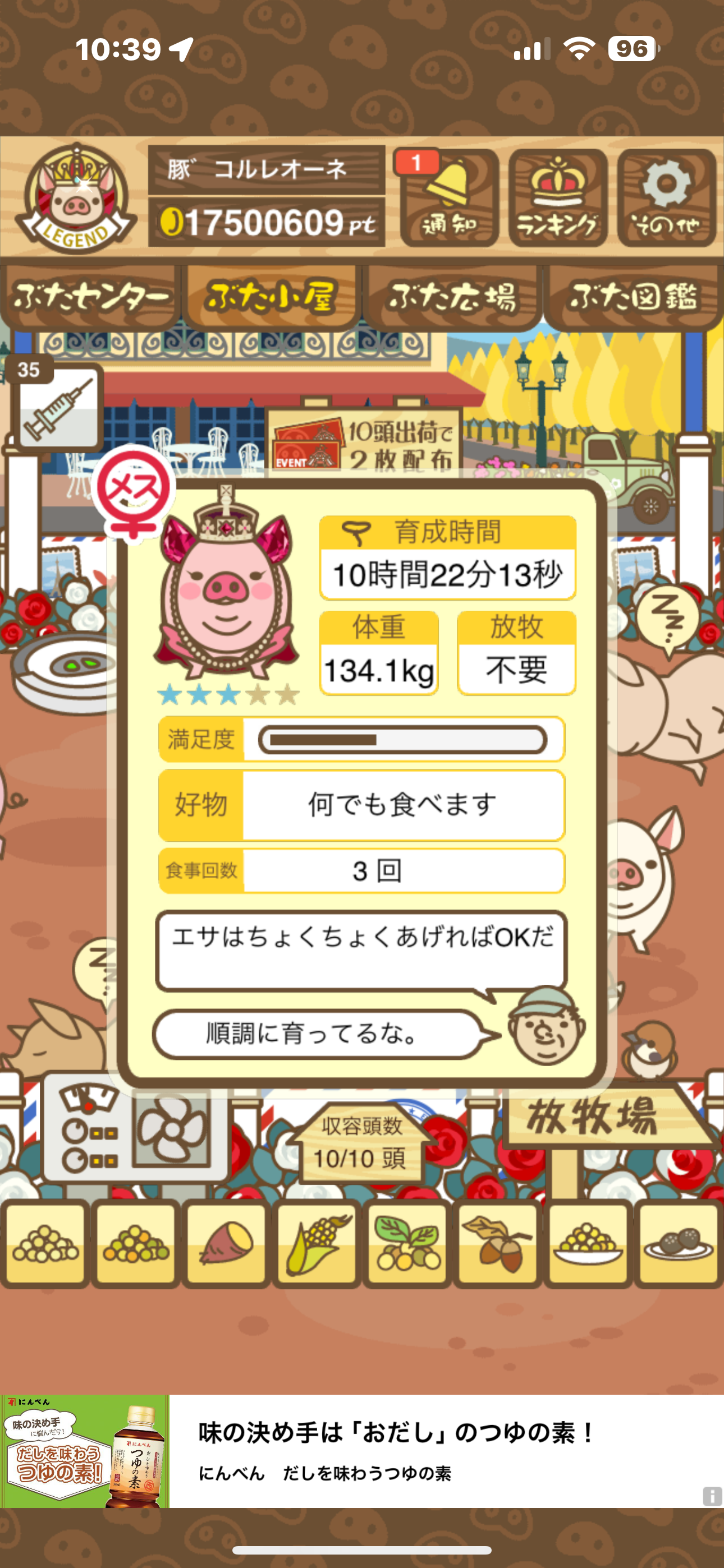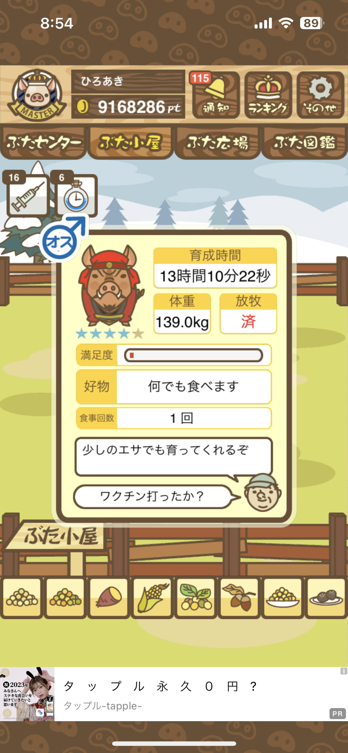 - また、エイブゥ....エサ雑穀16回、エサやりの度に放牧場行き来、16回エサやり後他の豚を放牧場へ....下の成功例の通り育成したつもりですが、何がダメだったんでしょう?掃除豚も排除しないといけないのでしょうか?