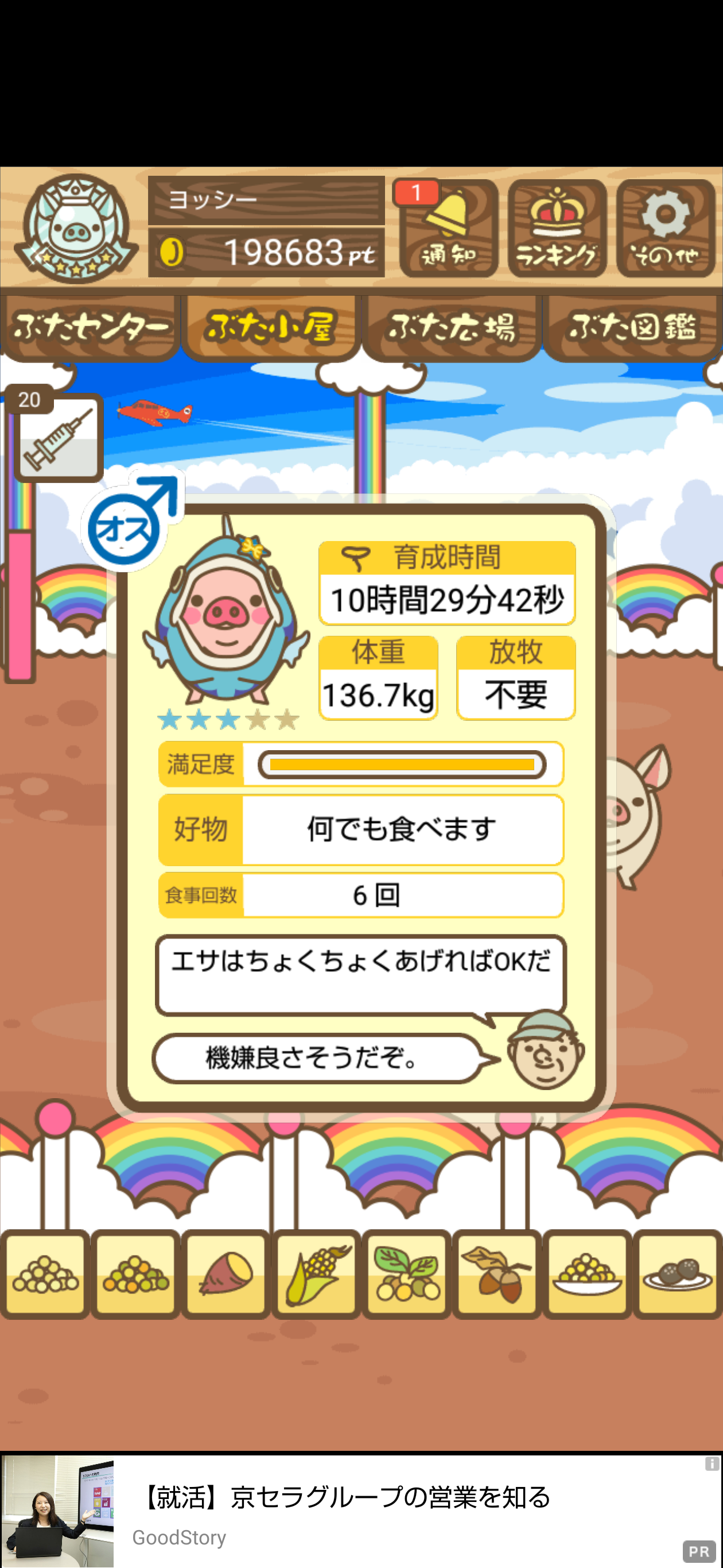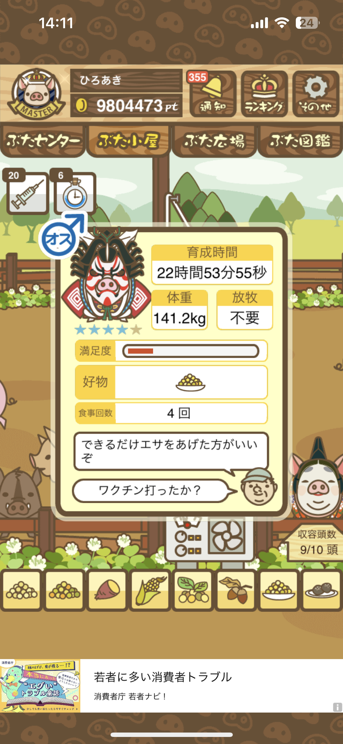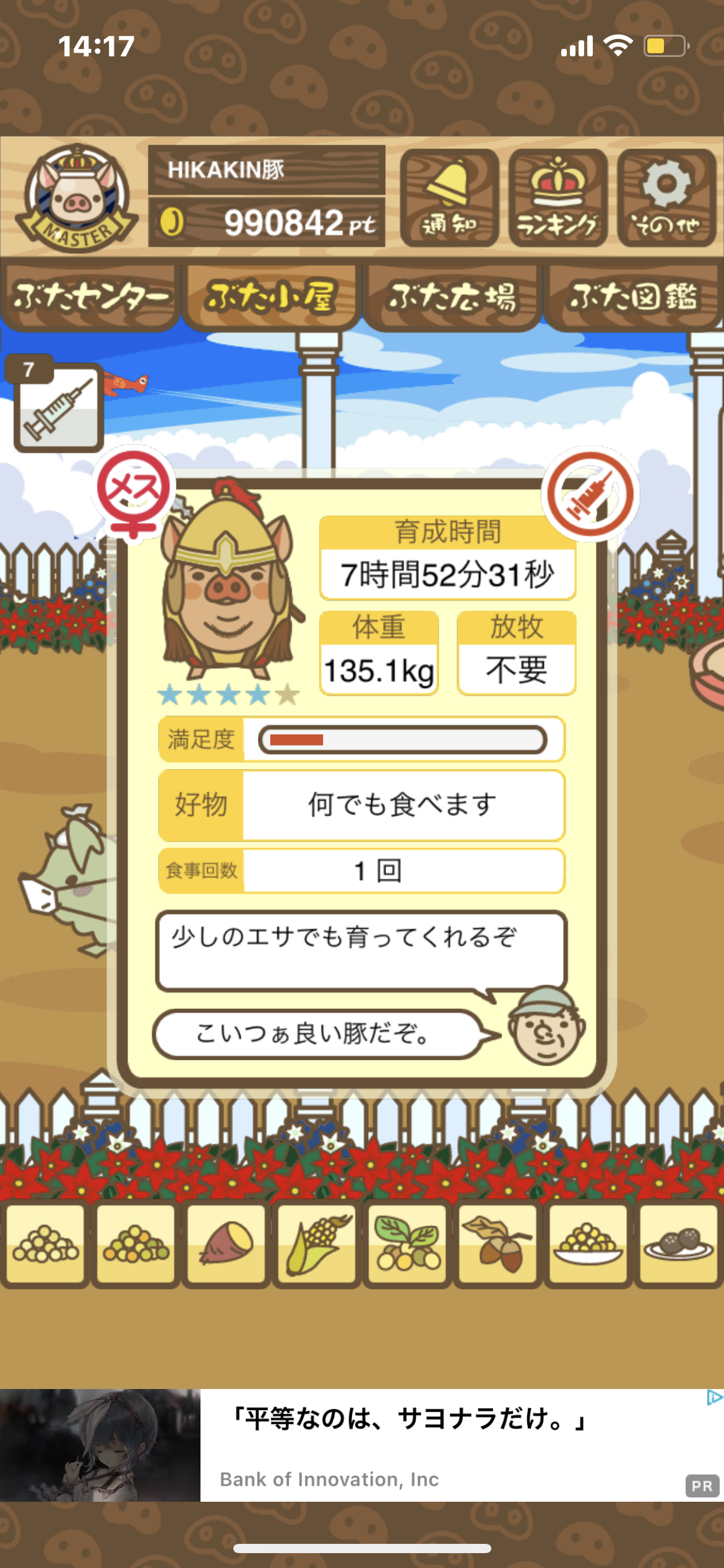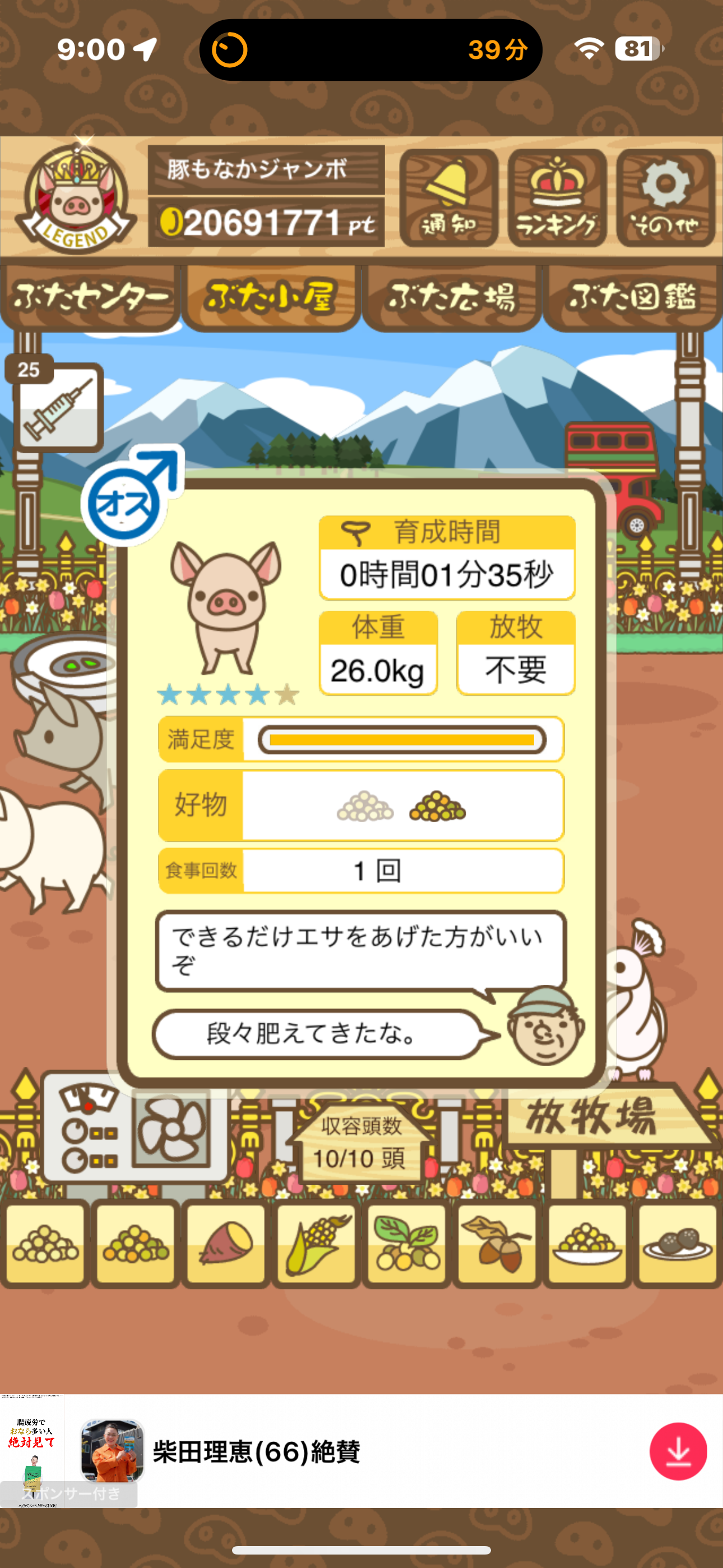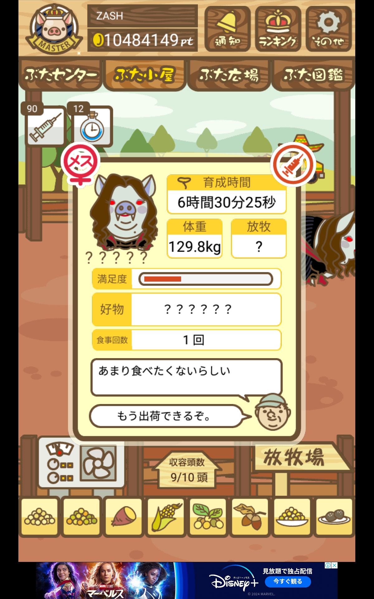 - また、エイブゥ....エサ雑穀16回、エサやりの度に放牧場行き来、16回エサやり後他の豚を放牧場へ....下の成功例の通り育成したつもりですが、何がダメだったんでしょう?掃除豚も排除しないといけないのでしょうか?