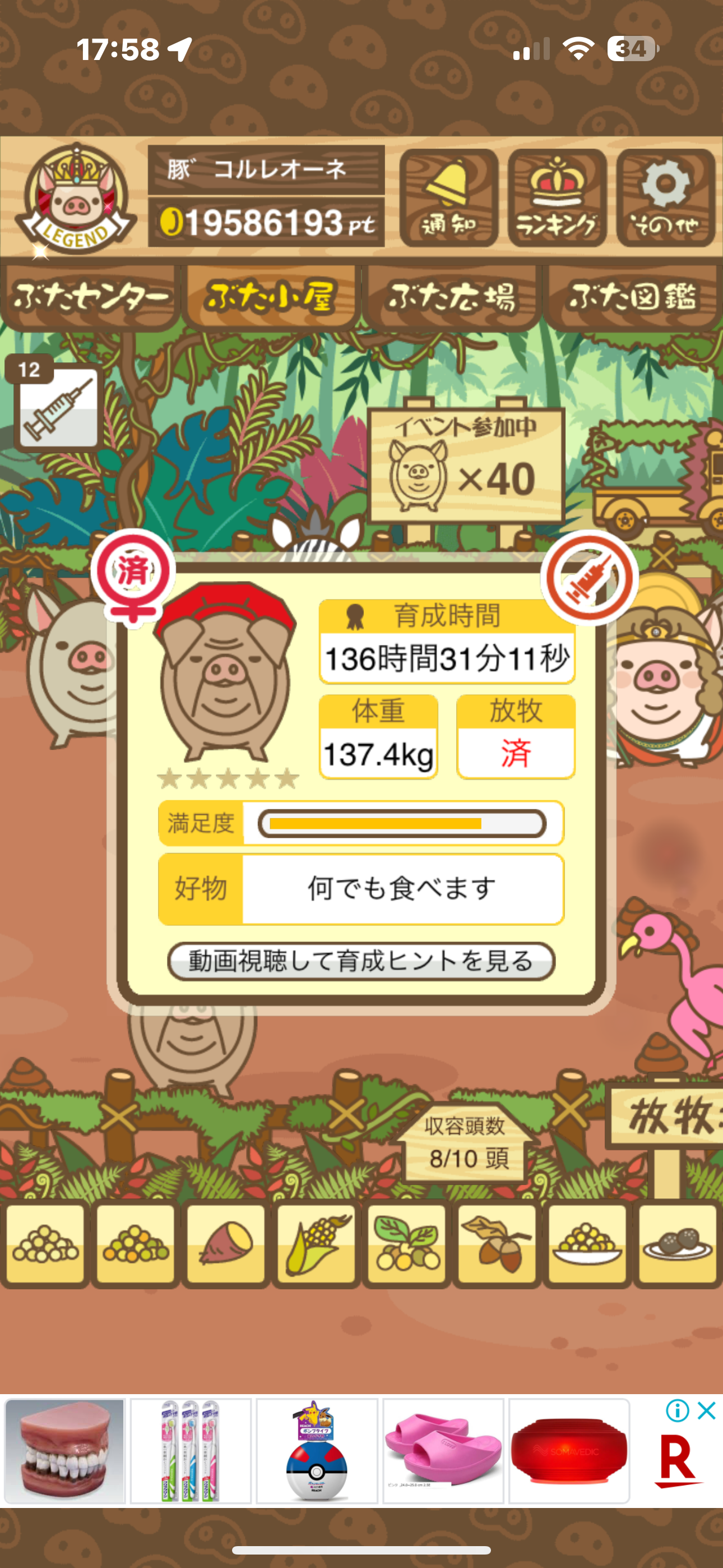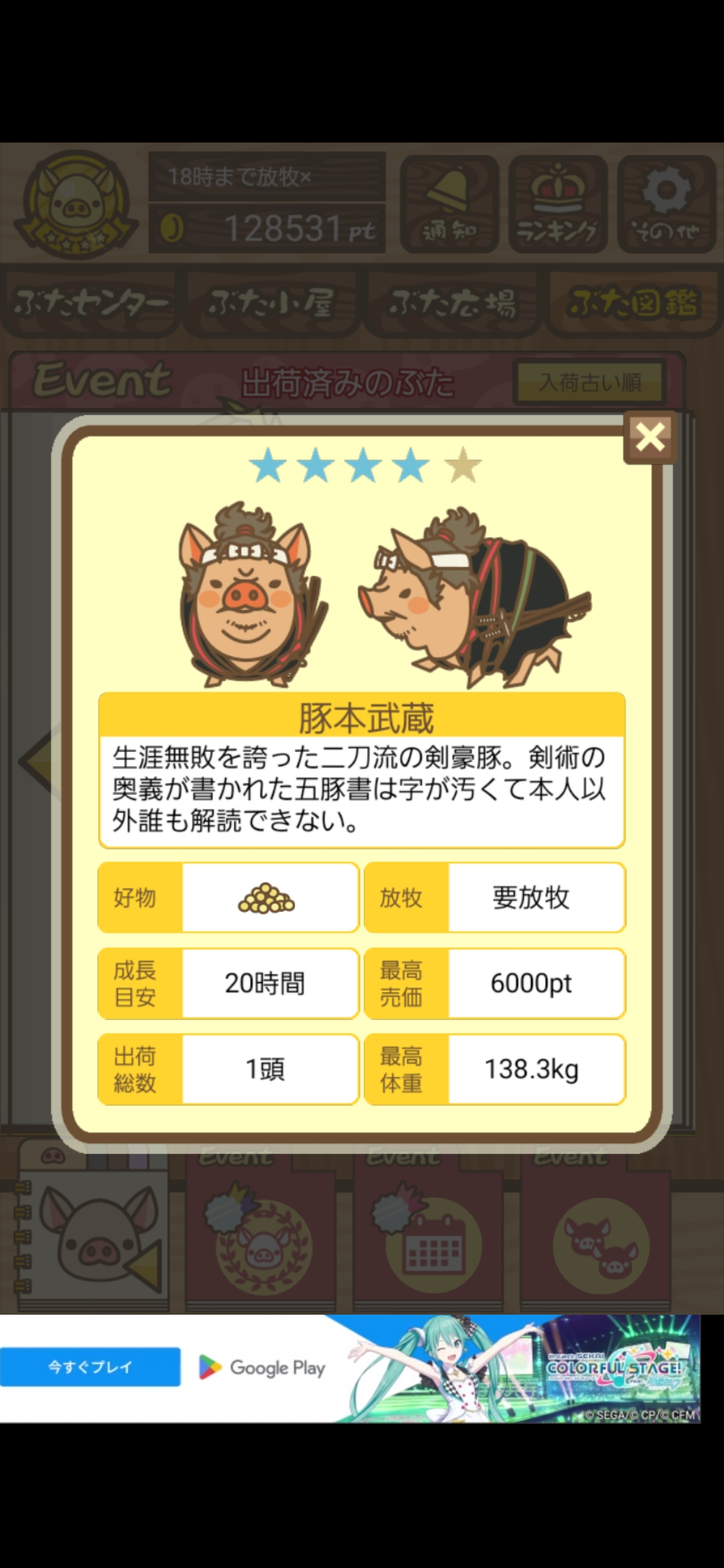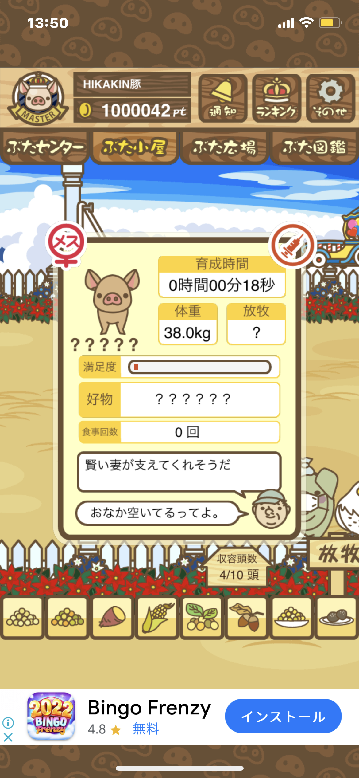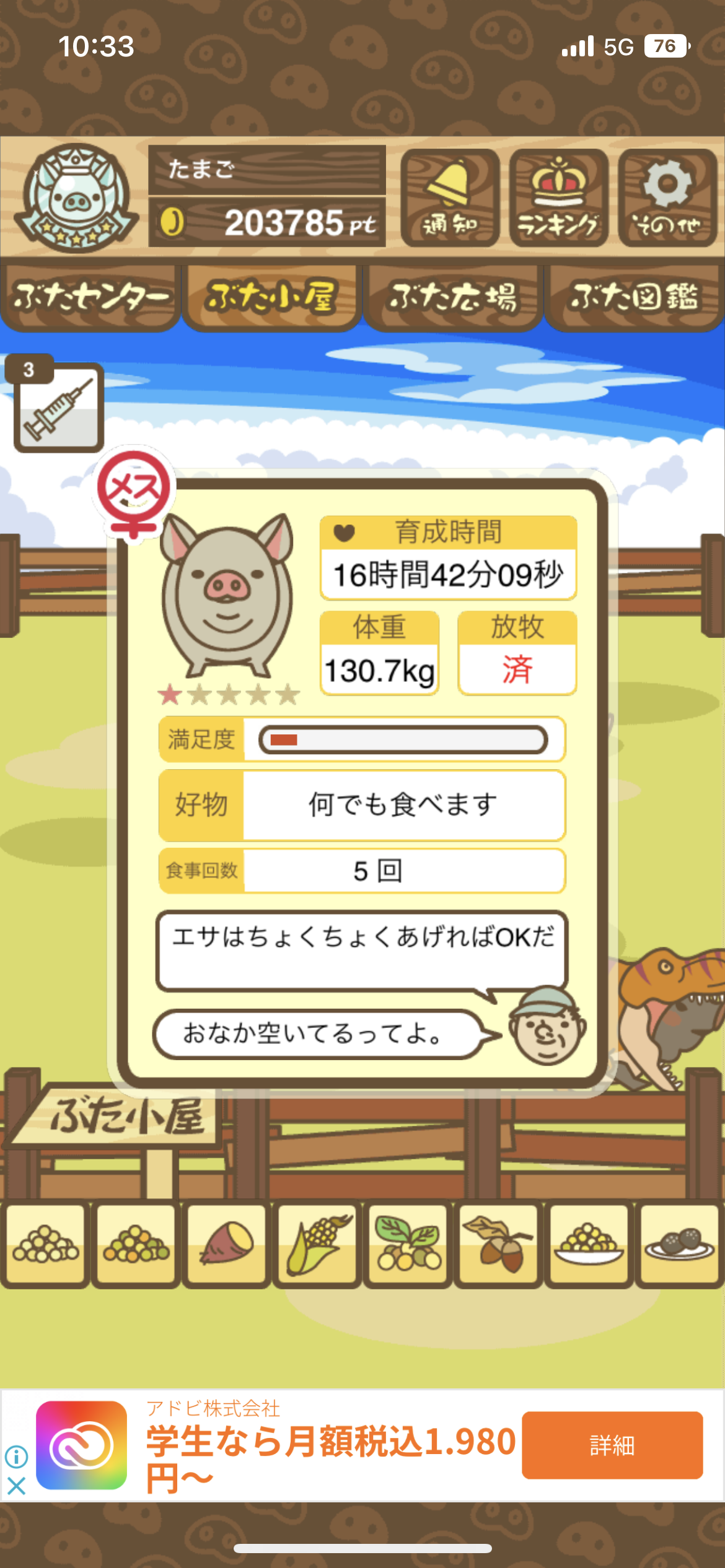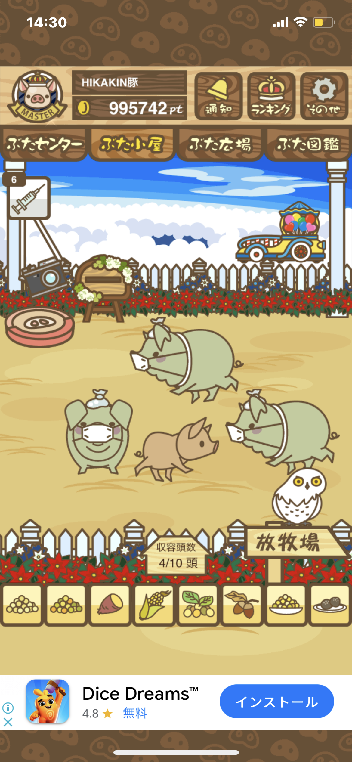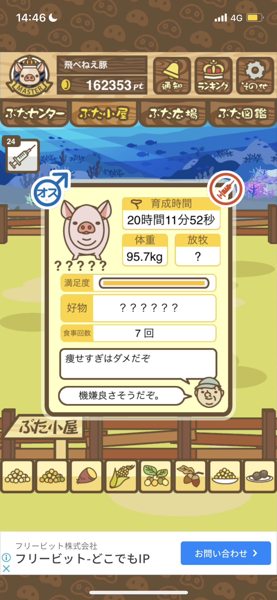 - また、エイブゥ....エサ雑穀16回、エサやりの度に放牧場行き来、16回エサやり後他の豚を放牧場へ....下の成功例の通り育成したつもりですが、何がダメだったんでしょう?掃除豚も排除しないといけないのでしょうか?