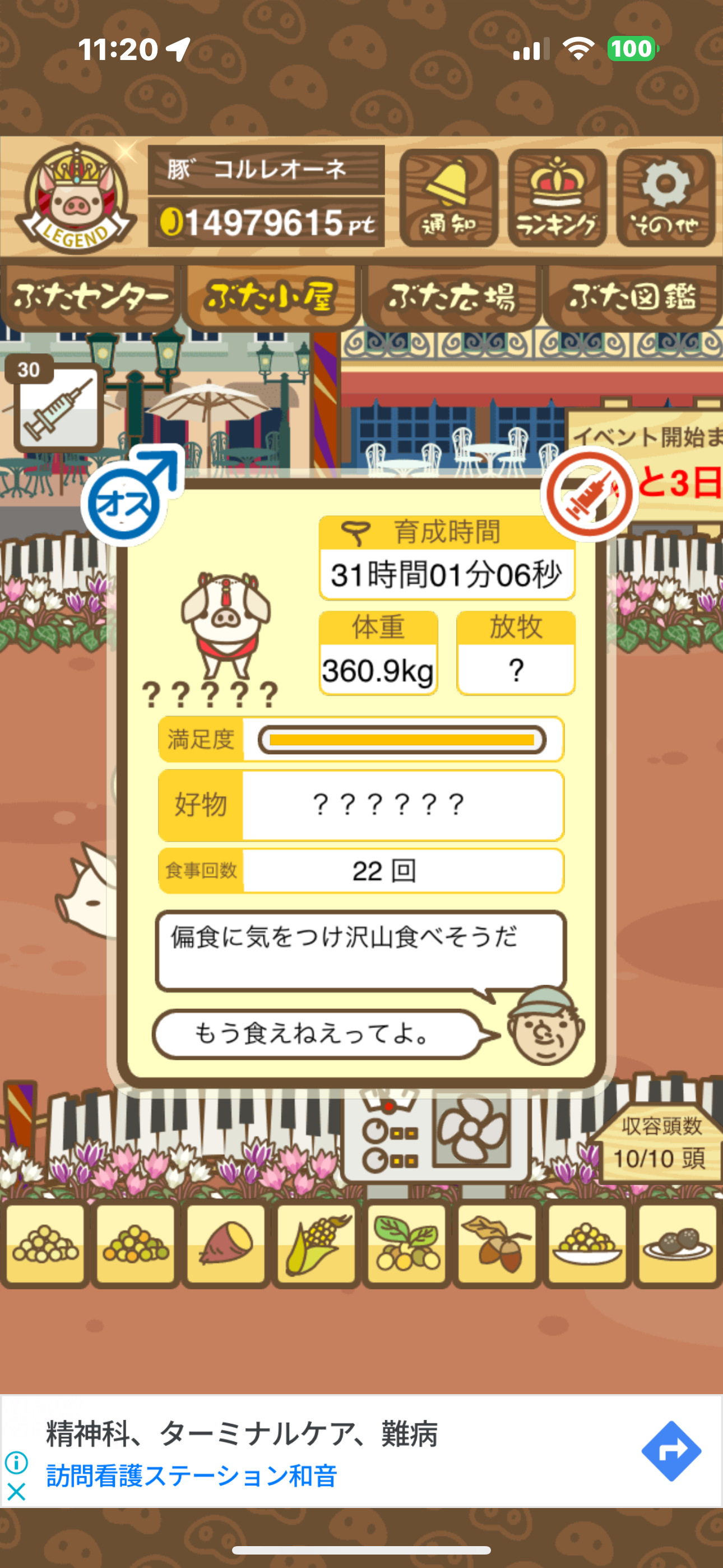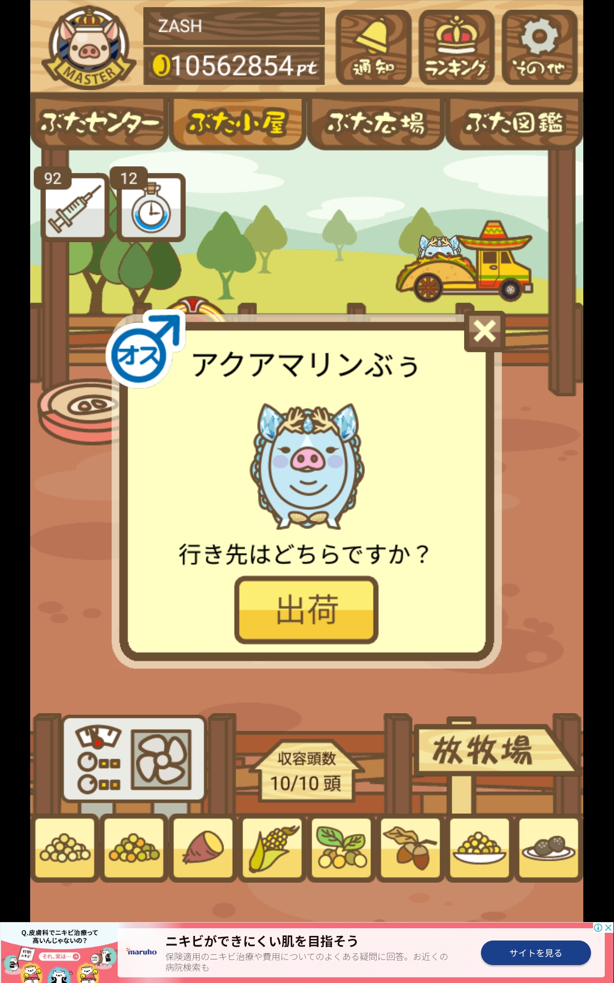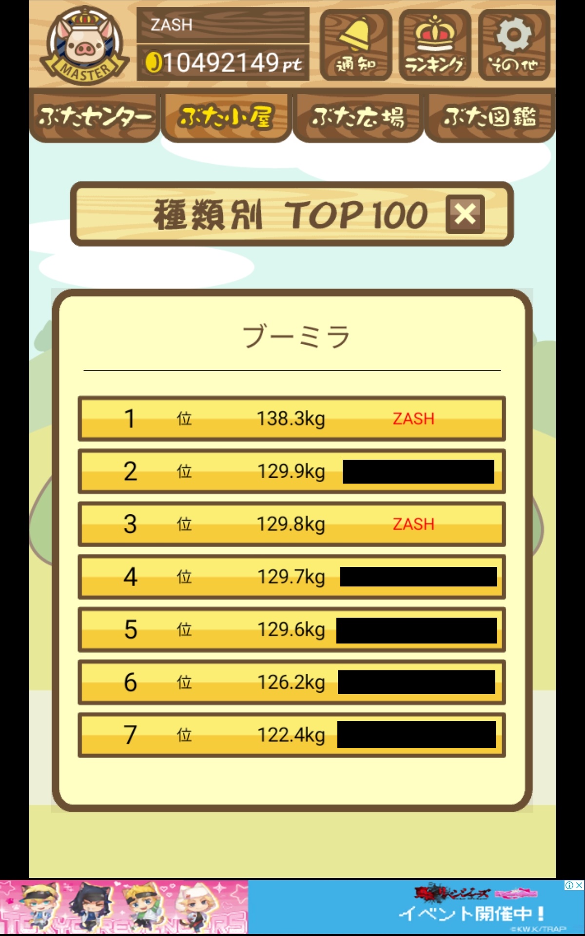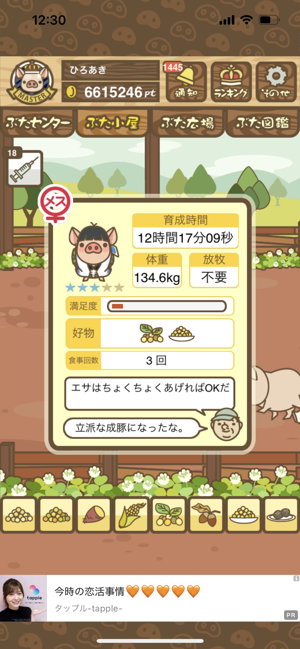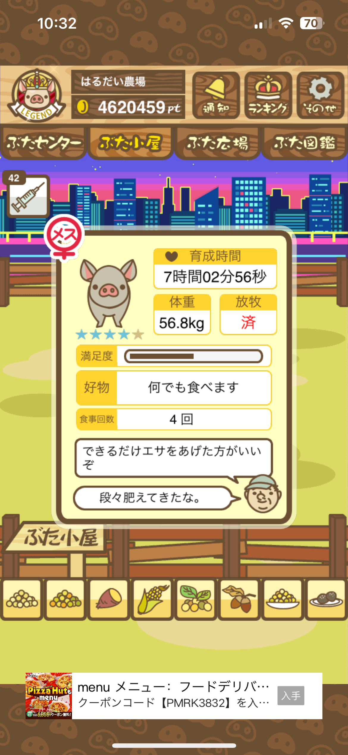 - また、エイブゥ....エサ雑穀16回、エサやりの度に放牧場行き来、16回エサやり後他の豚を放牧場へ....下の成功例の通り育成したつもりですが、何がダメだったんでしょう?掃除豚も排除しないといけないのでしょうか?