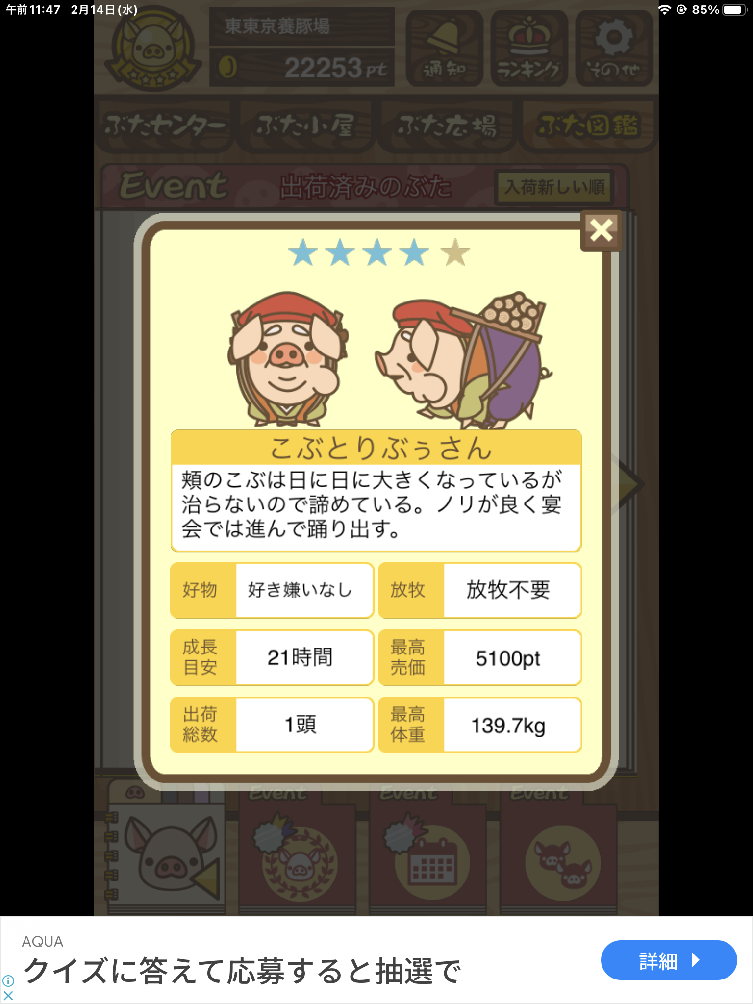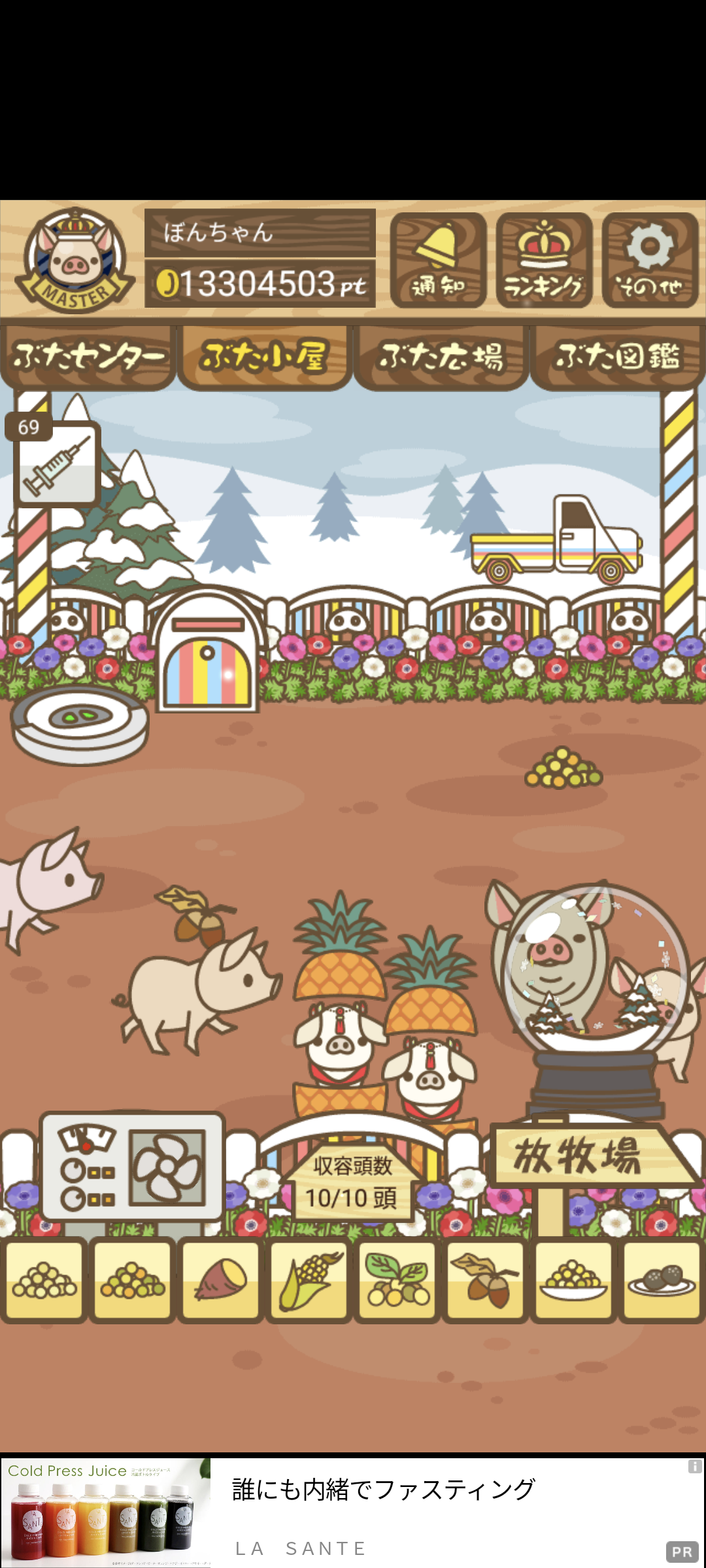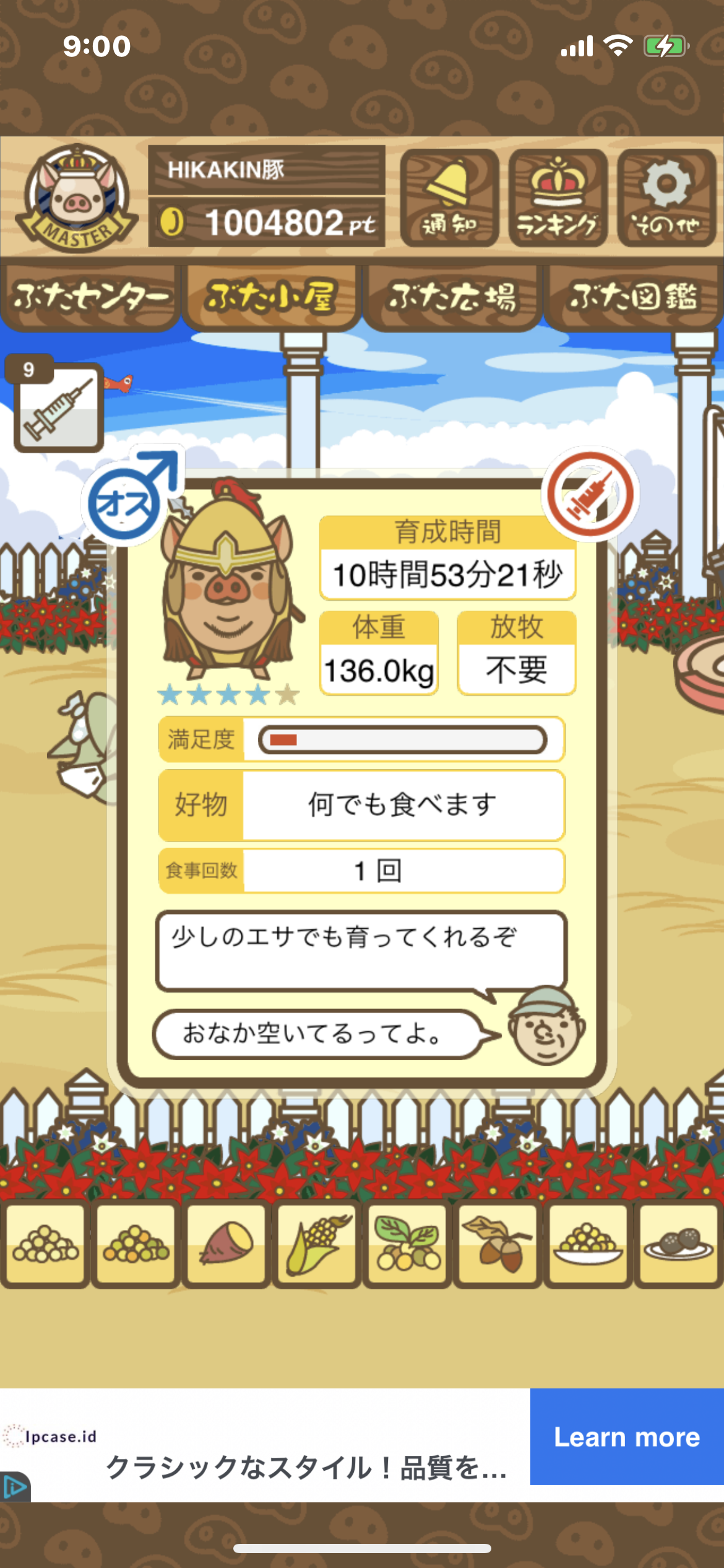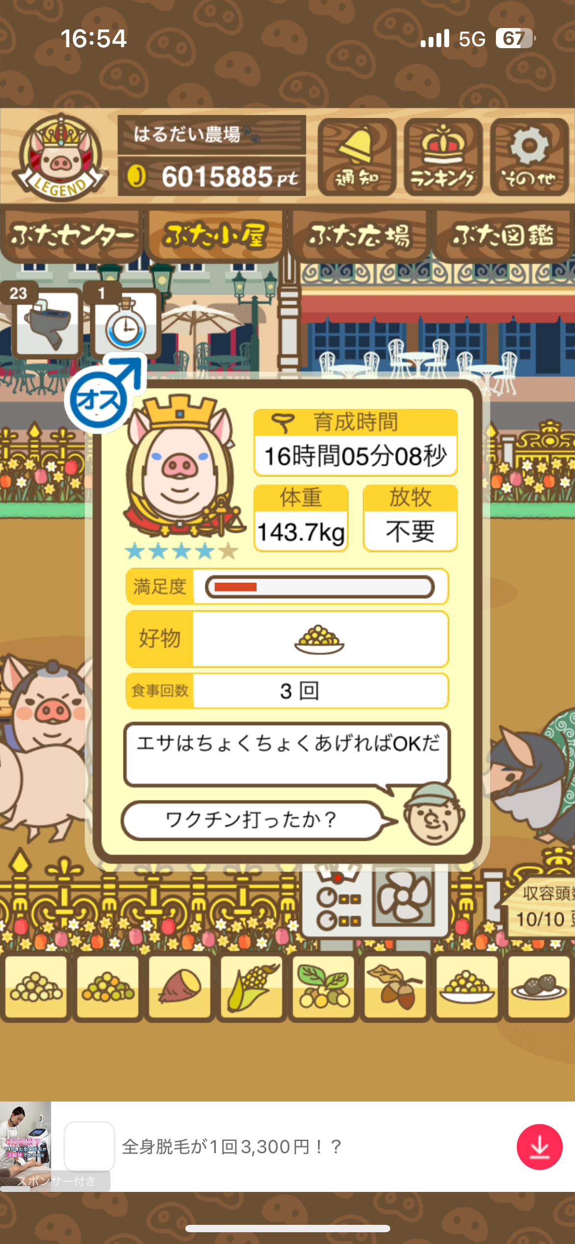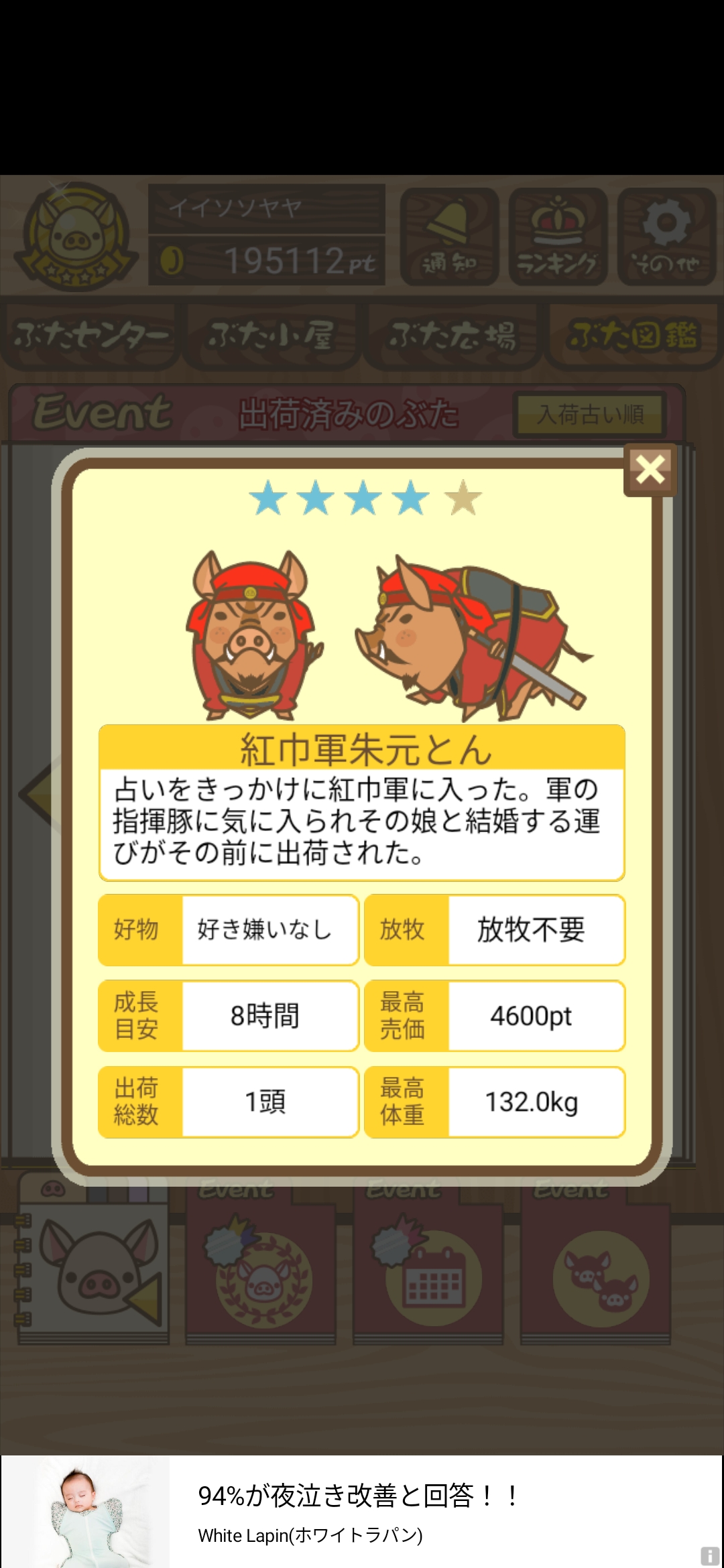 - また、エイブゥ....エサ雑穀16回、エサやりの度に放牧場行き来、16回エサやり後他の豚を放牧場へ....下の成功例の通り育成したつもりですが、何がダメだったんでしょう?掃除豚も排除しないといけないのでしょうか?