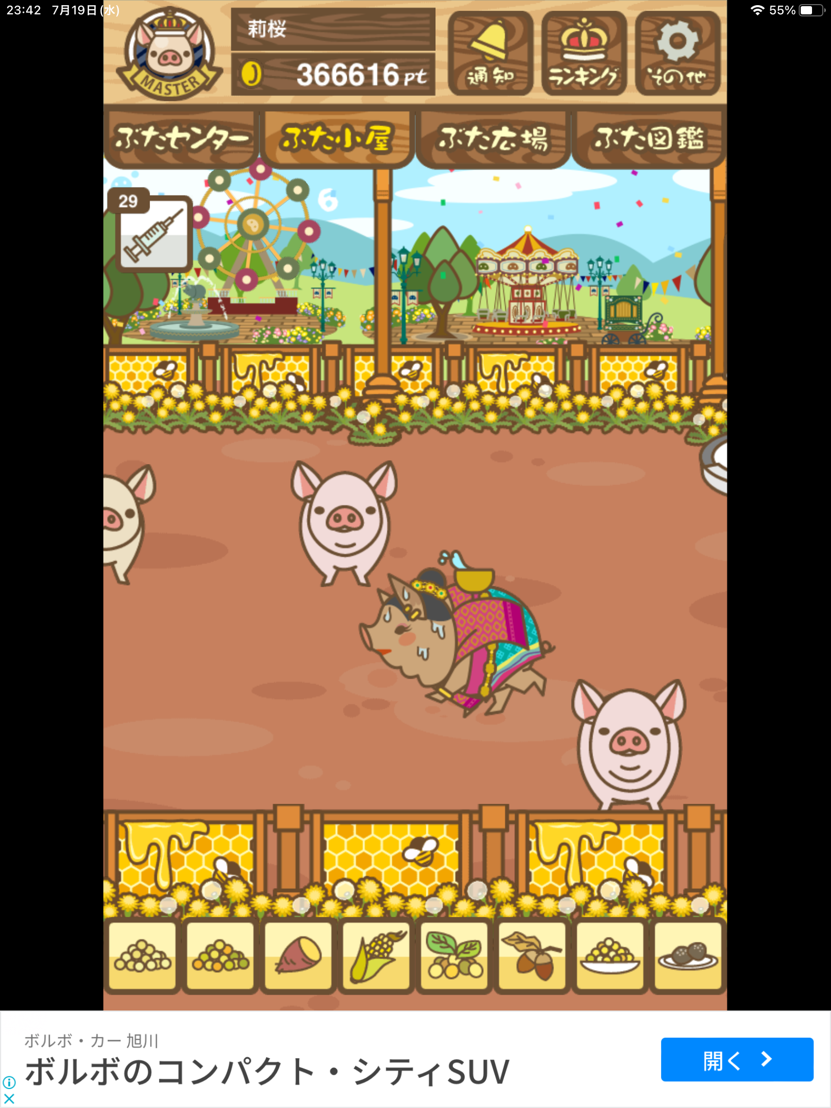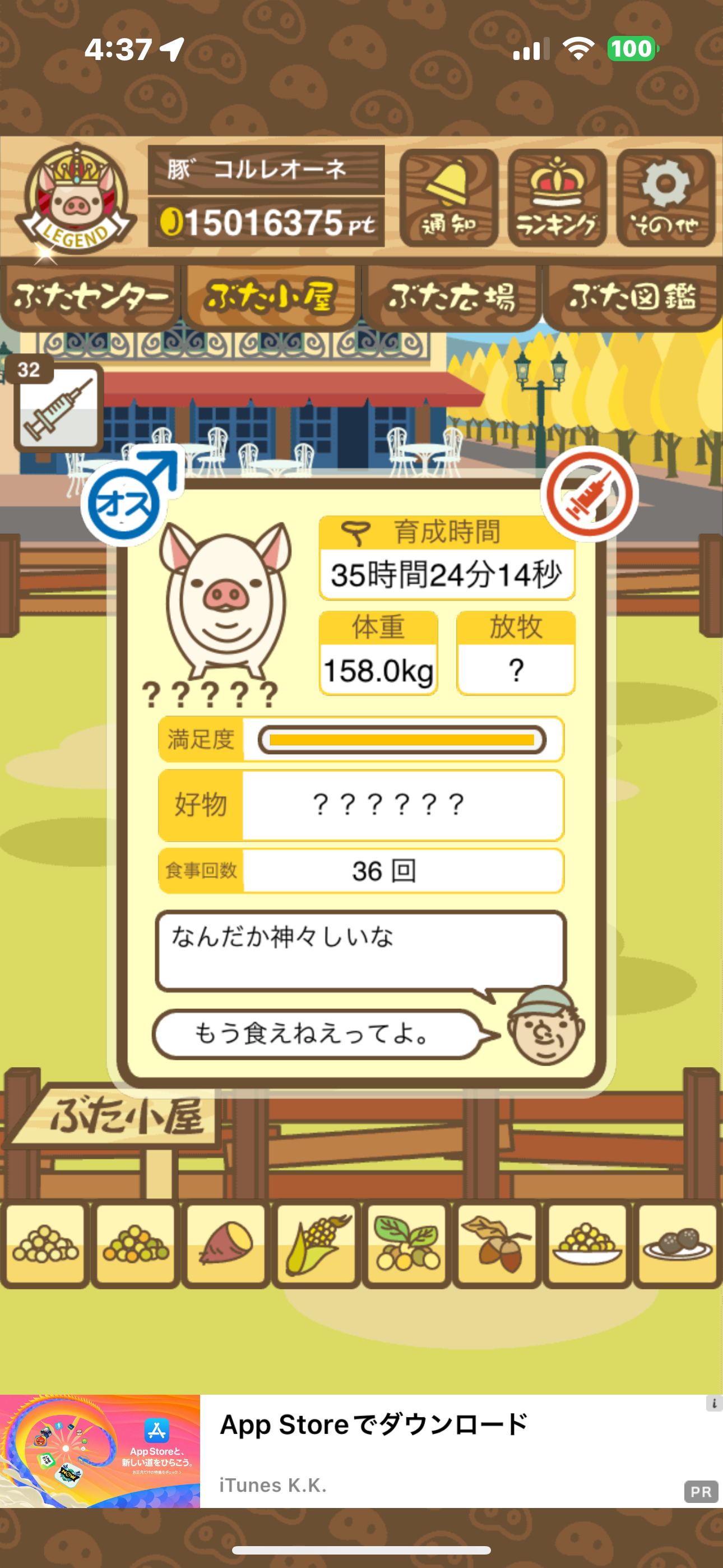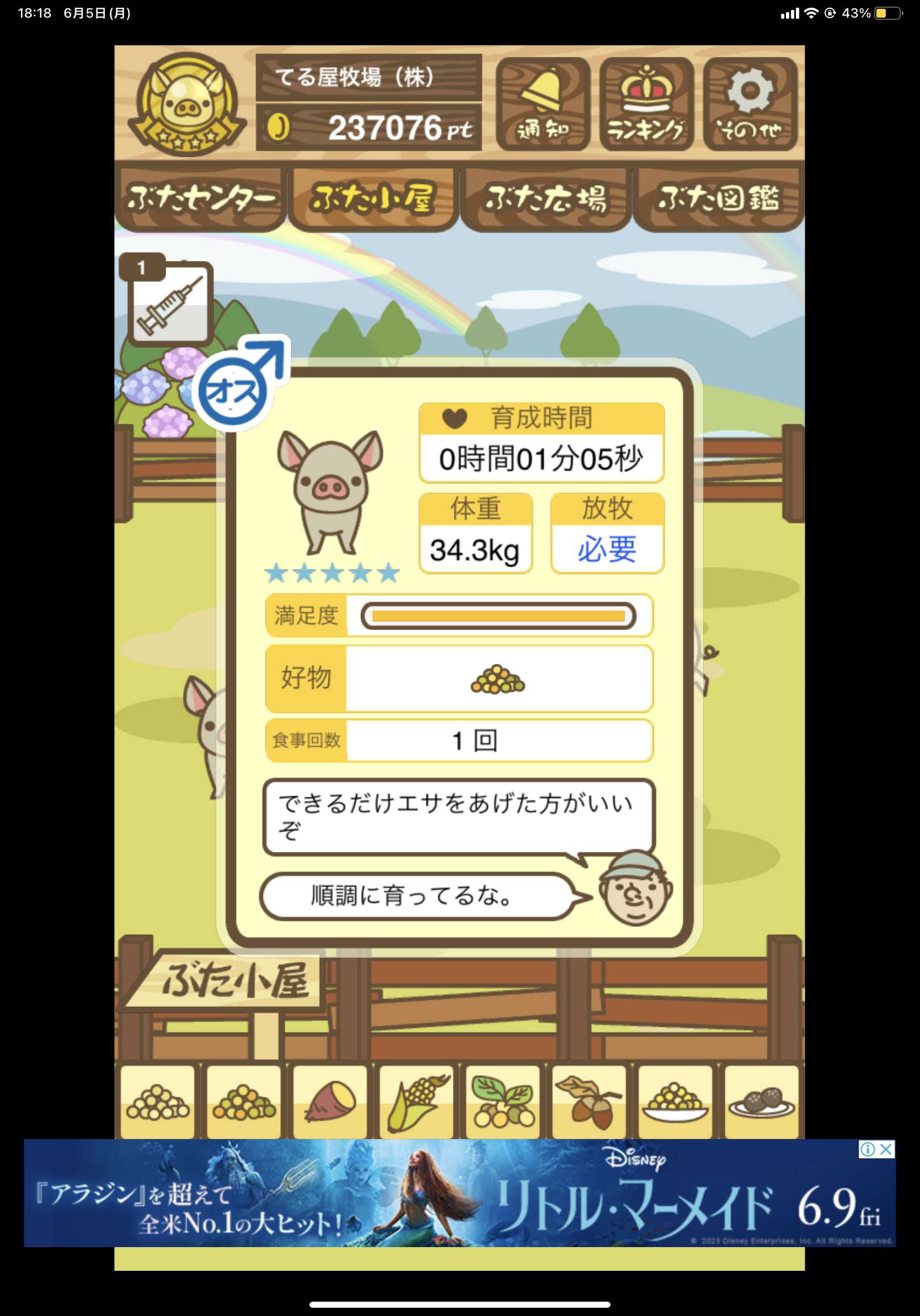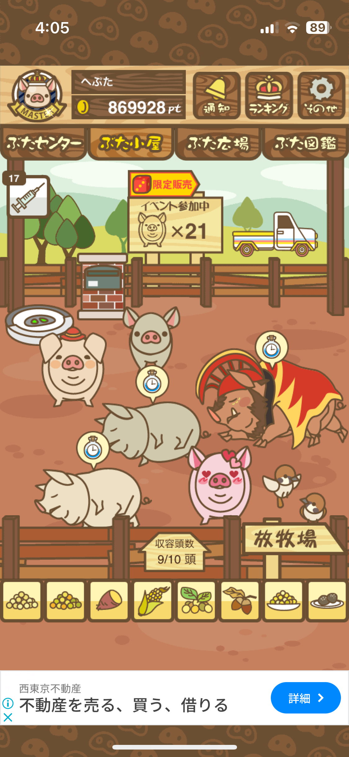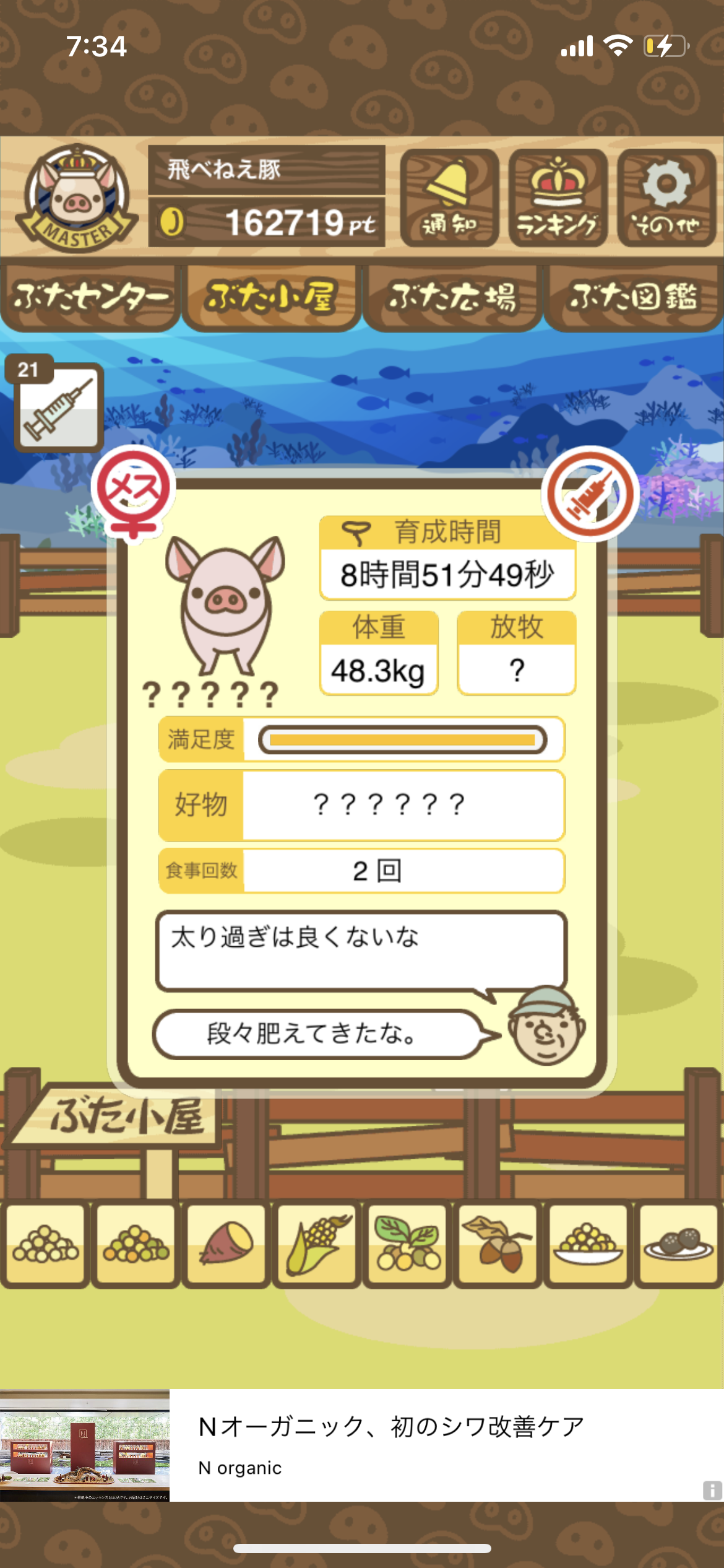 - また、エイブゥ....エサ雑穀16回、エサやりの度に放牧場行き来、16回エサやり後他の豚を放牧場へ....下の成功例の通り育成したつもりですが、何がダメだったんでしょう?掃除豚も排除しないといけないのでしょうか?