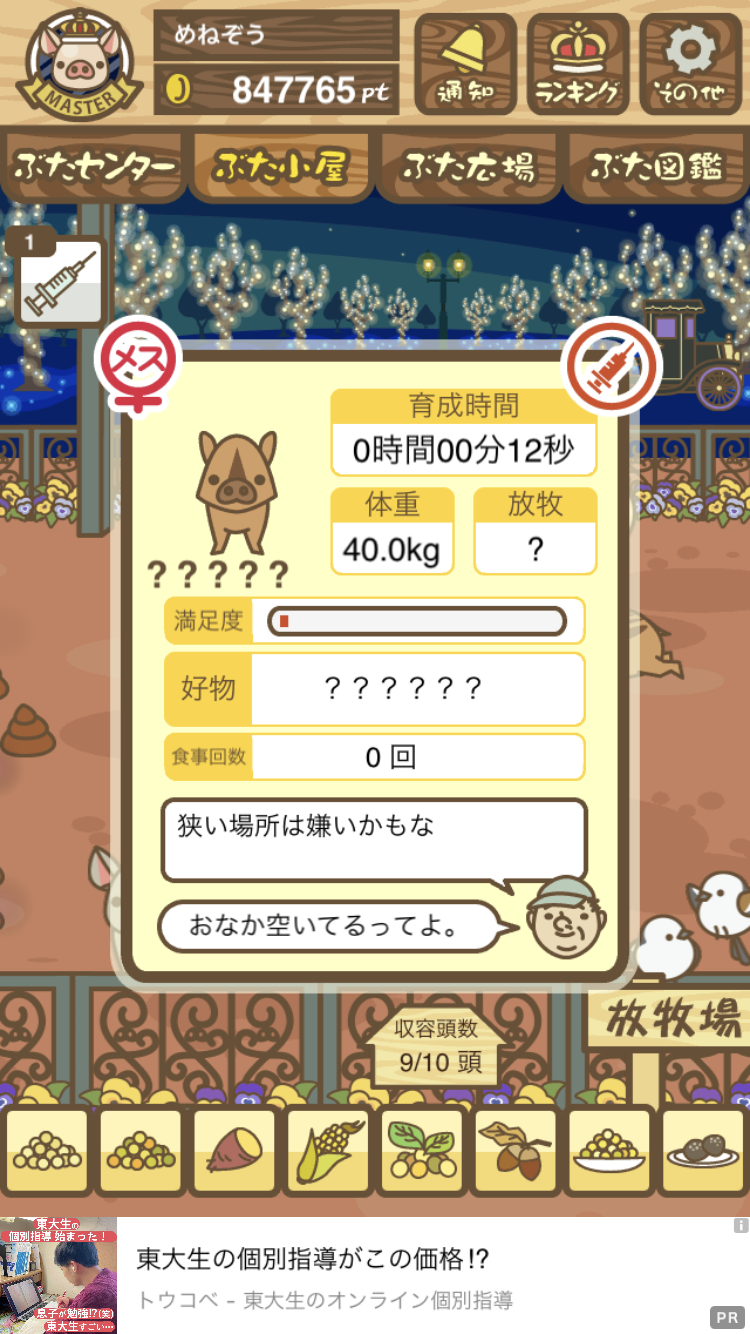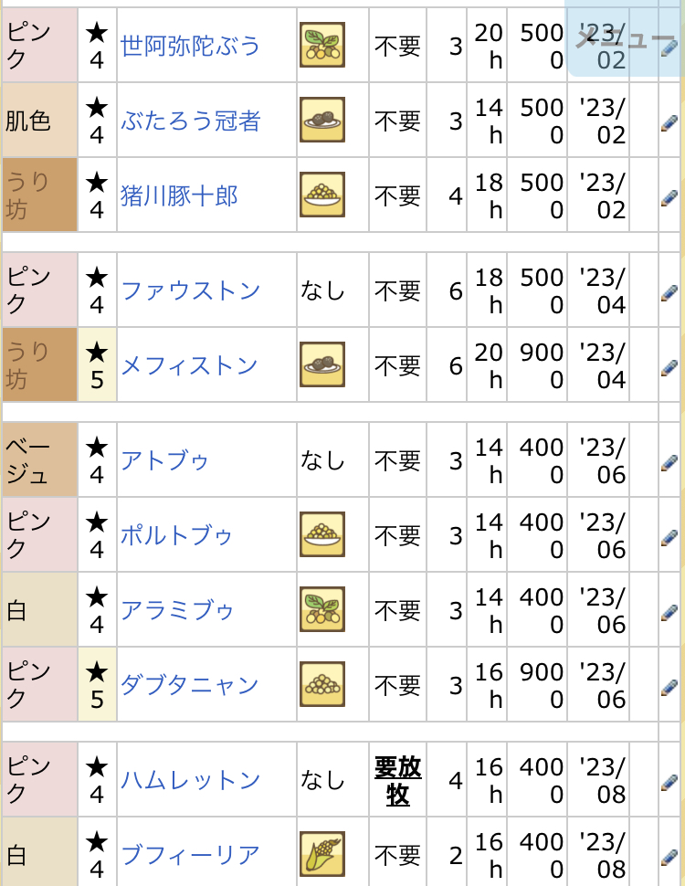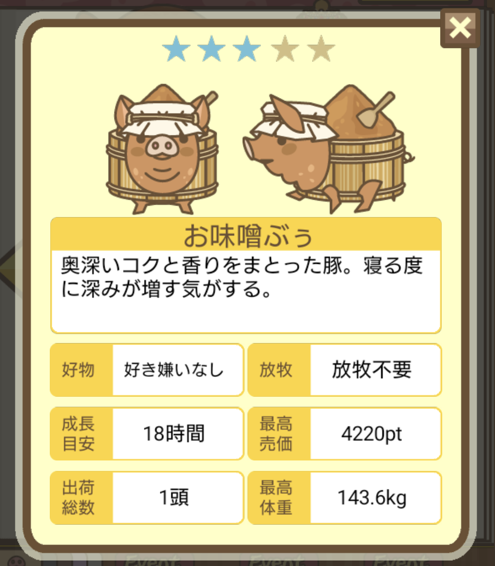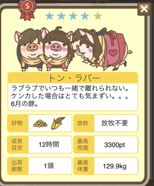 なかなかイライラしております(笑) -- みどり[kUpo494F2ZQ] 2022/09/03 (土) 18:27:05 - 今回でダメなら、下↓の方が書かれている、小屋で1匹だけで、放牧場もブタ無しで育成してみます。 -- みどり[kUpo494F2ZQ] 2022/09/03 (土) 18:45:23