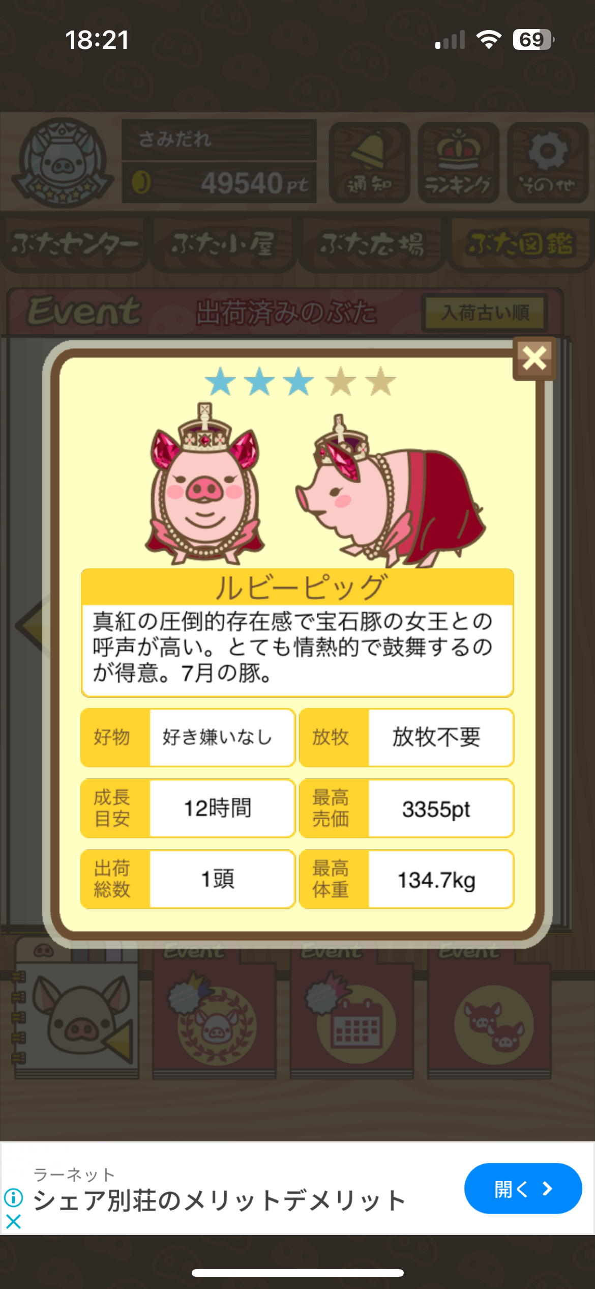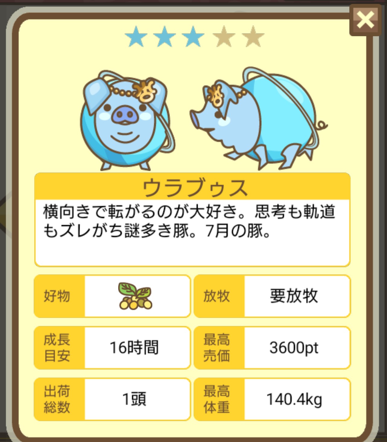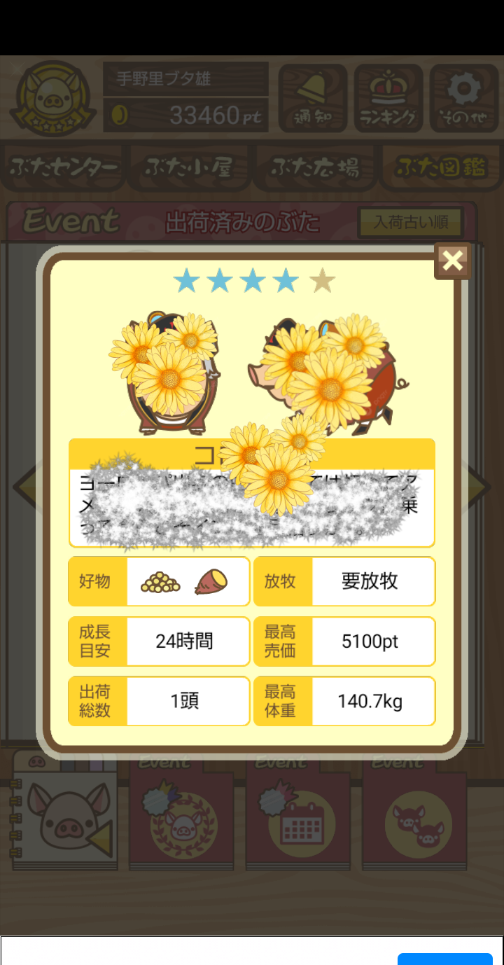 なかなかイライラしております(笑) -- みどり[kUpo494F2ZQ] 2022/09/03 (土) 18:27:05 - 今回でダメなら、下↓の方が書かれている、小屋で1匹だけで、放牧場もブタ無しで育成してみます。 -- みどり[kUpo494F2ZQ] 2022/09/03 (土) 18:45:23
