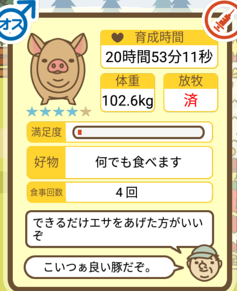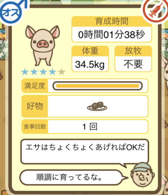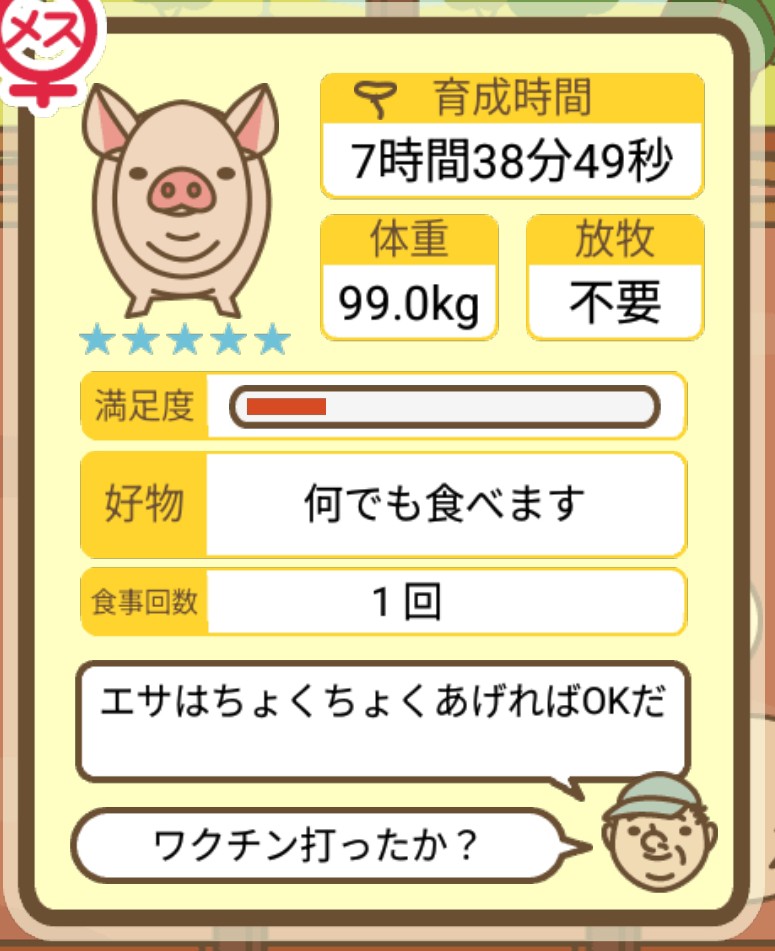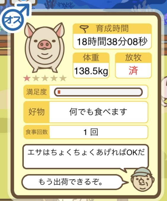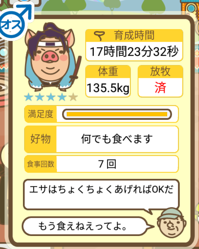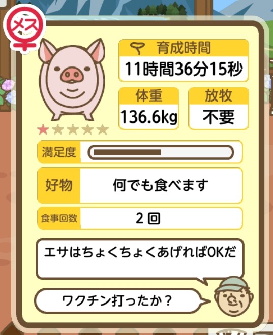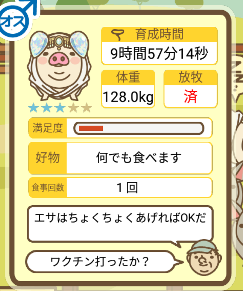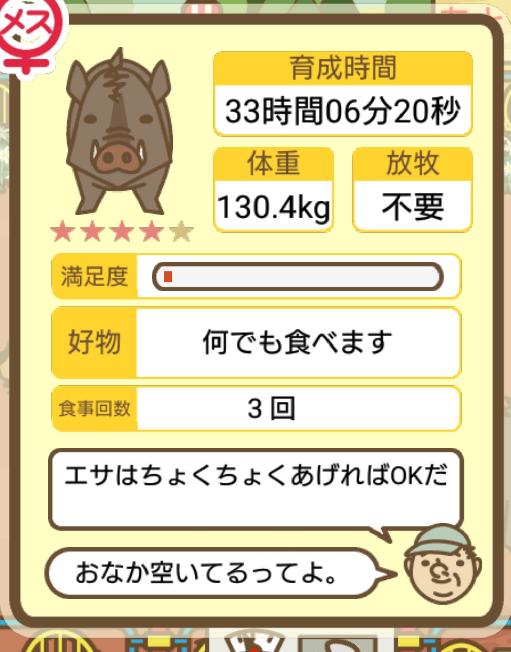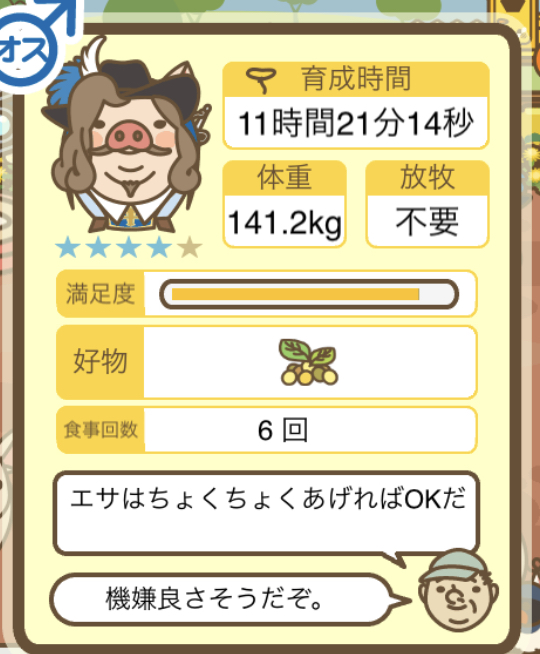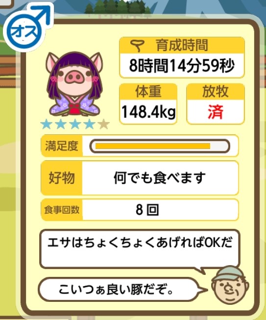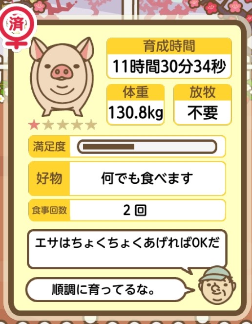 スクショないですが、放牧済、放牧場成豚、エサ3回では成功してます。(00:01成豚) -- 名無し[Ea6iFKq0LBo] 2025/11/07 (金) 21:15:25