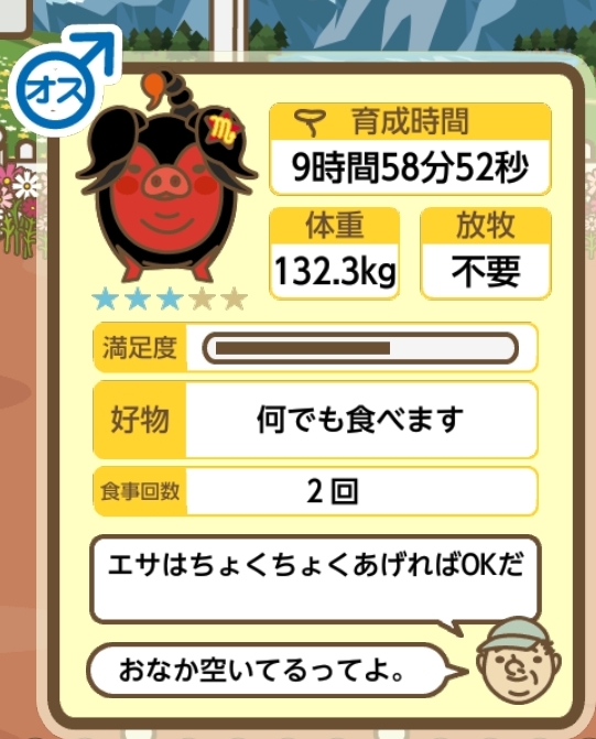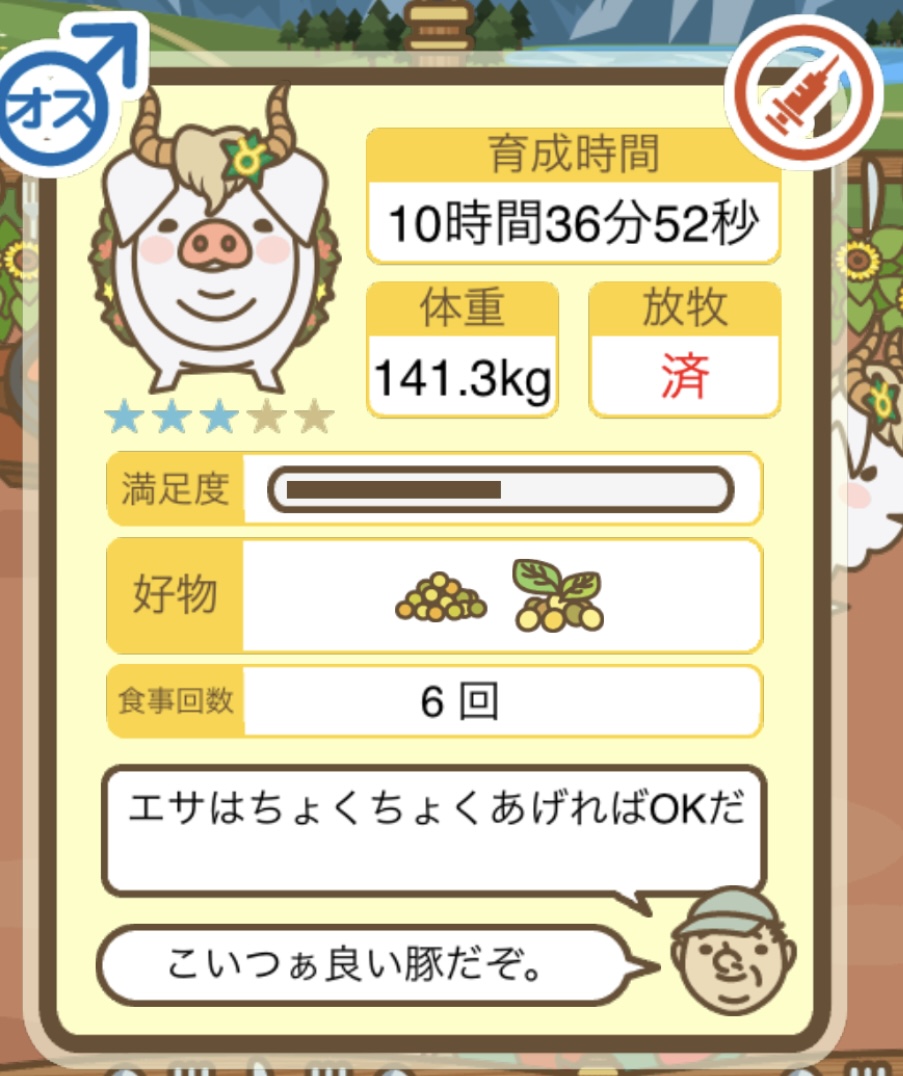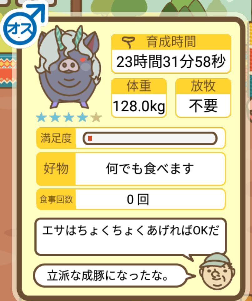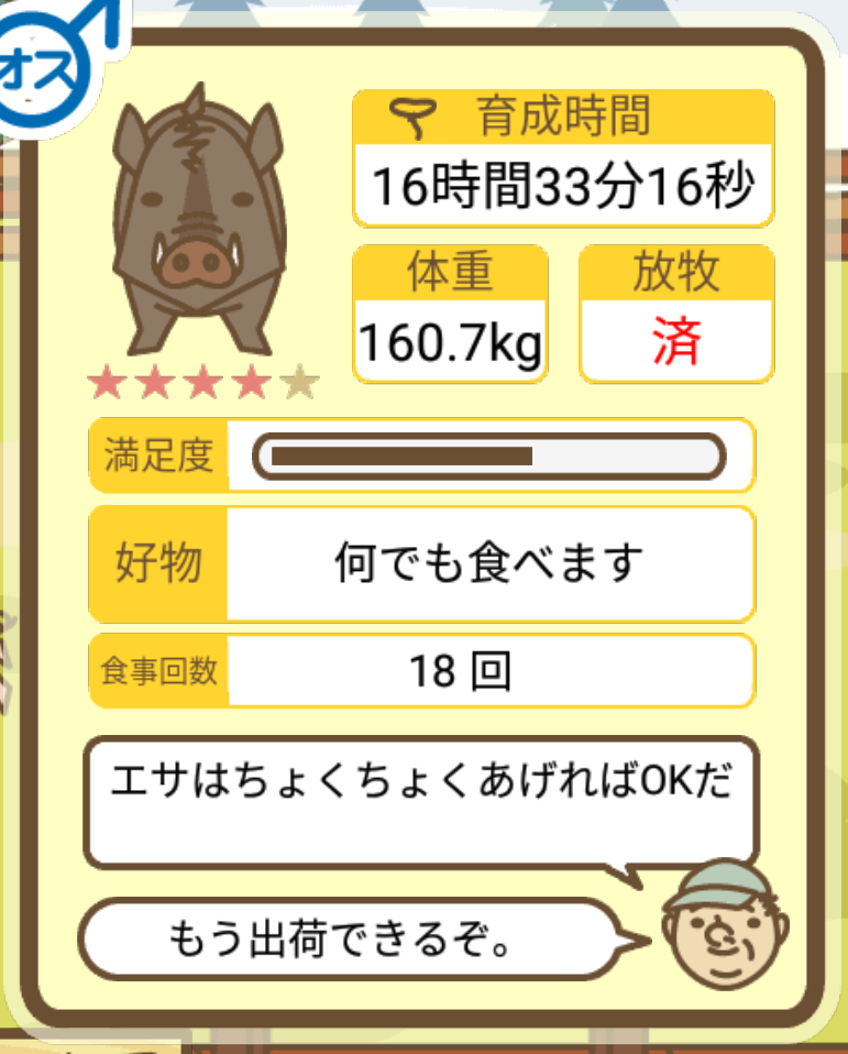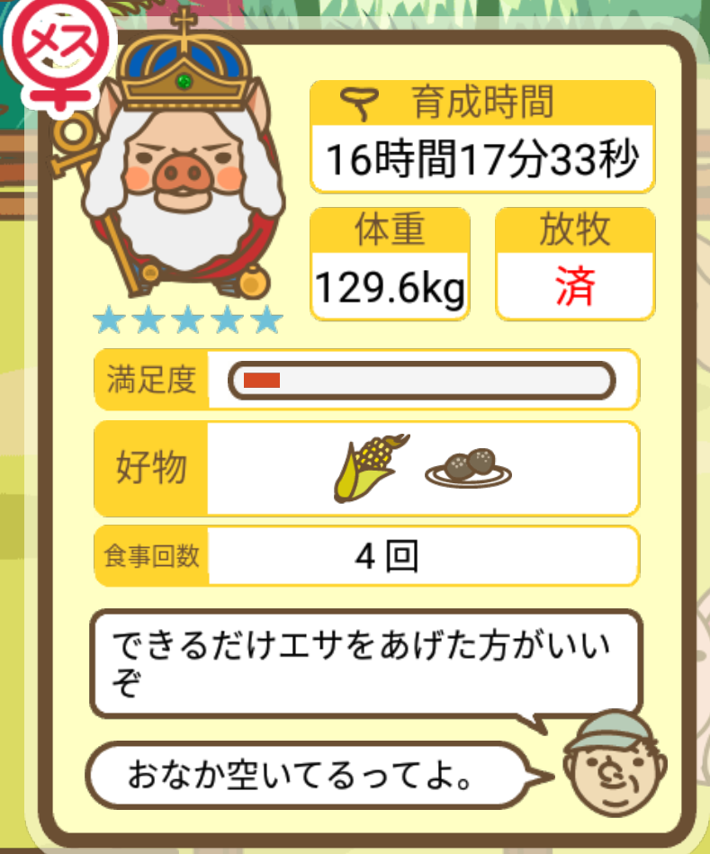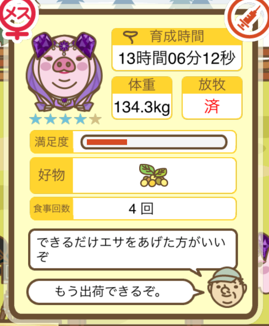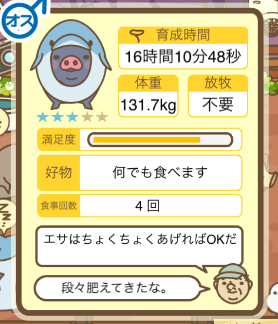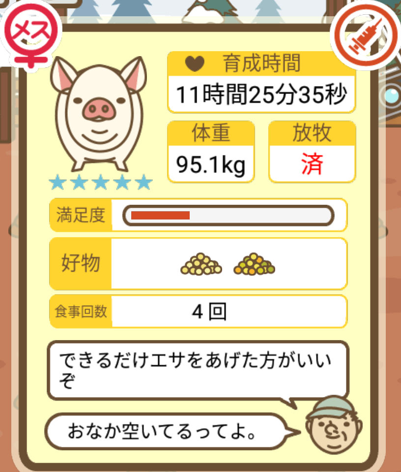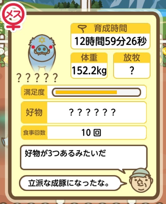 スクショないですが、放牧済、放牧場成豚、エサ3回では成功してます。(00:01成豚) -- 名無し[Ea6iFKq0LBo] 2025/11/07 (金) 21:15:25