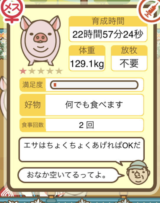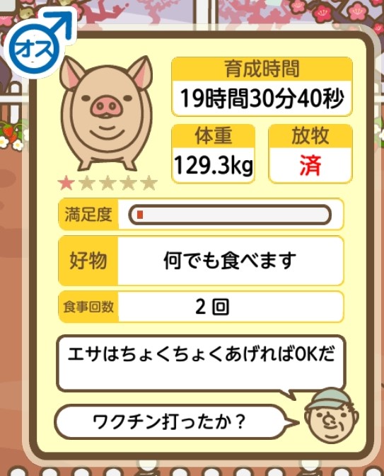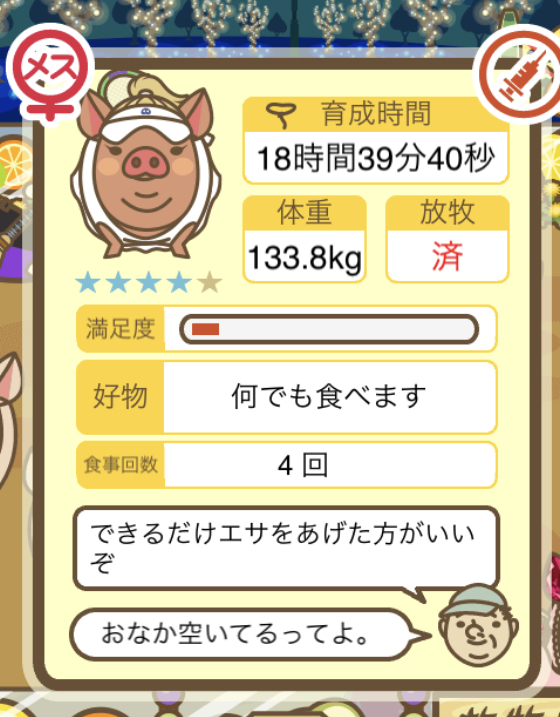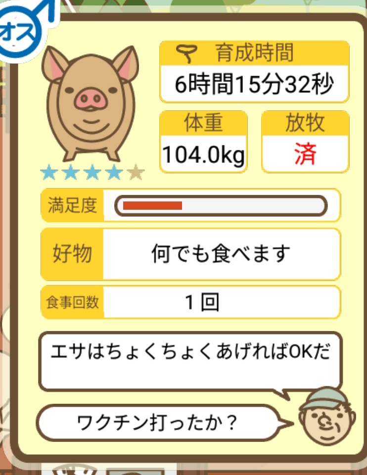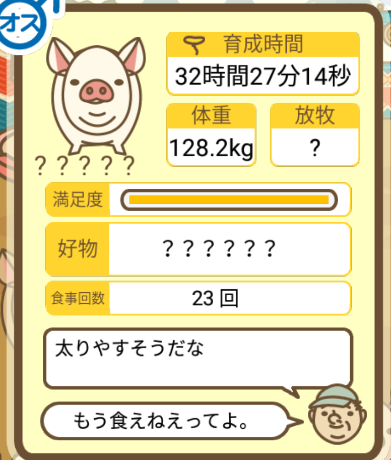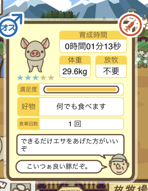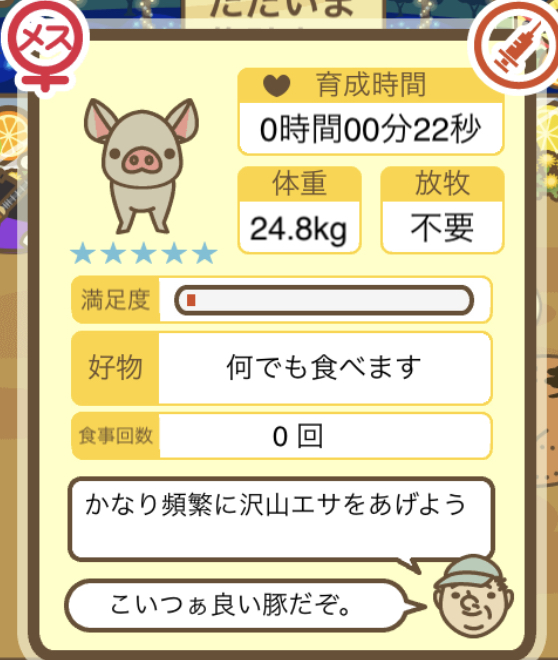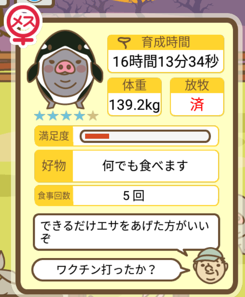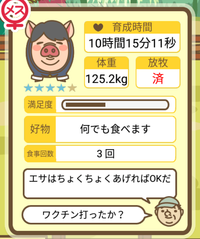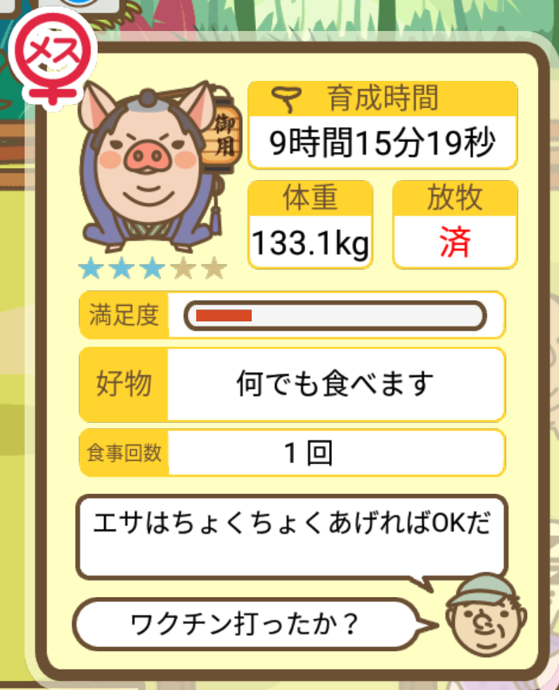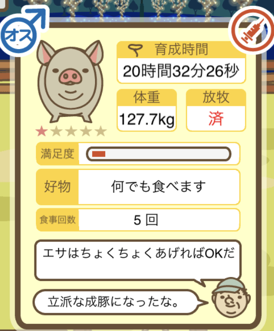 スクショないですが、放牧済、放牧場成豚、エサ3回では成功してます。(00:01成豚) -- 名無し[Ea6iFKq0LBo] 2025/11/07 (金) 21:15:25