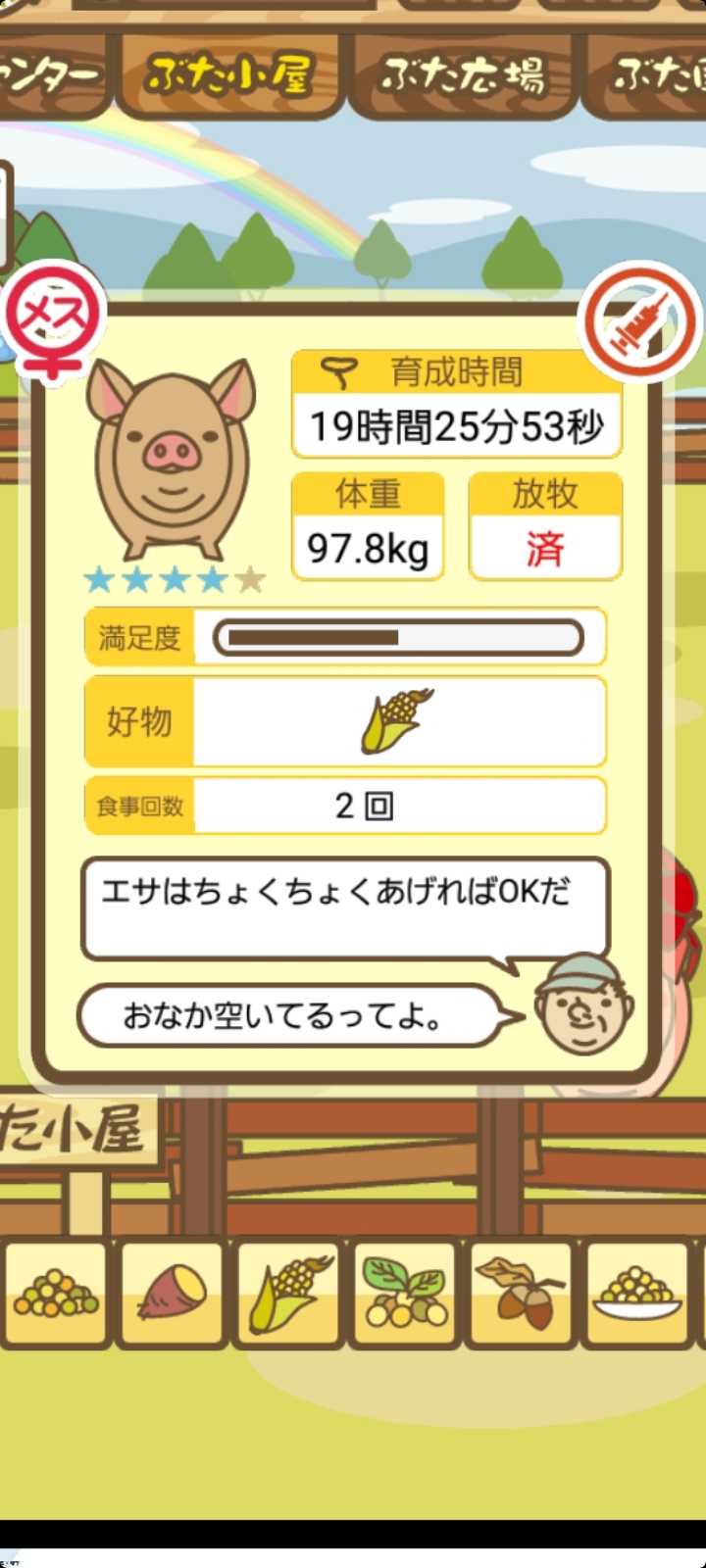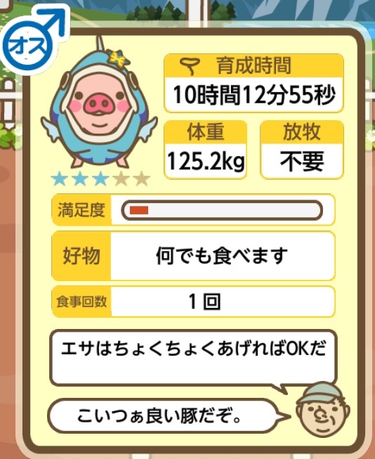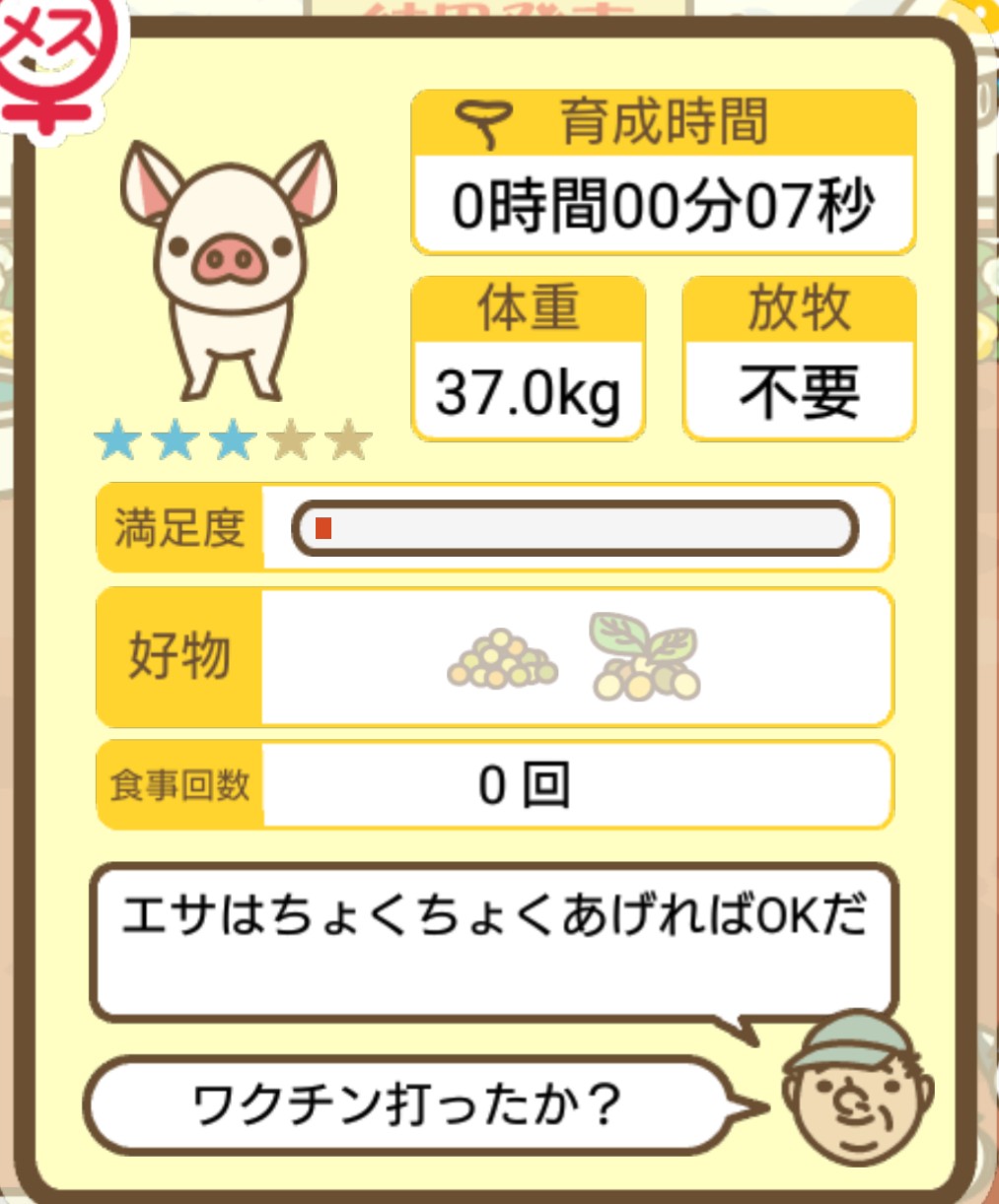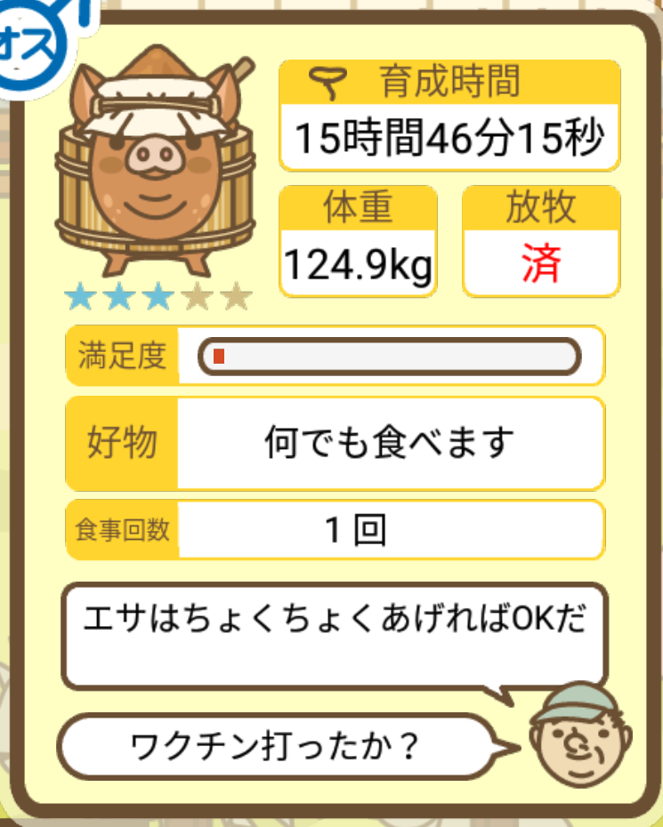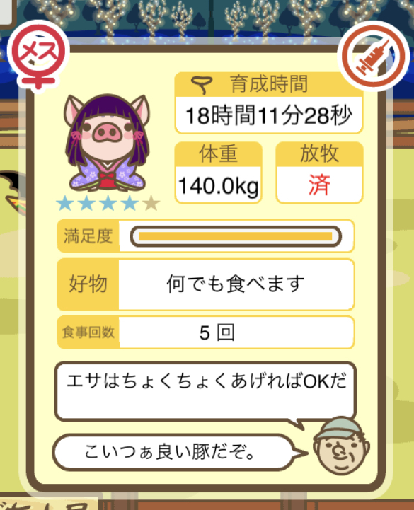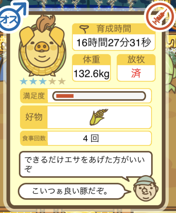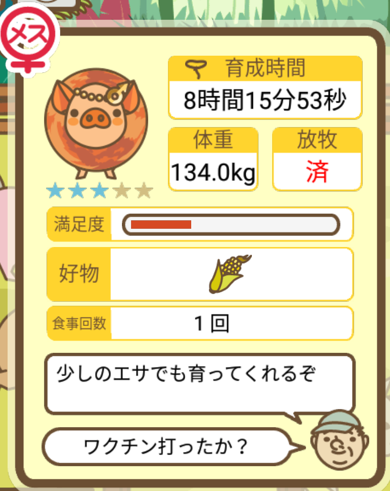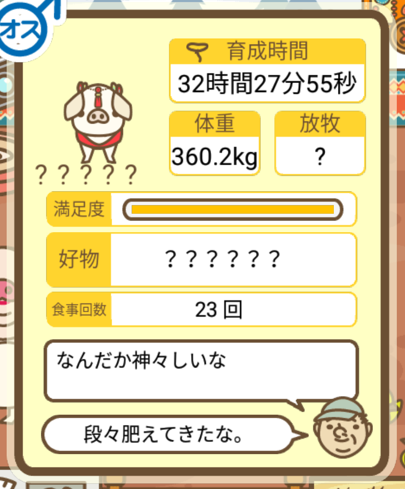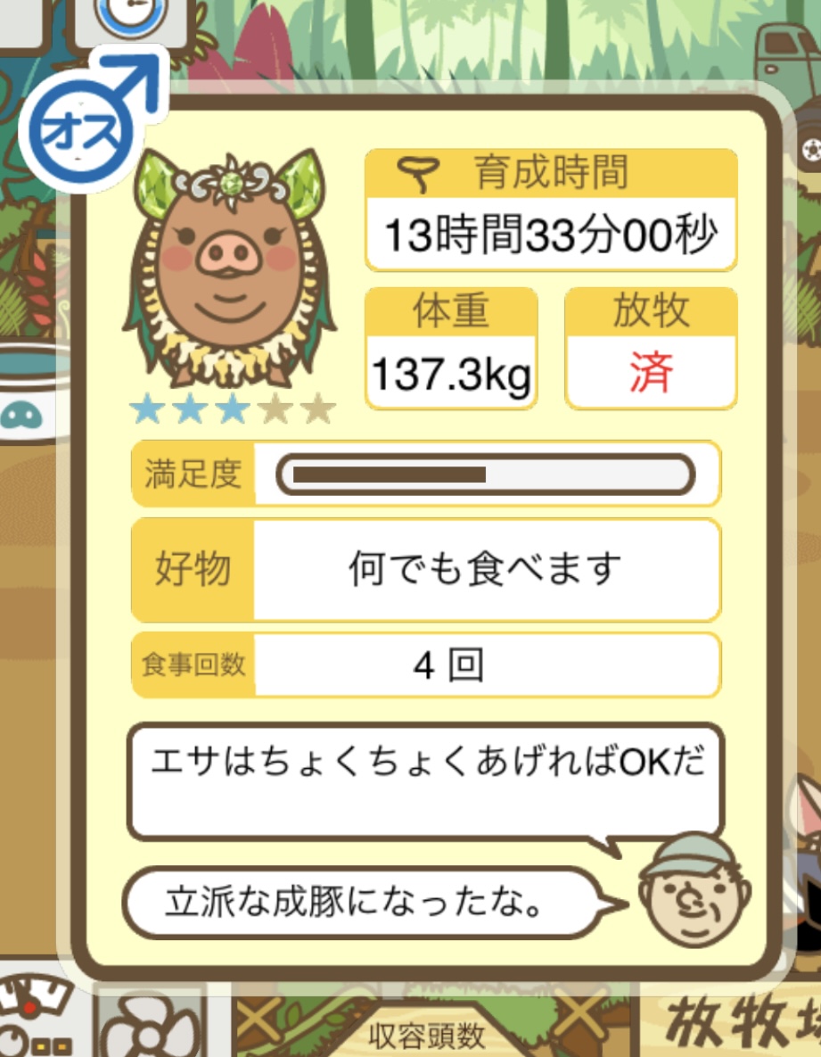 スクショないですが、放牧済、放牧場成豚、エサ3回では成功してます。(00:01成豚) -- 名無し[Ea6iFKq0LBo] 2025/11/07 (金) 21:15:25