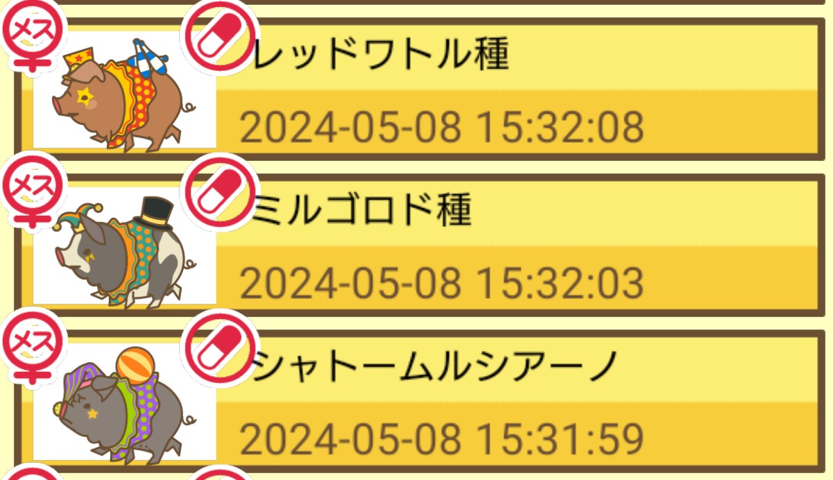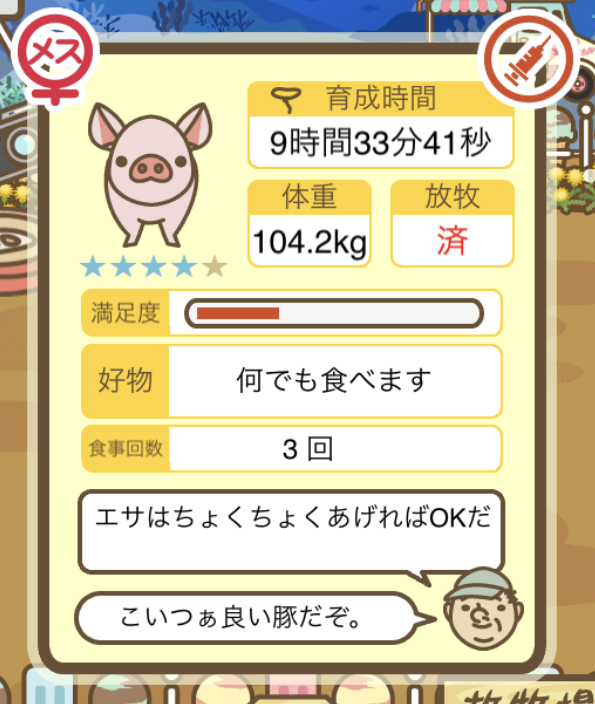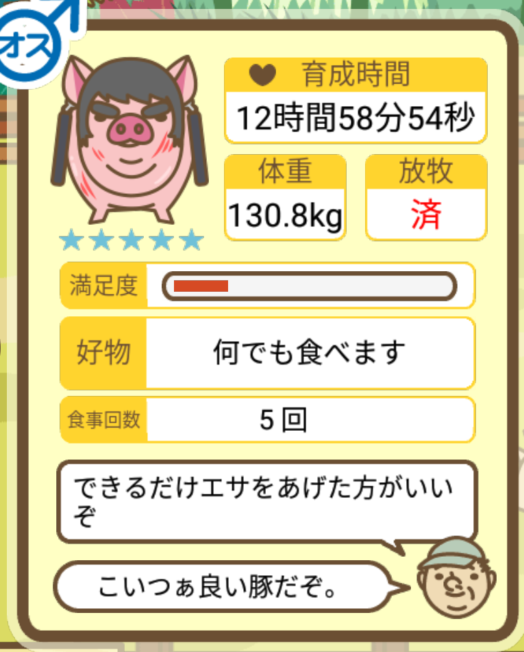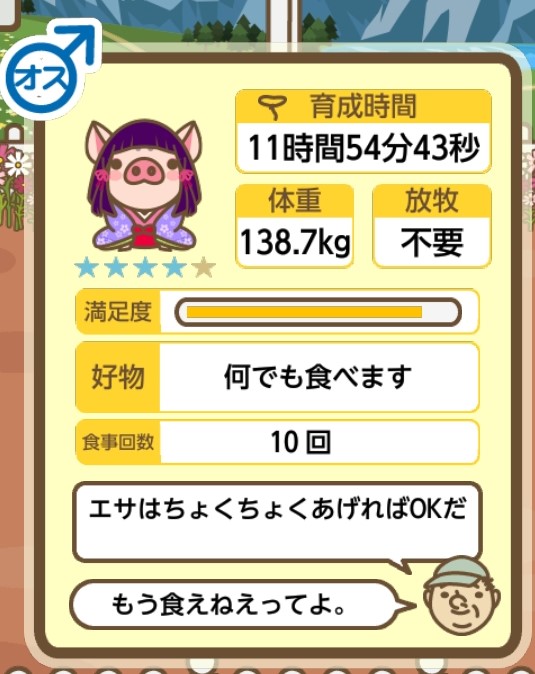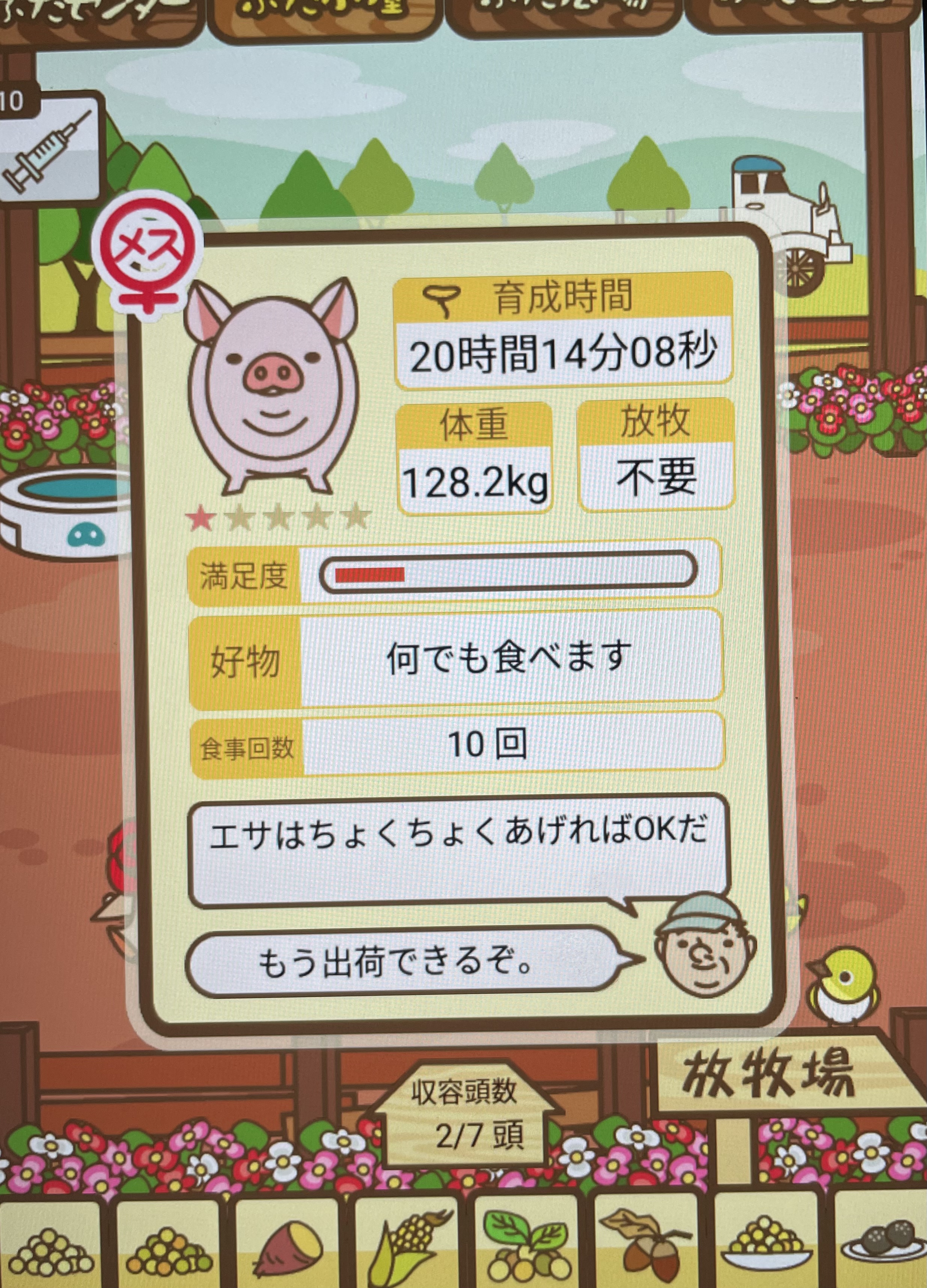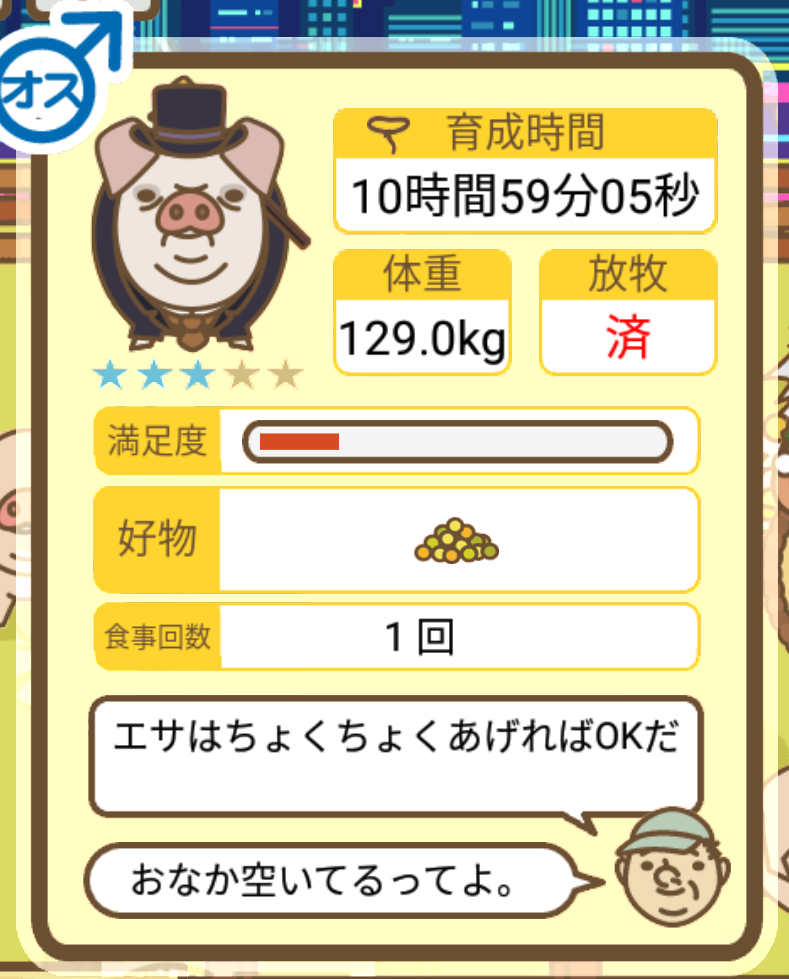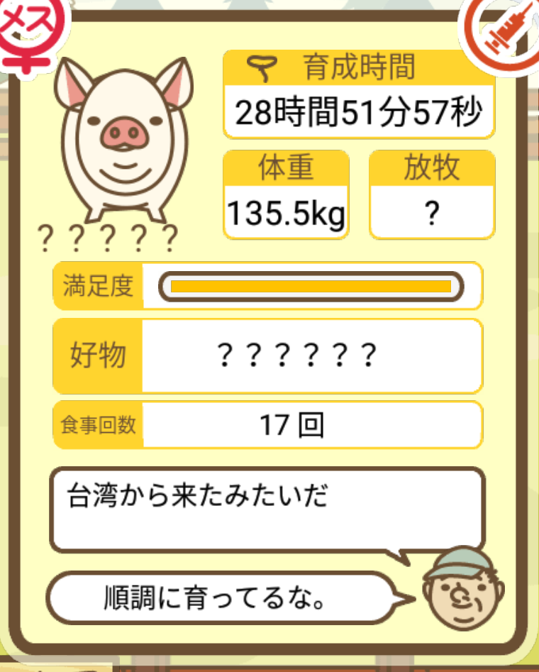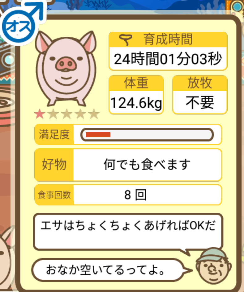 スクショないですが、放牧済、放牧場成豚、エサ3回では成功してます。(00:01成豚) -- 名無し[Ea6iFKq0LBo] 2025/11/07 (金) 21:15:25