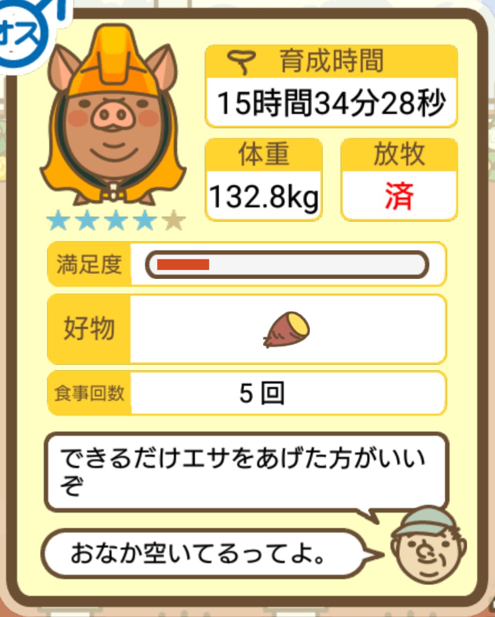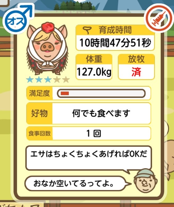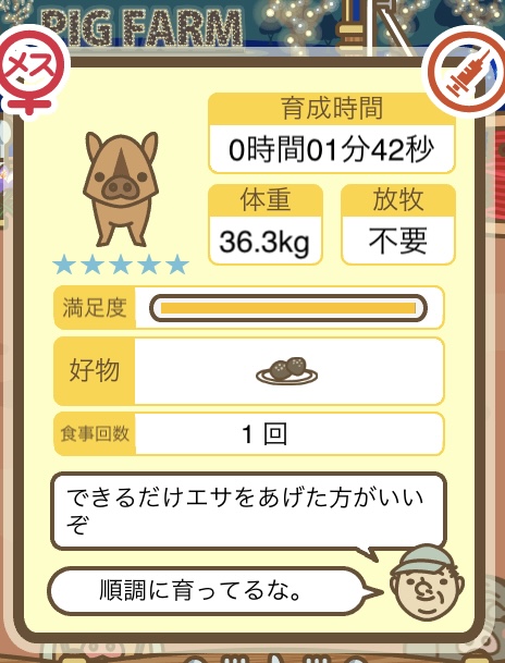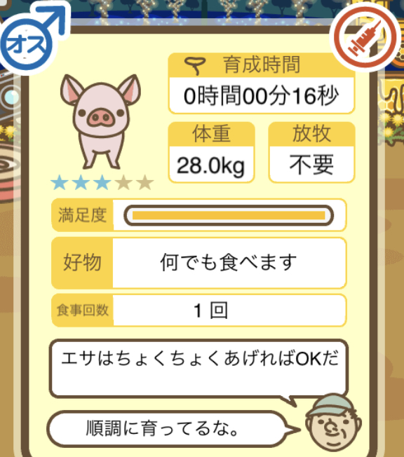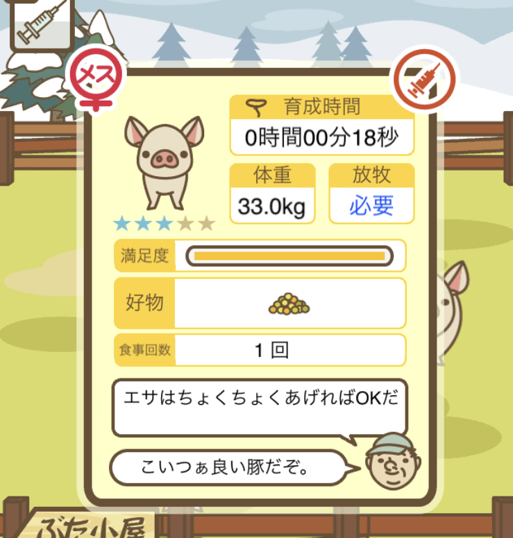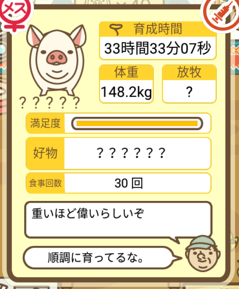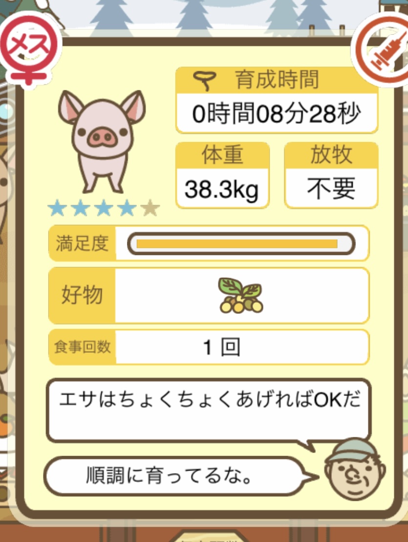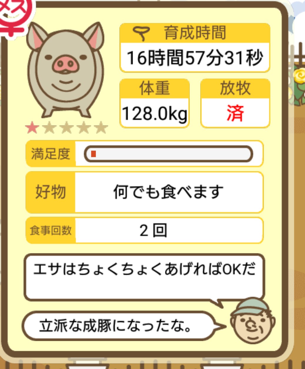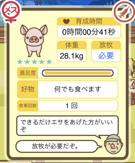 スクショないですが、放牧済、放牧場成豚、エサ3回では成功してます。(00:01成豚) -- 名無し[Ea6iFKq0LBo] 2025/11/07 (金) 21:15:25