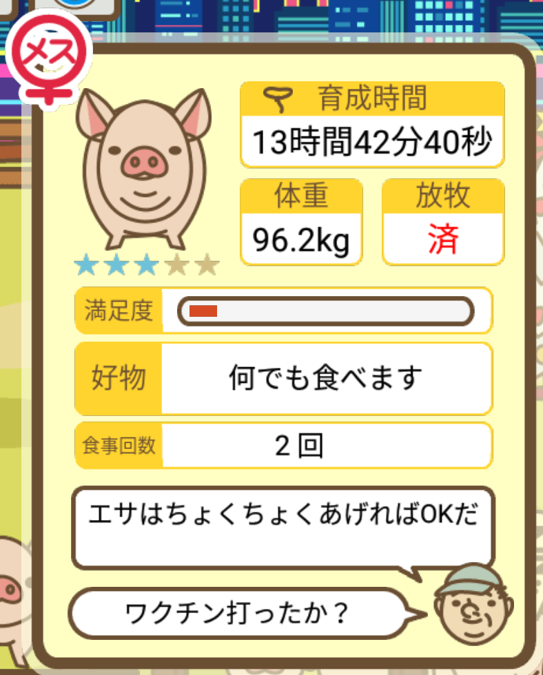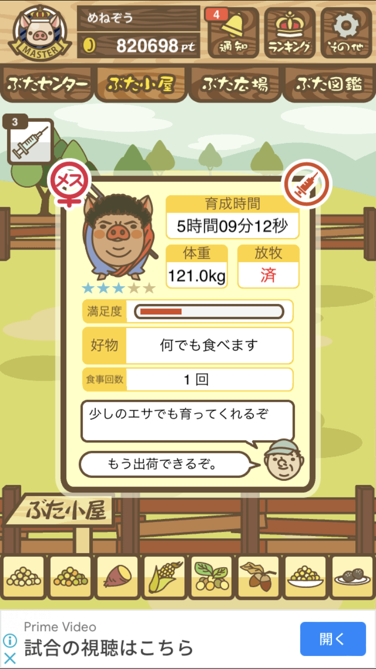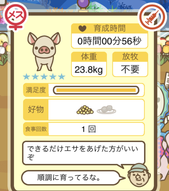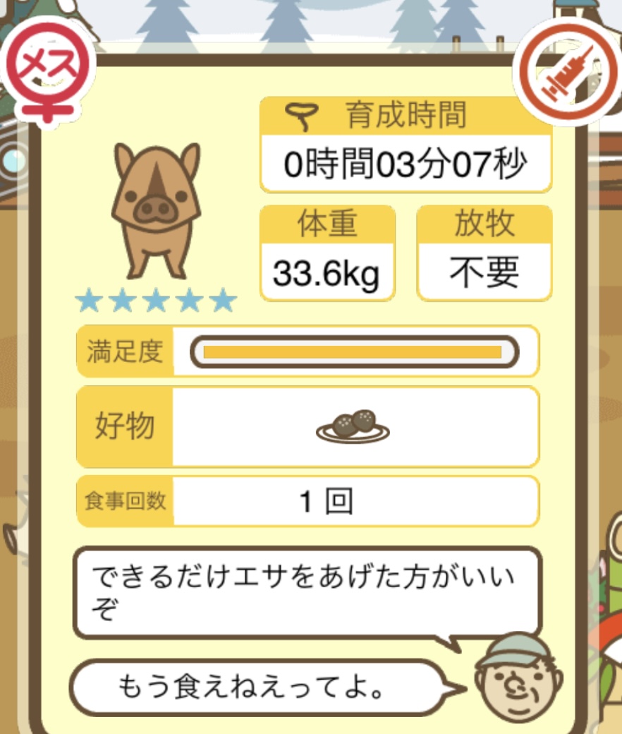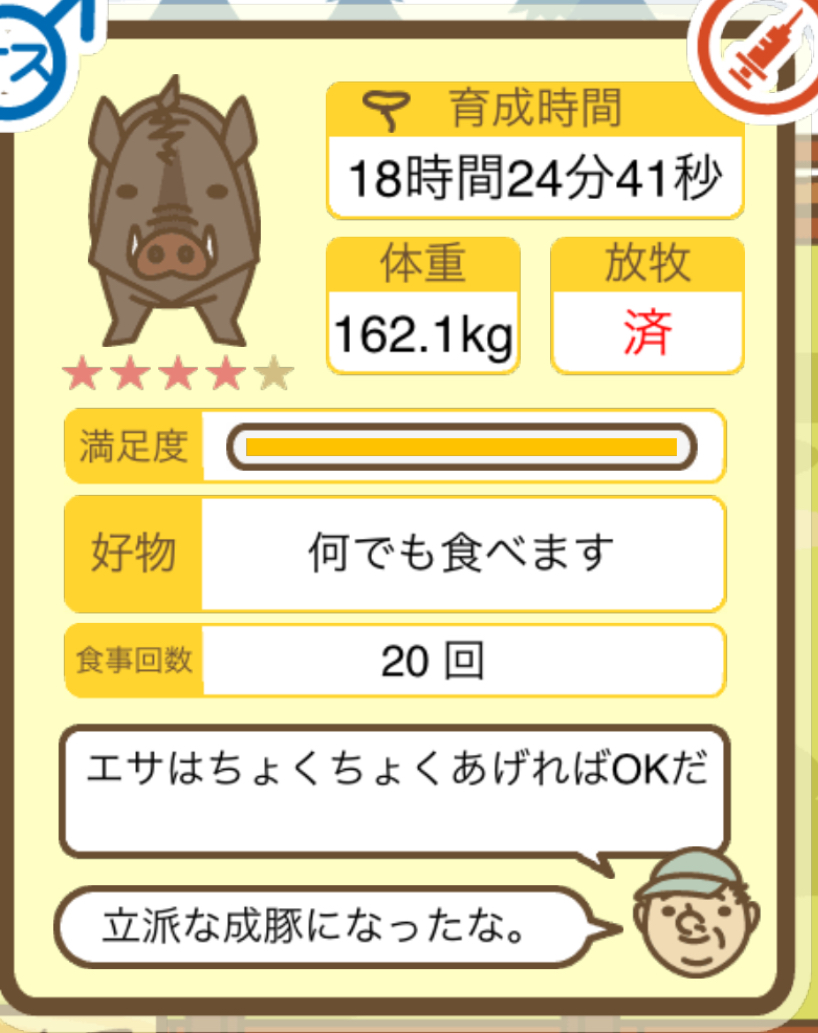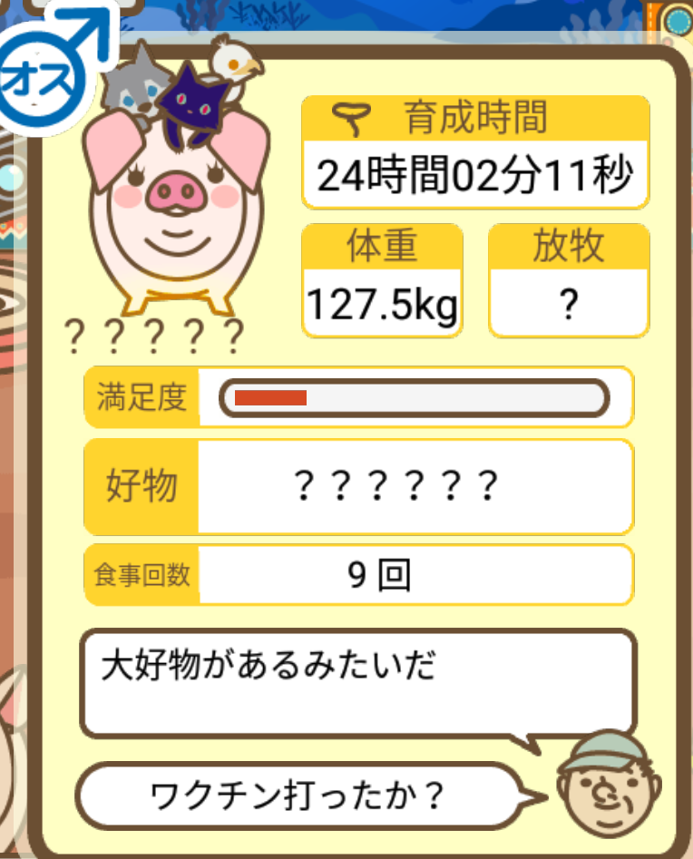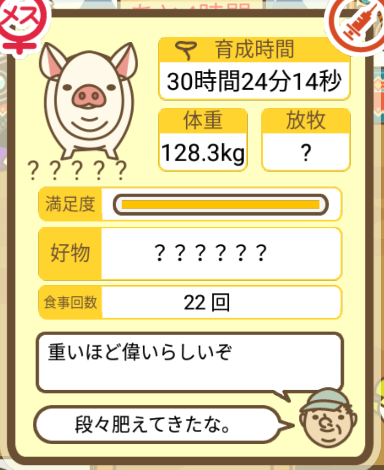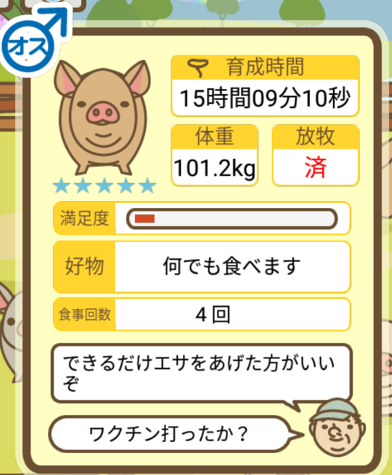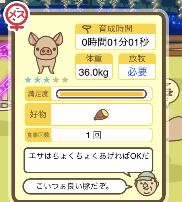 スクショないですが、放牧済、放牧場成豚、エサ3回では成功してます。(00:01成豚) -- 名無し[Ea6iFKq0LBo] 2025/11/07 (金) 21:15:25