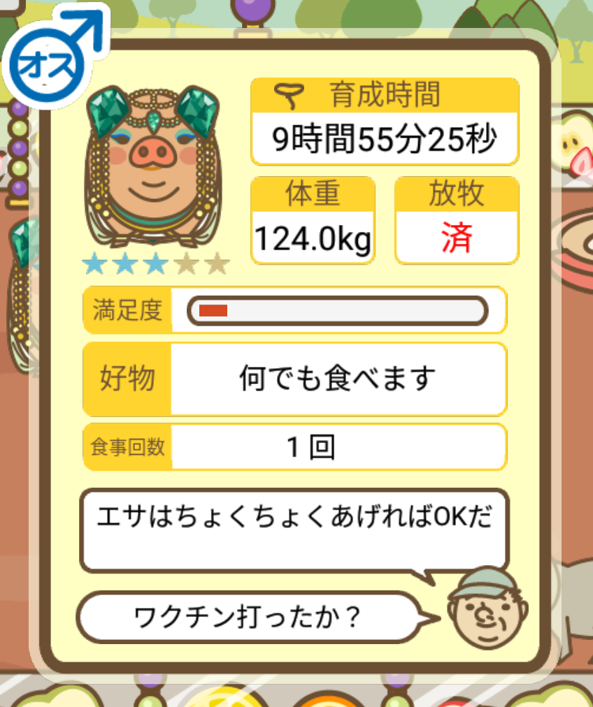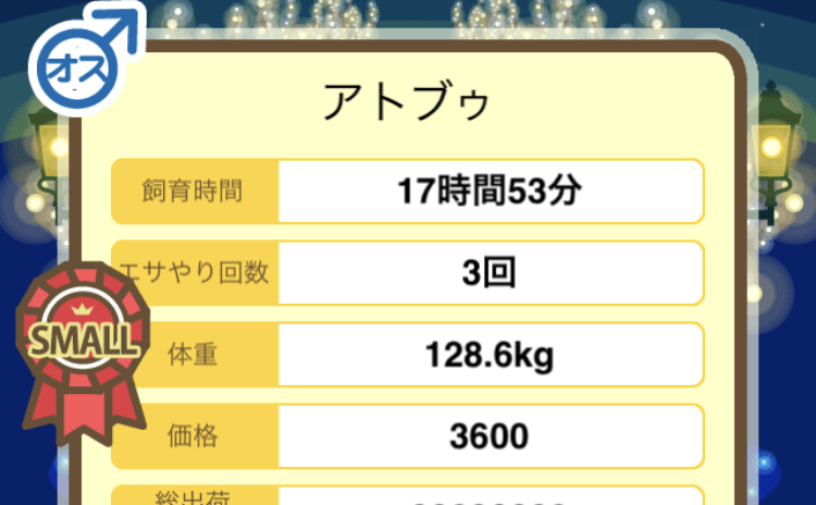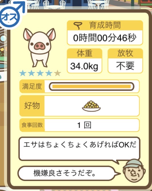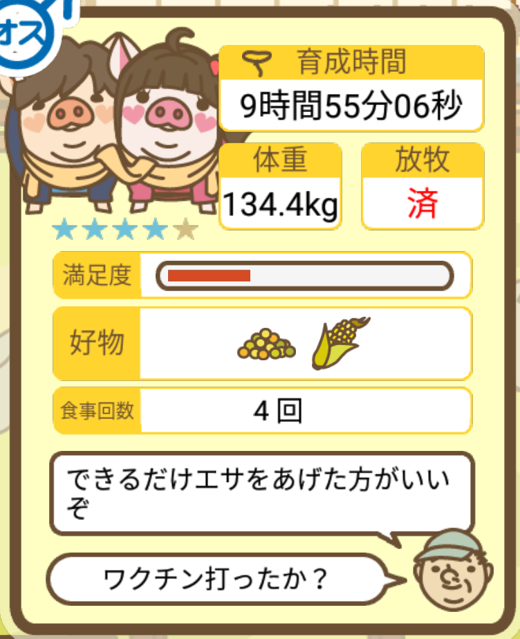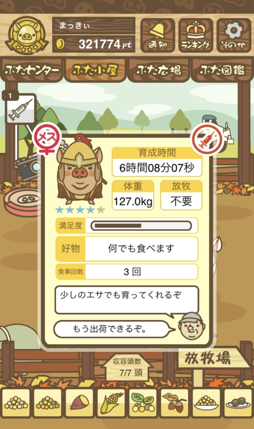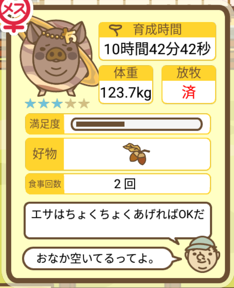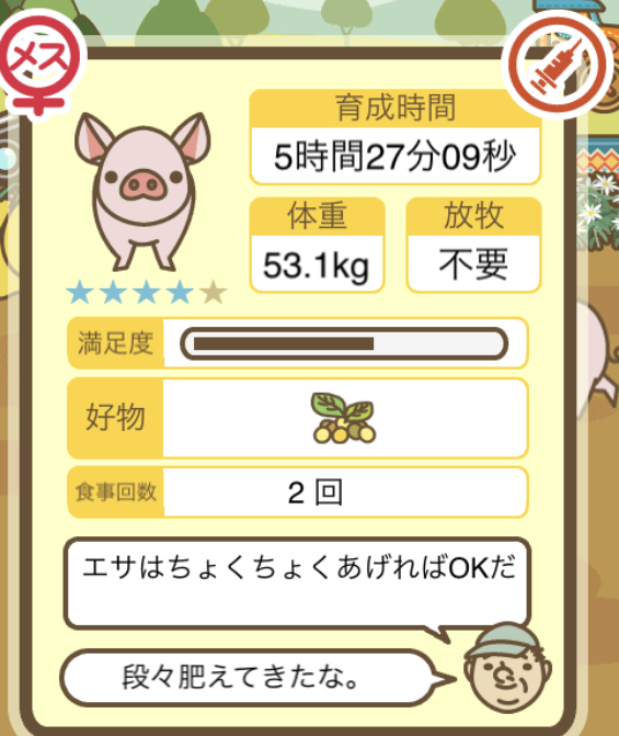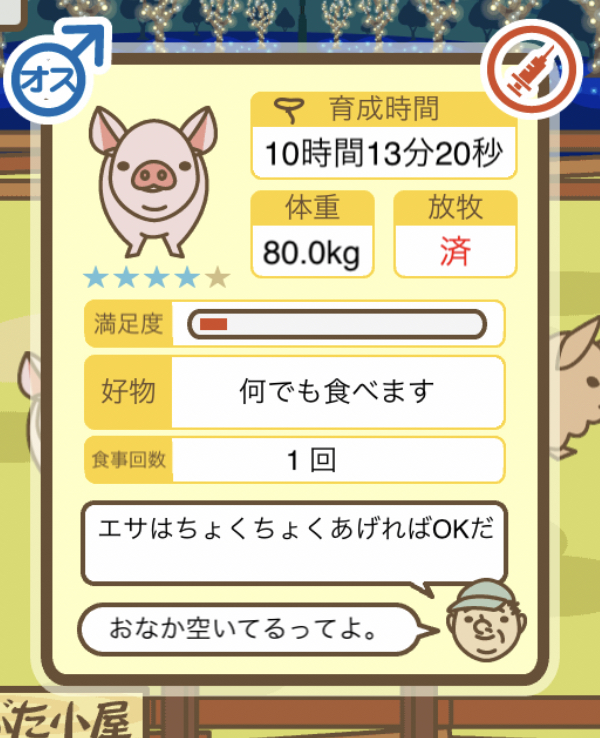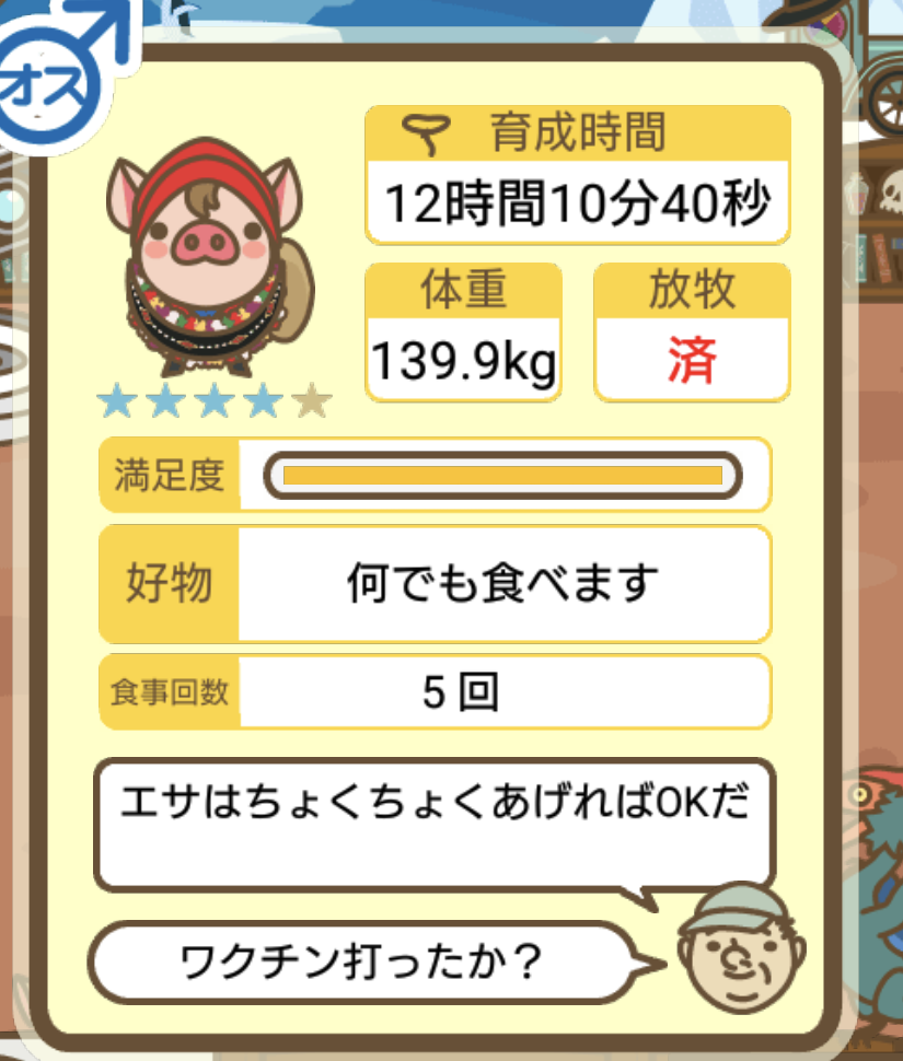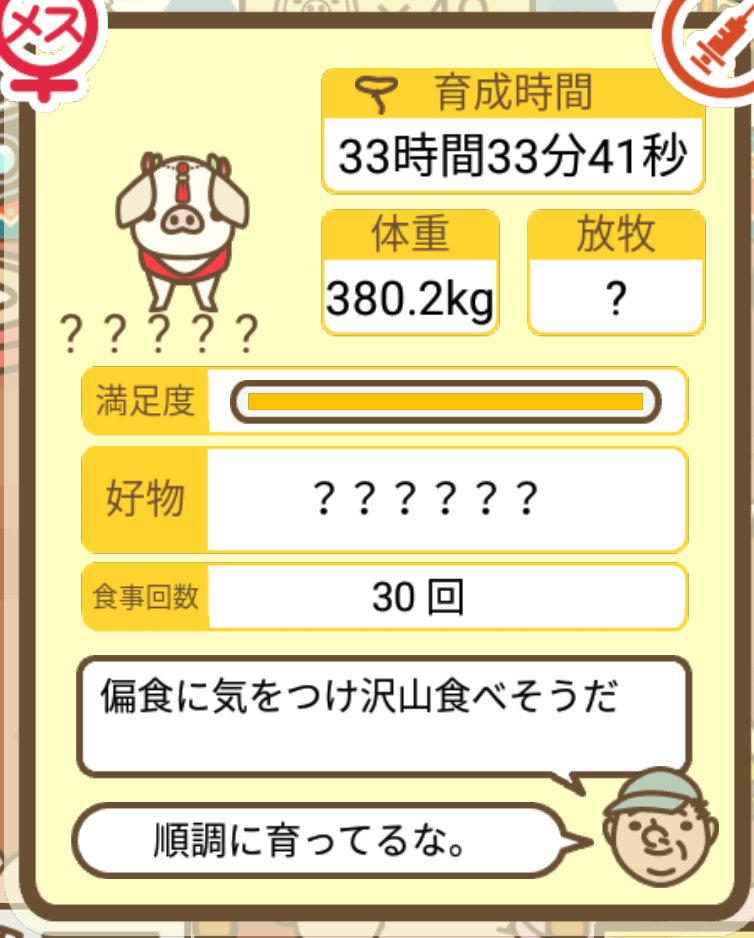 スクショないですが、放牧済、放牧場成豚、エサ3回では成功してます。(00:01成豚) -- 名無し[Ea6iFKq0LBo] 2025/11/07 (金) 21:15:25