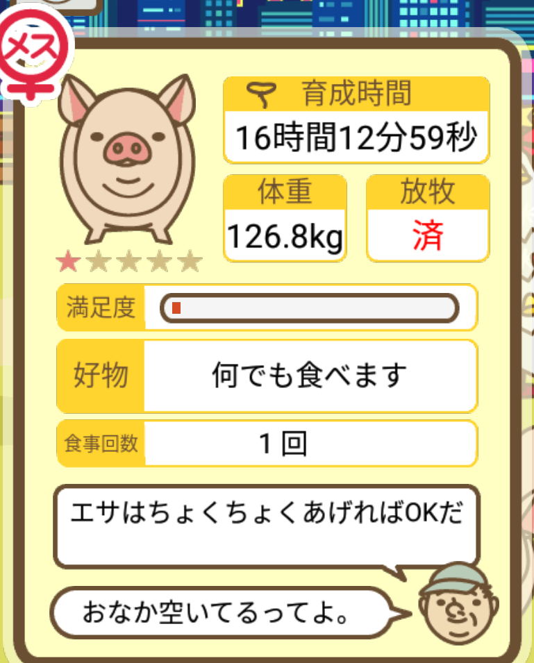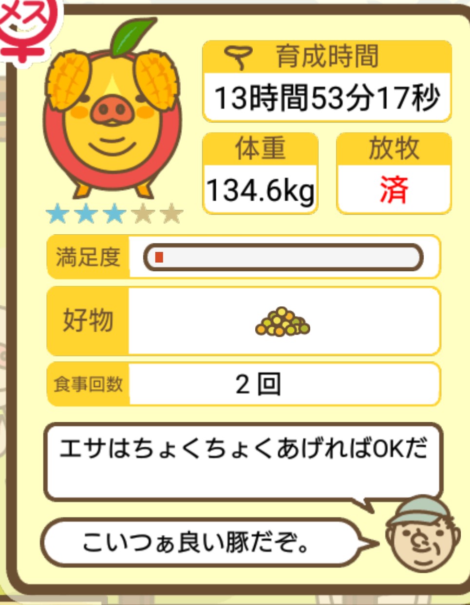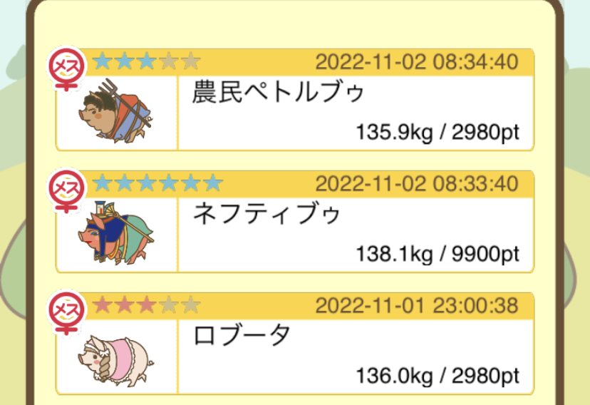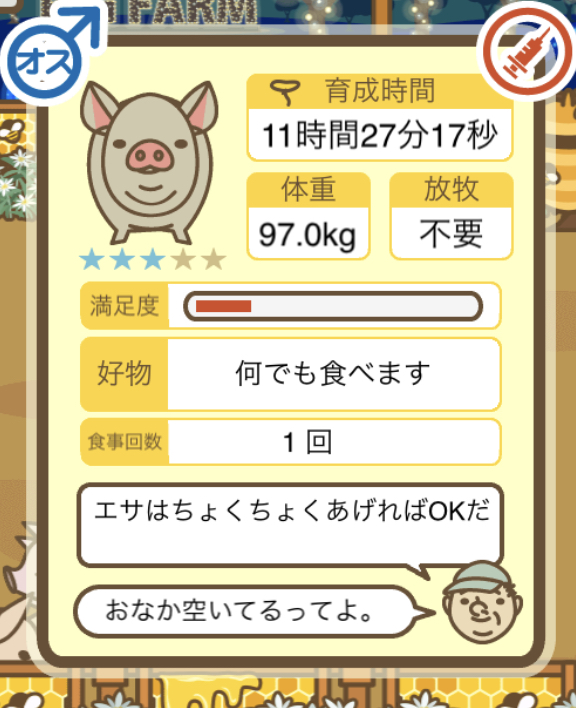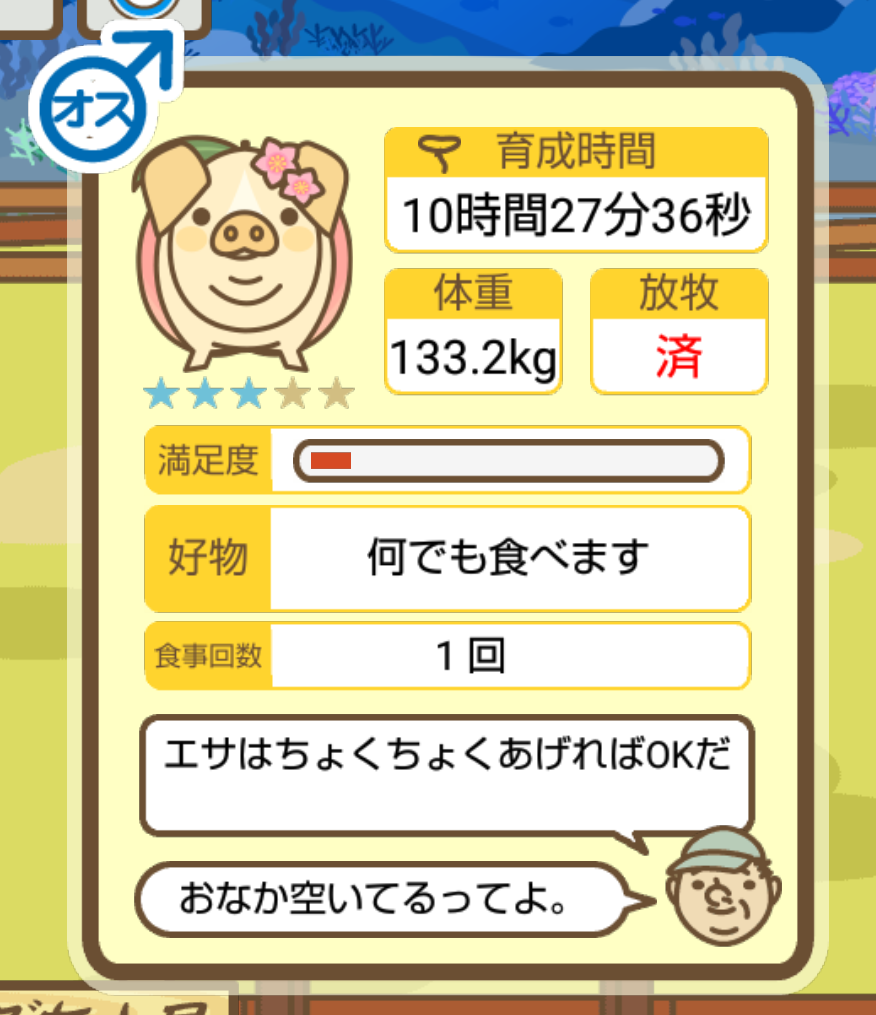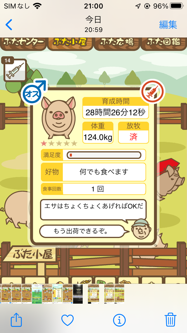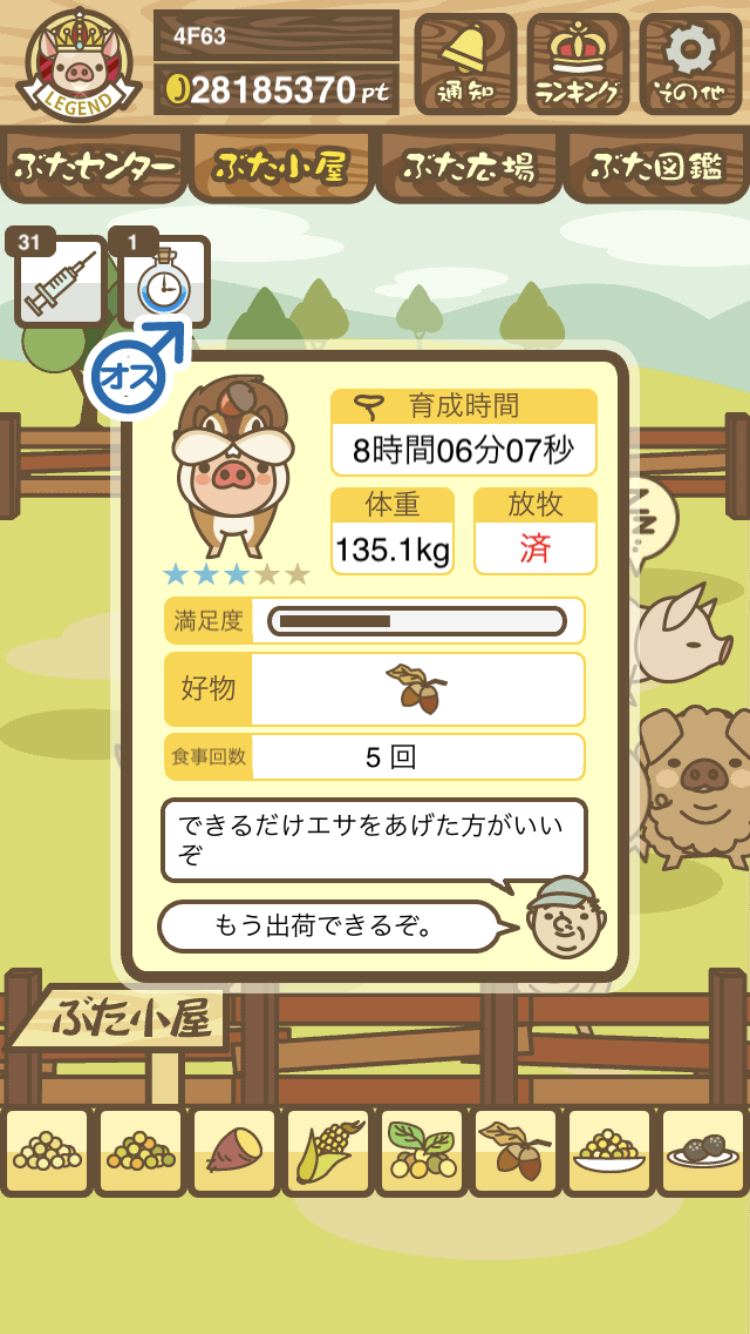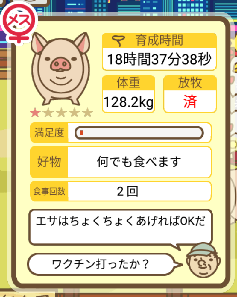 スクショないですが、放牧済、放牧場成豚、エサ3回では成功してます。(00:01成豚) -- 名無し[Ea6iFKq0LBo] 2025/11/07 (金) 21:15:25