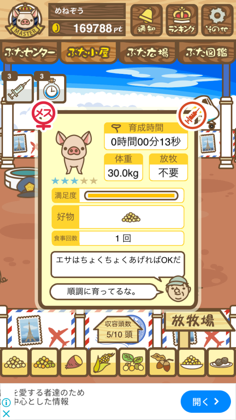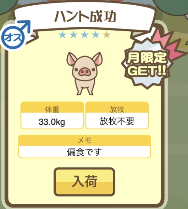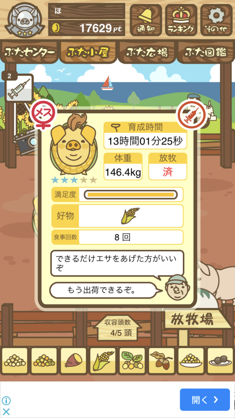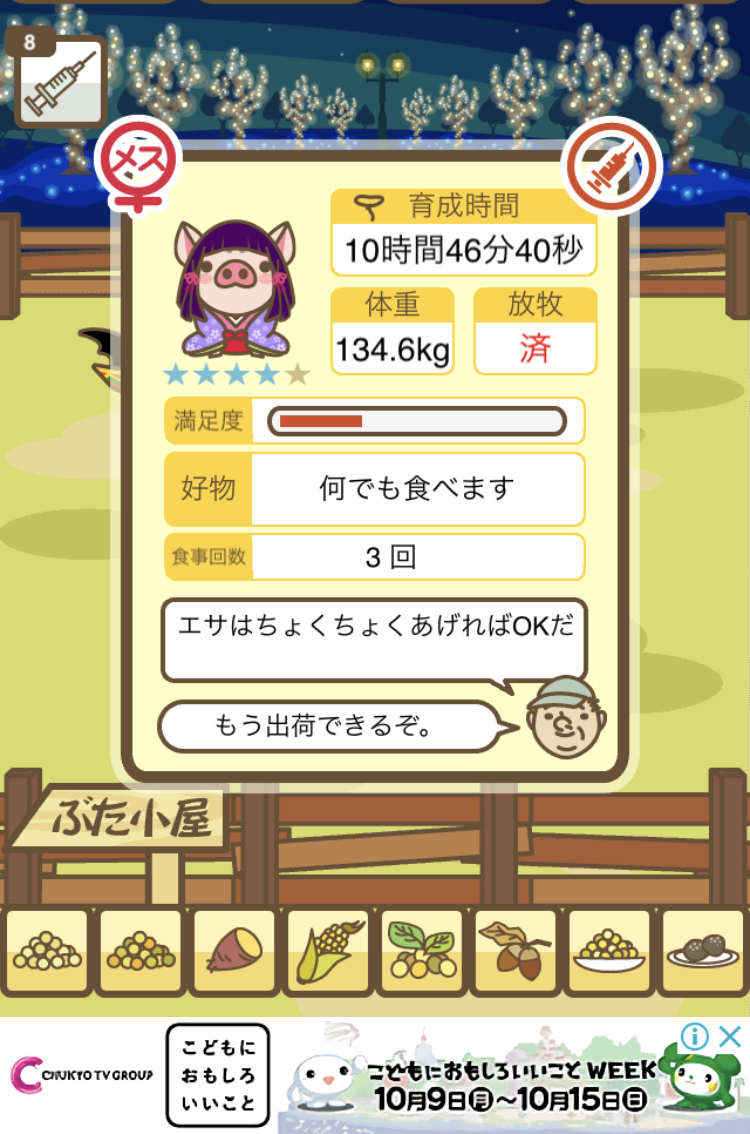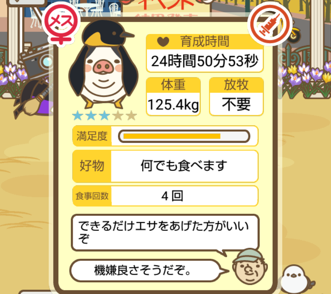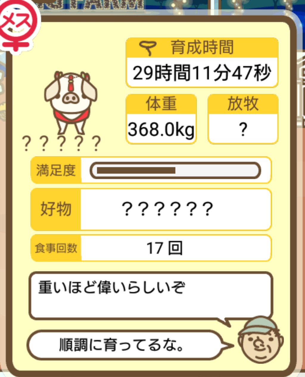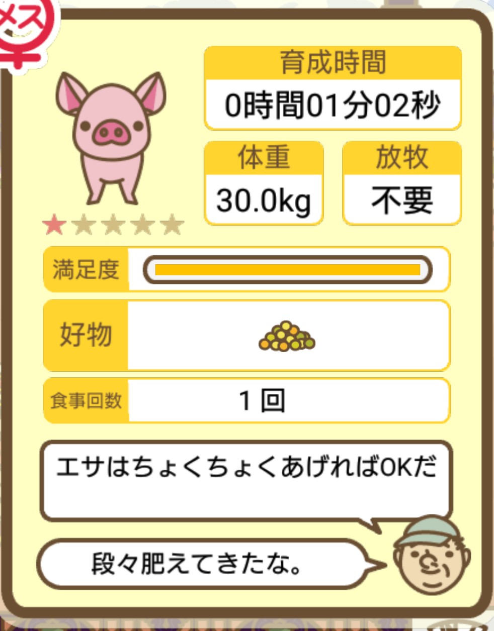 スクショないですが、放牧済、放牧場成豚、エサ3回では成功してます。(00:01成豚) -- 名無し[Ea6iFKq0LBo] 2025/11/07 (金) 21:15:25