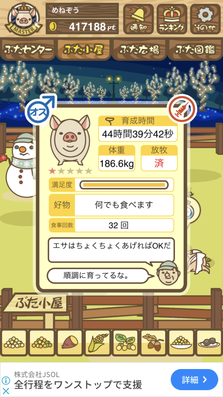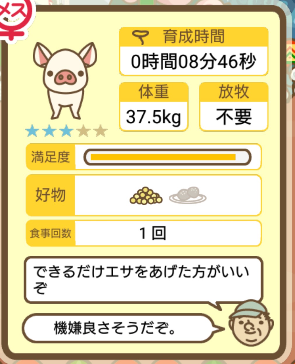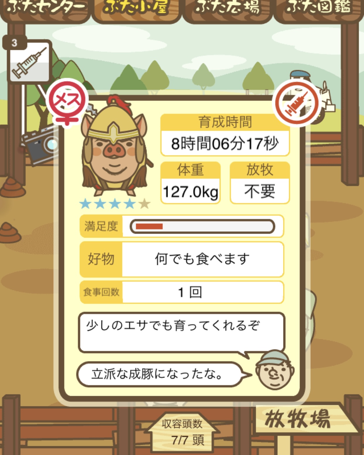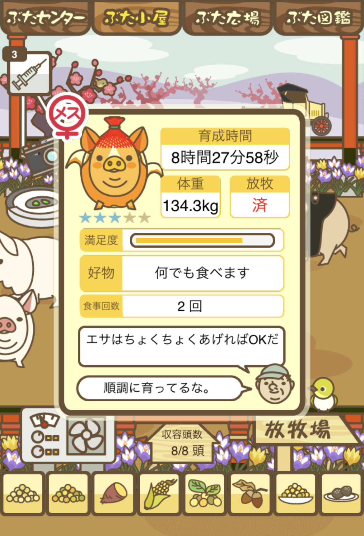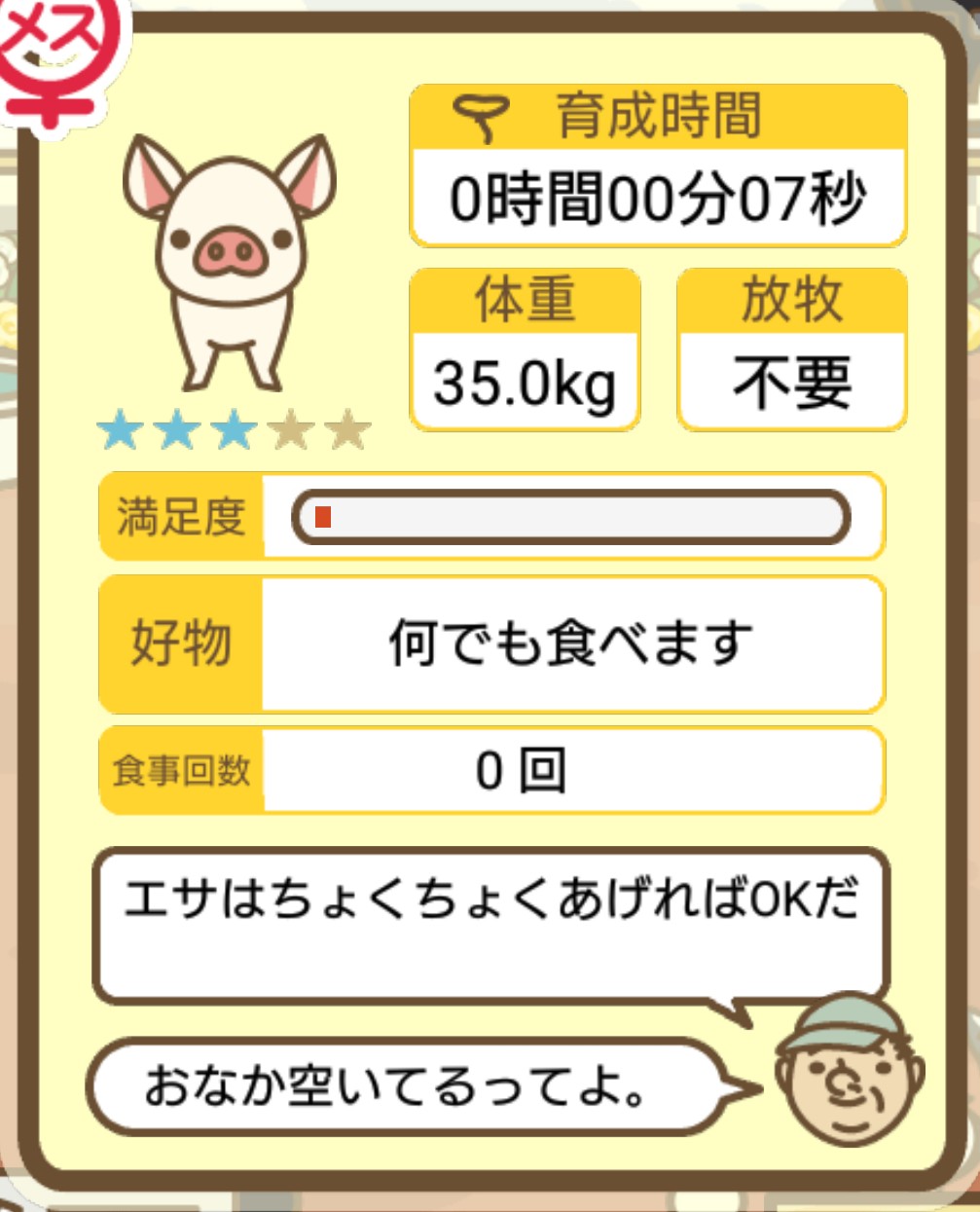 スクショないですが、放牧済、放牧場成豚、エサ3回では成功してます。(00:01成豚) -- 名無し[Ea6iFKq0LBo] 2025/11/07 (金) 21:15:25