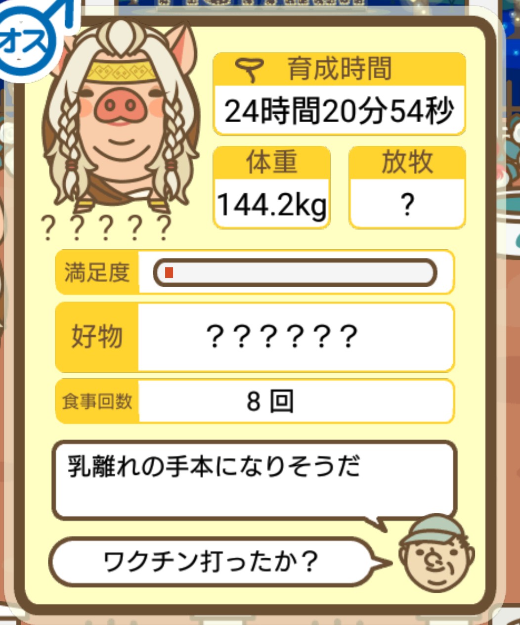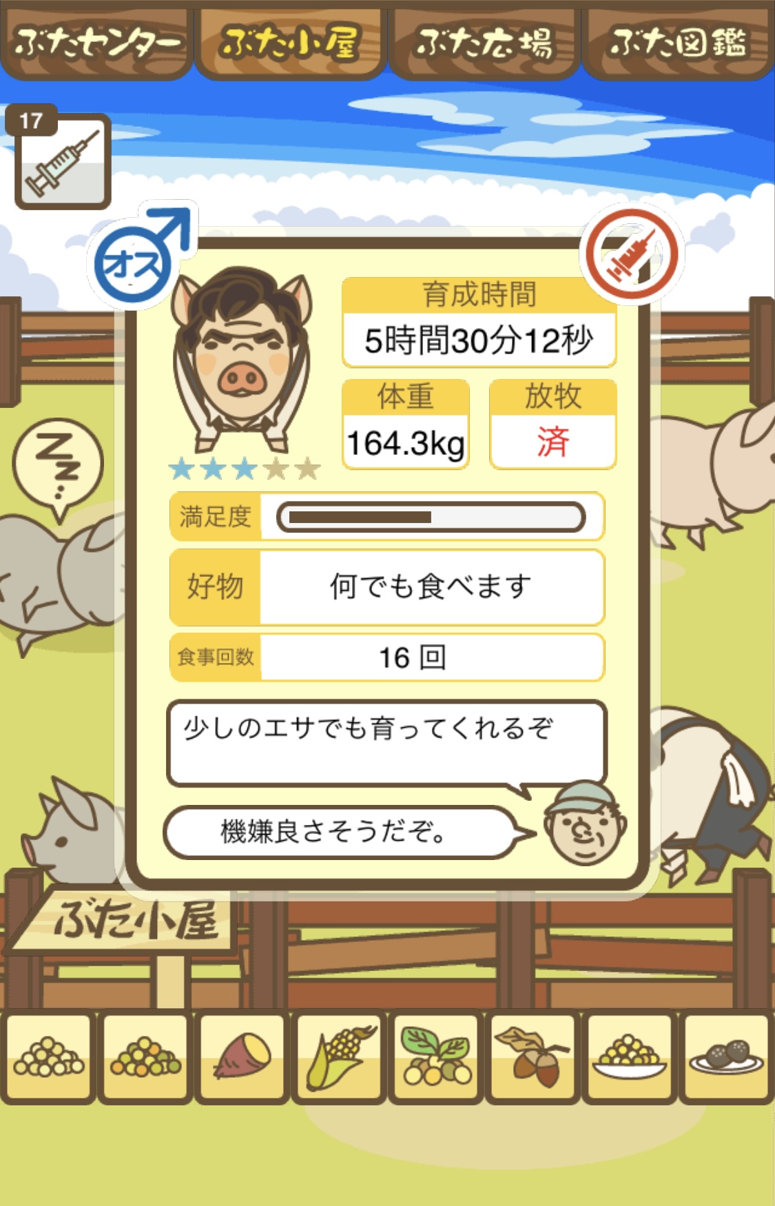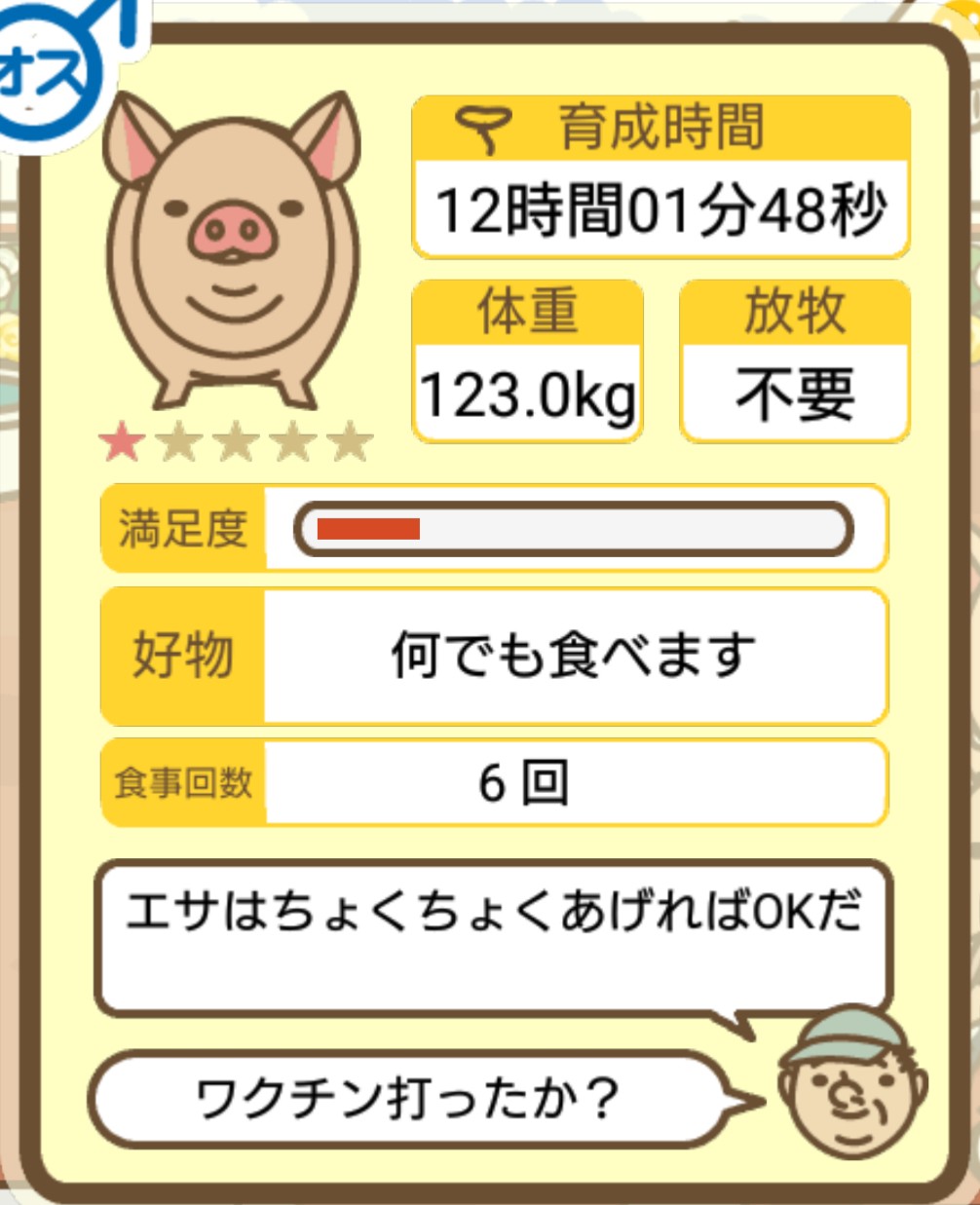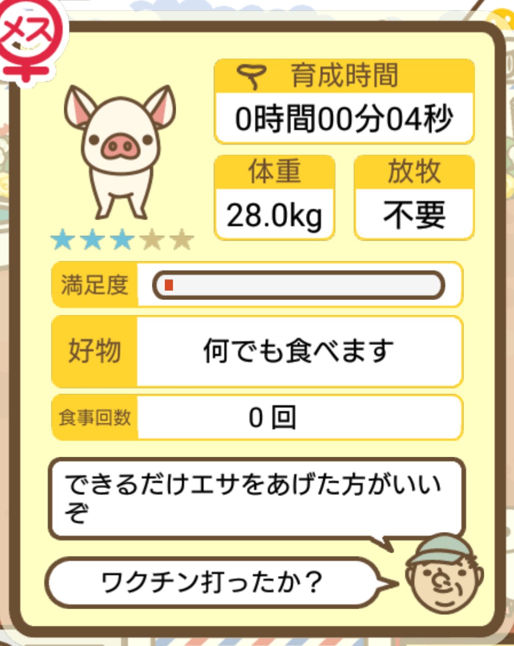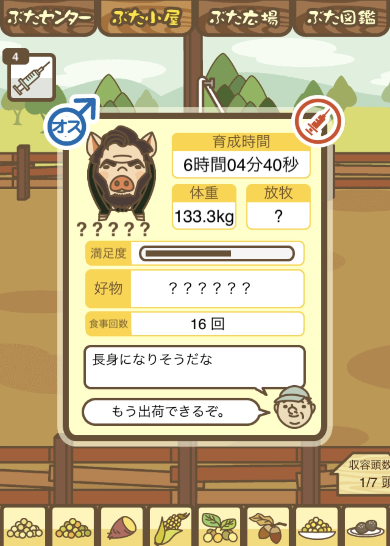 スクショないですが、放牧済、放牧場成豚、エサ3回では成功してます。(00:01成豚) -- 名無し[Ea6iFKq0LBo] 2025/11/07 (金) 21:15:25