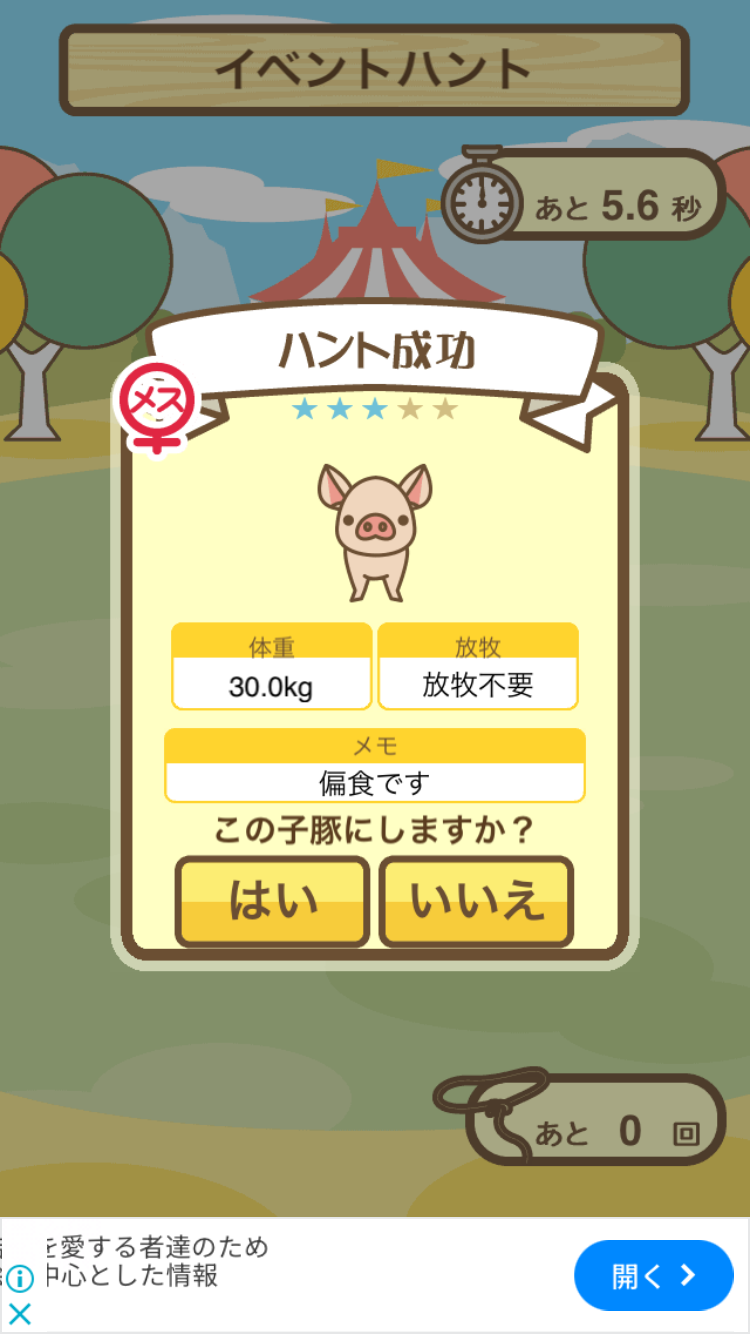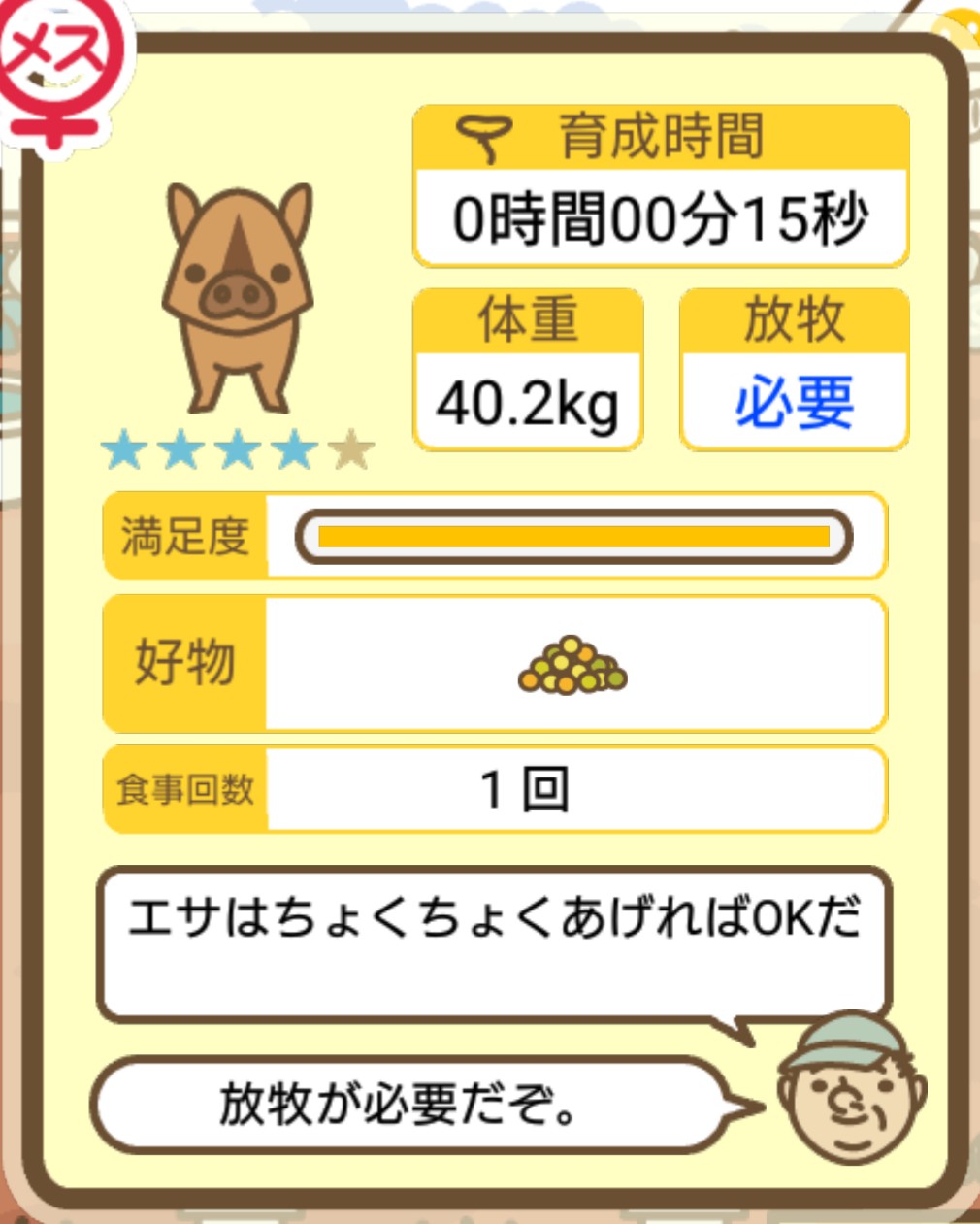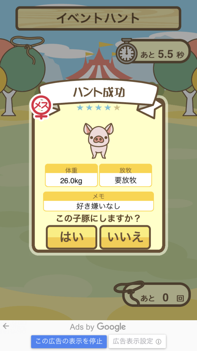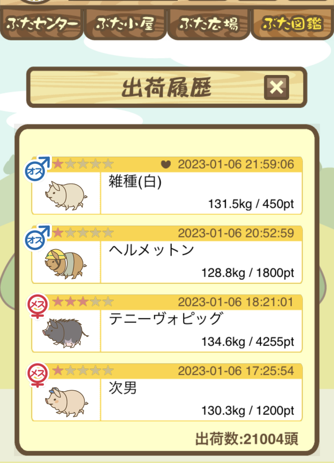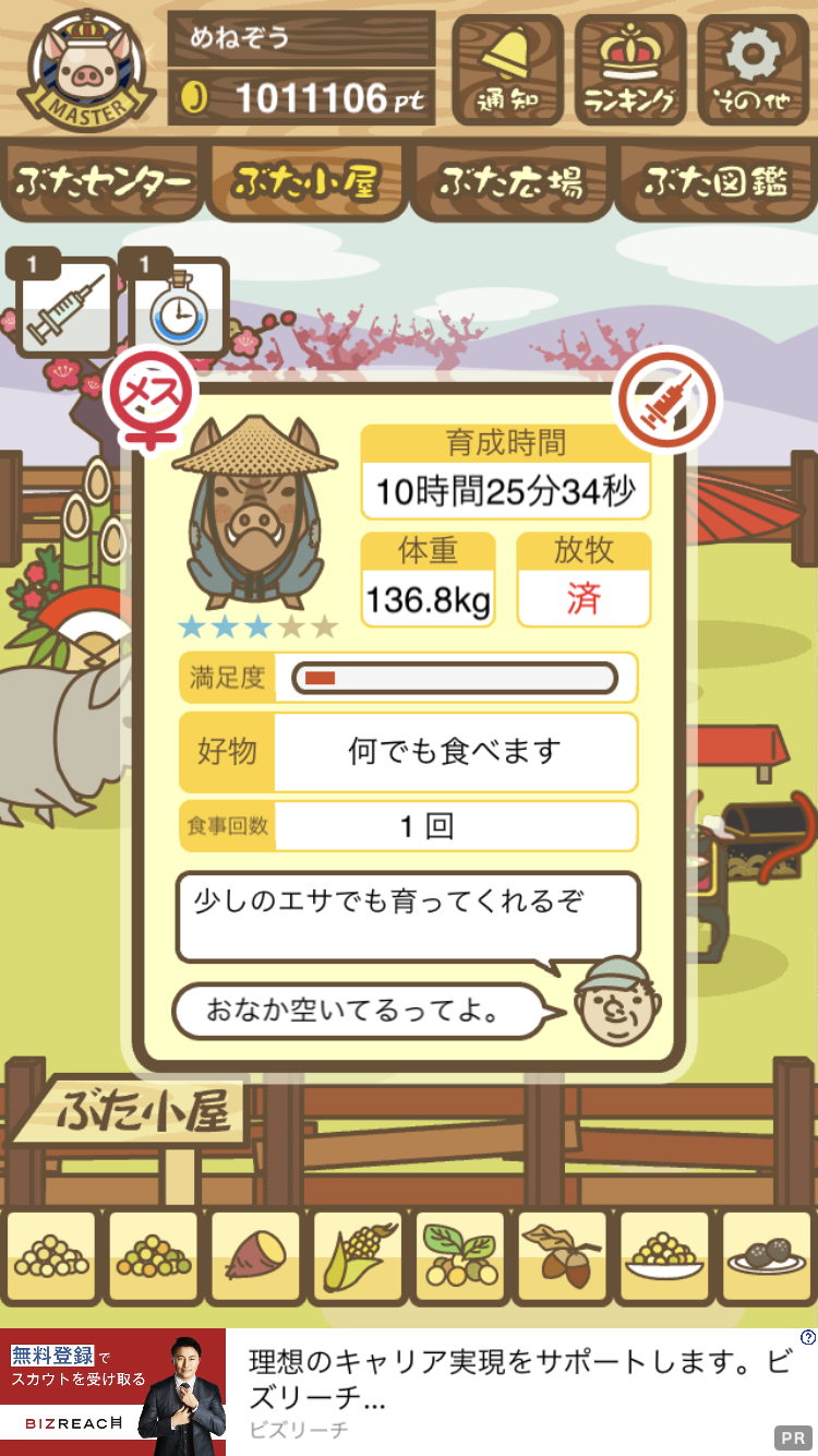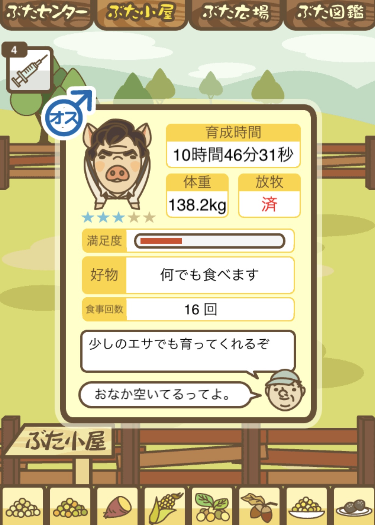 スクショないですが、放牧済、放牧場成豚、エサ3回では成功してます。(00:01成豚) -- 名無し[Ea6iFKq0LBo] 2025/11/07 (金) 21:15:25