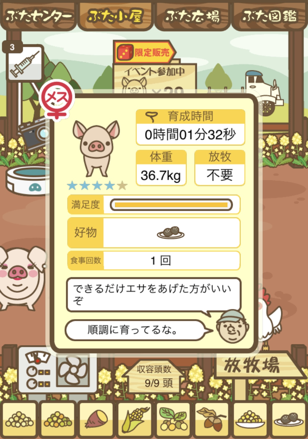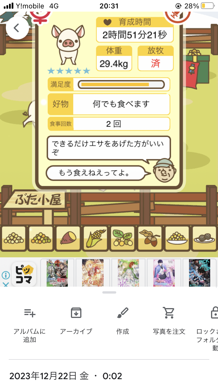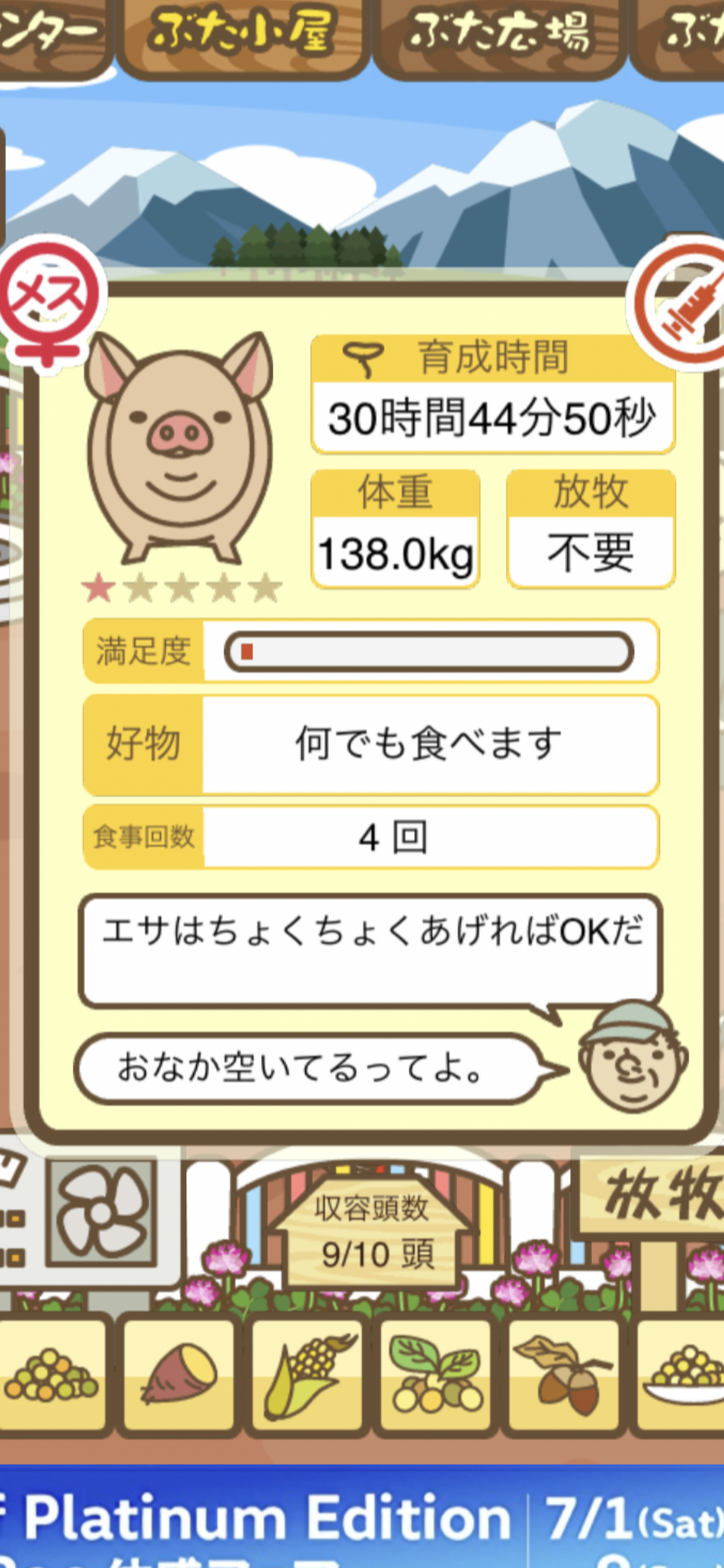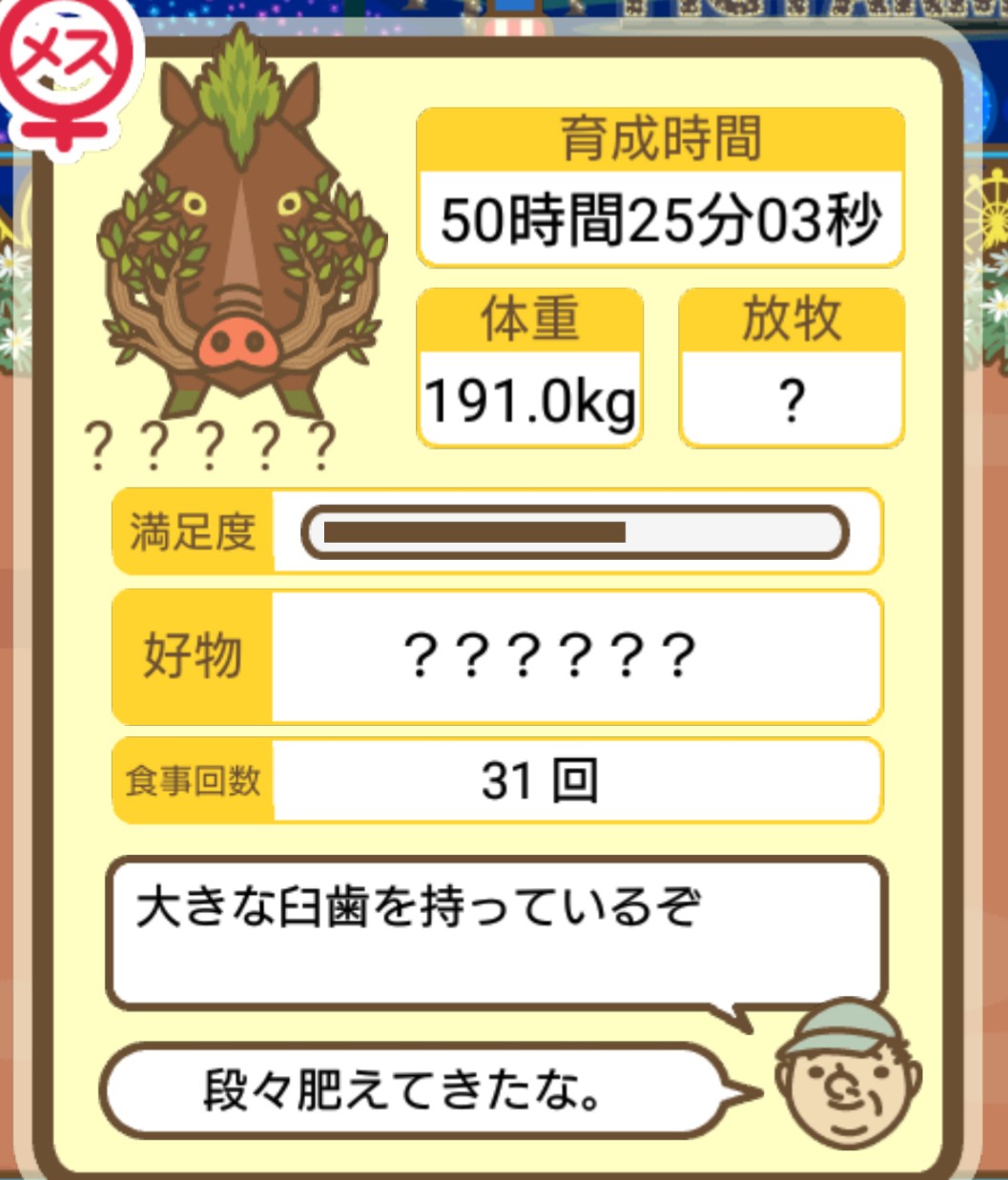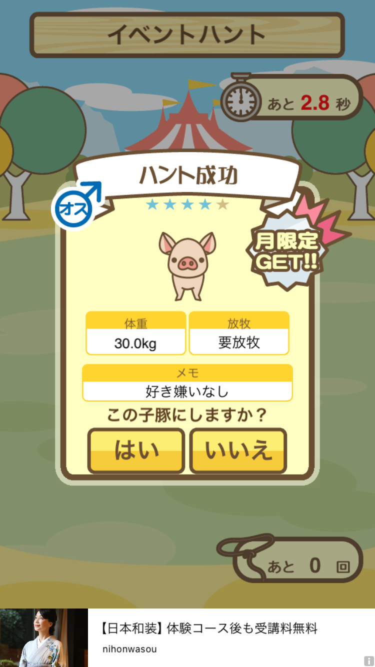 スクショないですが、放牧済、放牧場成豚、エサ3回では成功してます。(00:01成豚) -- 名無し[Ea6iFKq0LBo] 2025/11/07 (金) 21:15:25