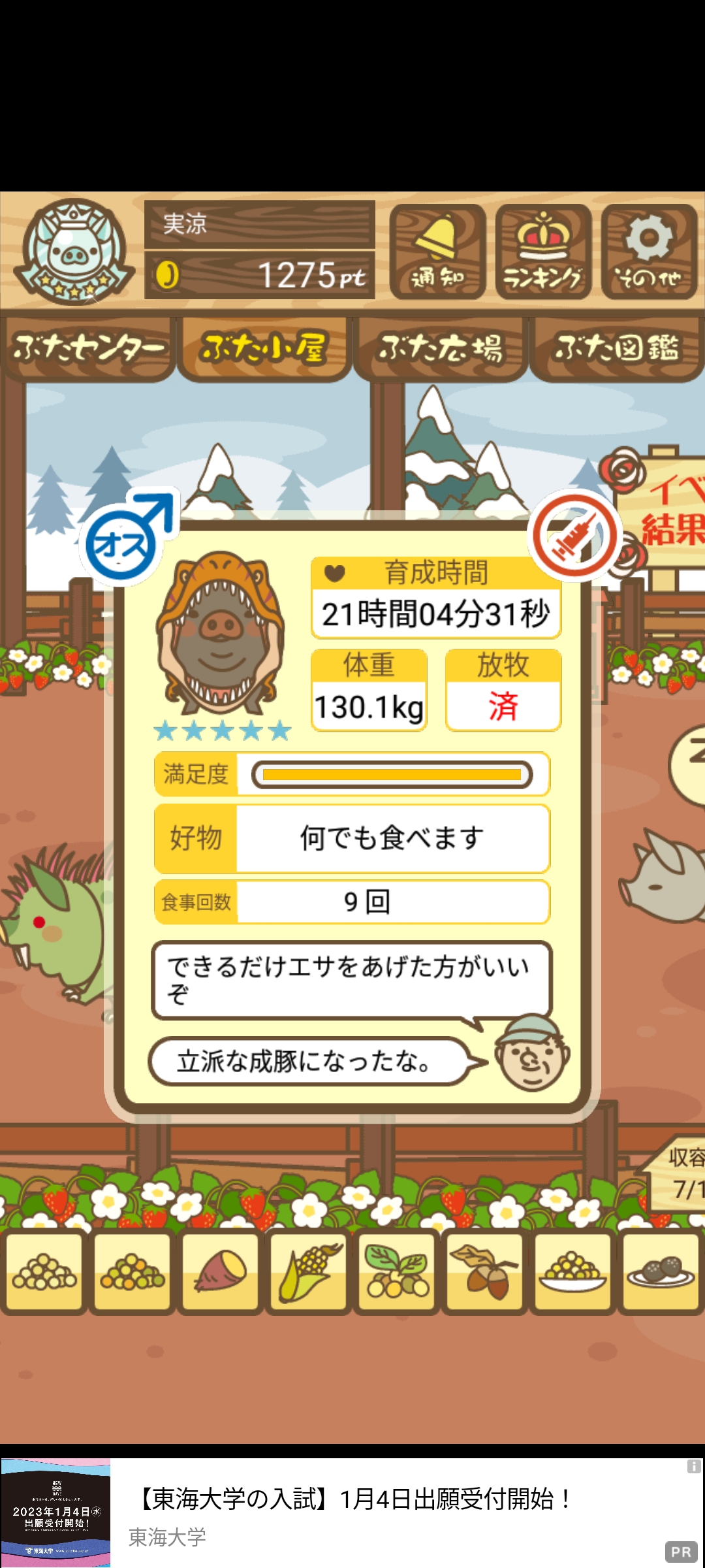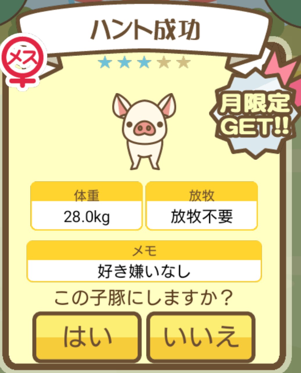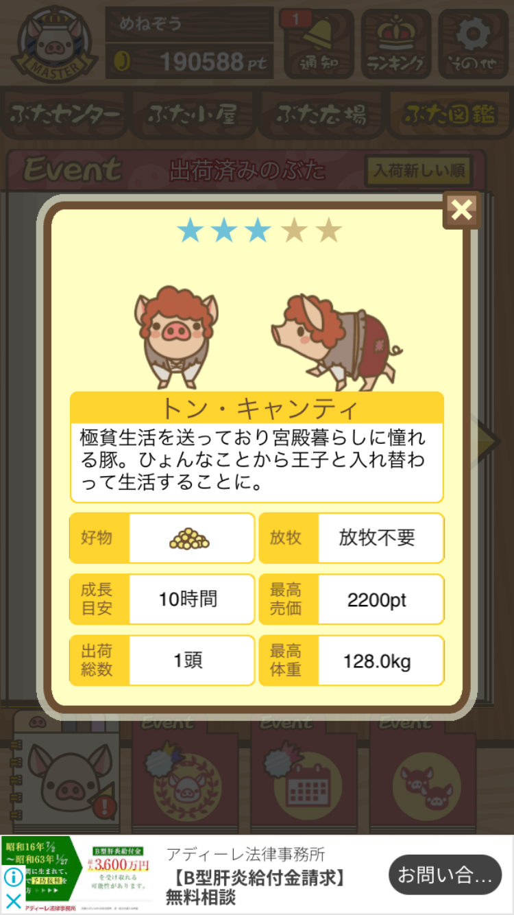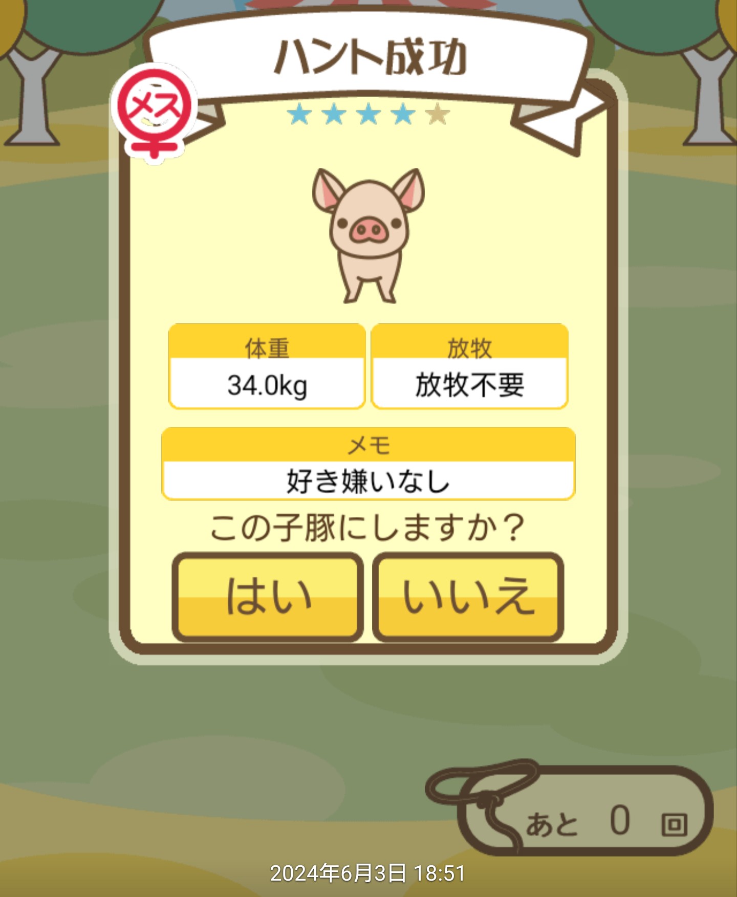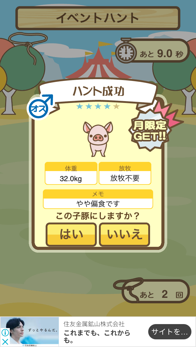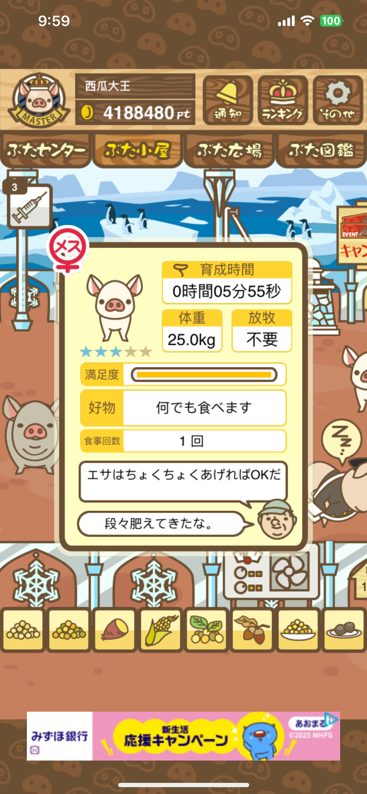スクショないですが、放牧済、放牧場成豚、エサ3回では成功してます。(00:01成豚) -- 名無し[Ea6iFKq0LBo] 2025/11/07 (金) 21:15:25