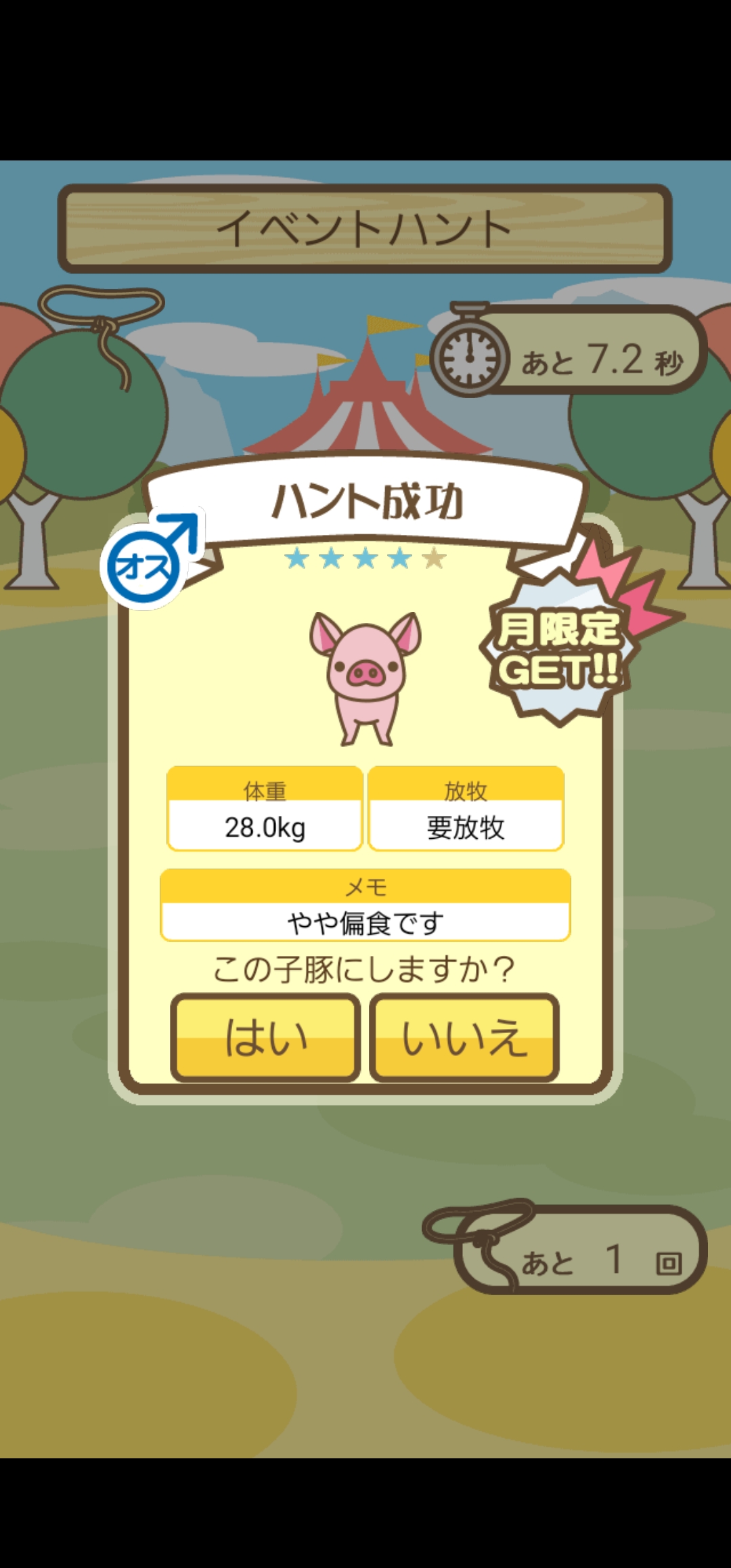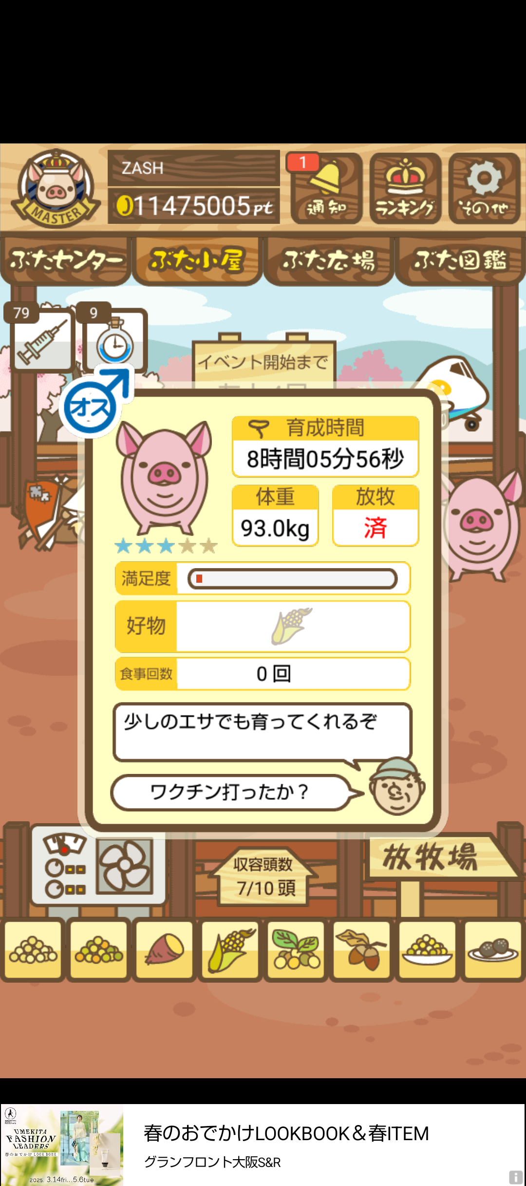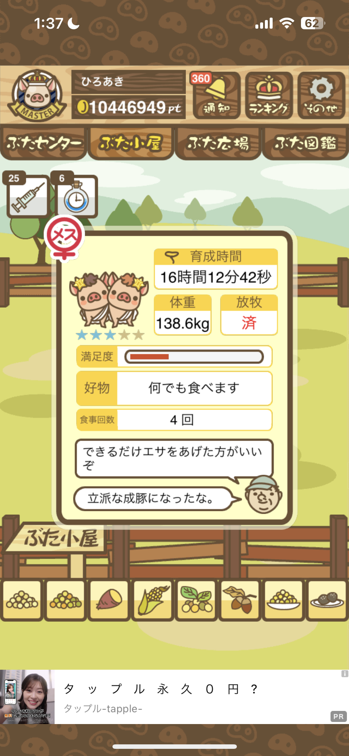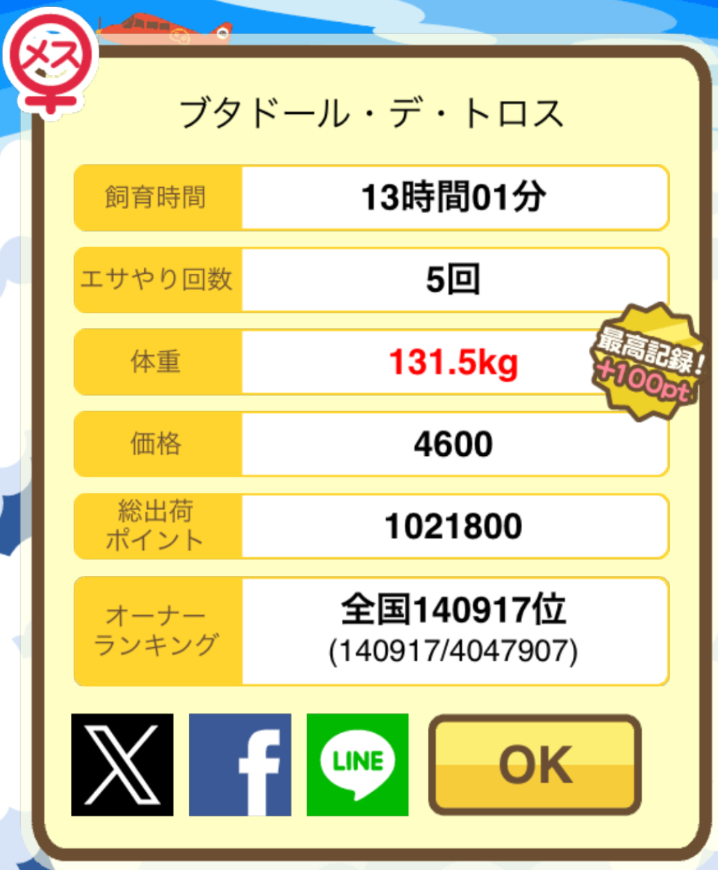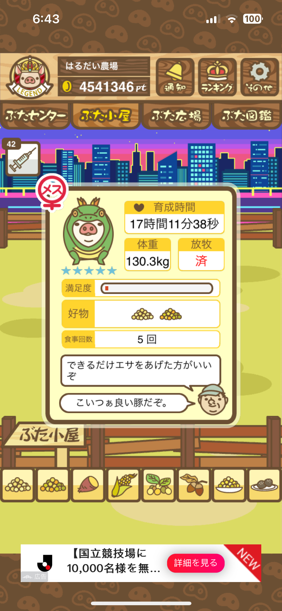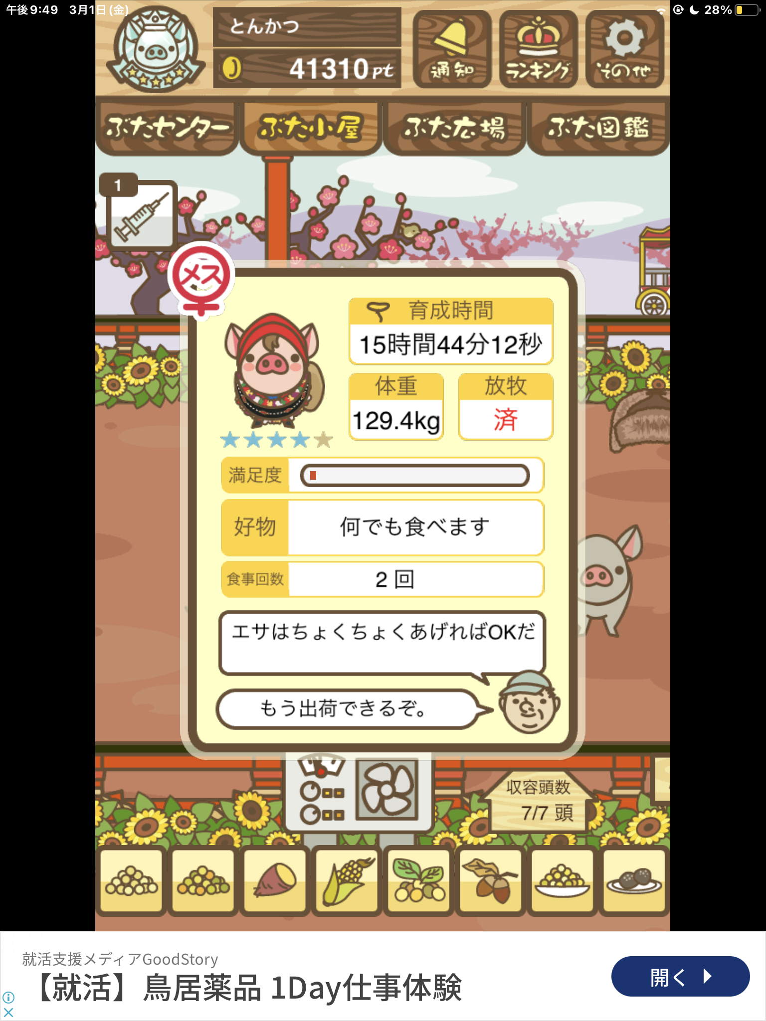 スクショないですが、放牧済、放牧場成豚、エサ3回では成功してます。(00:01成豚) -- 名無し[Ea6iFKq0LBo] 2025/11/07 (金) 21:15:25
