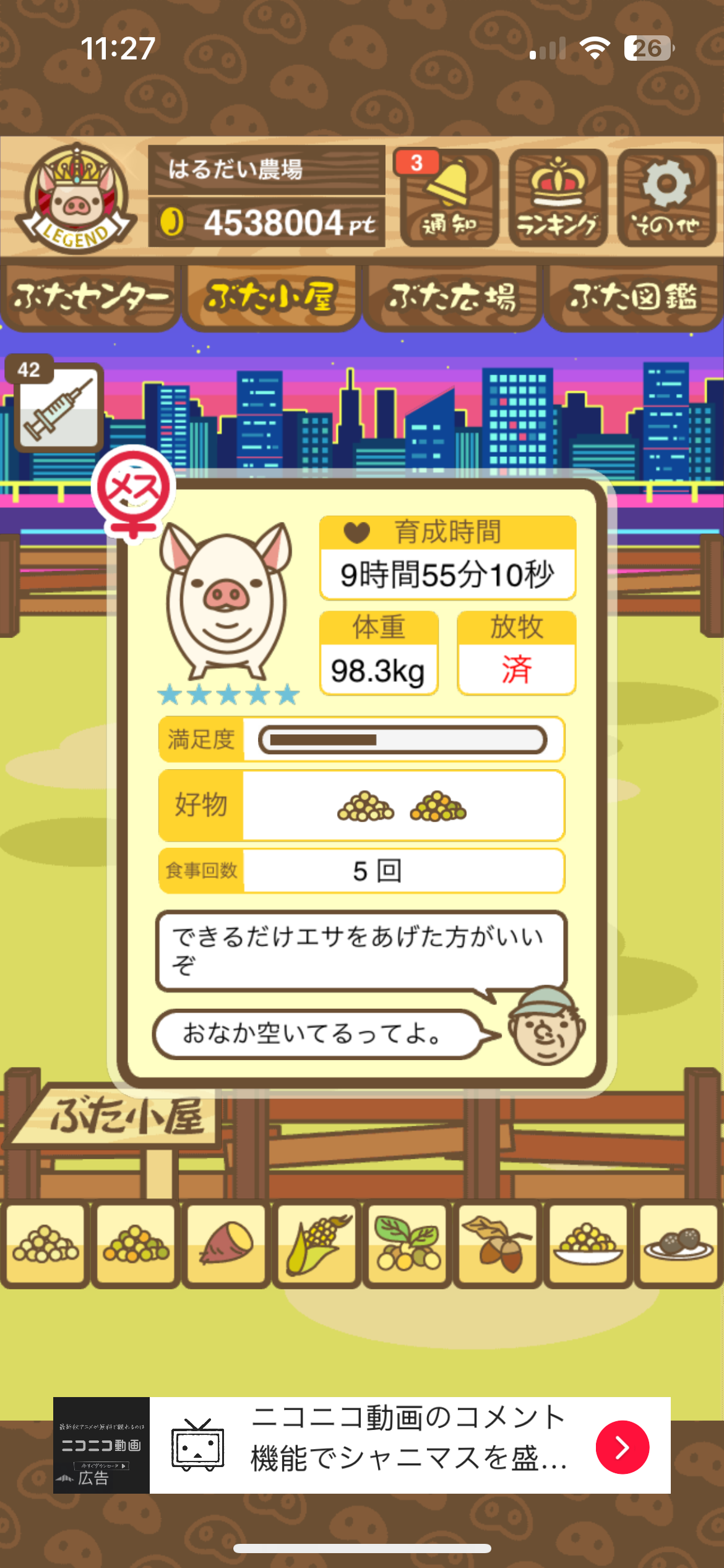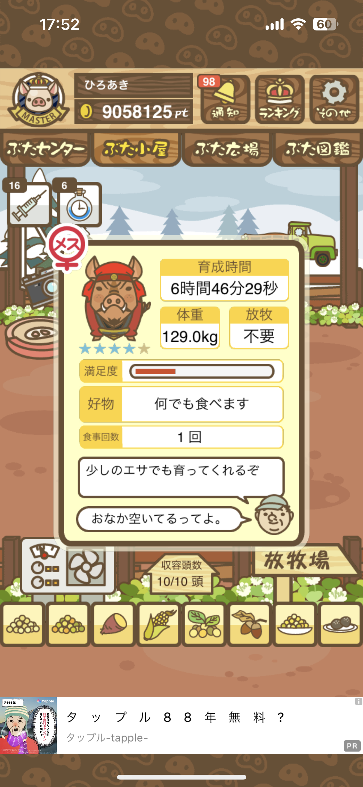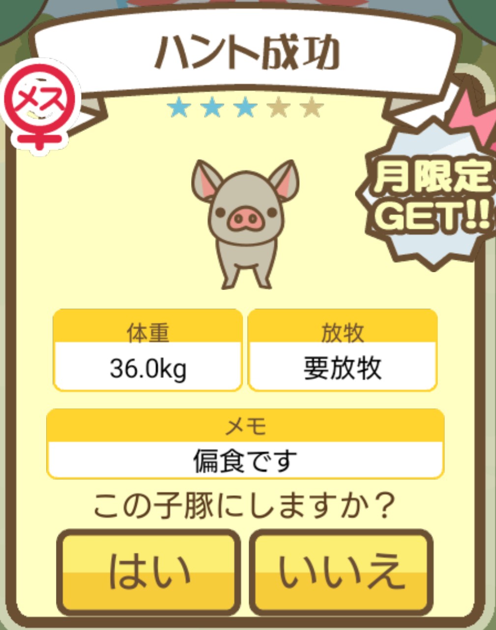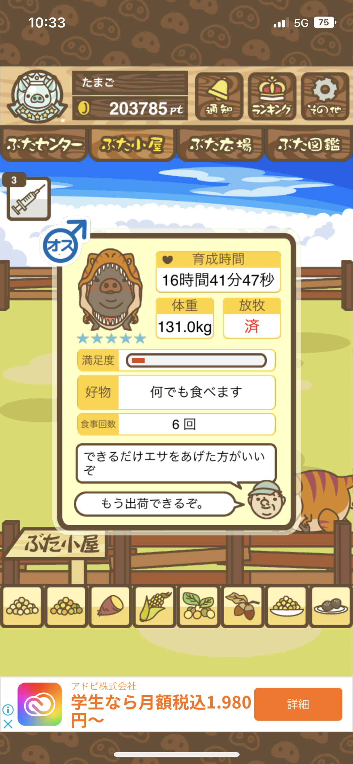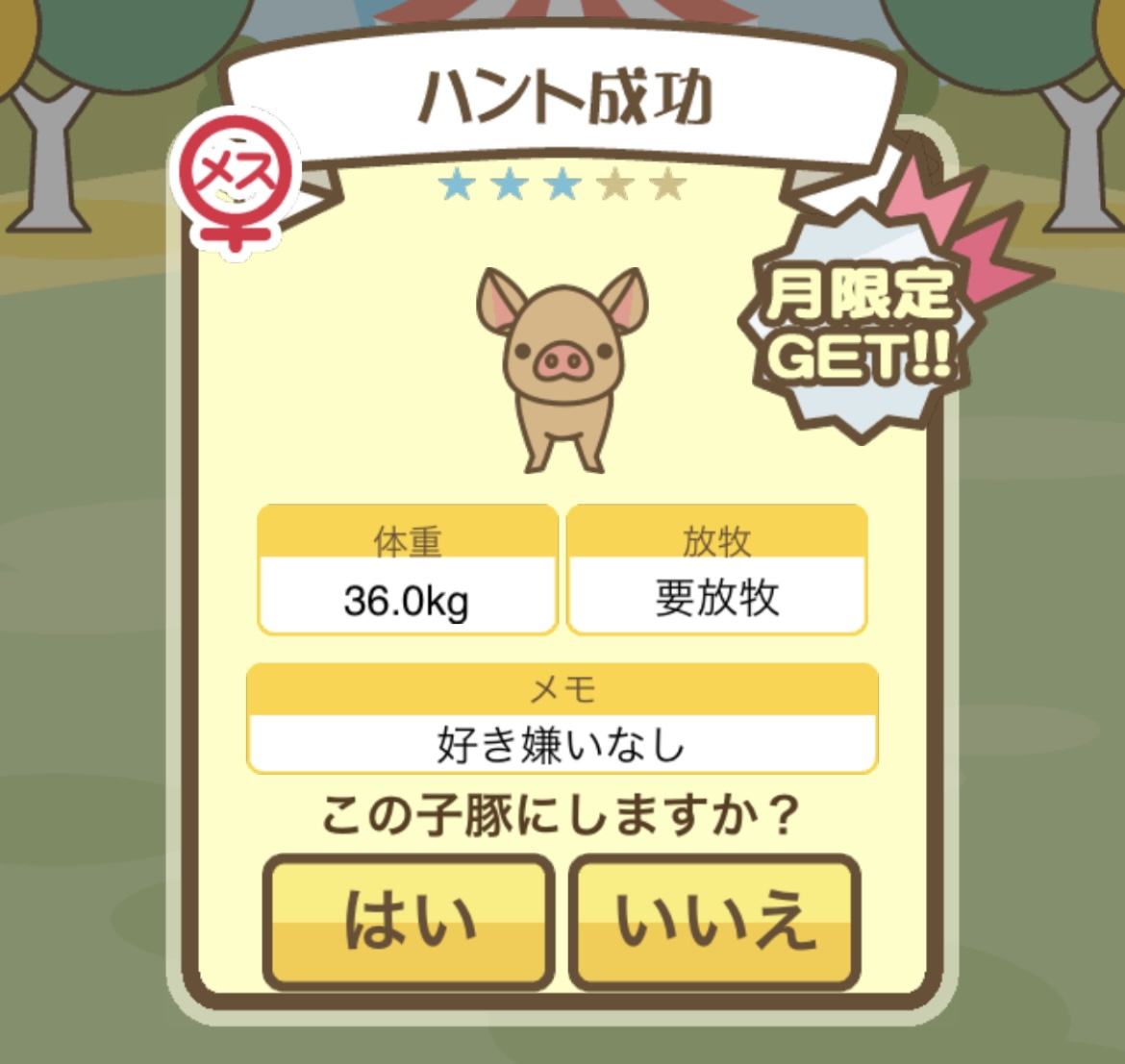 スクショないですが、放牧済、放牧場成豚、エサ3回では成功してます。(00:01成豚) -- 名無し[Ea6iFKq0LBo] 2025/11/07 (金) 21:15:25