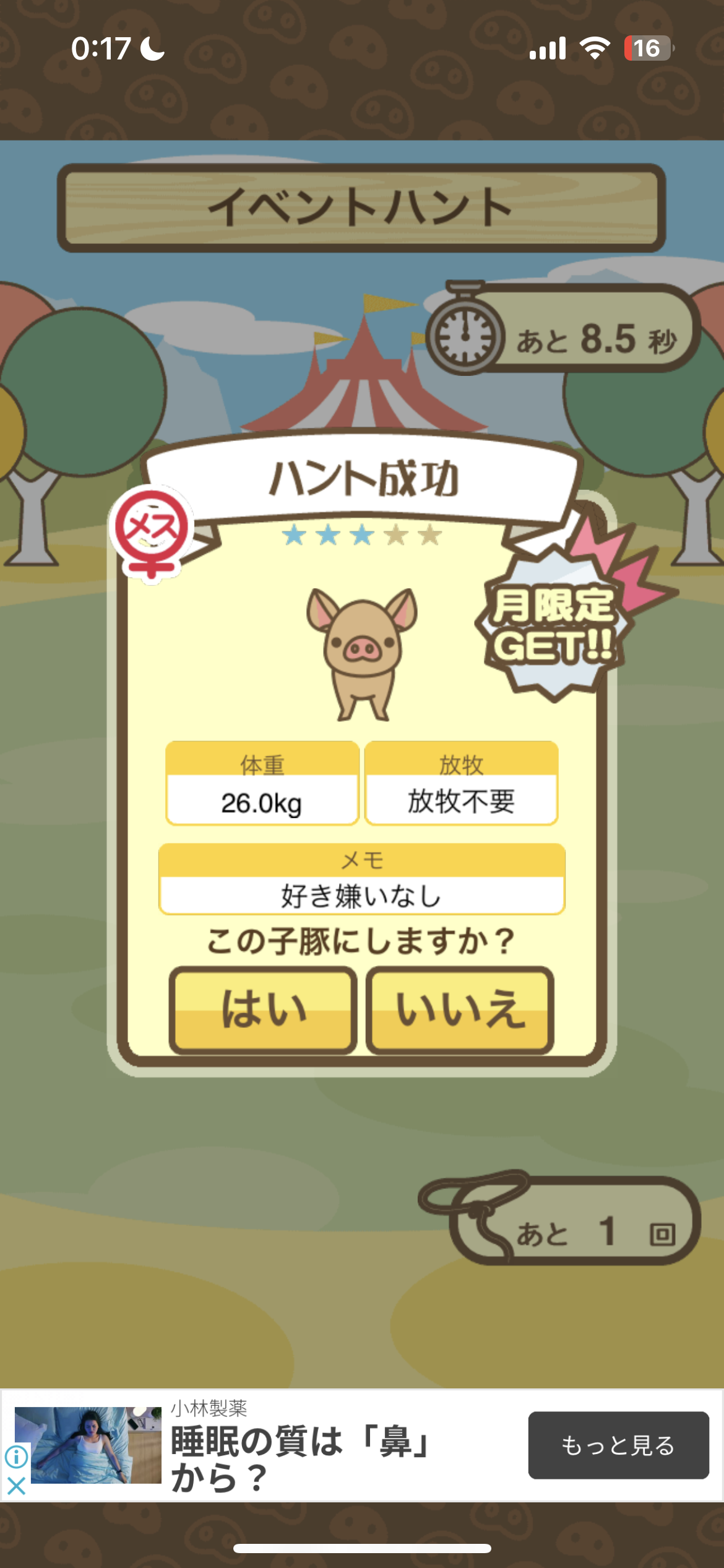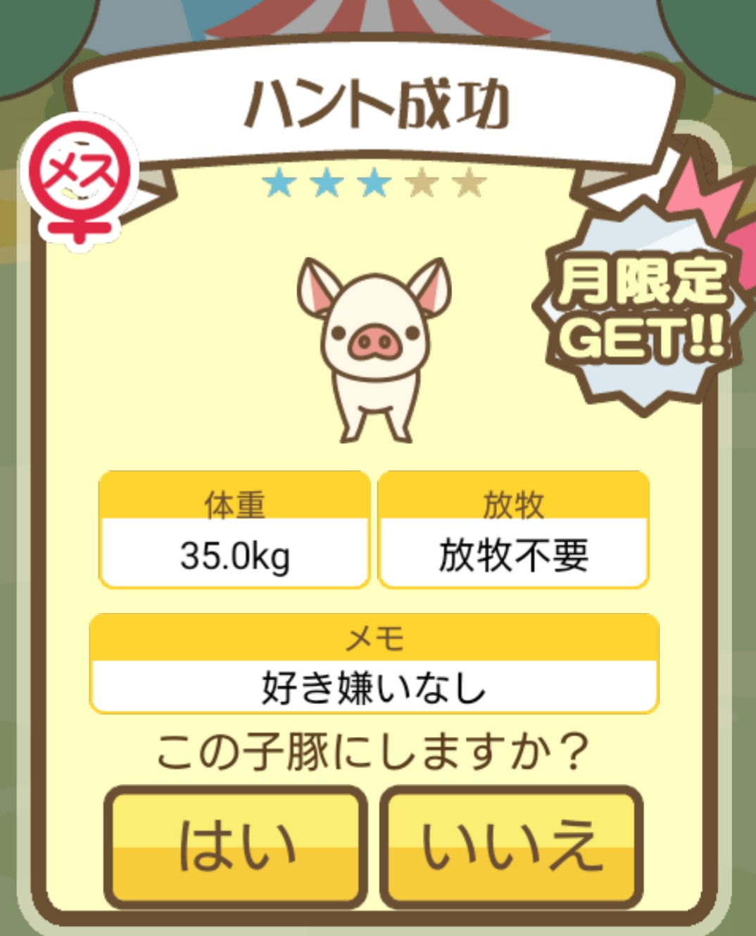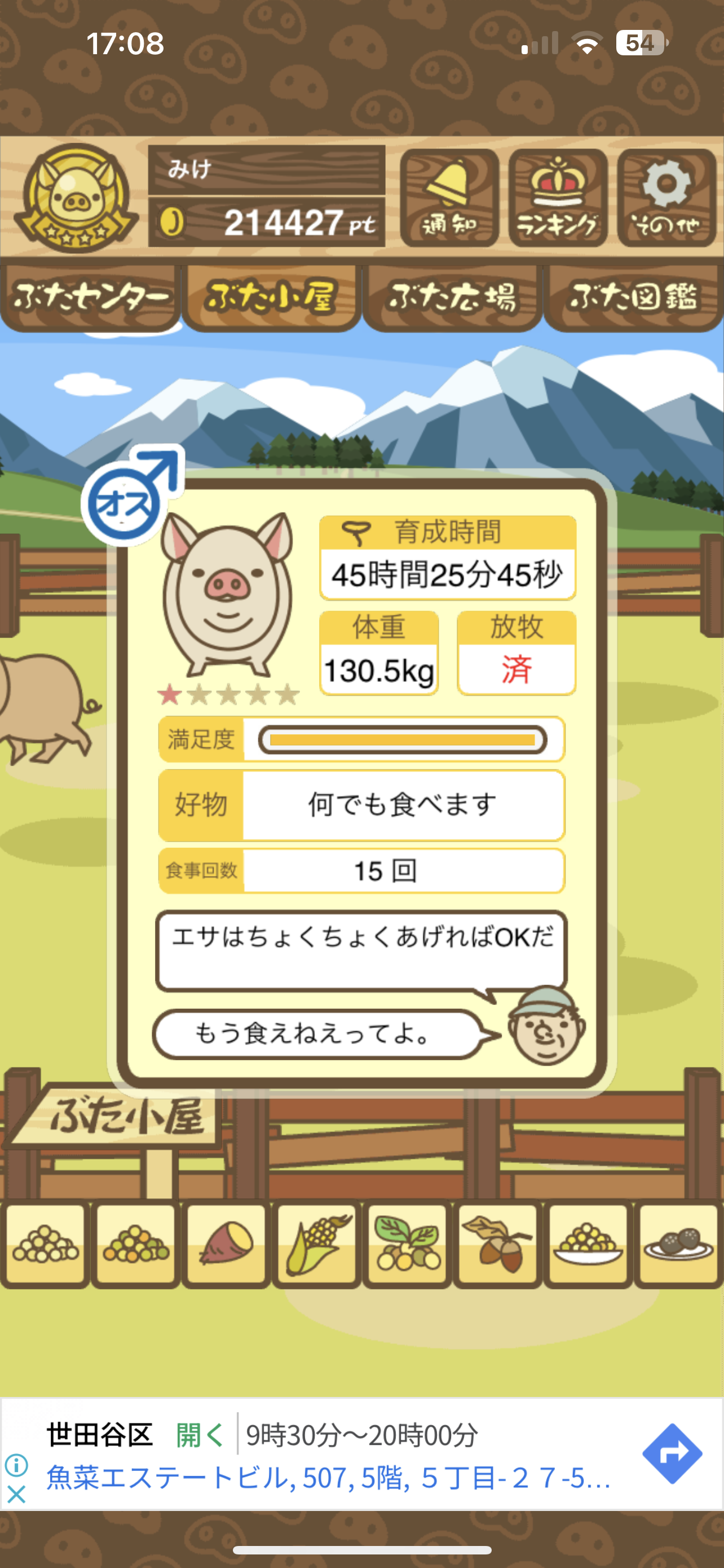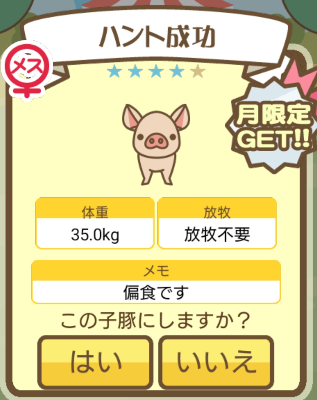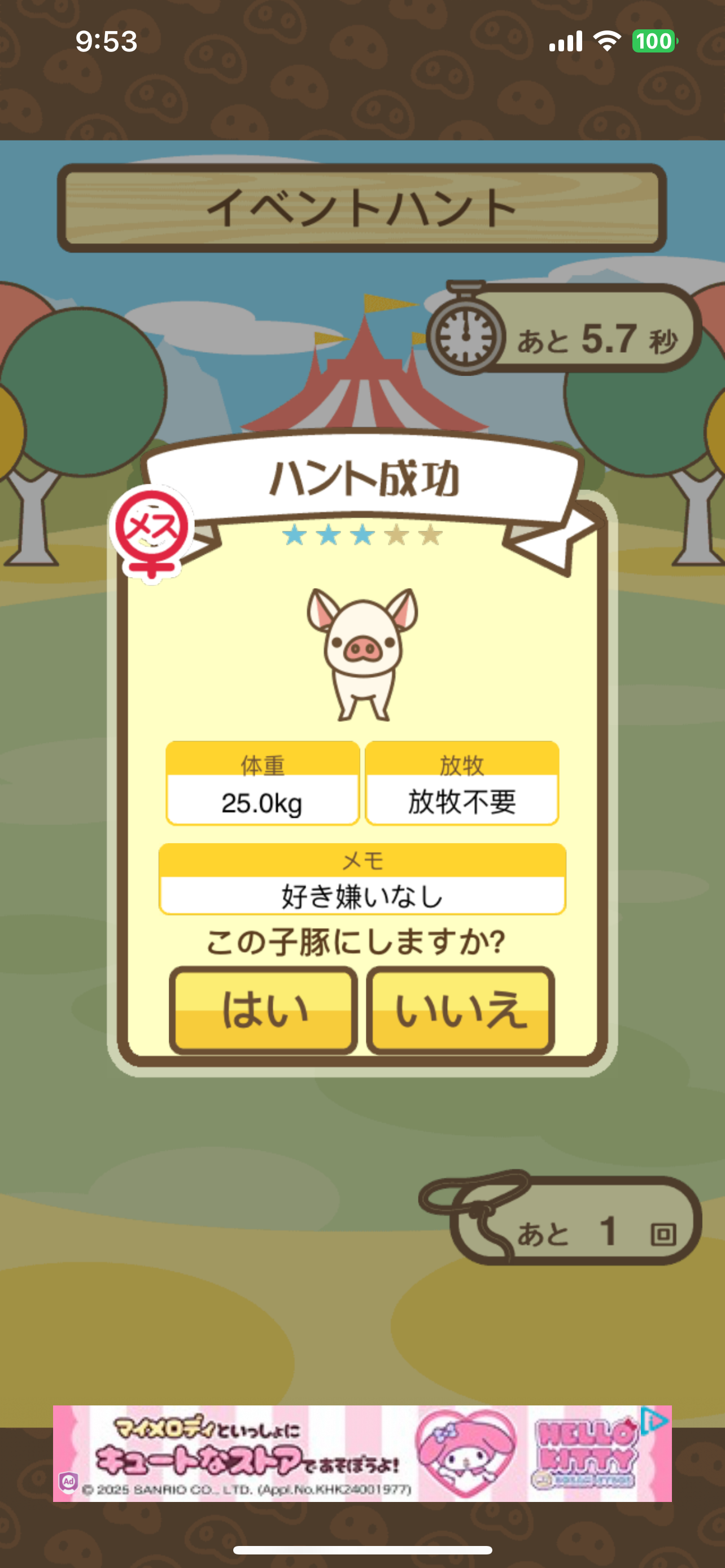 スクショないですが、放牧済、放牧場成豚、エサ3回では成功してます。(00:01成豚) -- 名無し[Ea6iFKq0LBo] 2025/11/07 (金) 21:15:25