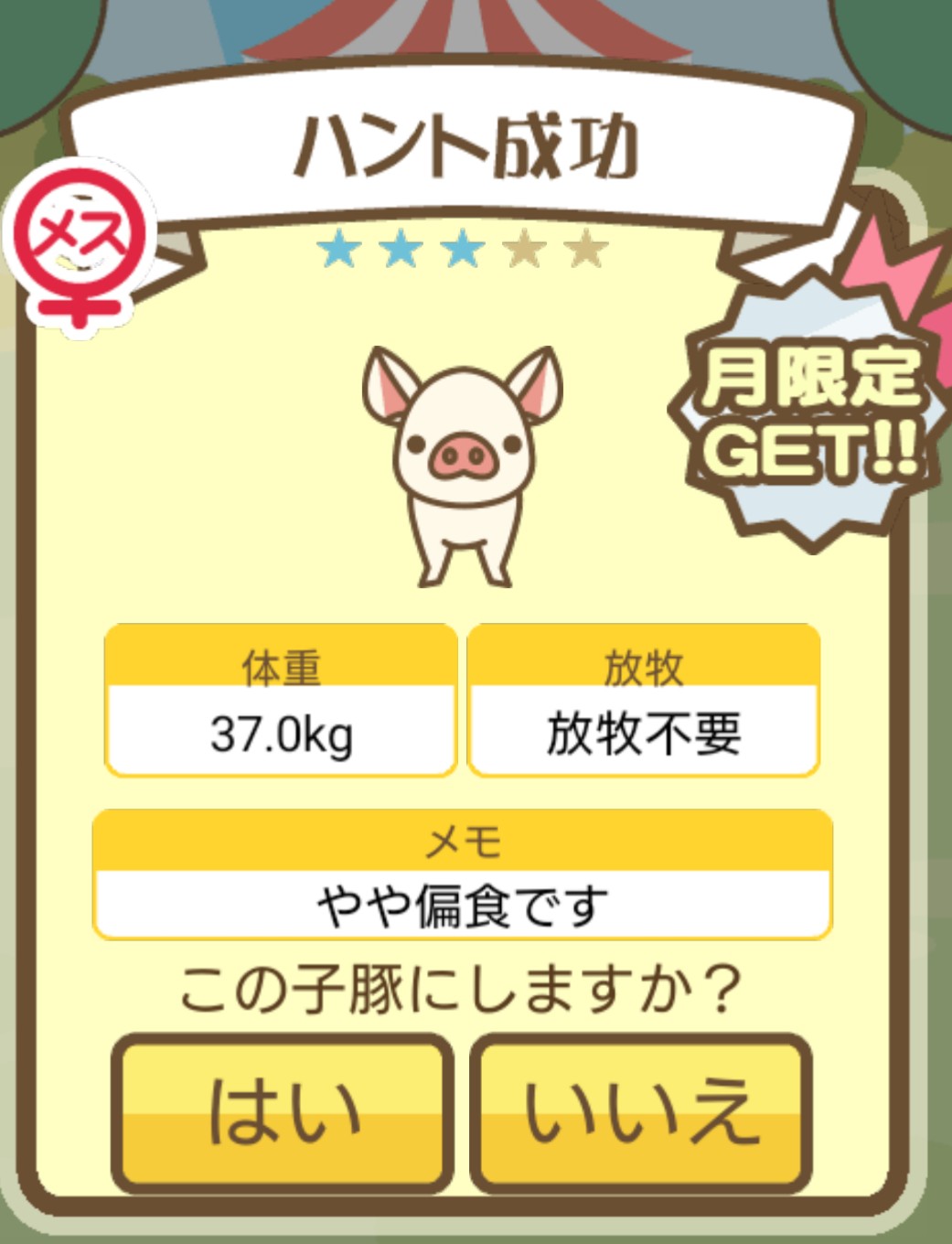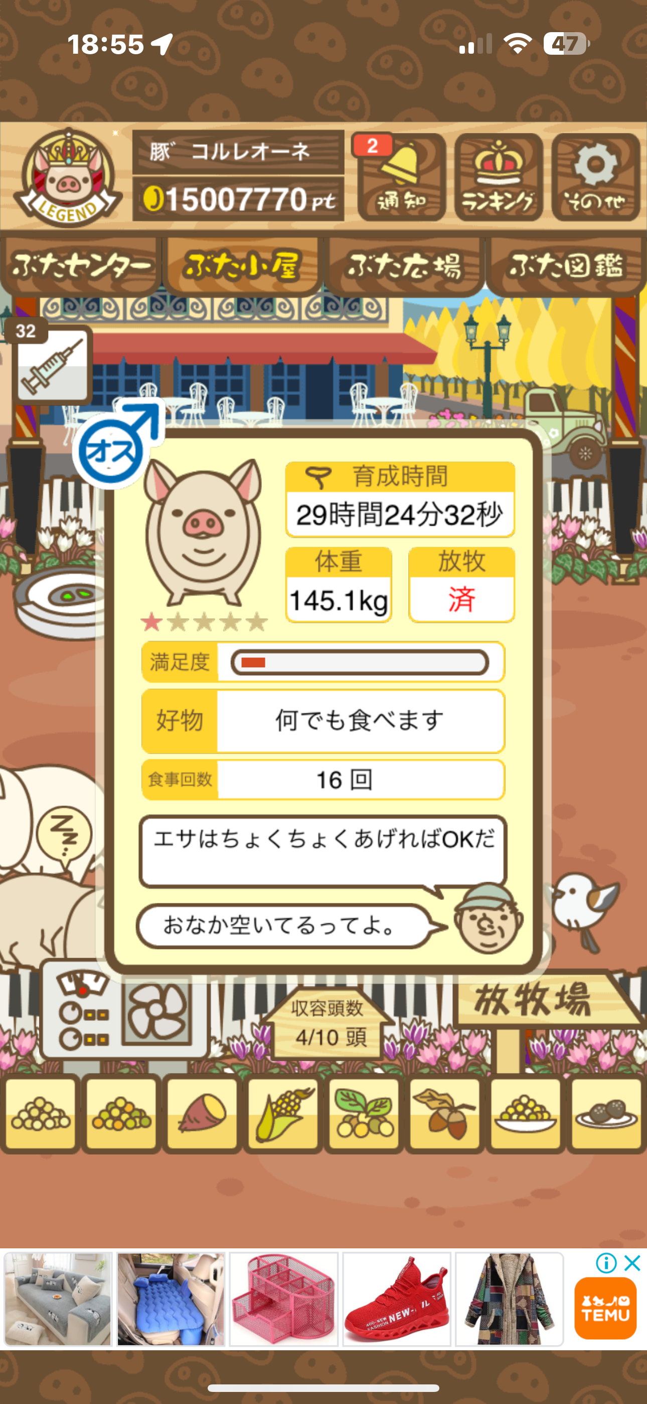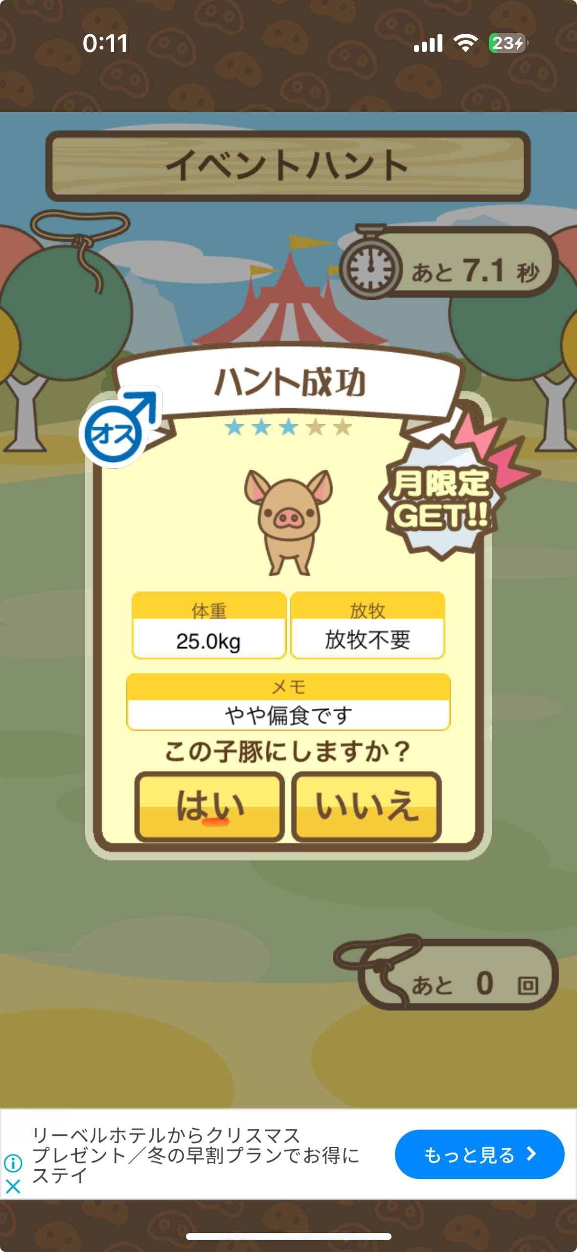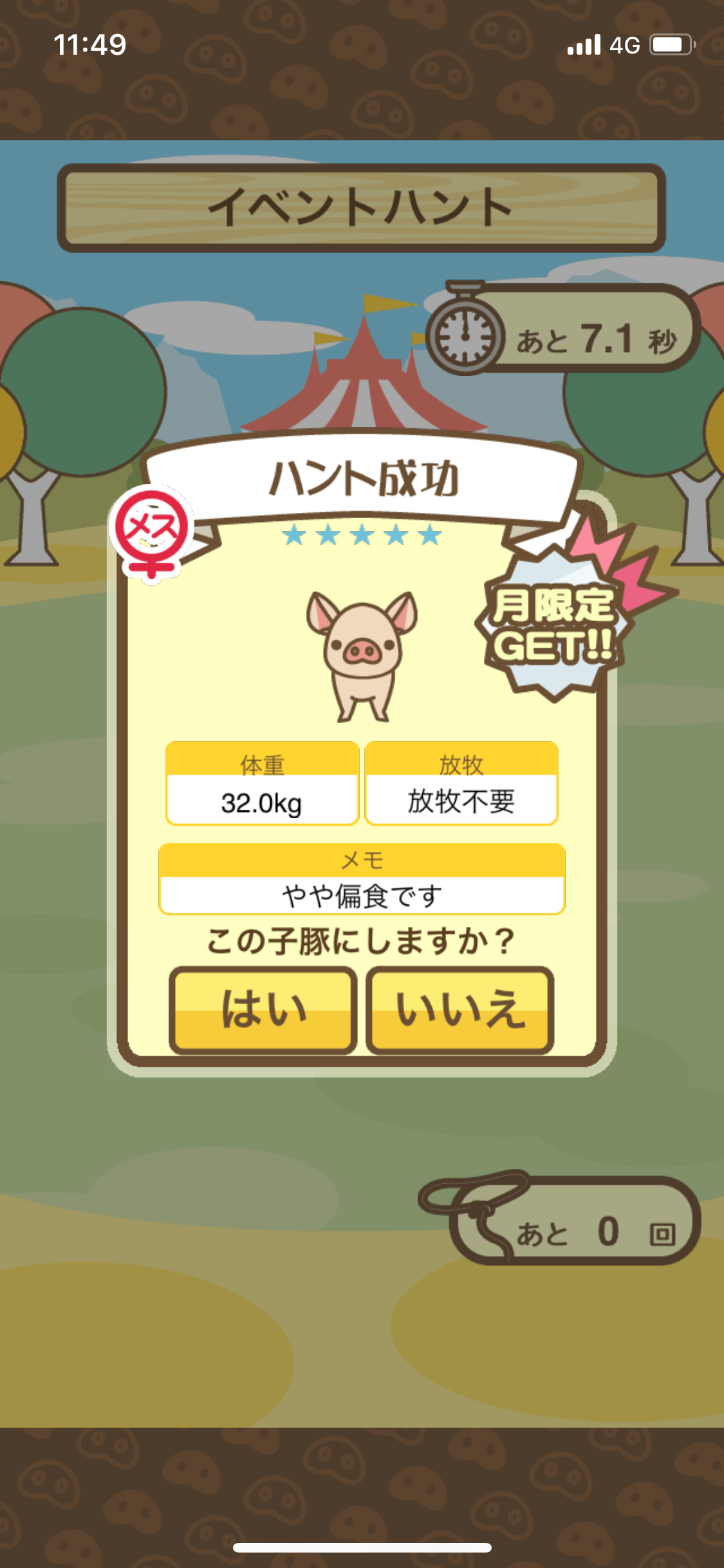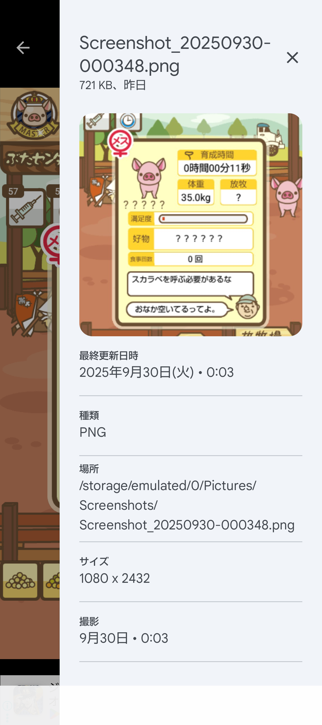スクショないですが、放牧済、放牧場成豚、エサ3回では成功してます。(00:01成豚) -- 名無し[Ea6iFKq0LBo] 2025/11/07 (金) 21:15:25