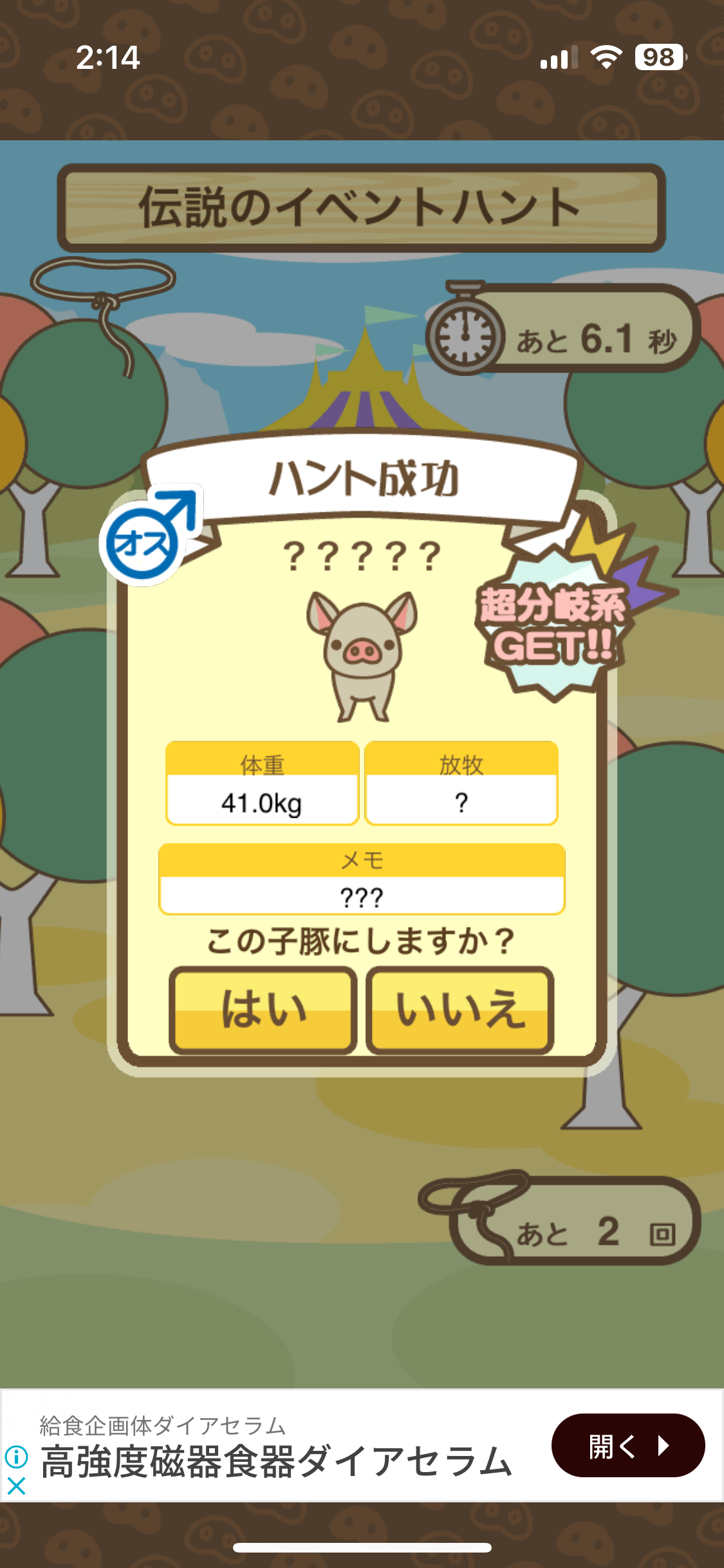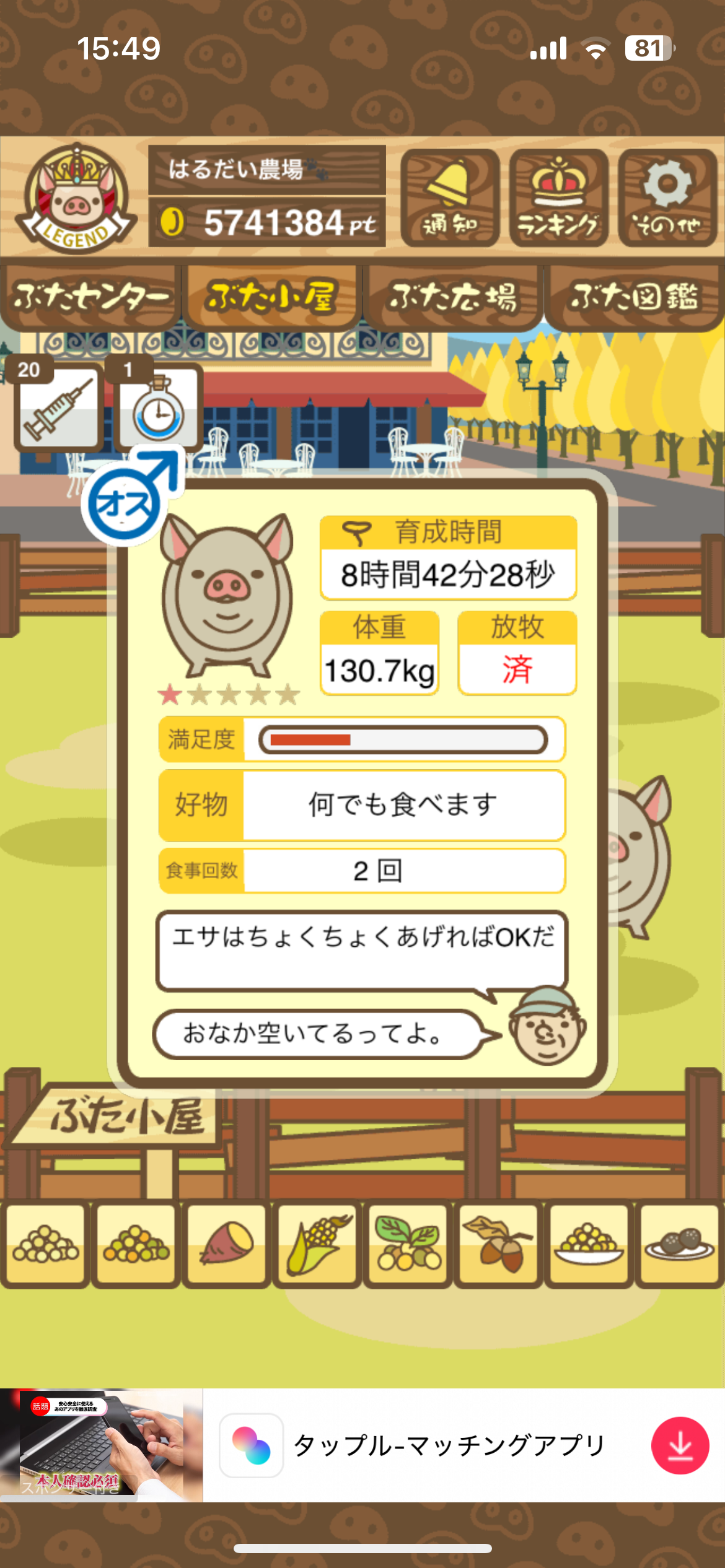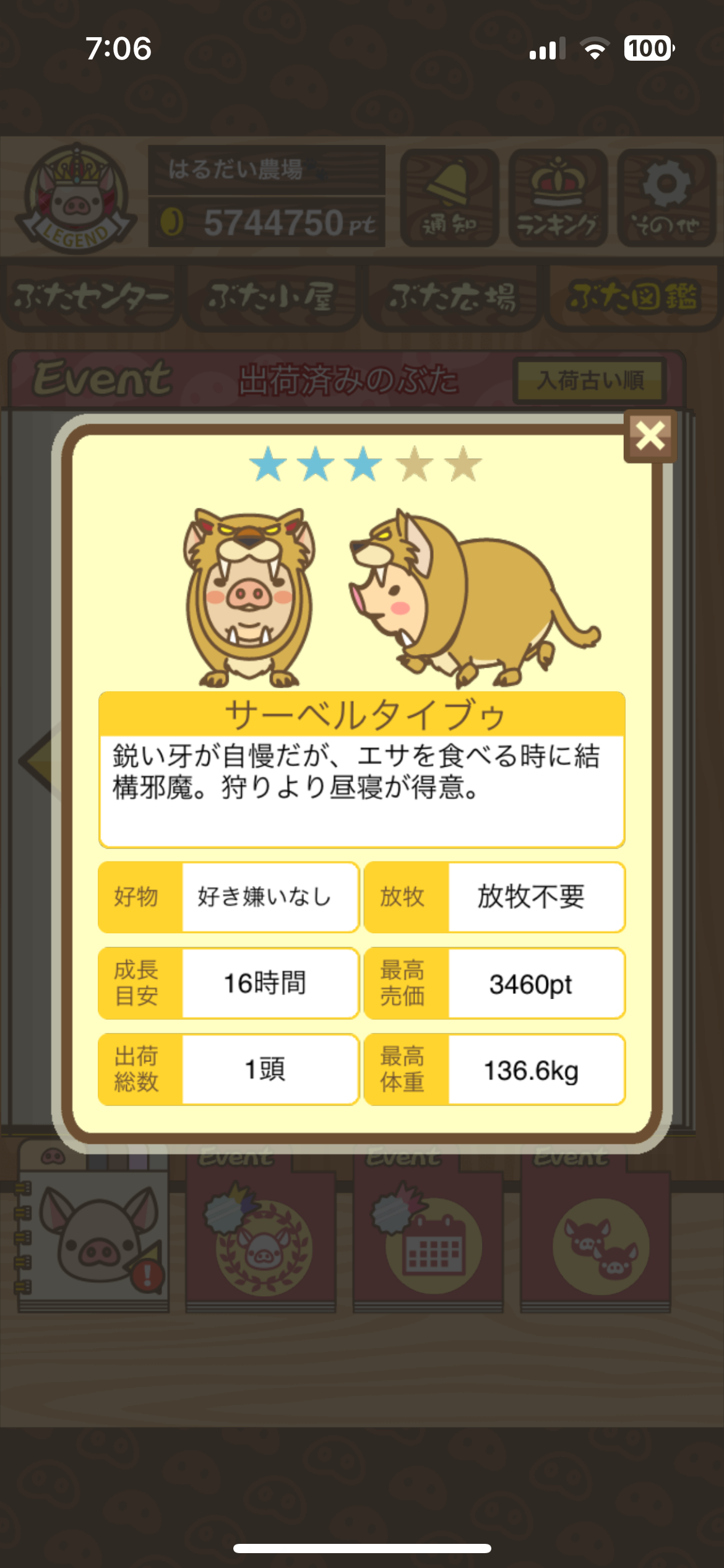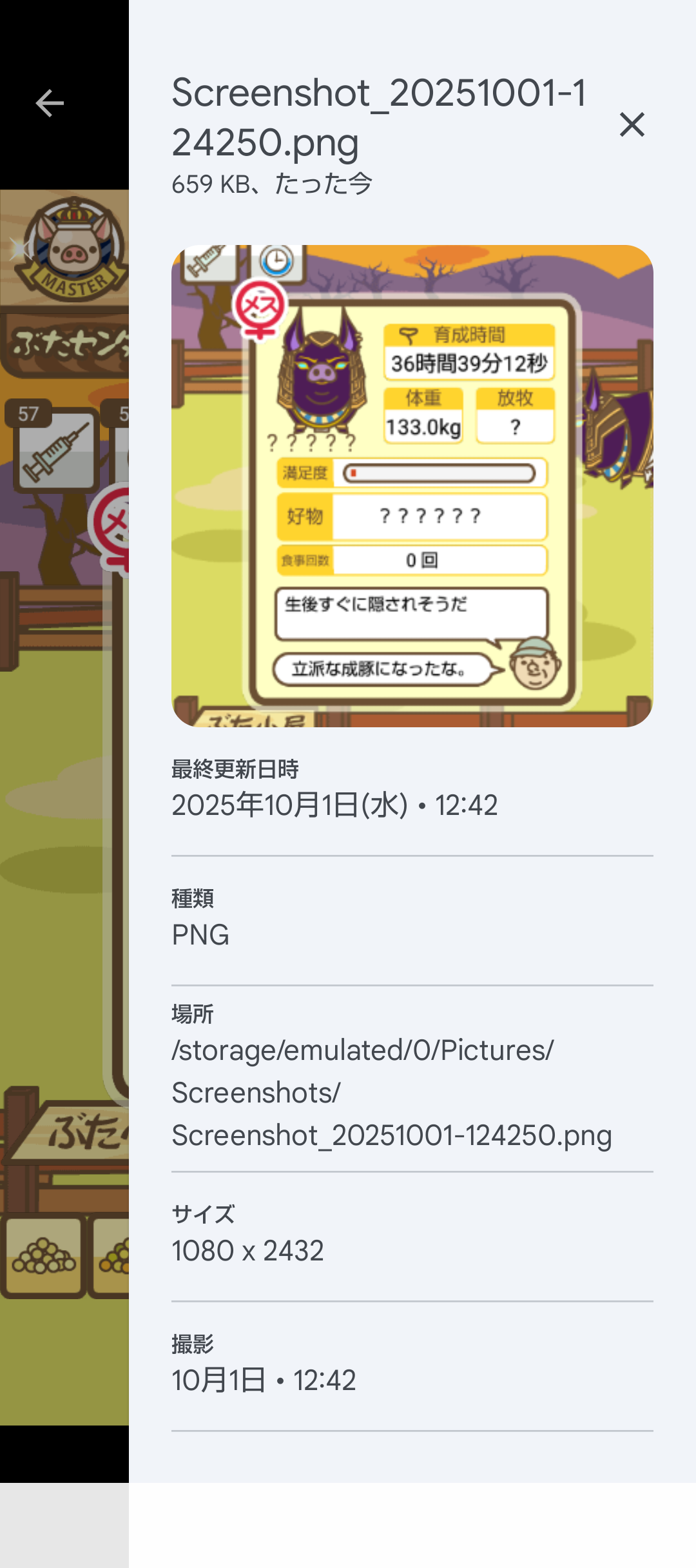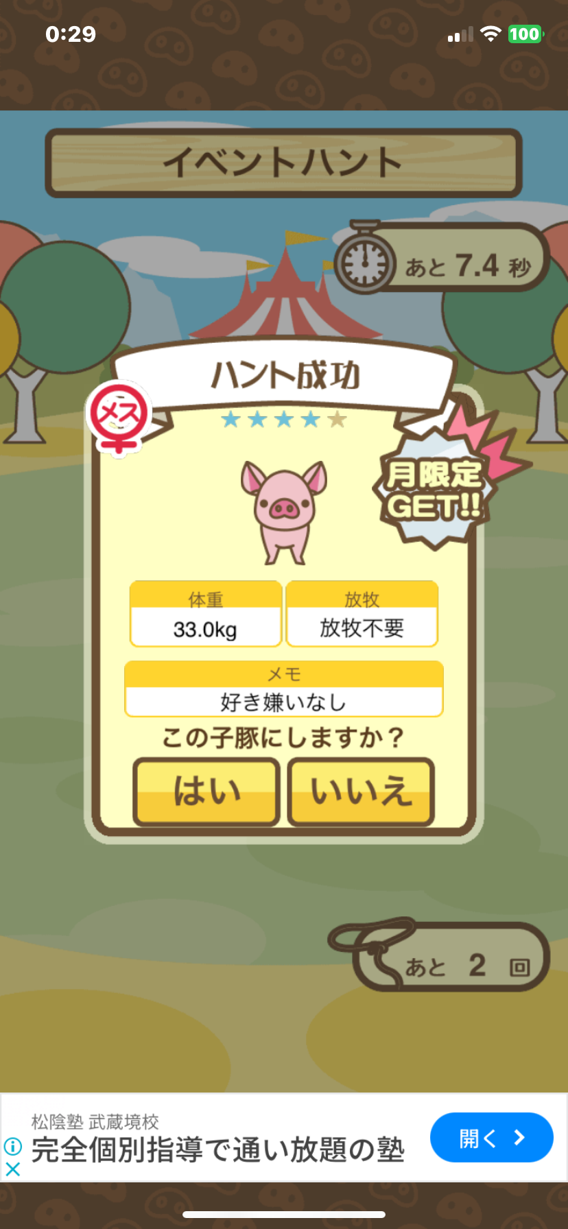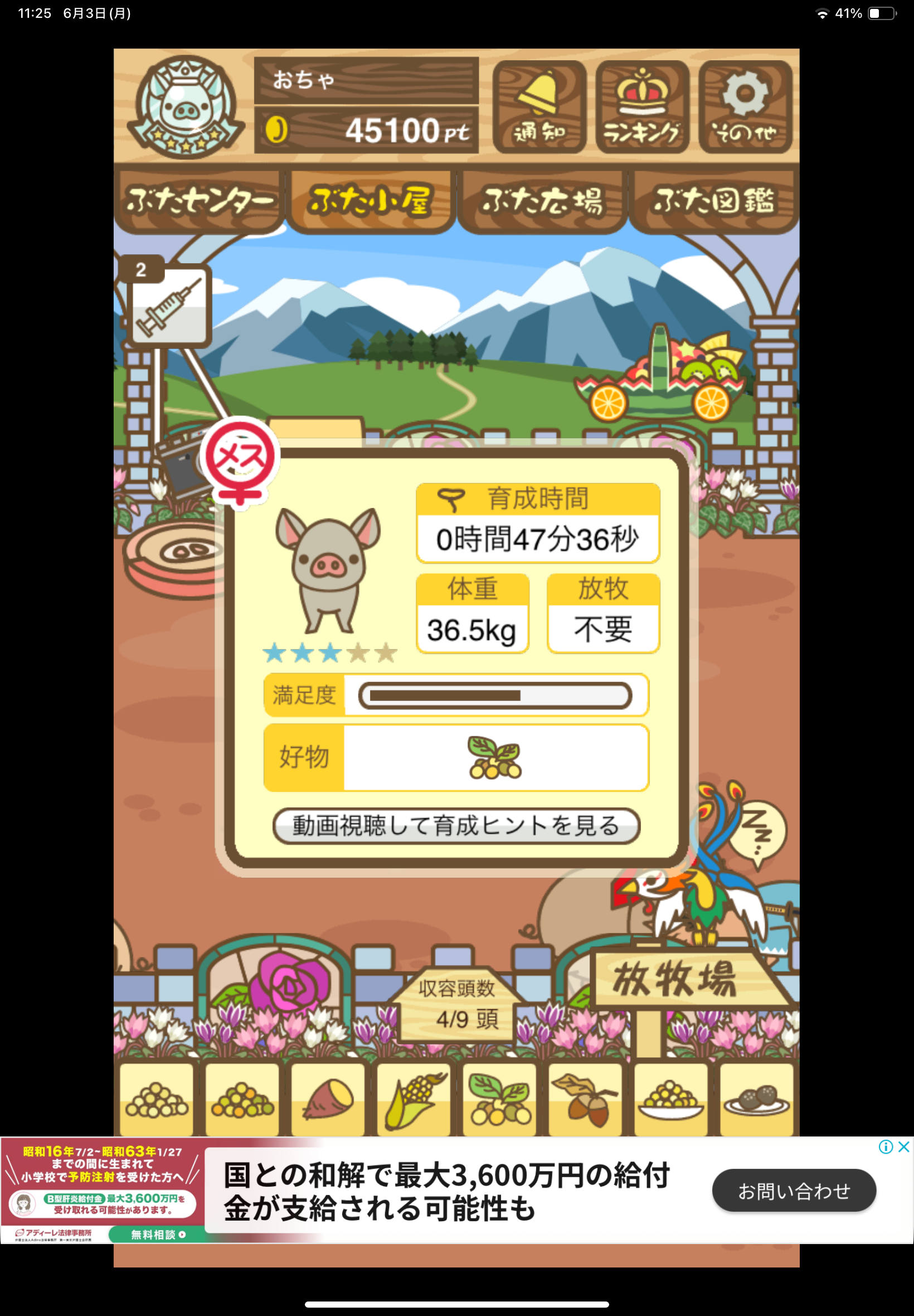 スクショないですが、放牧済、放牧場成豚、エサ3回では成功してます。(00:01成豚) -- 名無し[Ea6iFKq0LBo] 2025/11/07 (金) 21:15:25