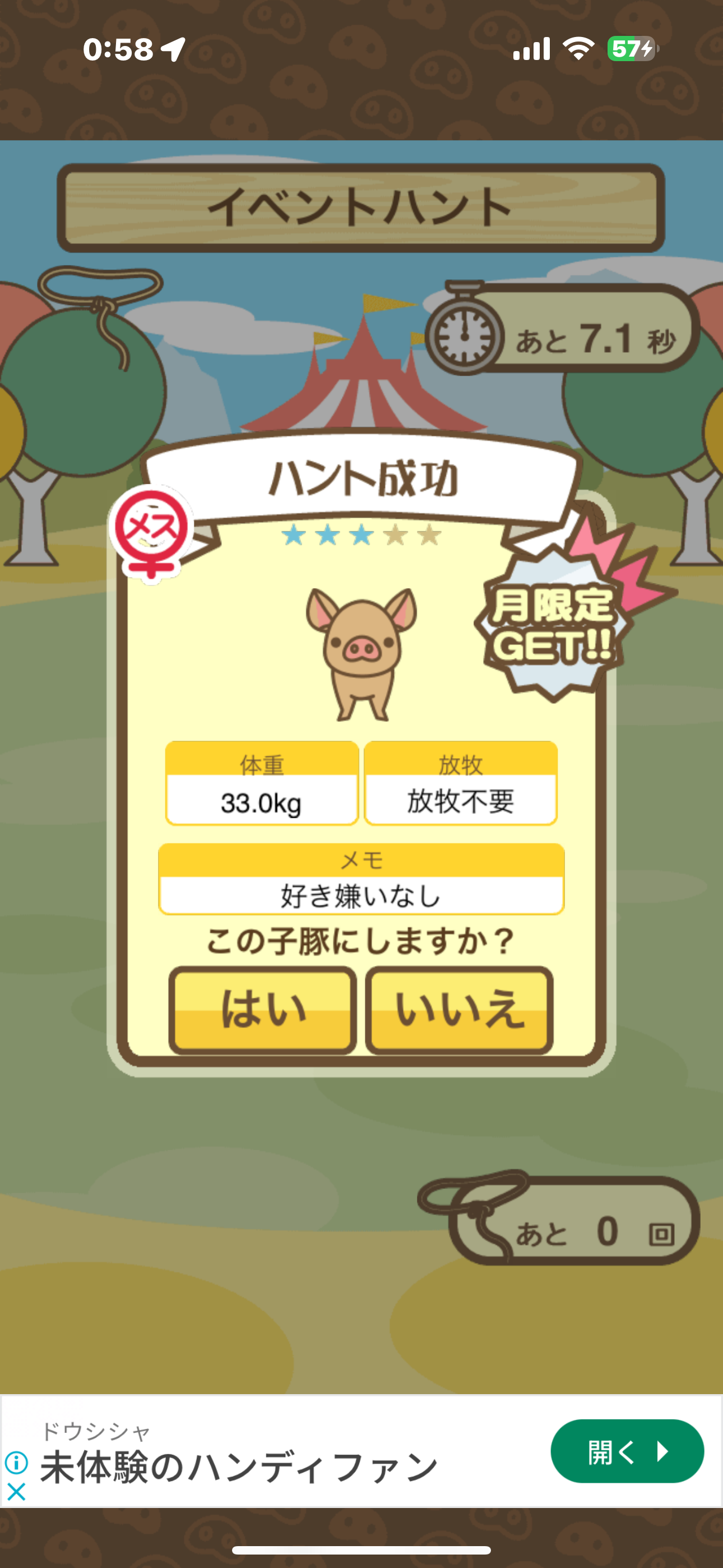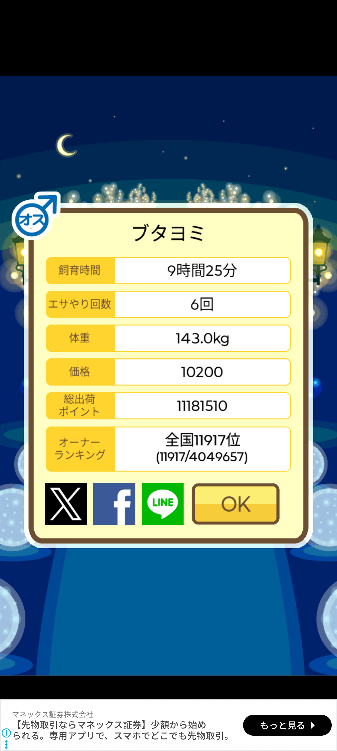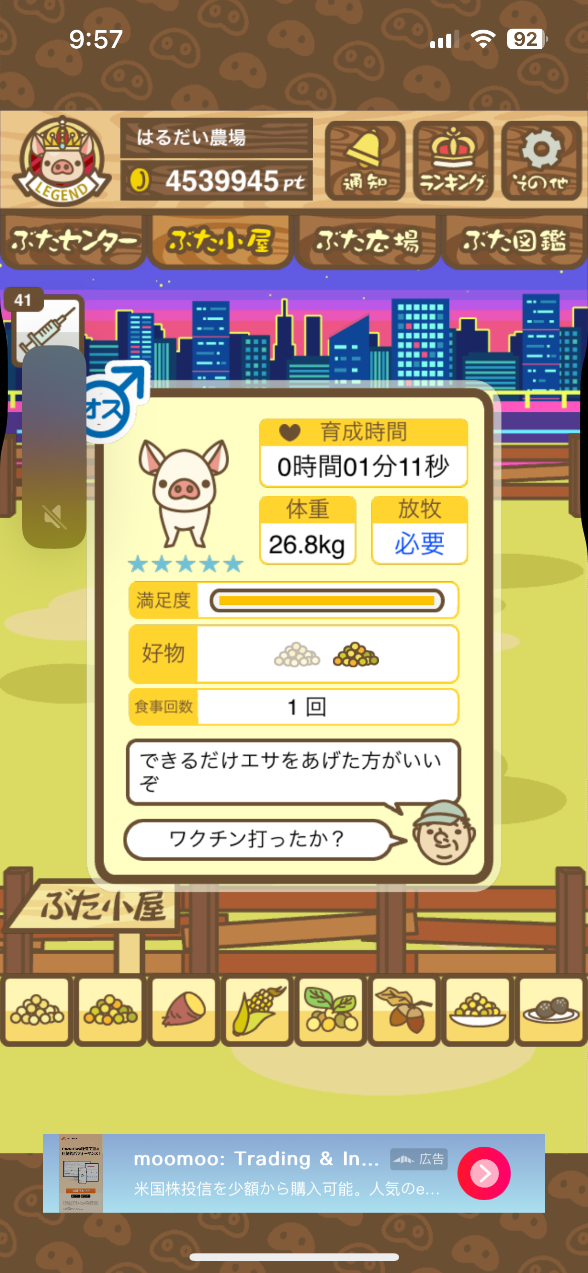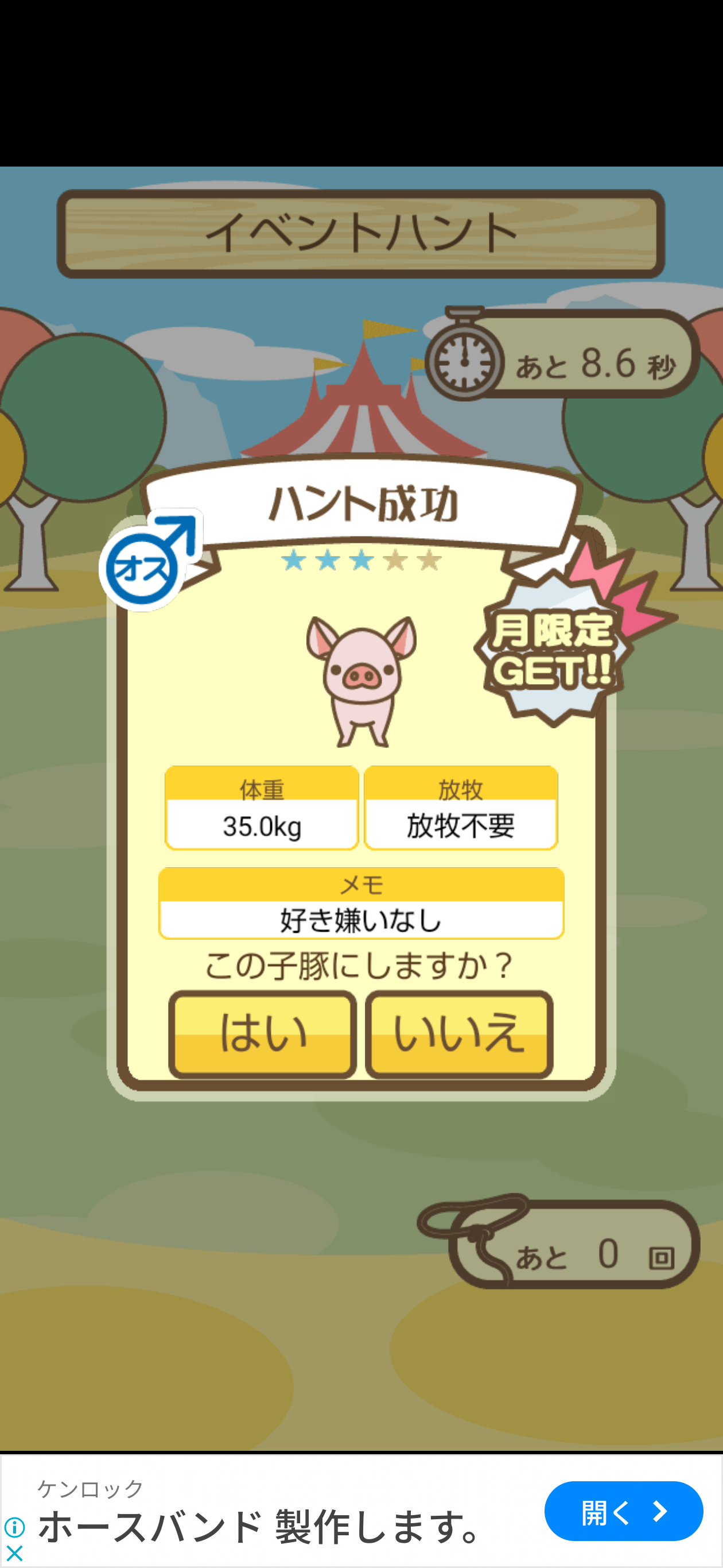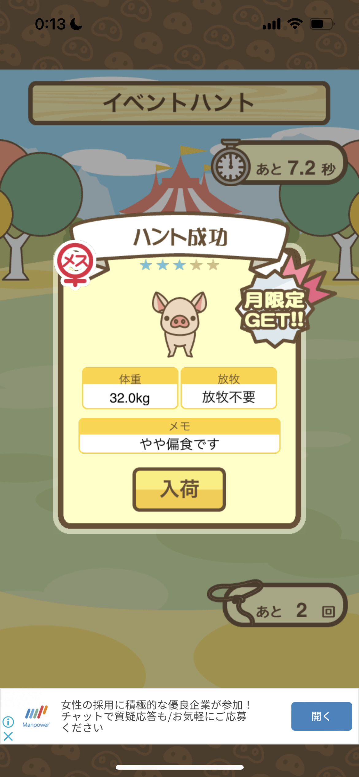 スクショないですが、放牧済、放牧場成豚、エサ3回では成功してます。(00:01成豚) -- 名無し[Ea6iFKq0LBo] 2025/11/07 (金) 21:15:25