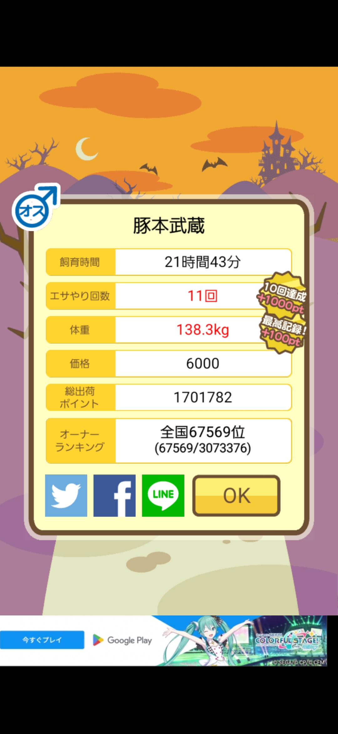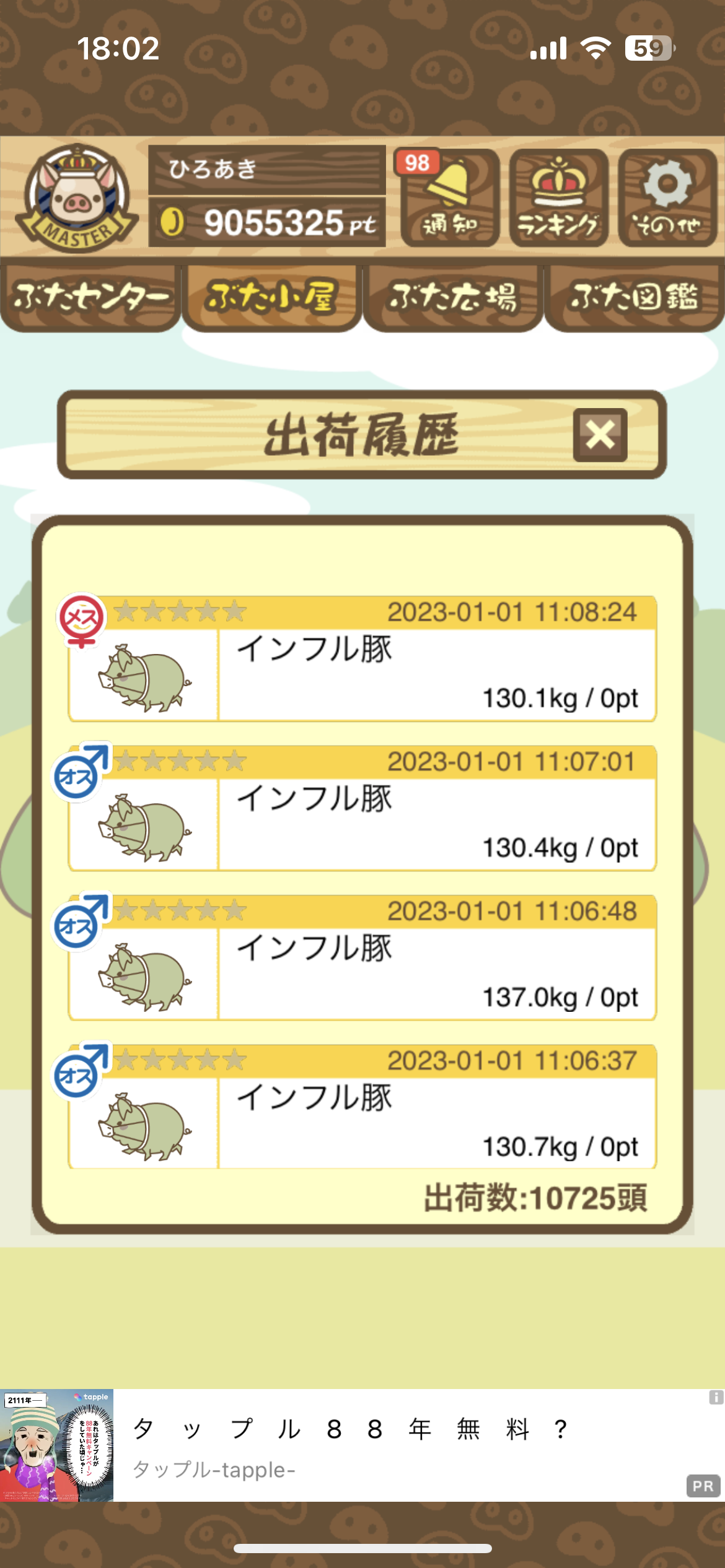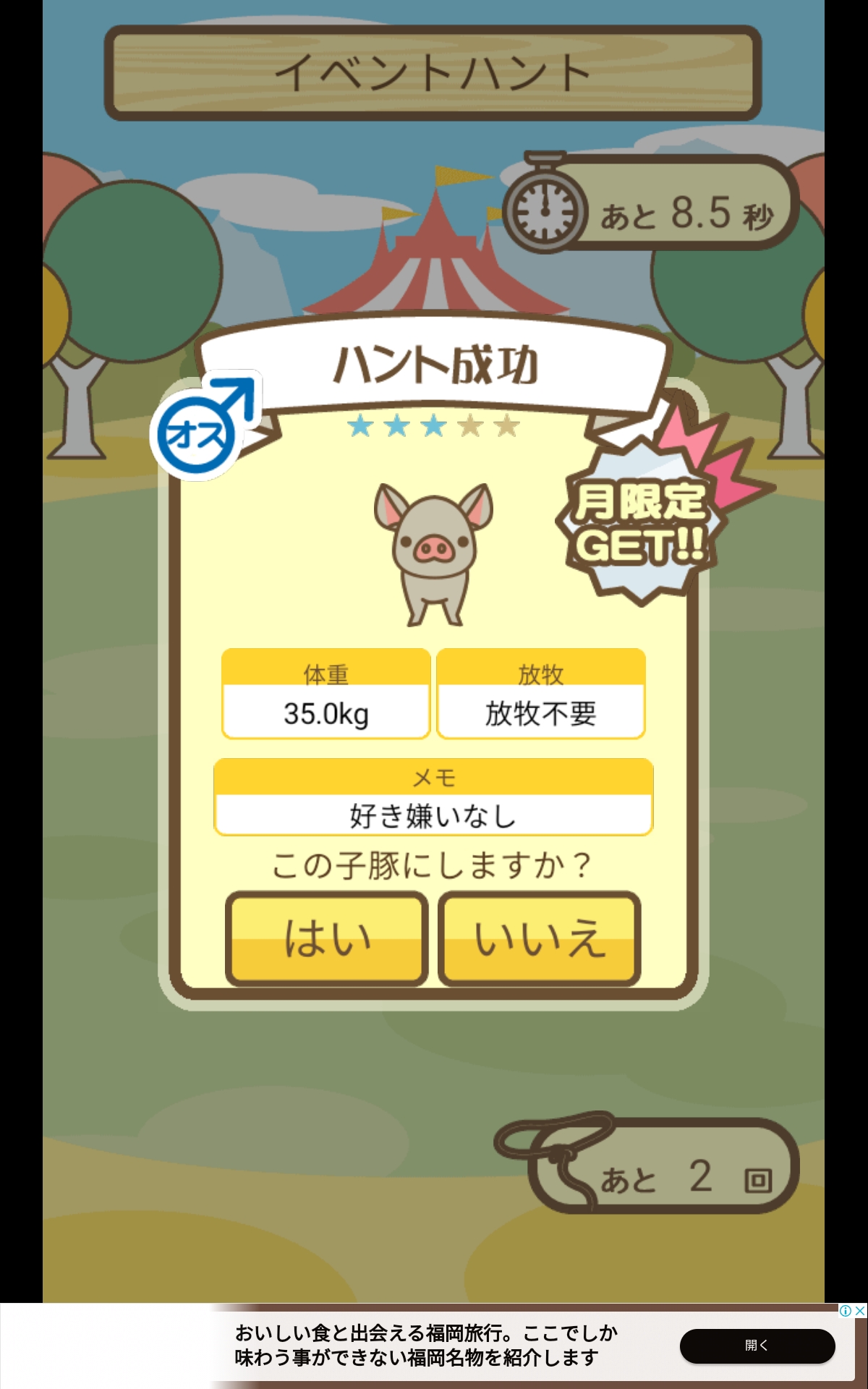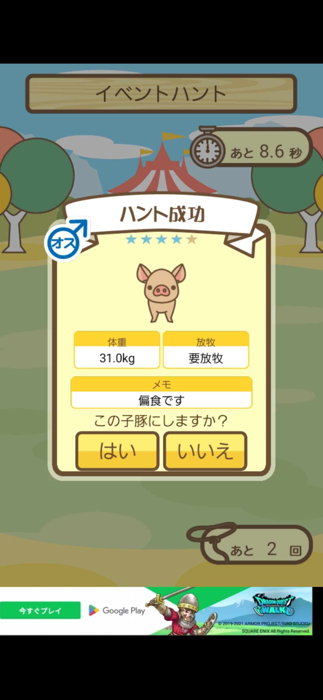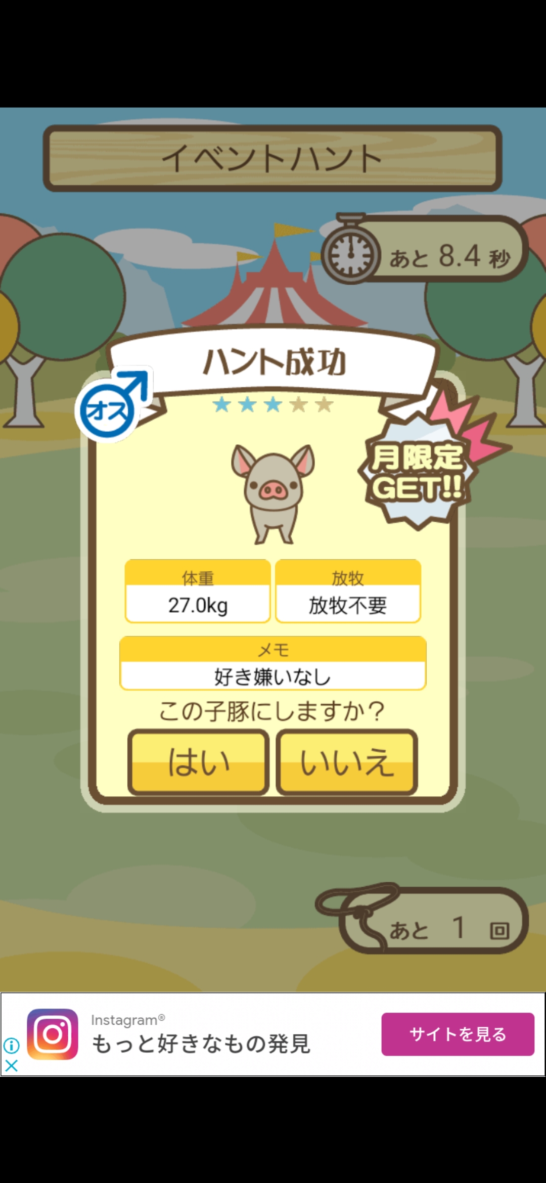スクショないですが、放牧済、放牧場成豚、エサ3回では成功してます。(00:01成豚) -- 名無し[Ea6iFKq0LBo] 2025/11/07 (金) 21:15:25