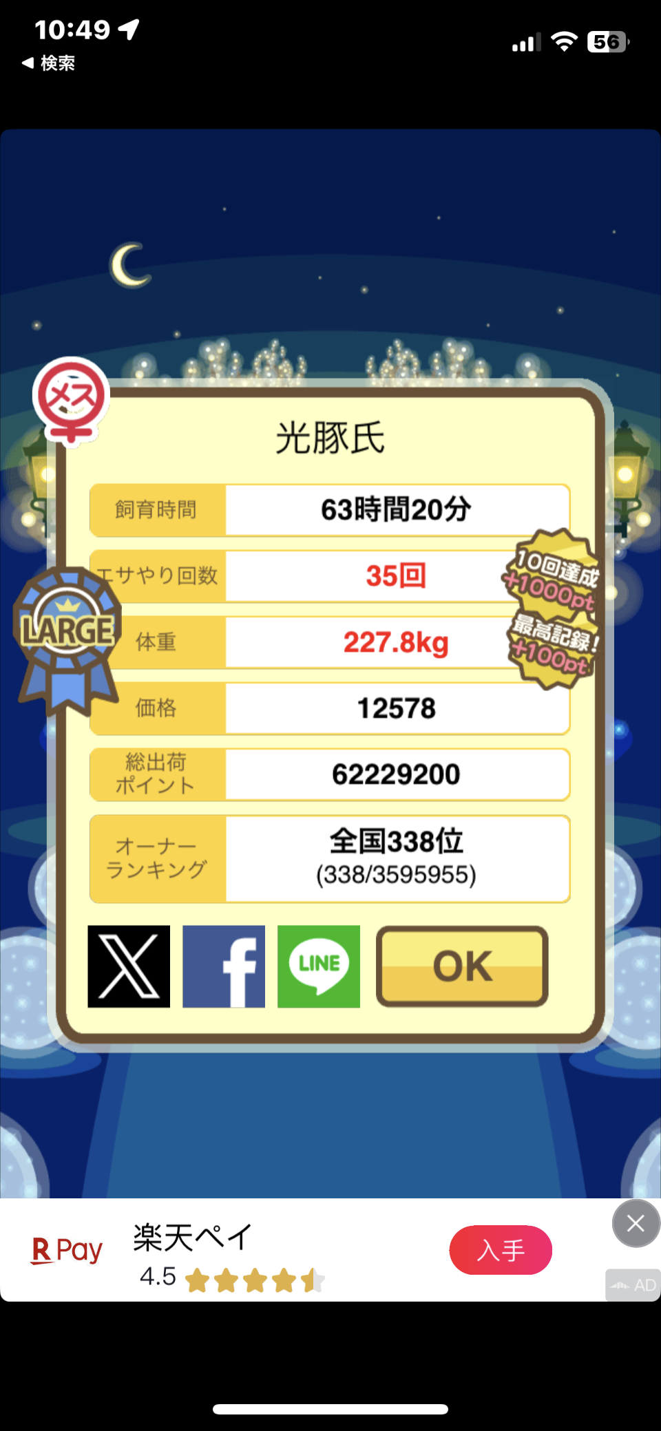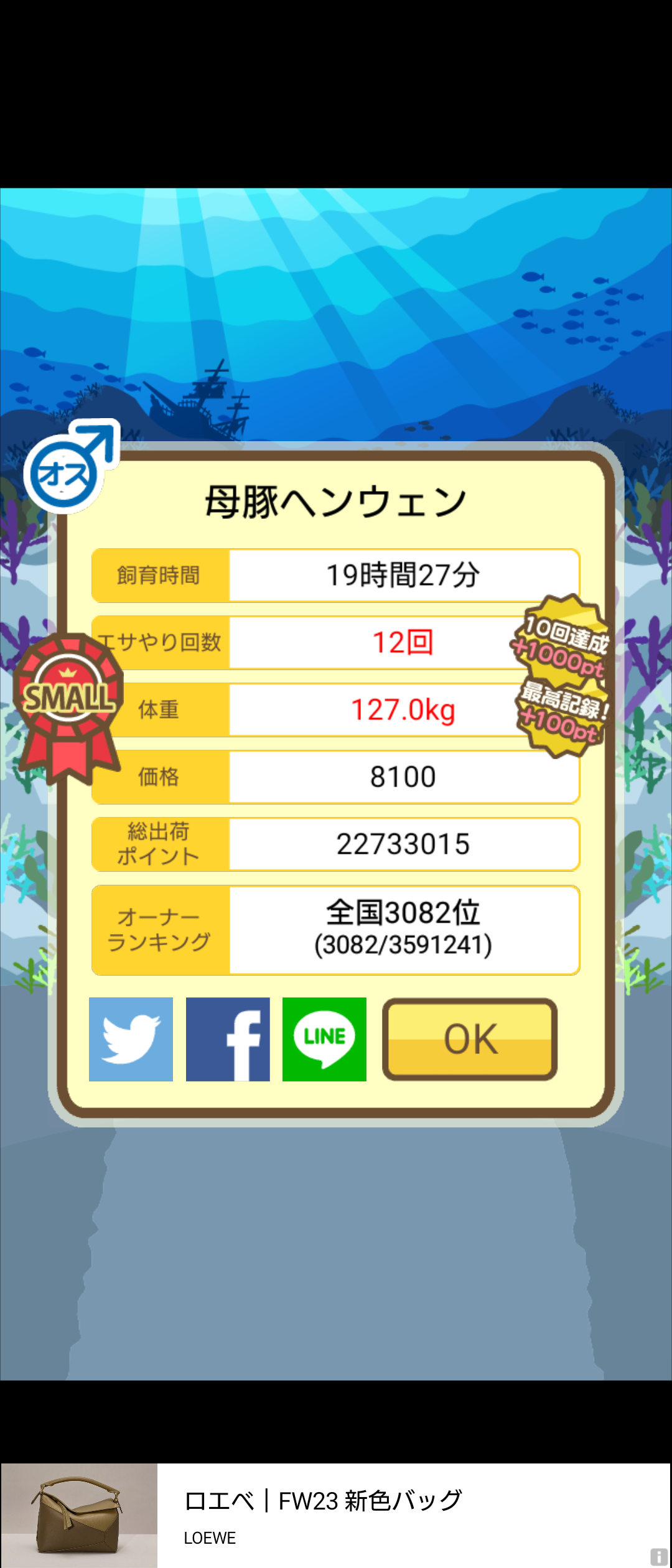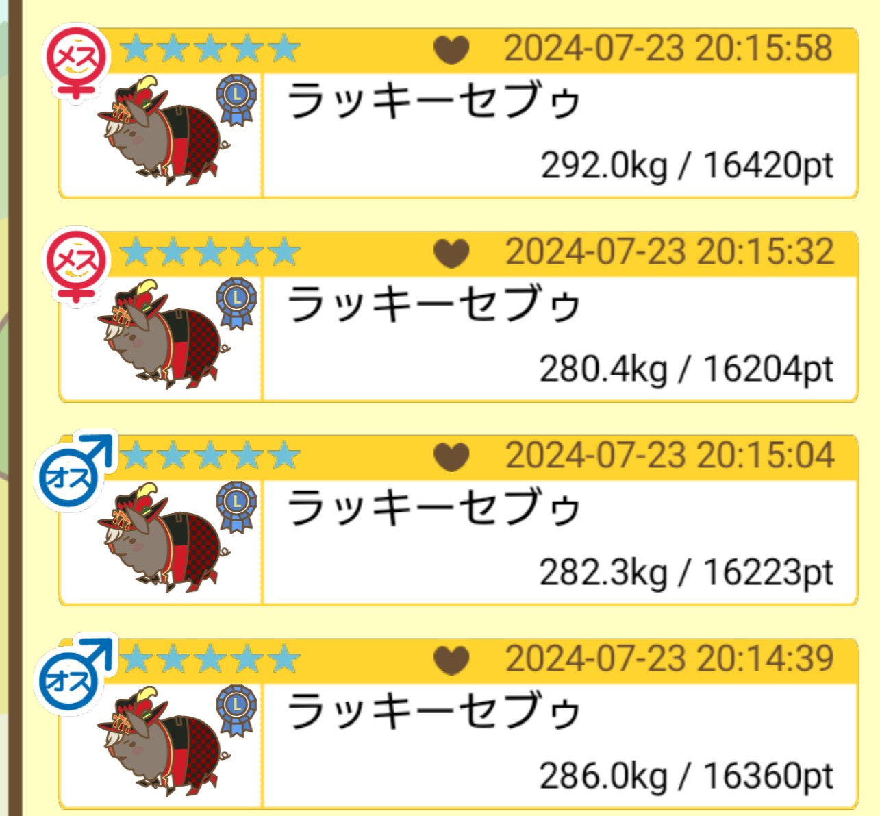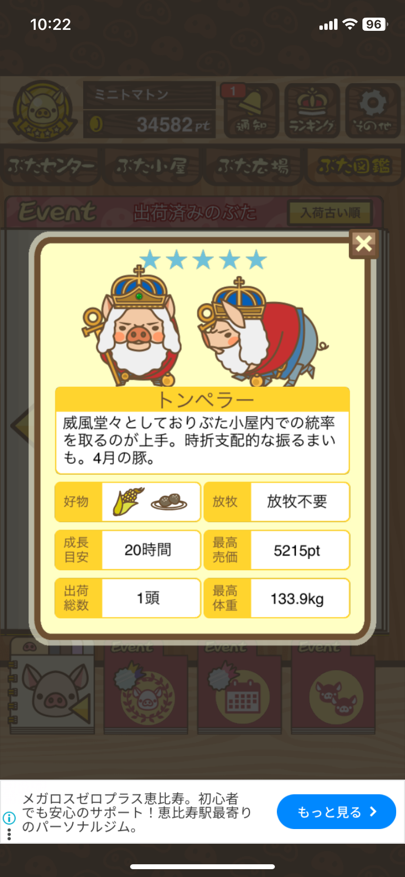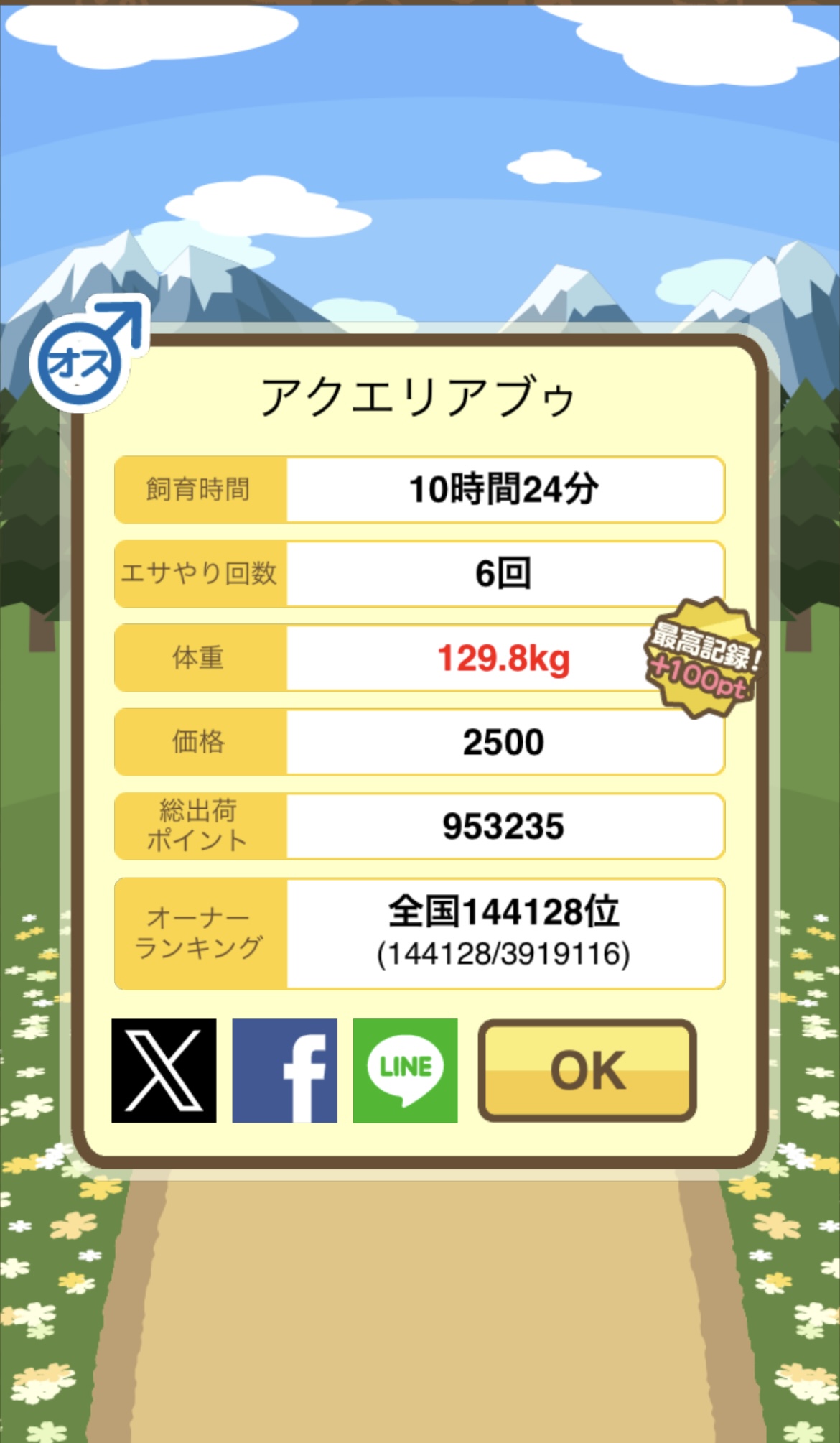成豚後、1回だけエサをあげて126.1キロでスモールバッジつきました。 -- じまこ[kBeNBUXJ0RA] 2022/09/02 (金) 18:43:57