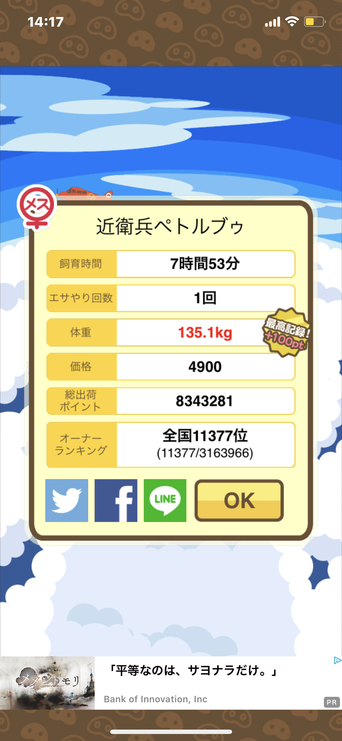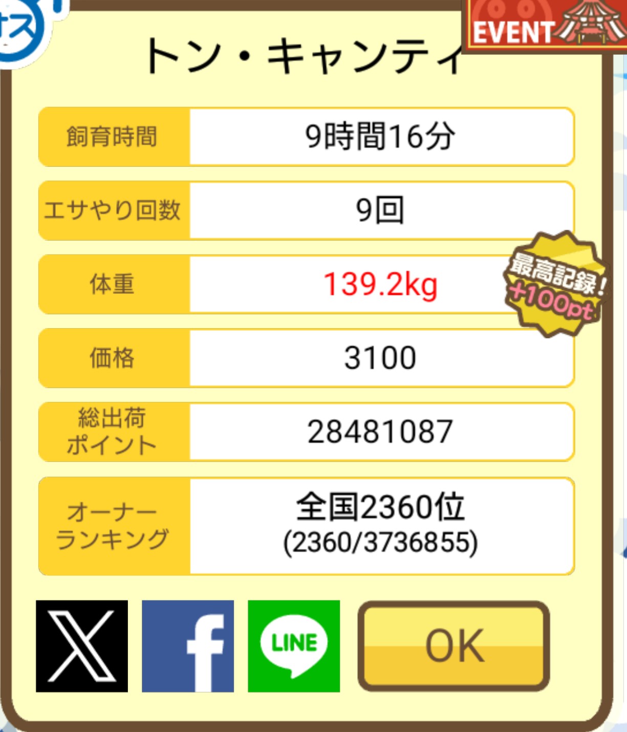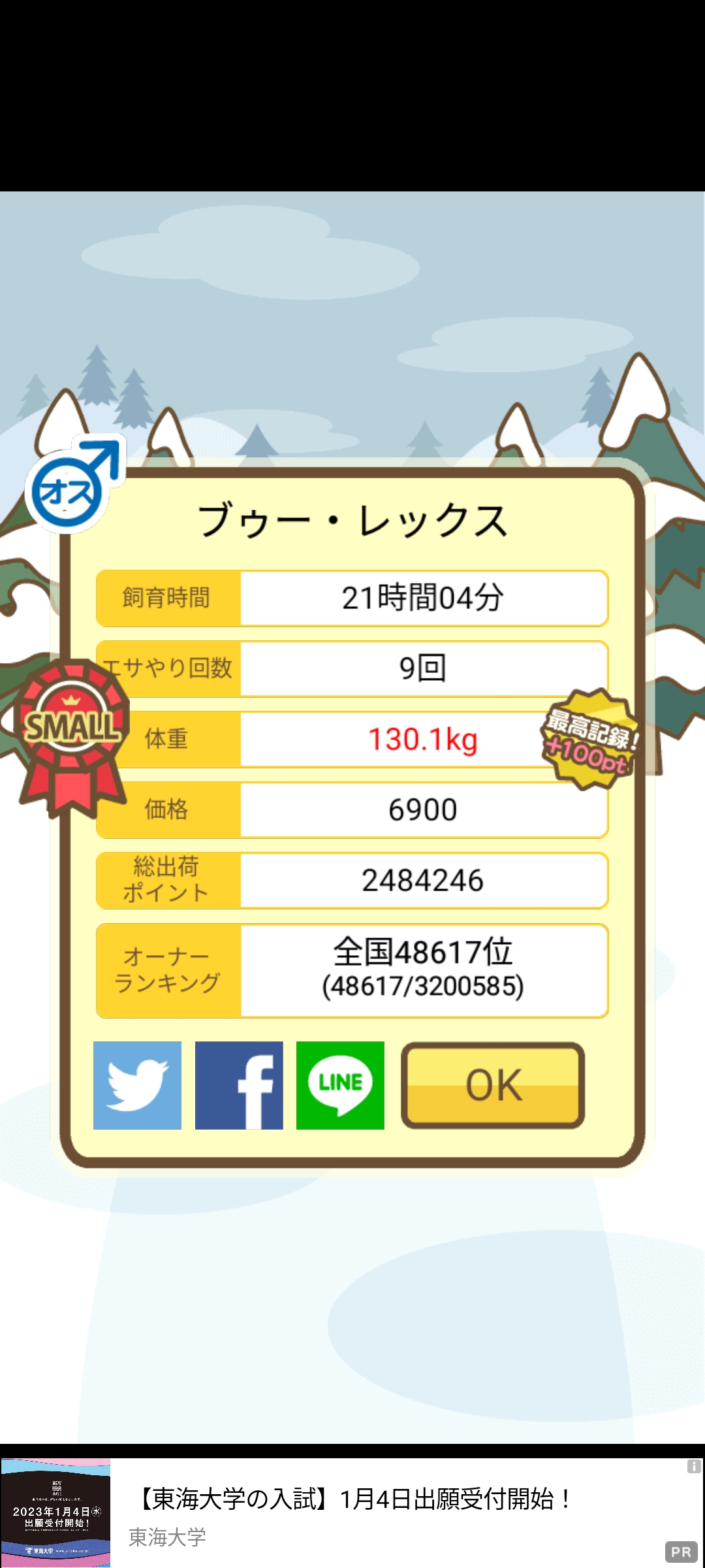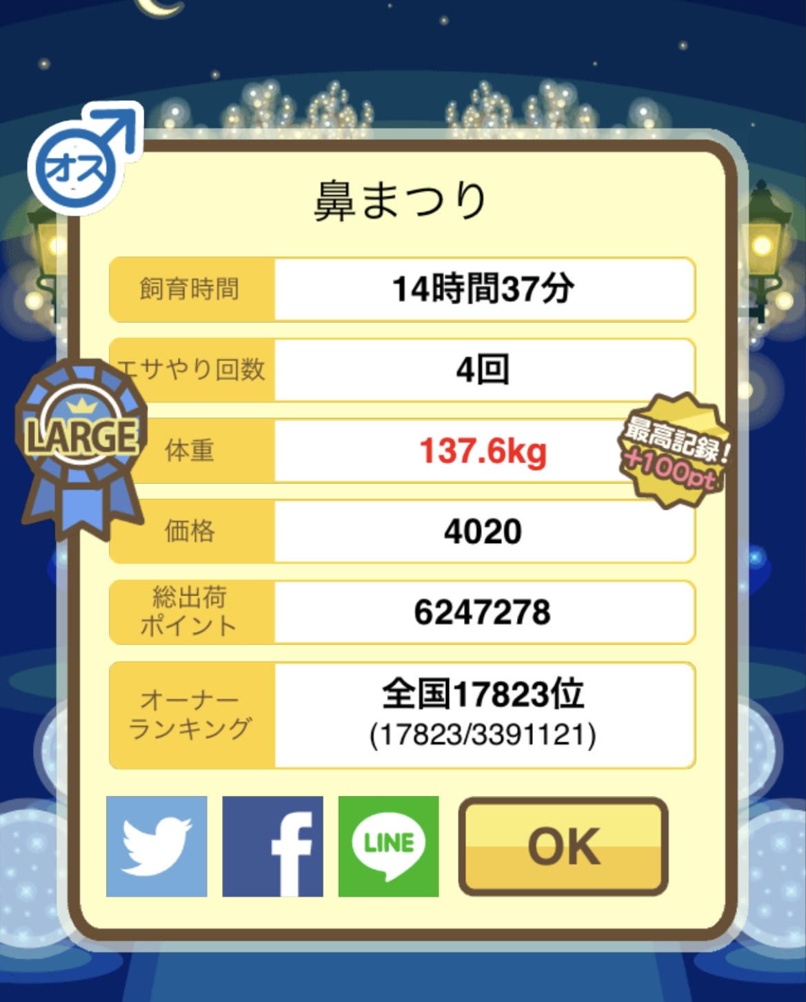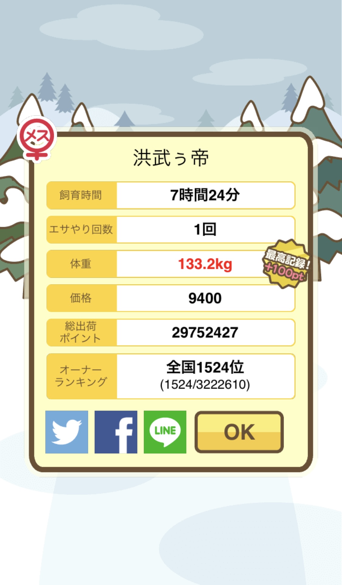 成豚後、1回だけエサをあげて126.1キロでスモールバッジつきました。 -- じまこ[kBeNBUXJ0RA] 2022/09/02 (金) 18:43:57