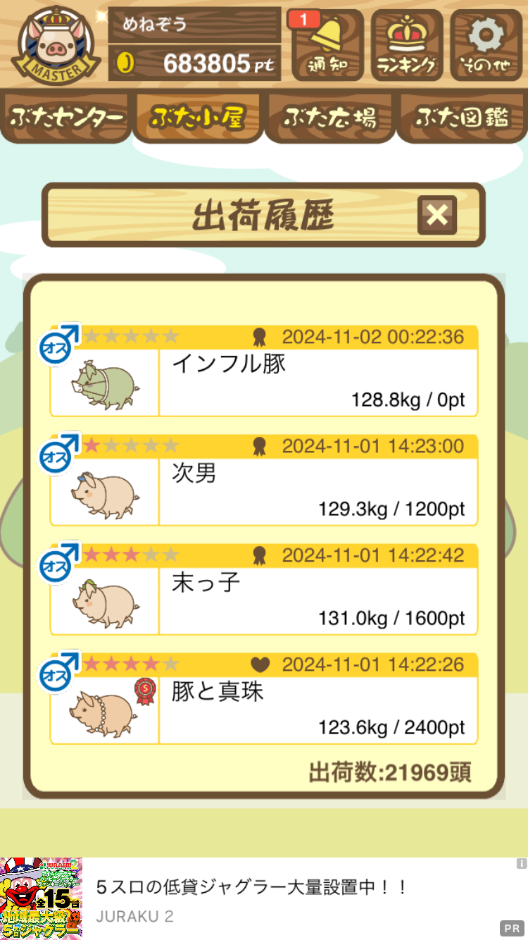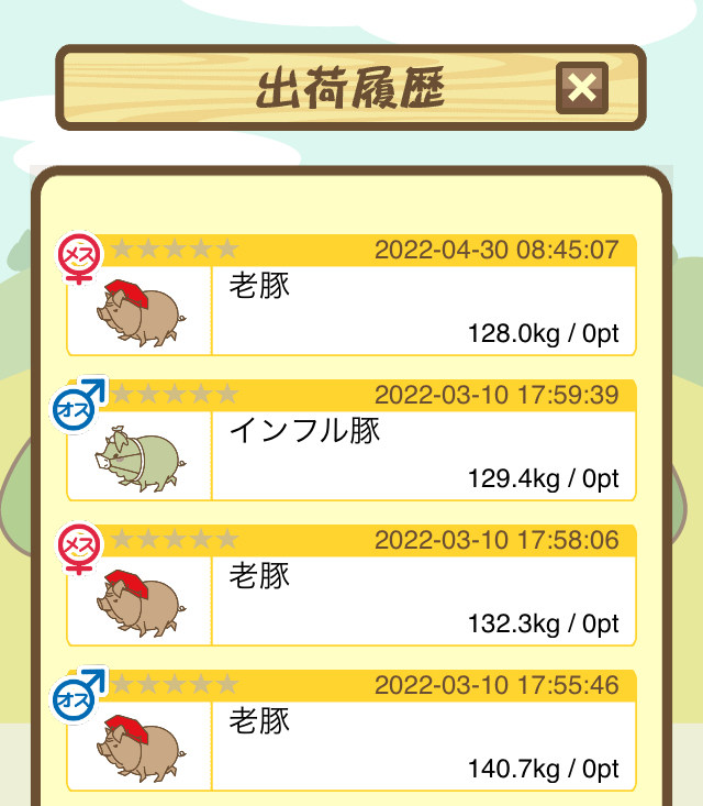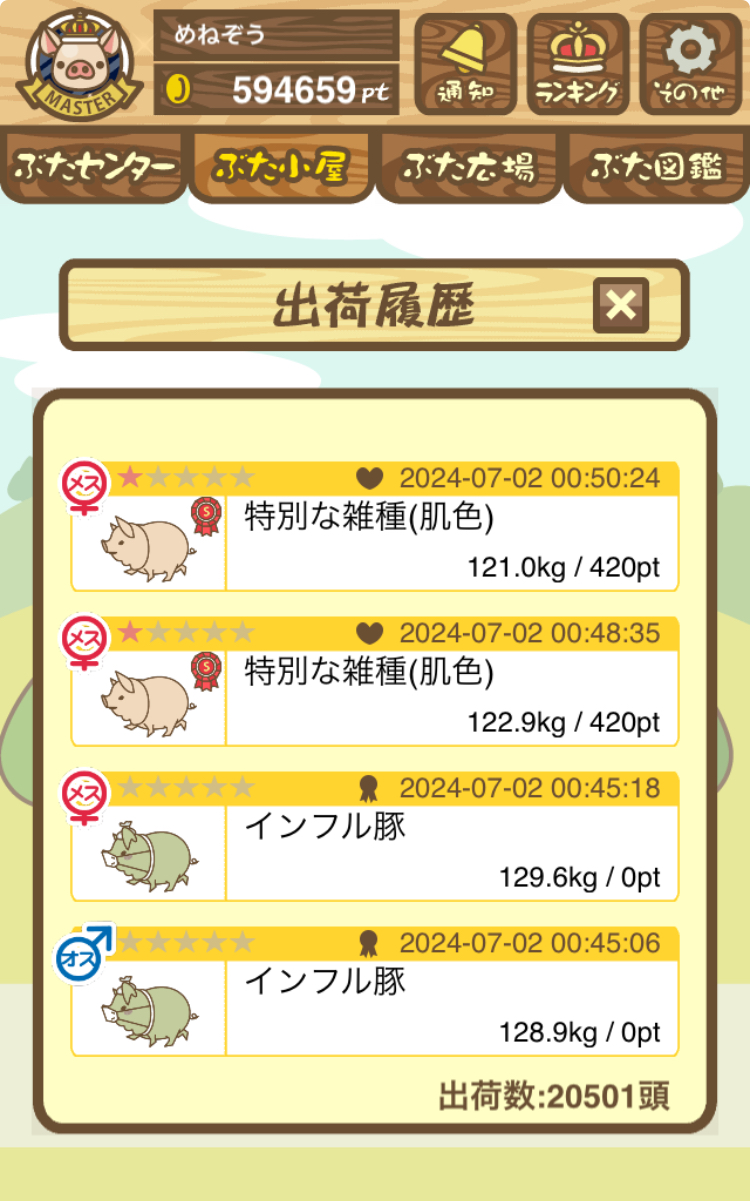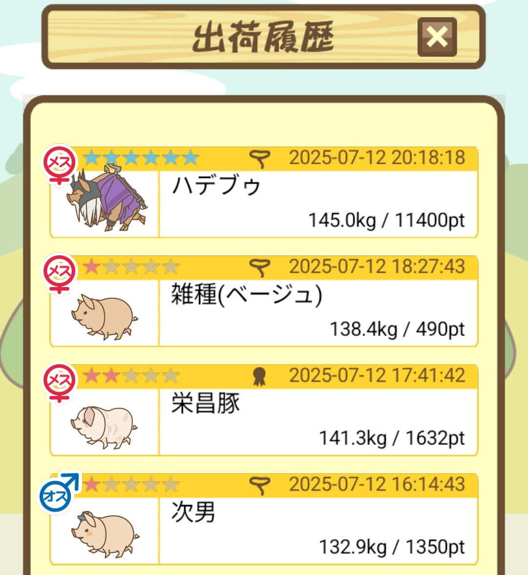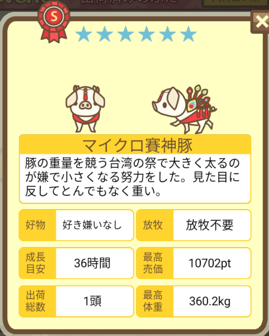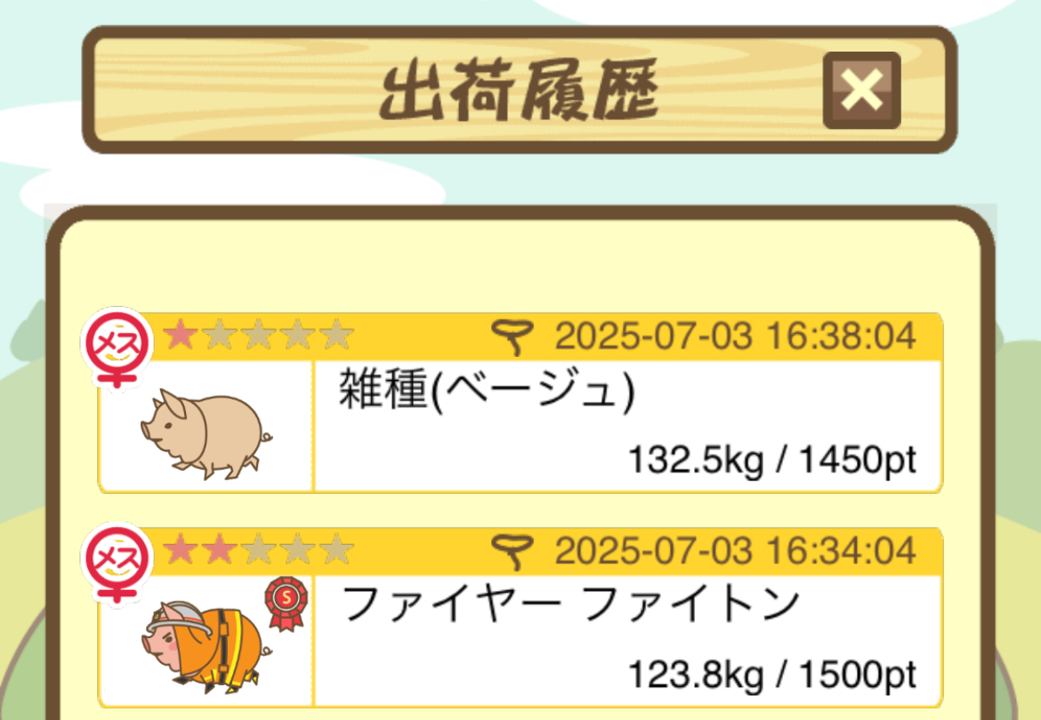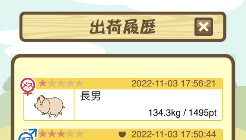 出荷前の情報は成豚になったことに気づいたときのものです。 -- りきまる[iFsyLiQI/DU] 2025/11/10 (月) 10:59:02