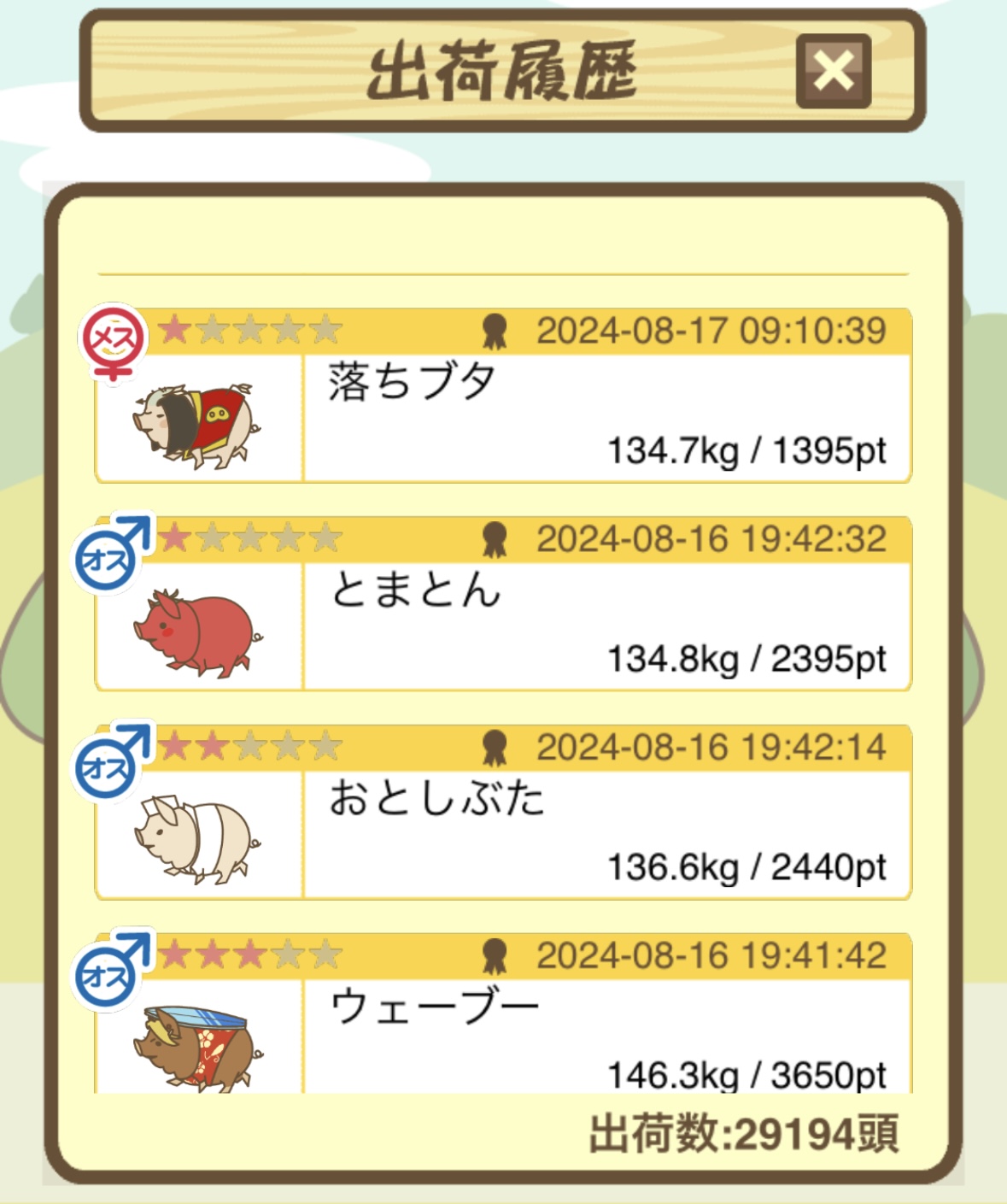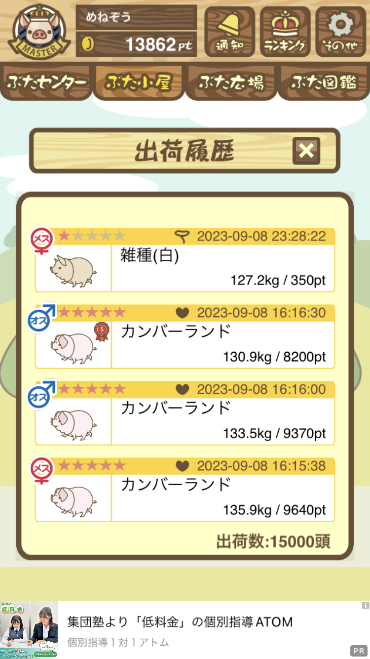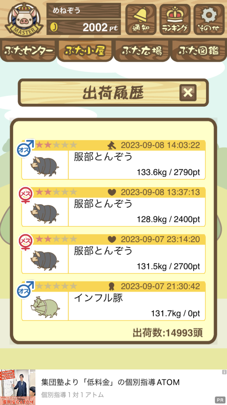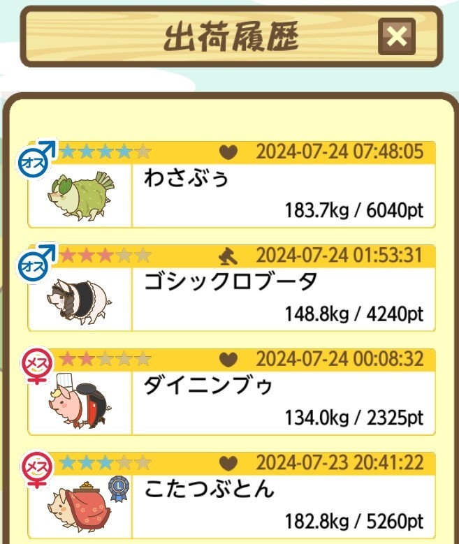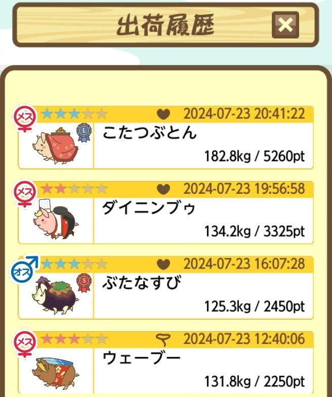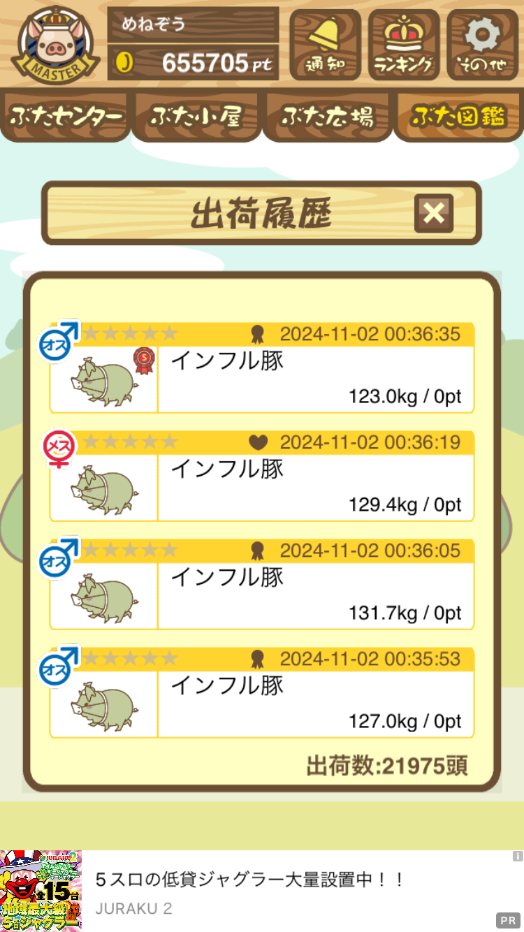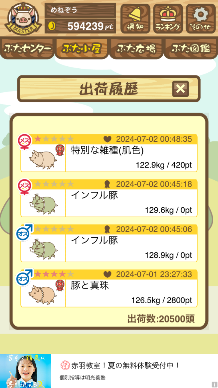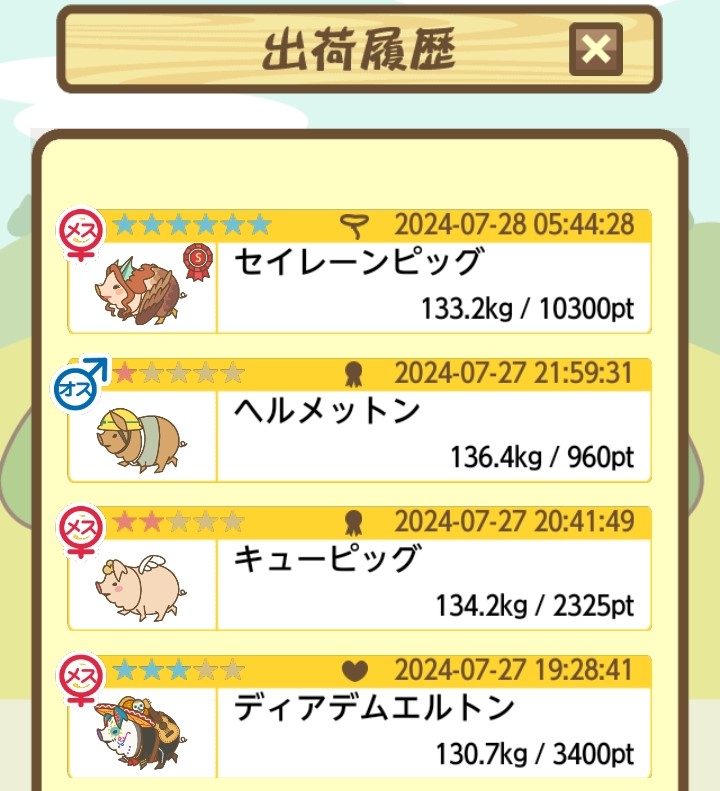 出荷前の情報は成豚になったことに気づいたときのものです。 -- りきまる[iFsyLiQI/DU] 2025/11/10 (月) 10:59:02