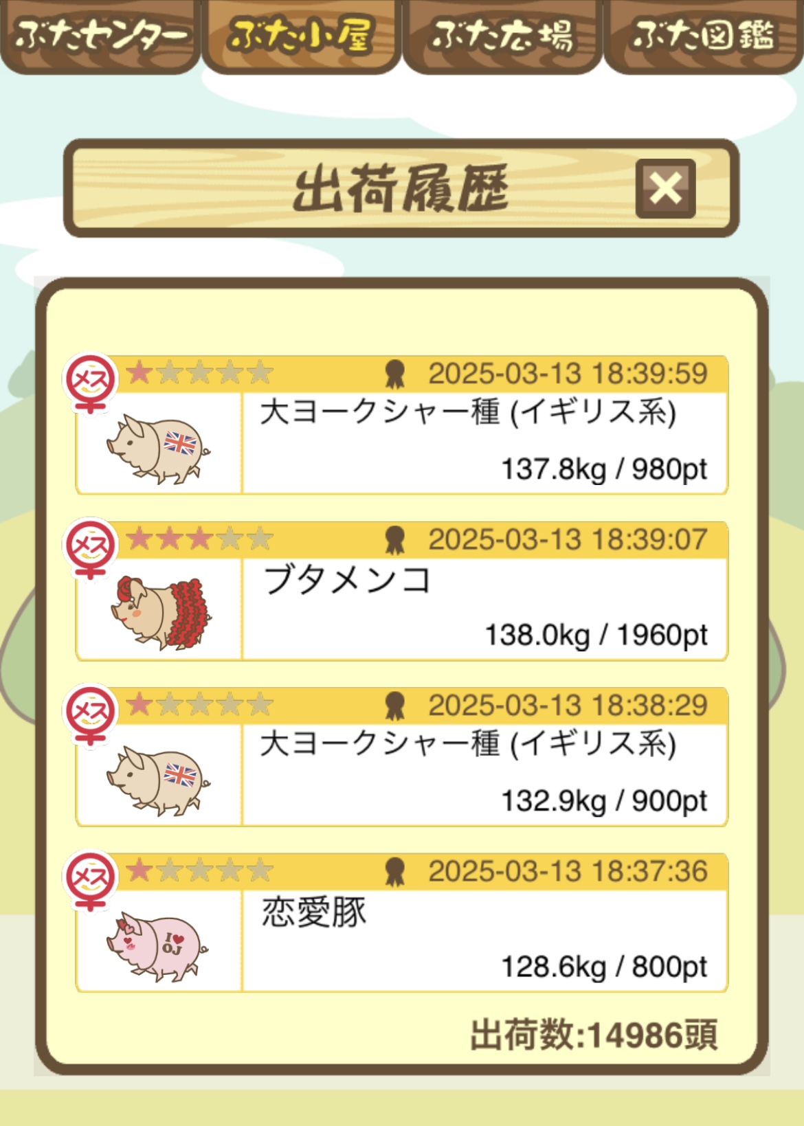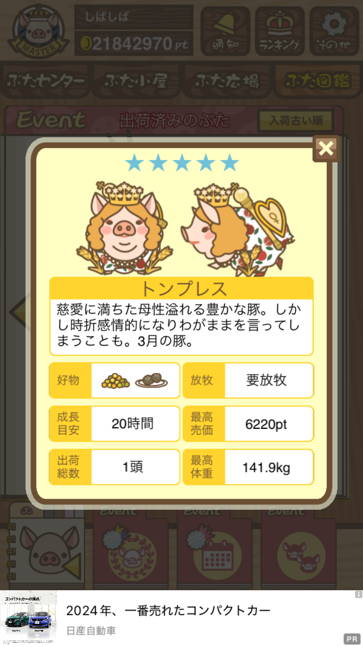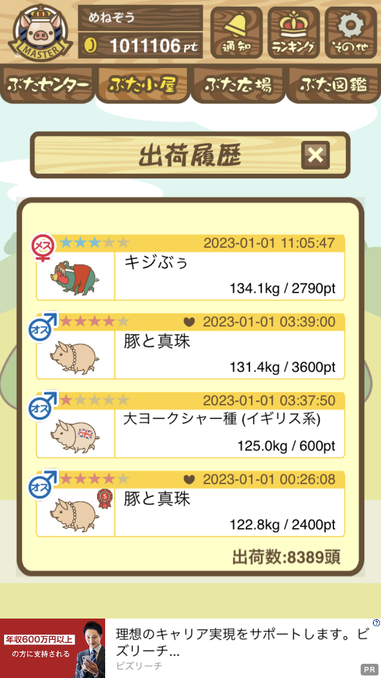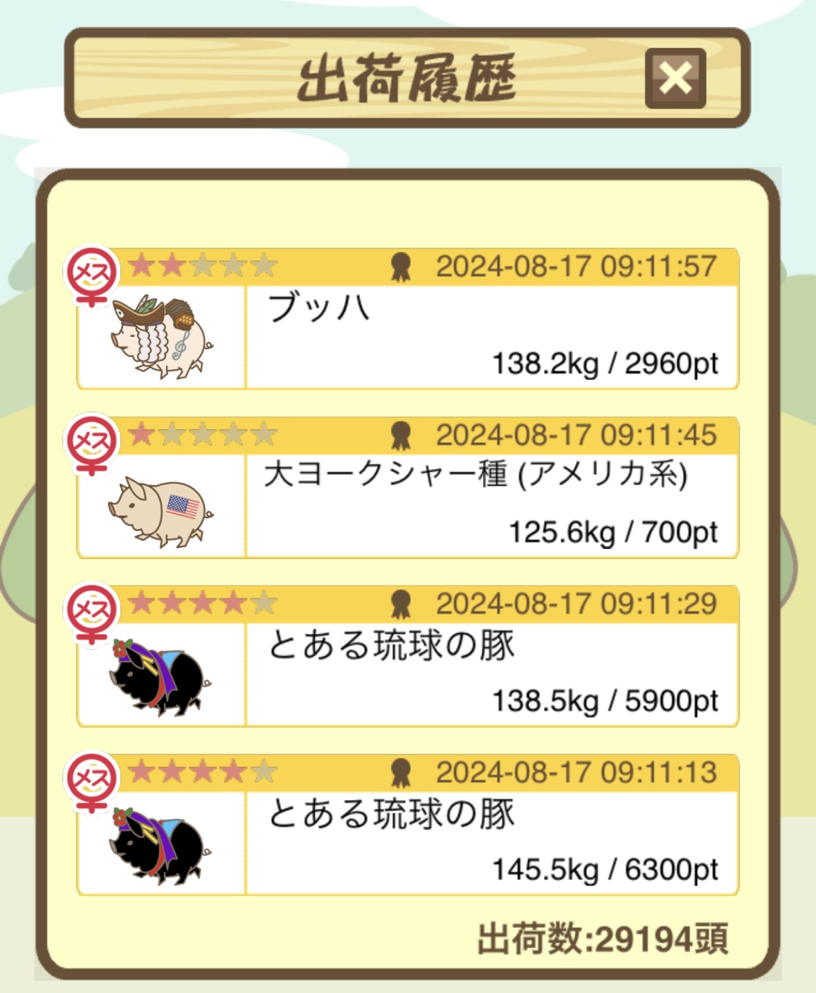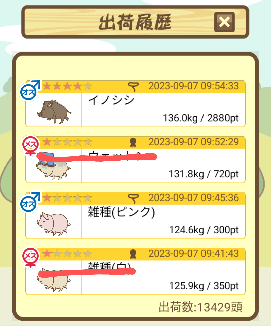 出荷前の情報は成豚になったことに気づいたときのものです。 -- りきまる[iFsyLiQI/DU] 2025/11/10 (月) 10:59:02
