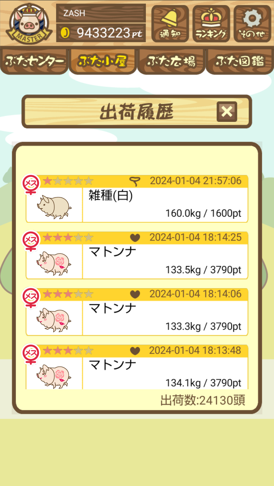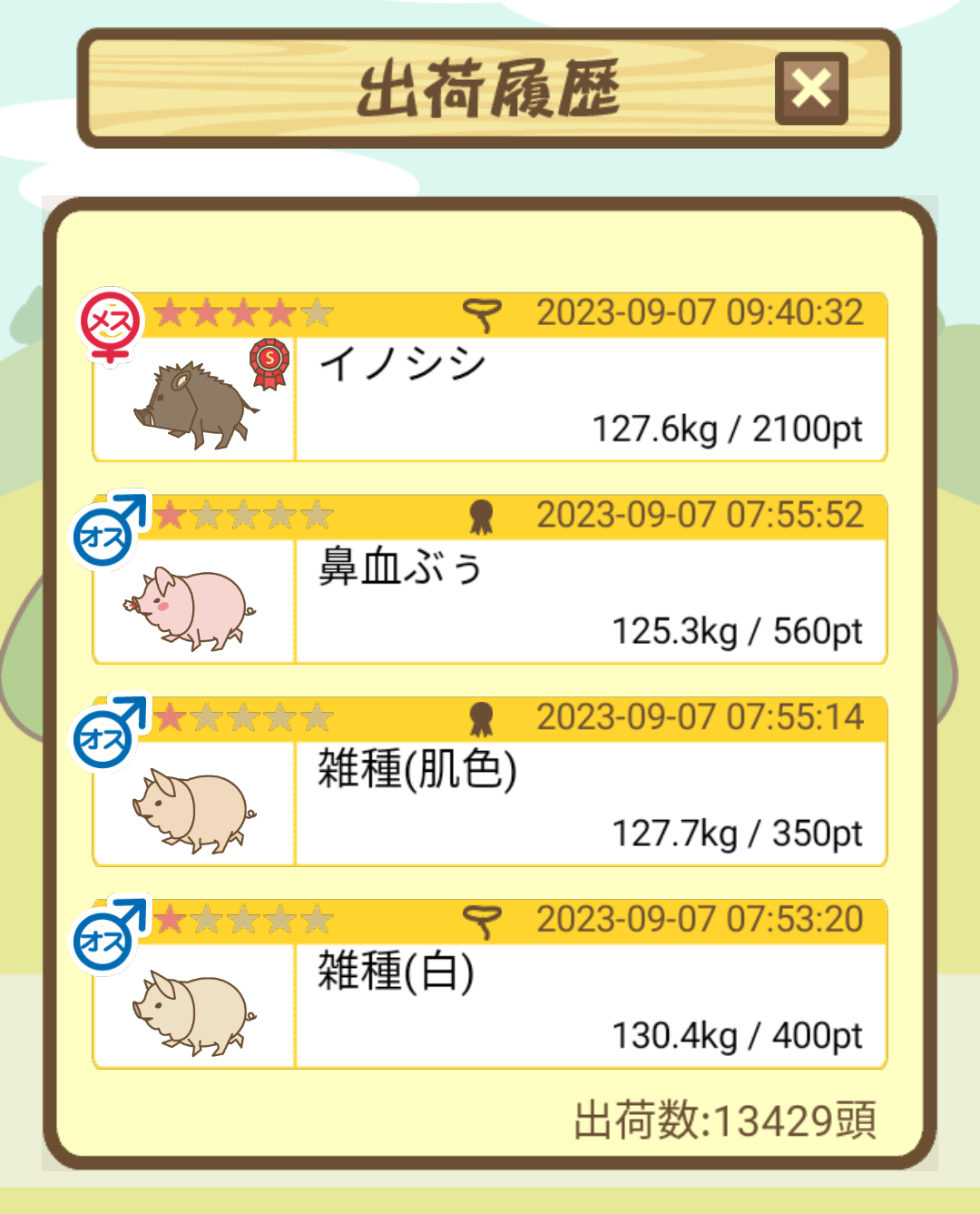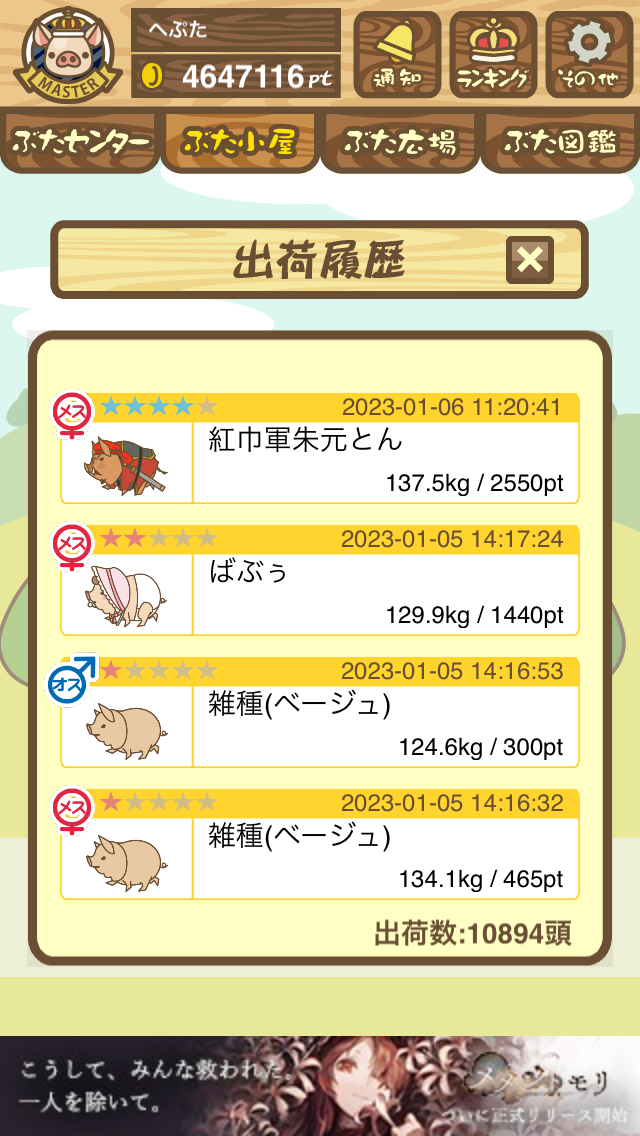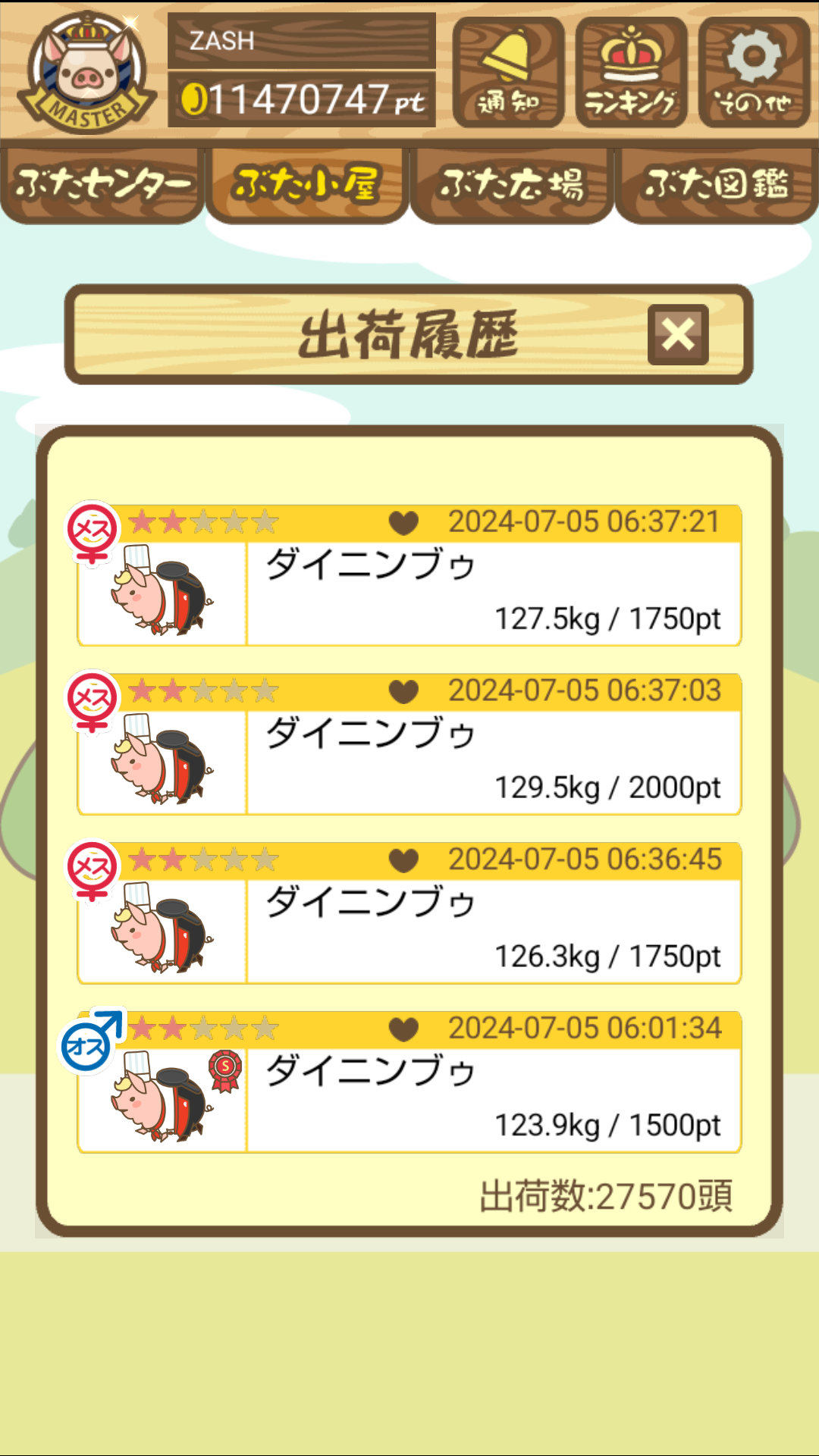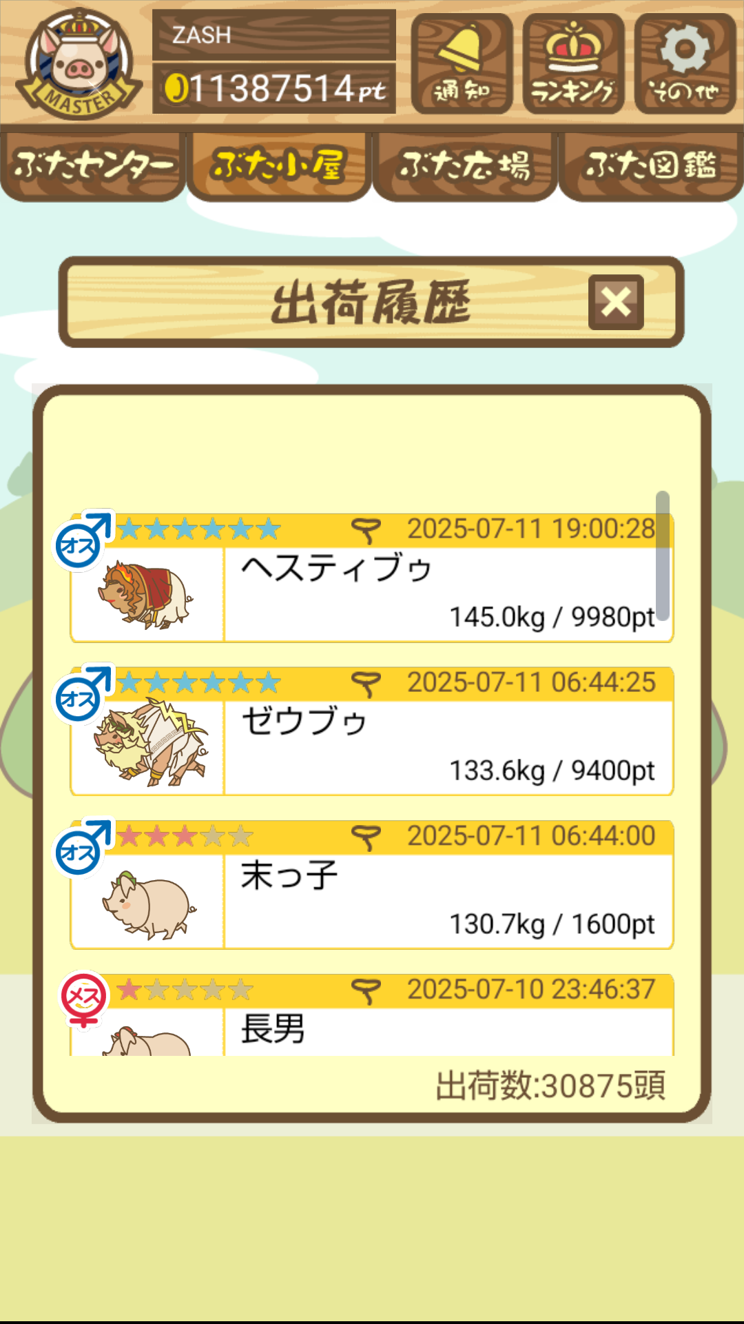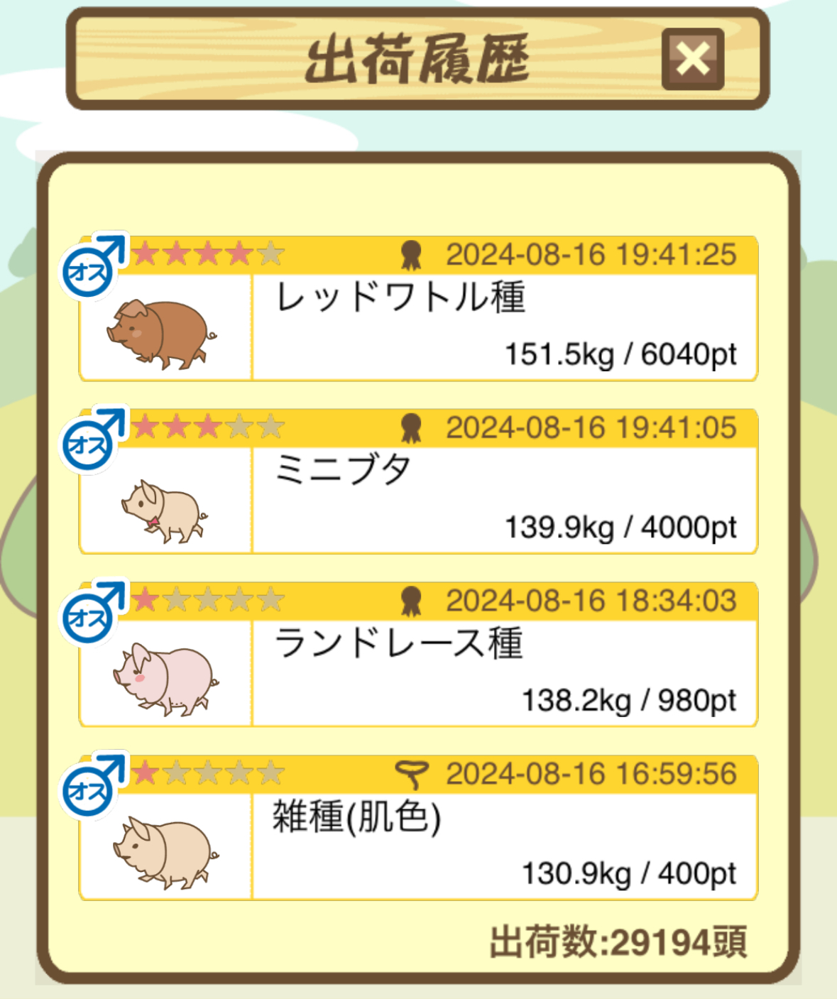 出荷前の情報は成豚になったことに気づいたときのものです。 -- りきまる[iFsyLiQI/DU] 2025/11/10 (月) 10:59:02