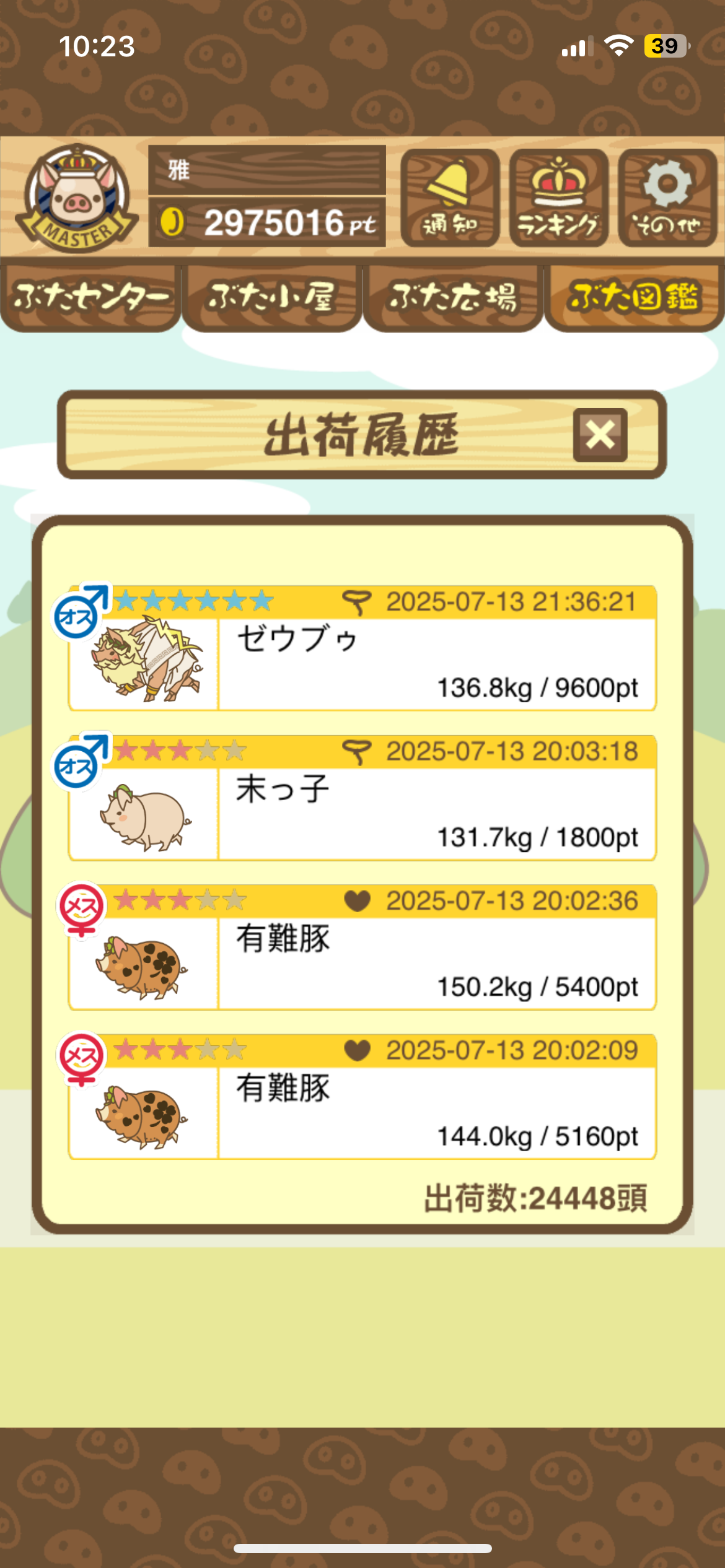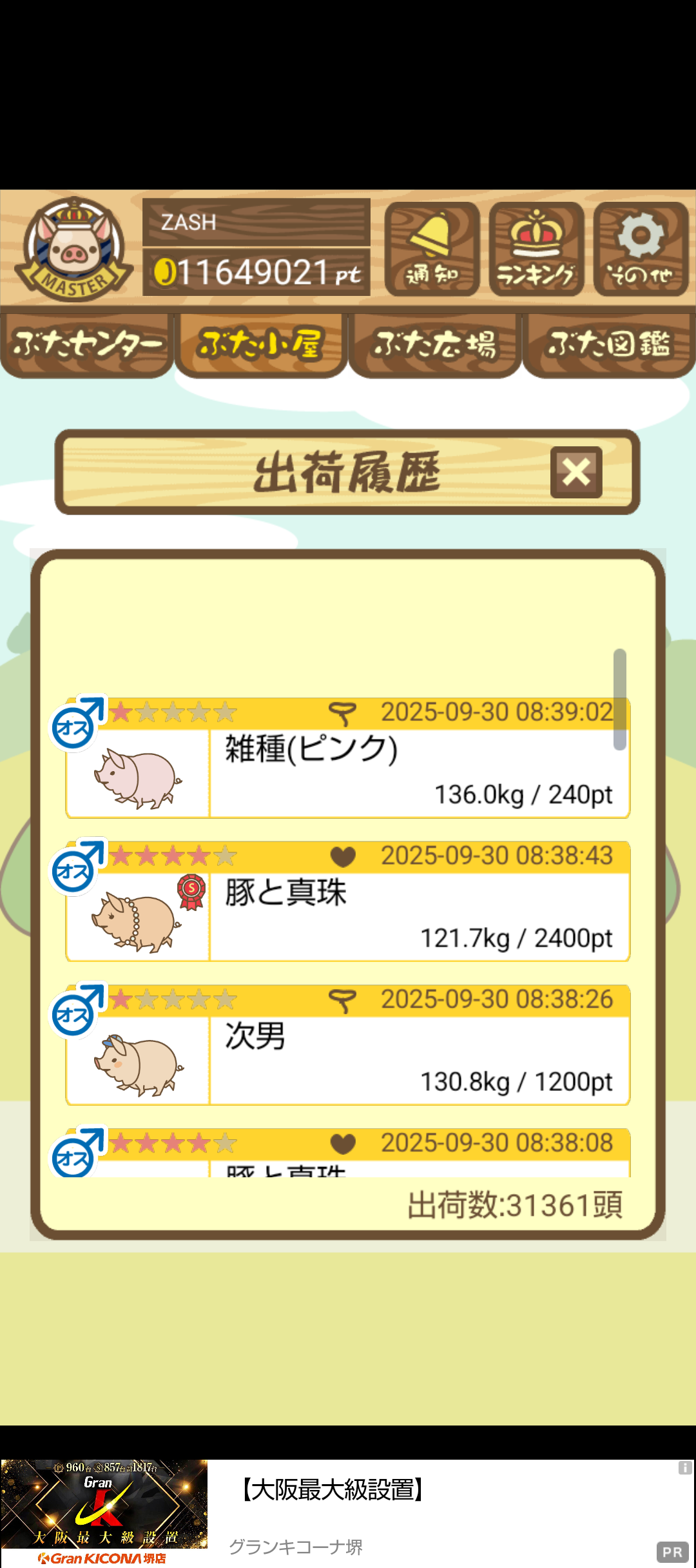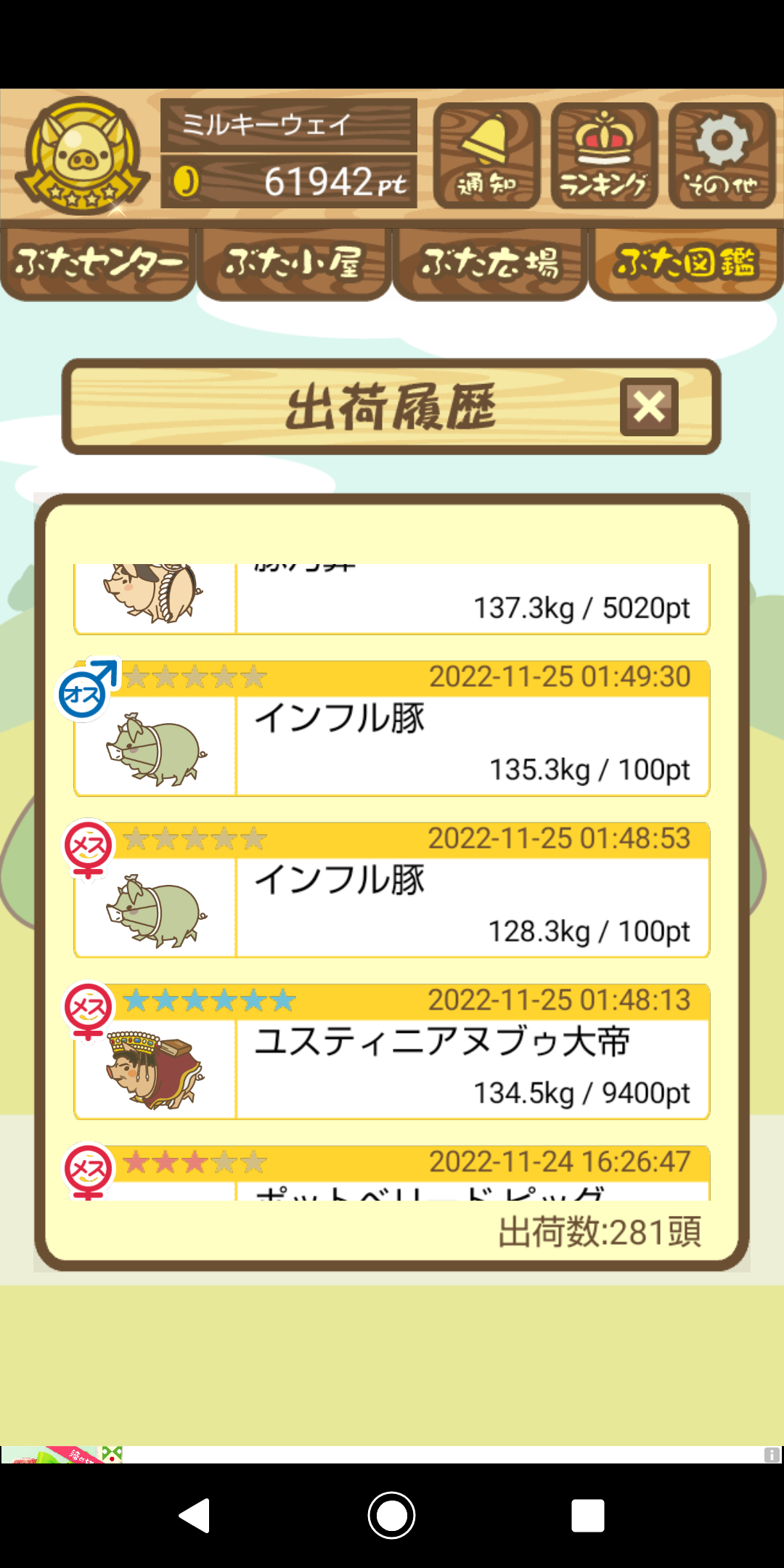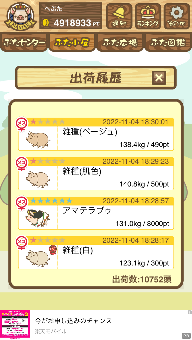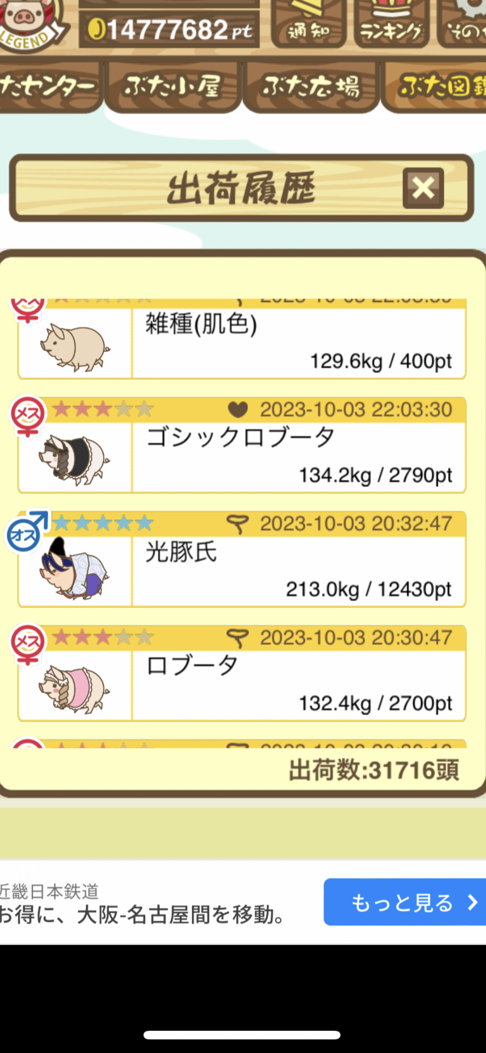 出荷前の情報は成豚になったことに気づいたときのものです。 -- りきまる[iFsyLiQI/DU] 2025/11/10 (月) 10:59:02