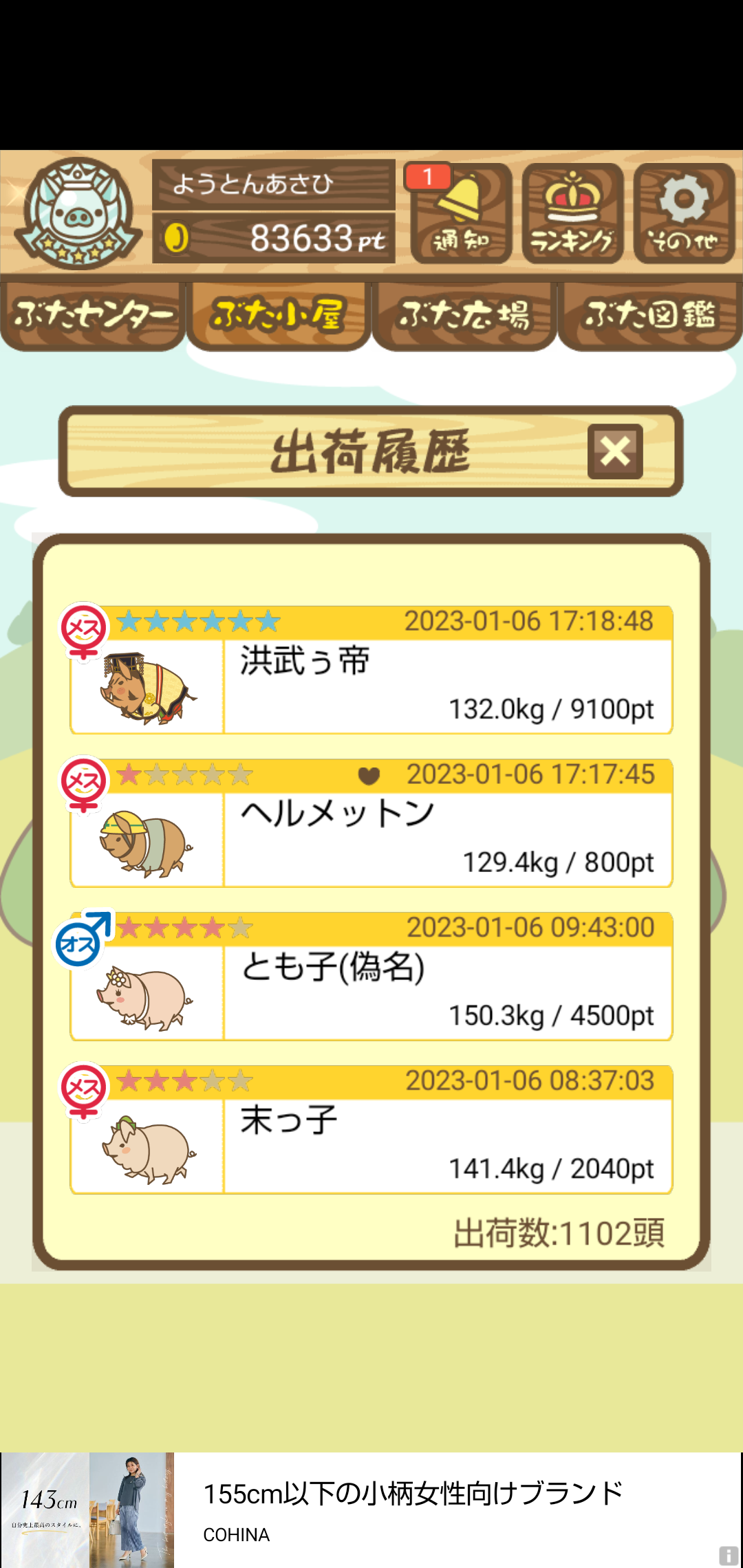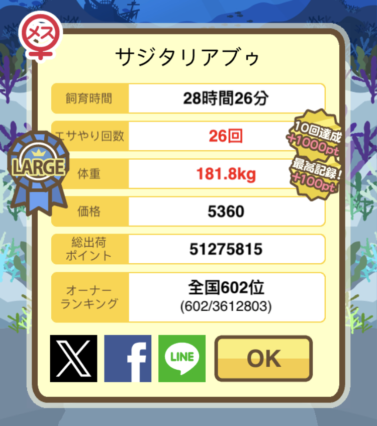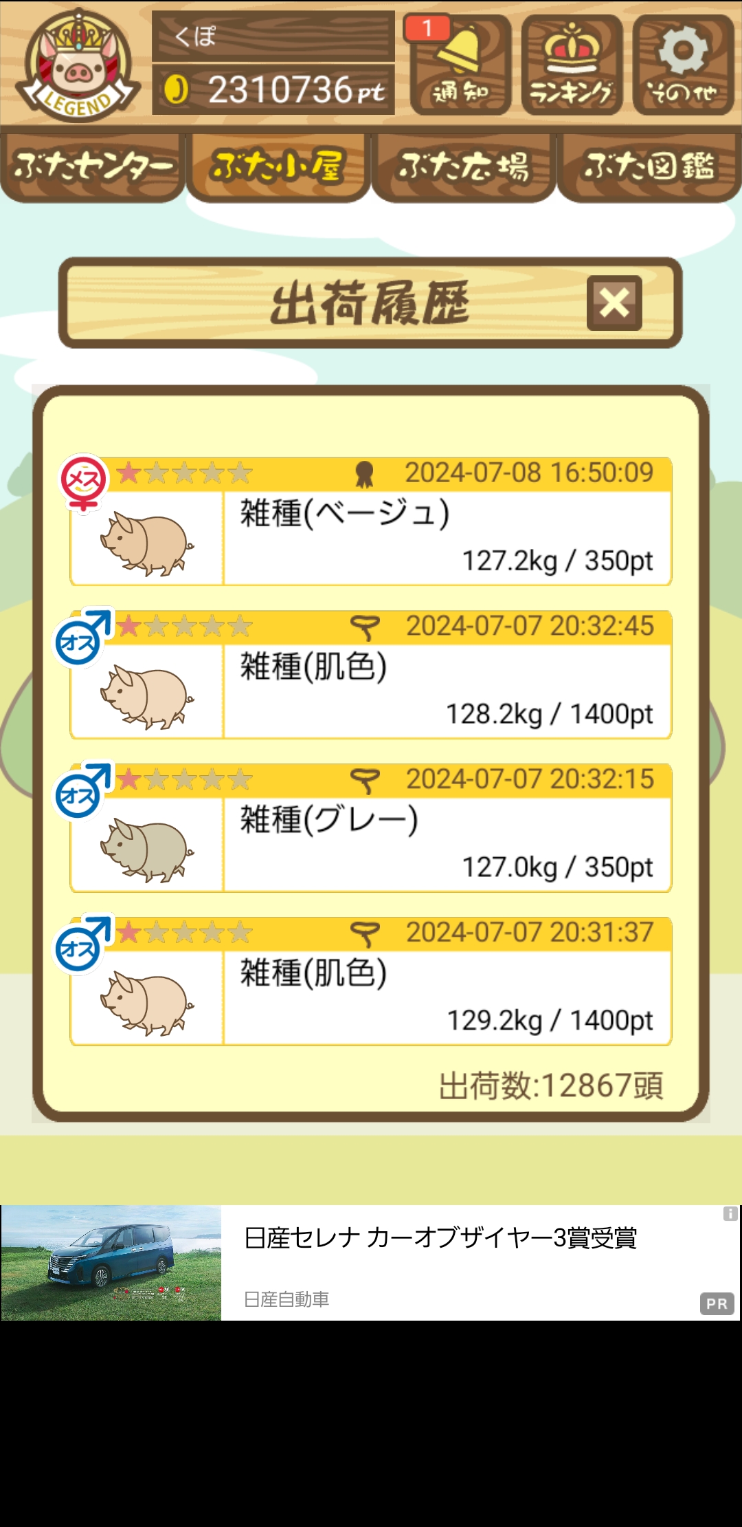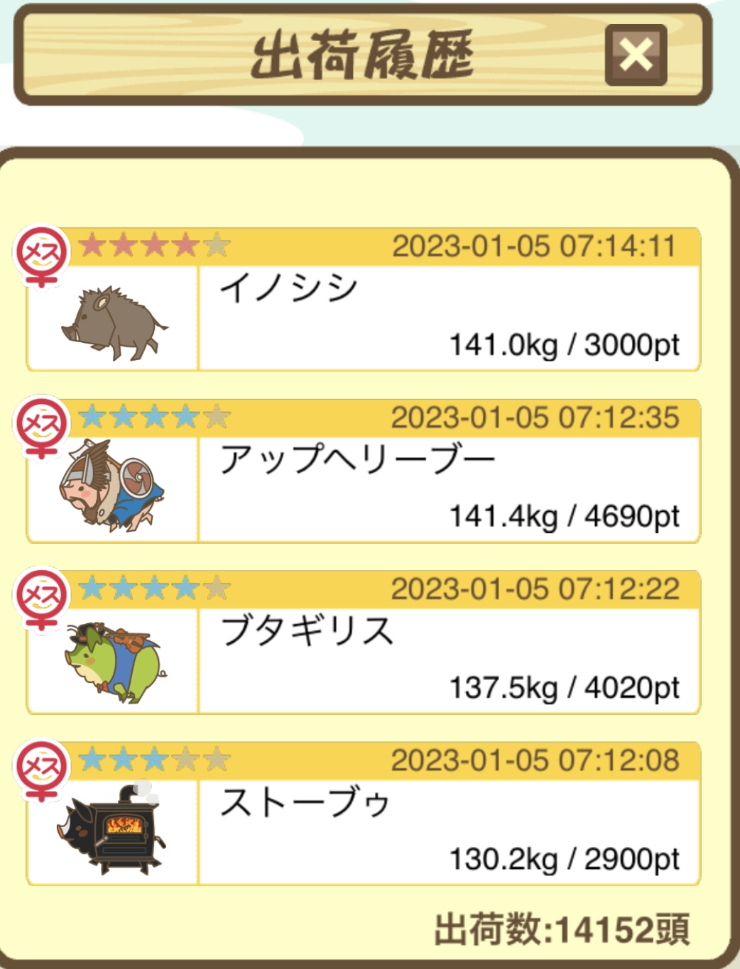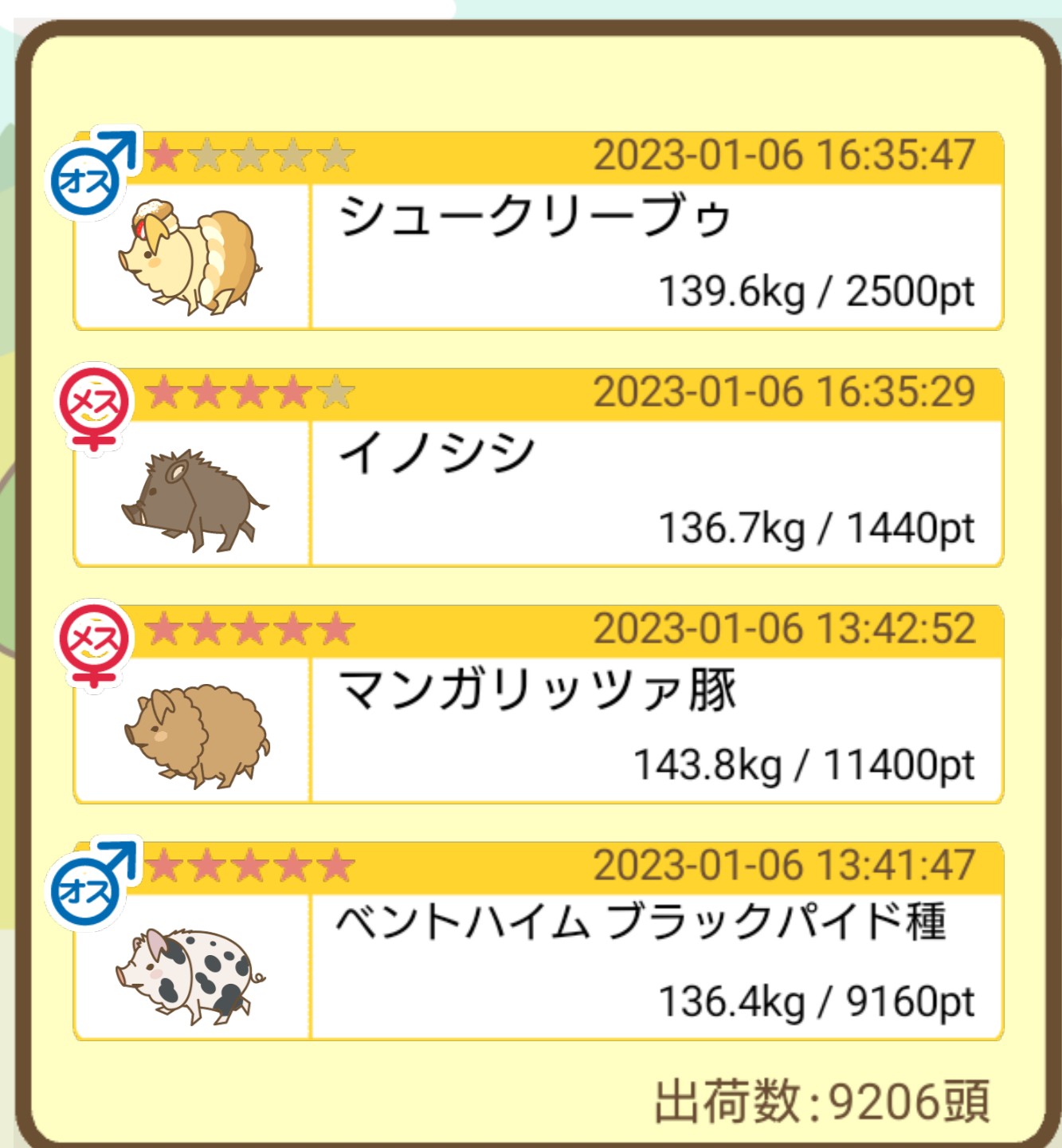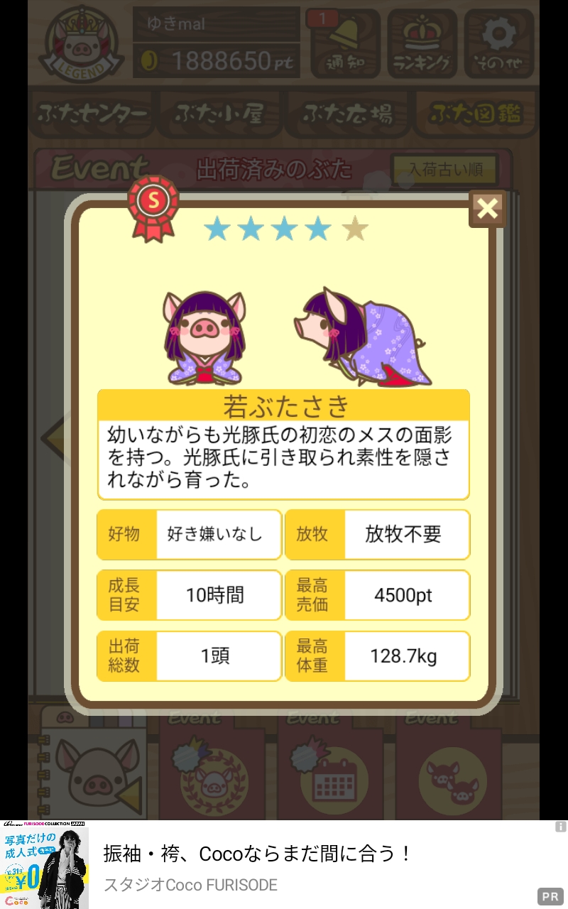 出荷前の情報は成豚になったことに気づいたときのものです。 -- りきまる[iFsyLiQI/DU] 2025/11/10 (月) 10:59:02