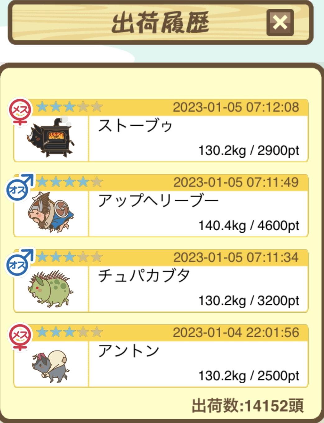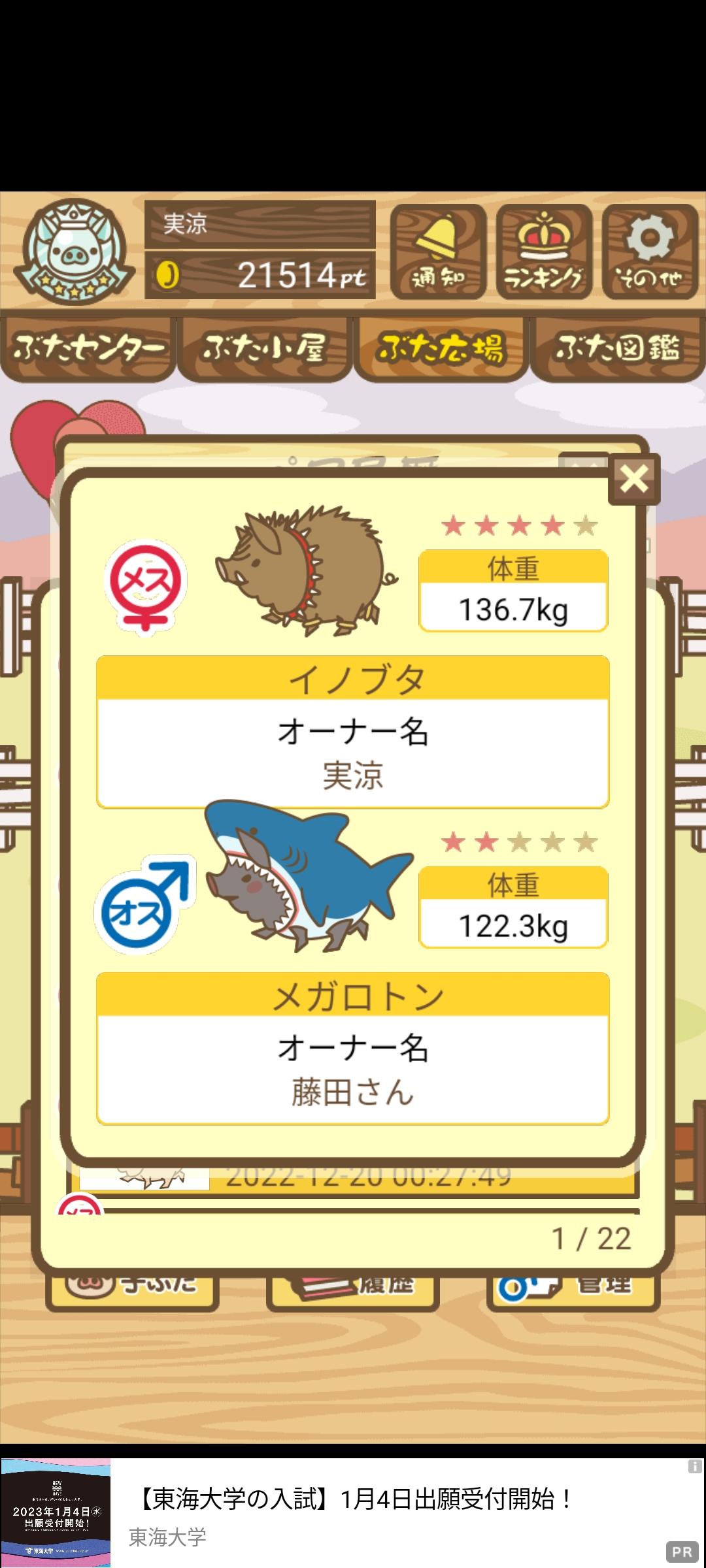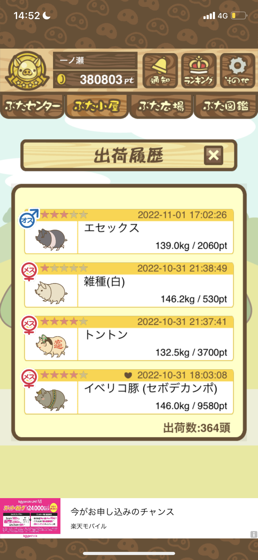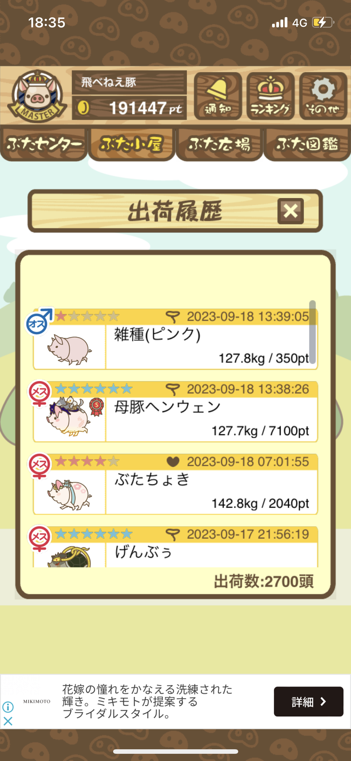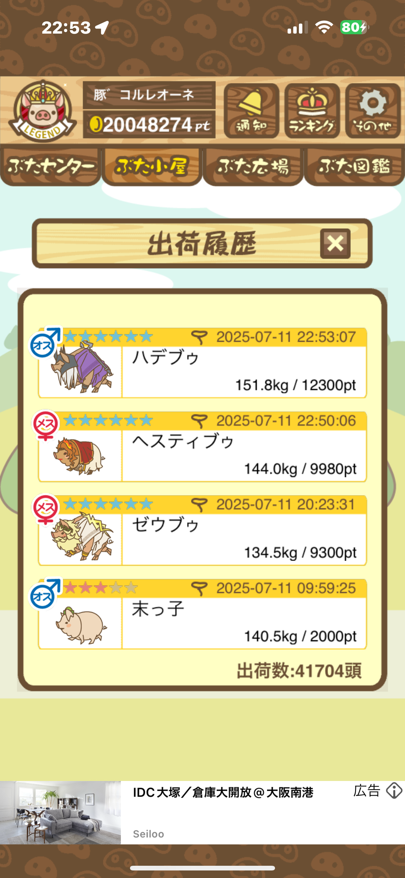 出荷前の情報は成豚になったことに気づいたときのものです。 -- りきまる[iFsyLiQI/DU] 2025/11/10 (月) 10:59:02