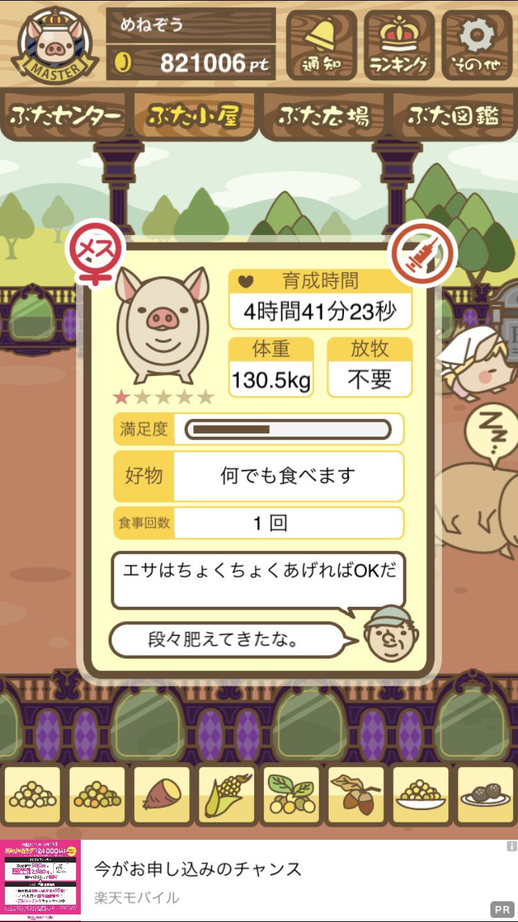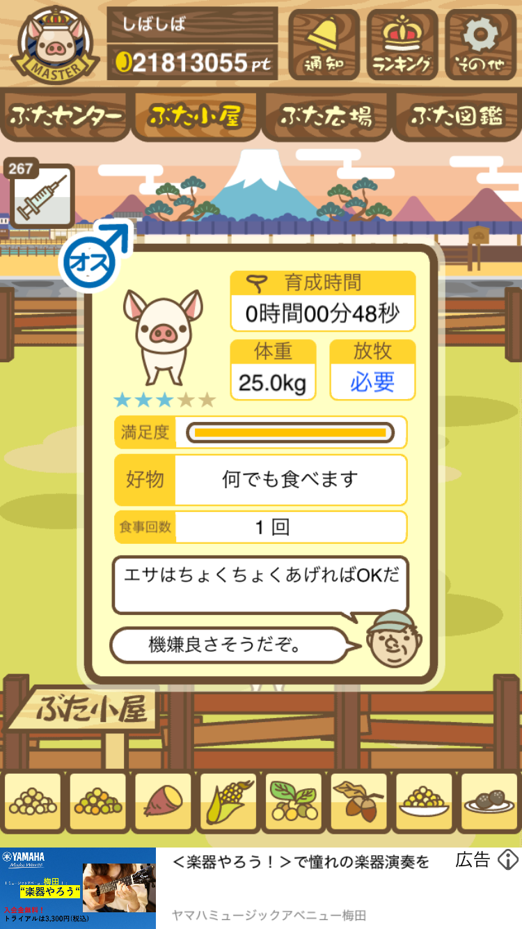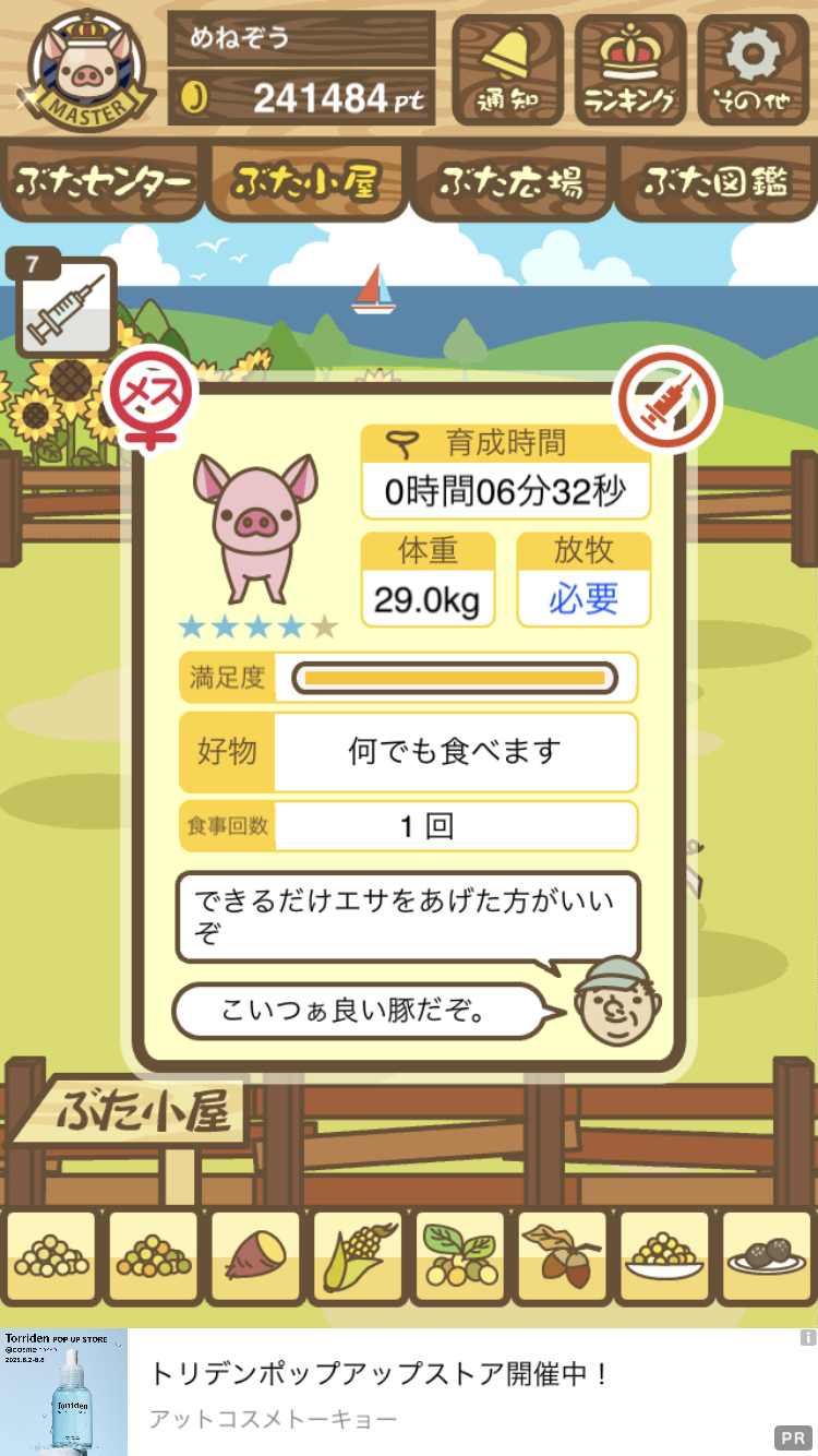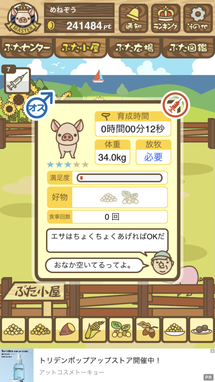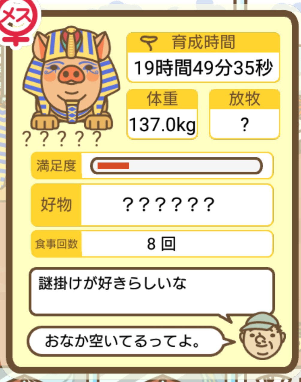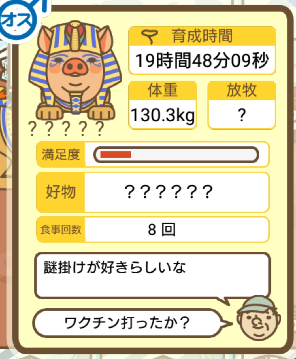 - すぐ下にコメントした者です。昼間に成豚してもエイブゥにしかなりません。何処がいけないのでしょう?成豚時は、掃除豚も無い方が良いのでしょうか? -- 名無し[u8fy9x6AEos] 2022/09/04 (日) 15:11:53