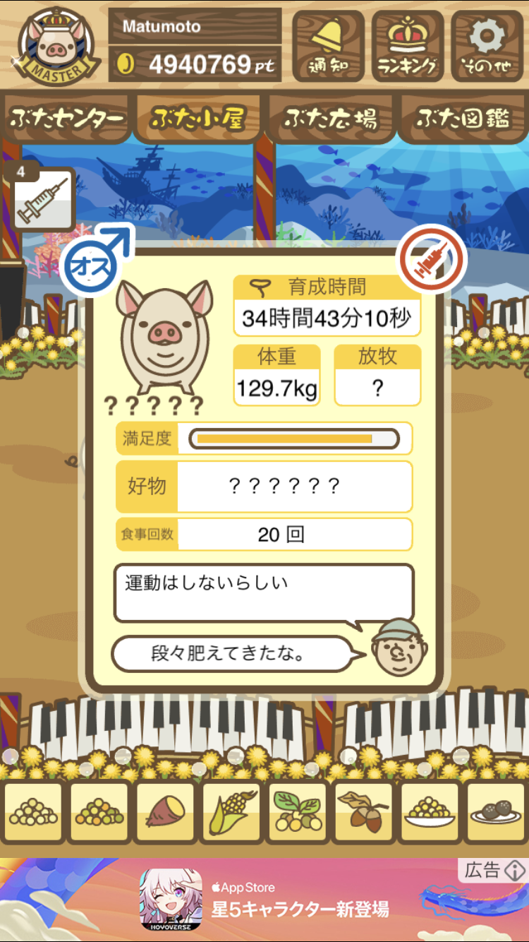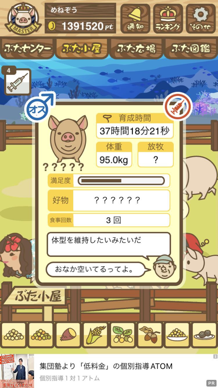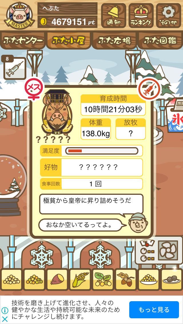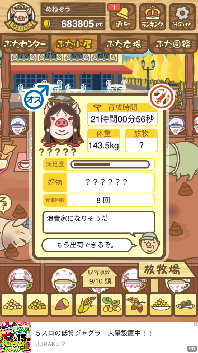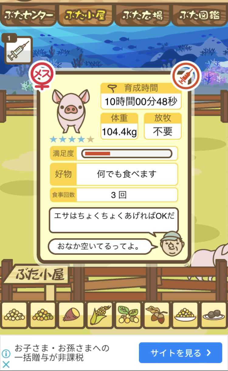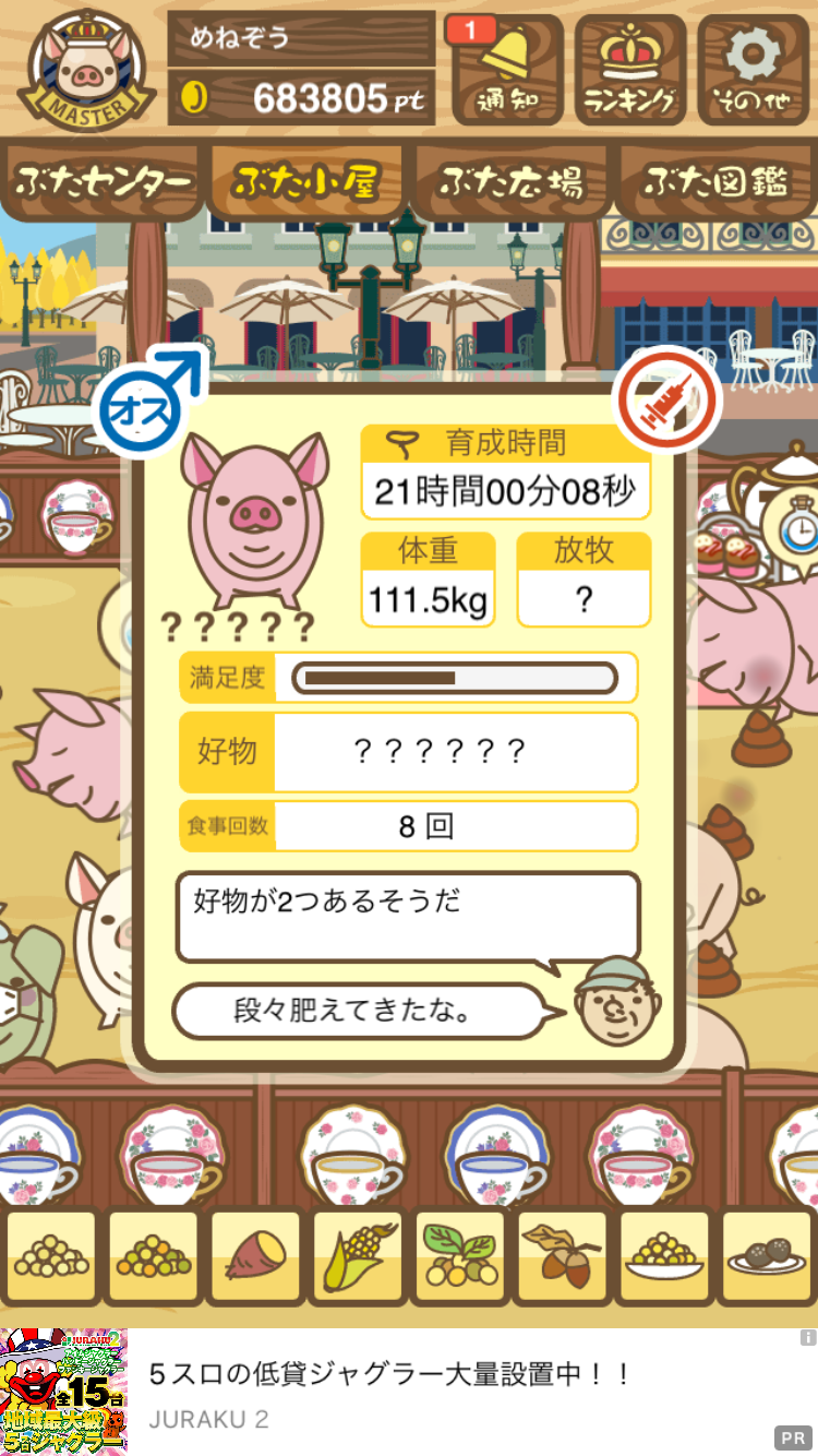 - すぐ下にコメントした者です。昼間に成豚してもエイブゥにしかなりません。何処がいけないのでしょう?成豚時は、掃除豚も無い方が良いのでしょうか? -- 名無し[u8fy9x6AEos] 2022/09/04 (日) 15:11:53