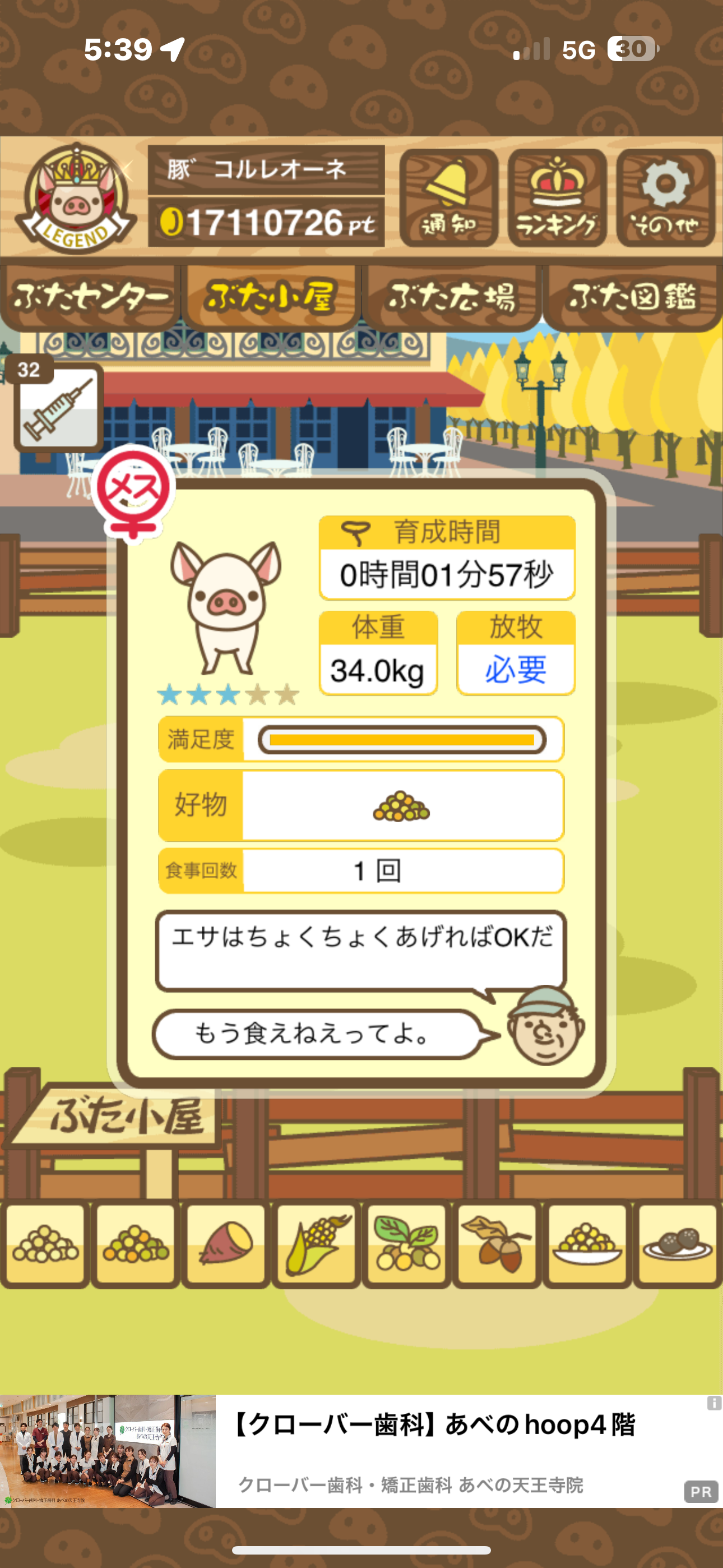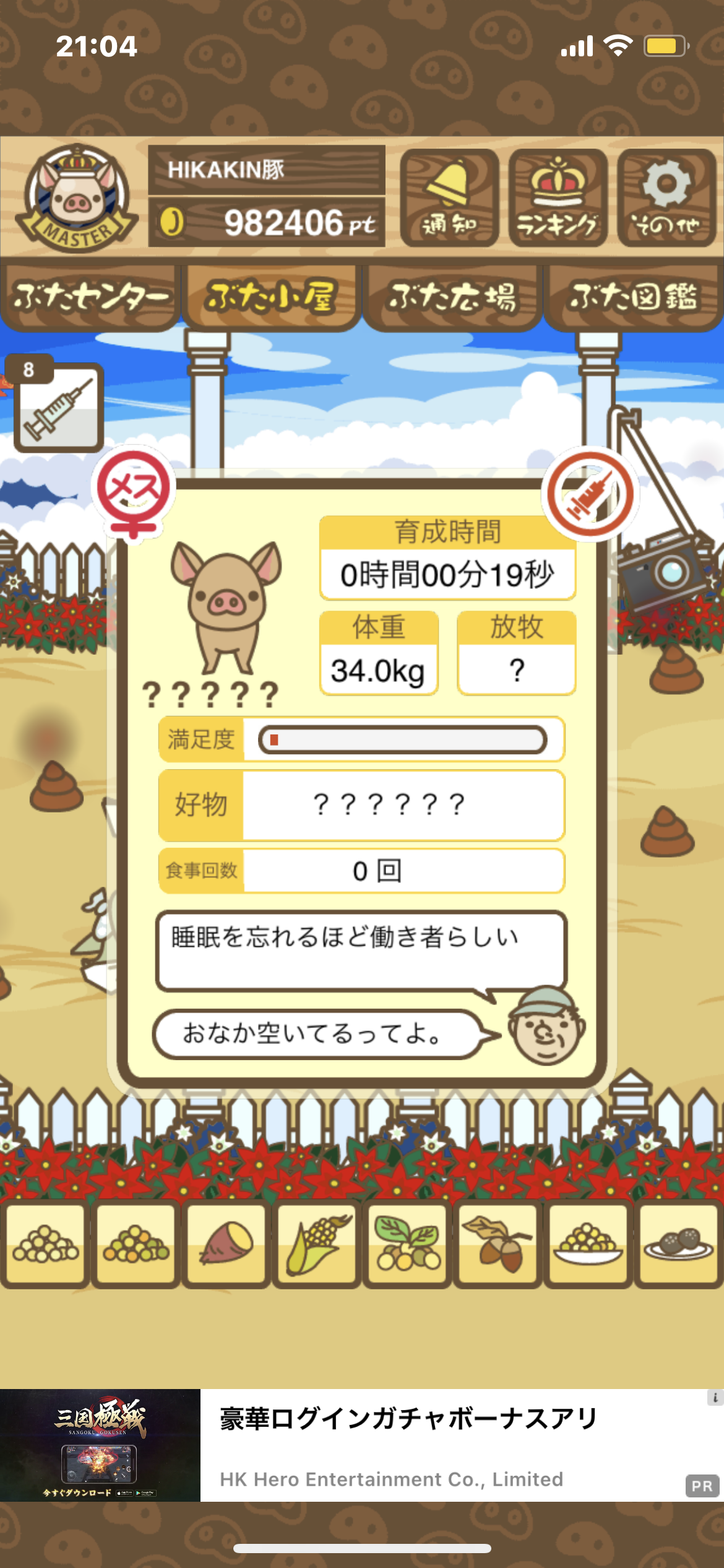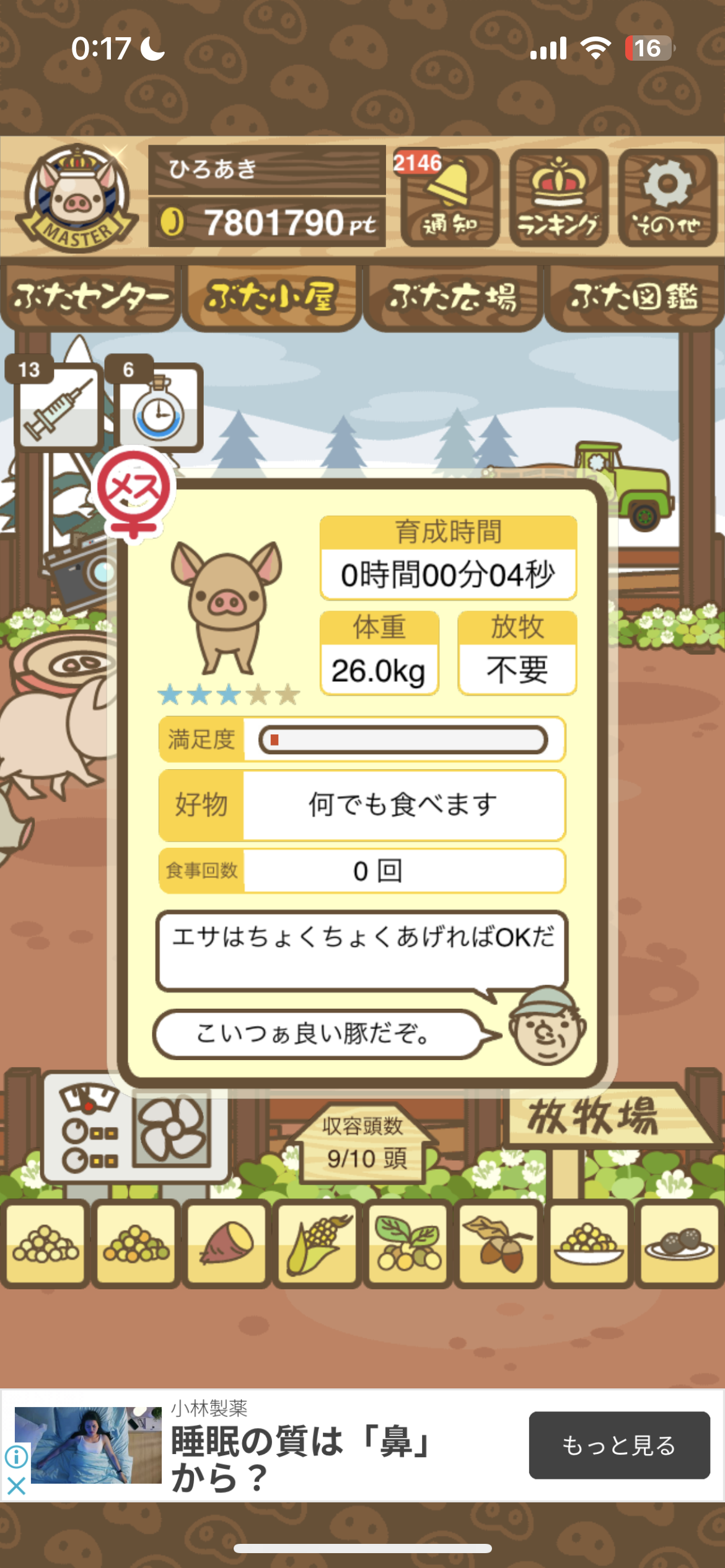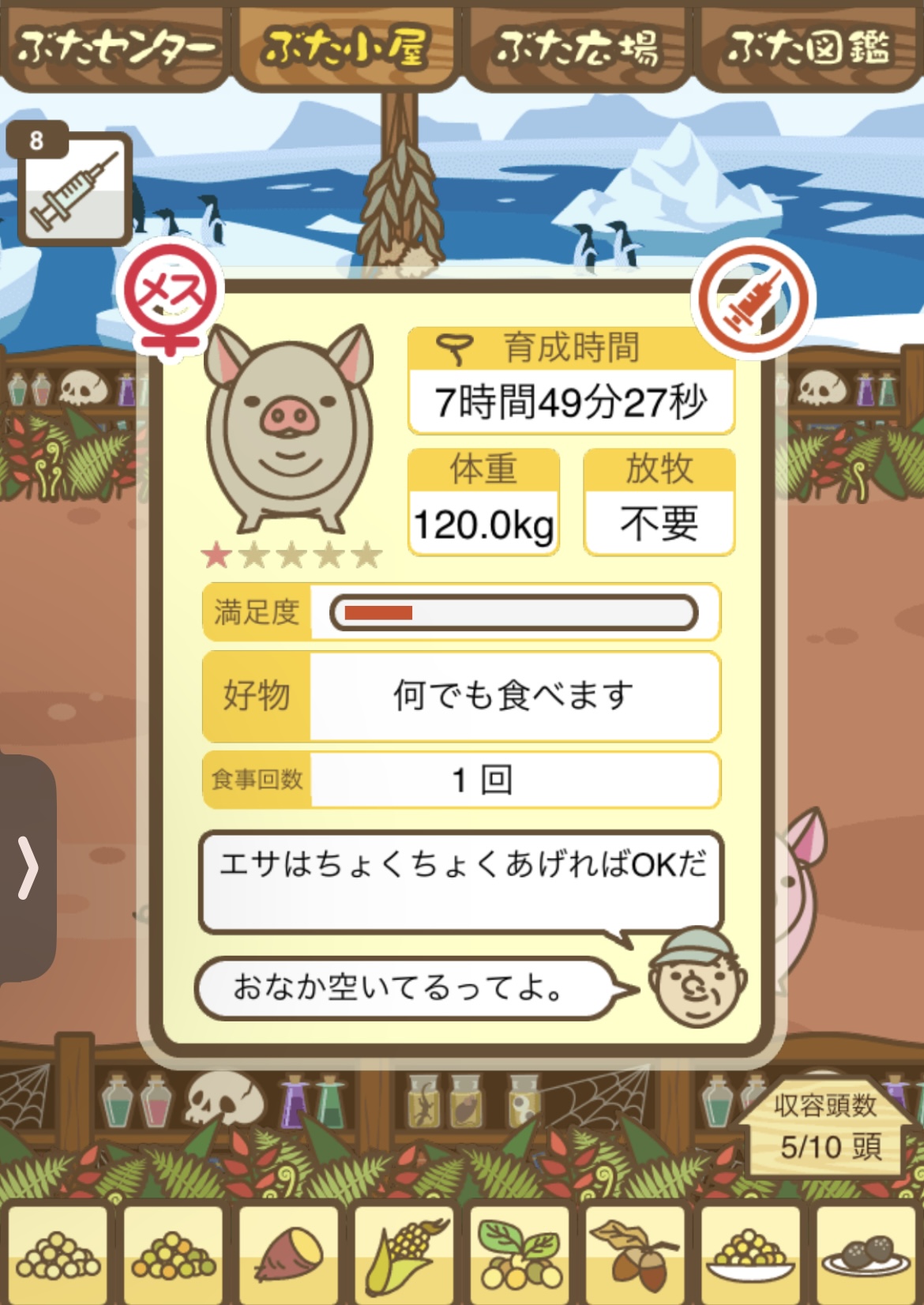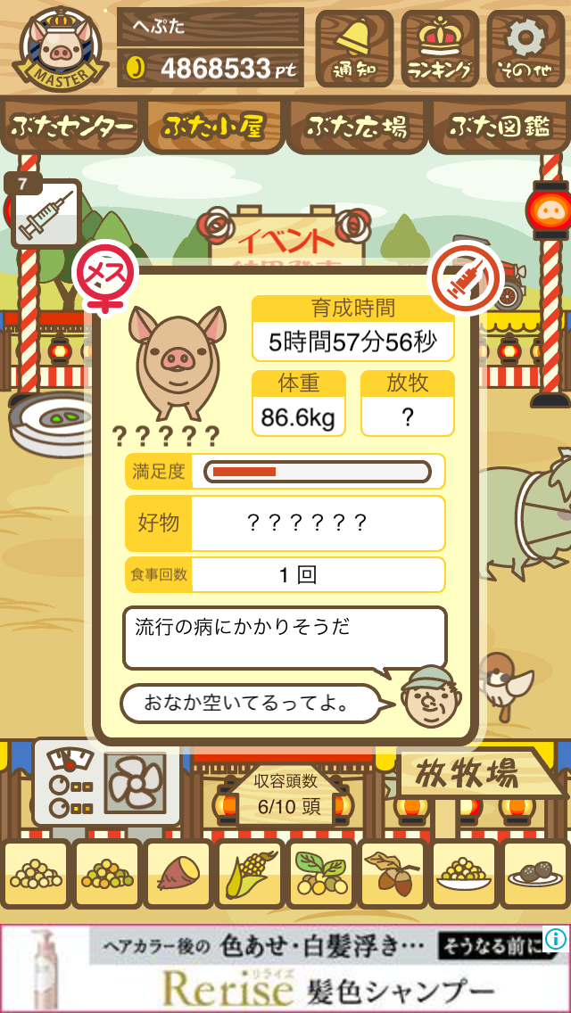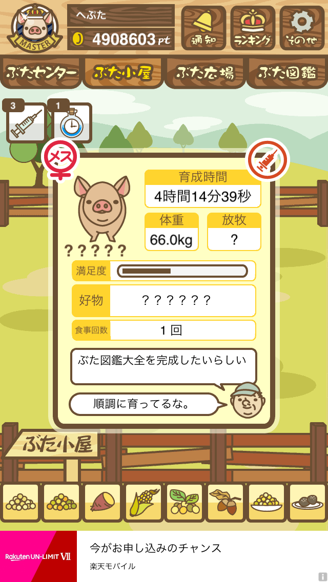 - すぐ下にコメントした者です。昼間に成豚してもエイブゥにしかなりません。何処がいけないのでしょう?成豚時は、掃除豚も無い方が良いのでしょうか? -- 名無し[u8fy9x6AEos] 2022/09/04 (日) 15:11:53