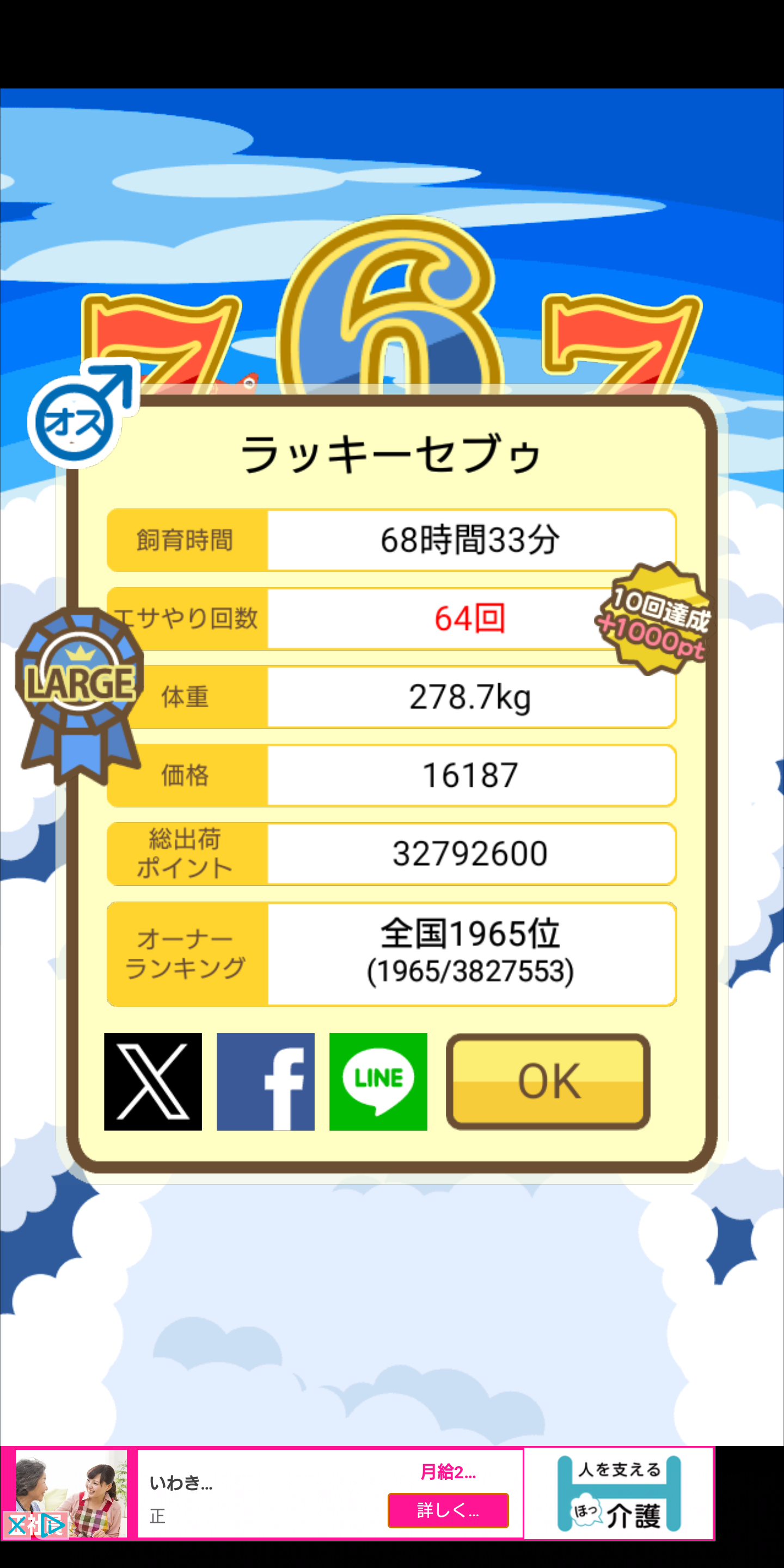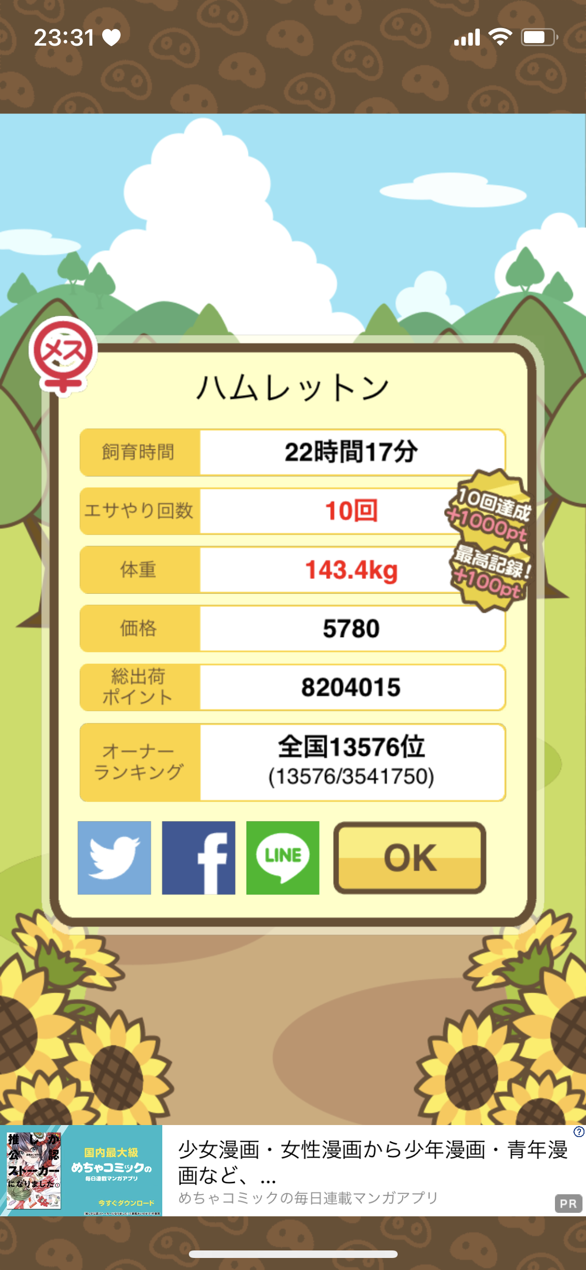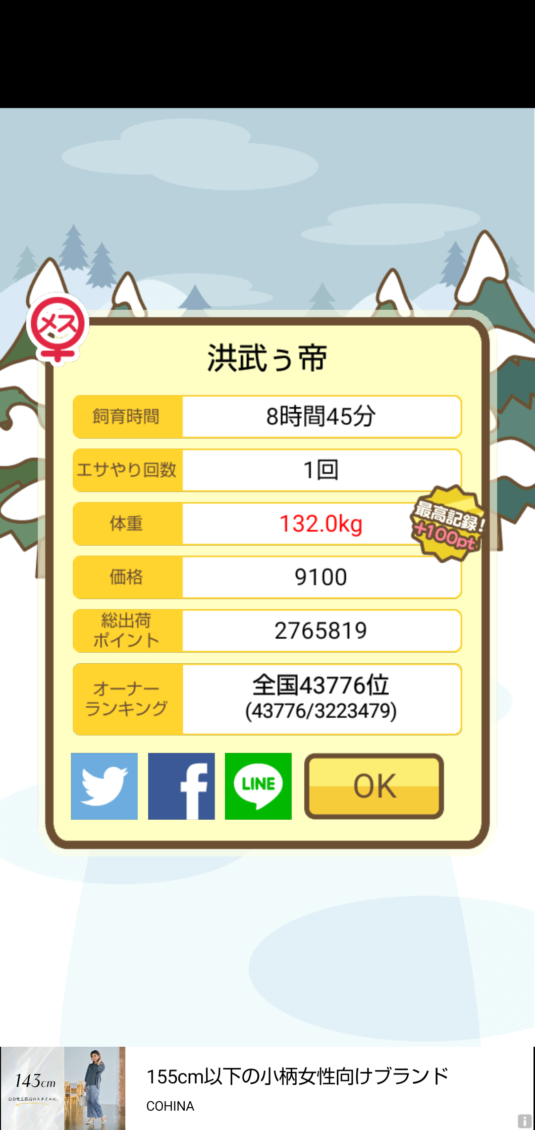 - おめでとうございます✨今度は頑張ります!さつまいもが好物だったんですね! -- かおりん[XKB64Lz.CAI] 2025/11/05 (水) 22:23:21