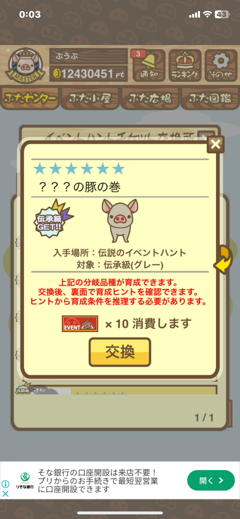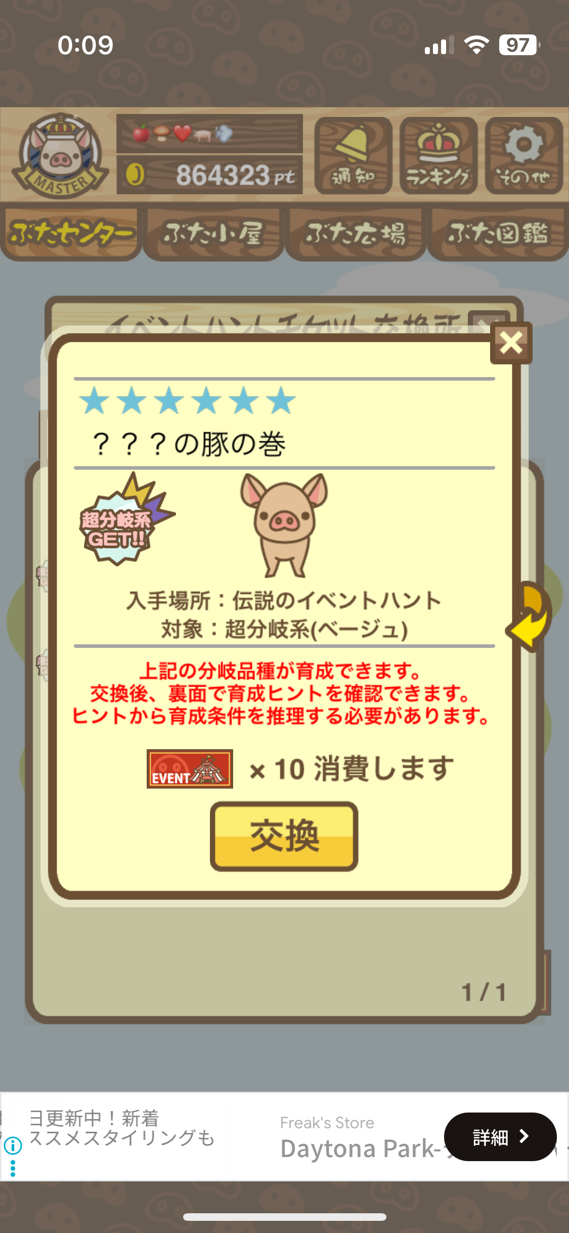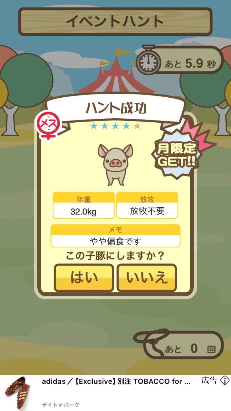 ・イベントハントぶた(サーベルタイブゥの下)