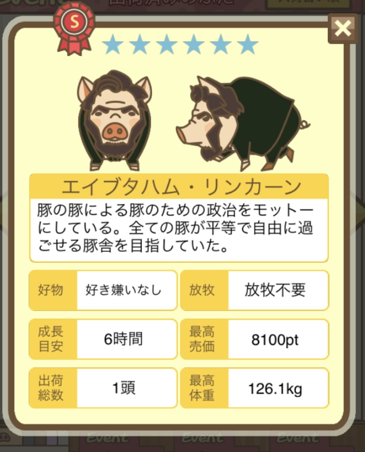- 私の場合、エイブタハム・リンカーンは成豚になっても